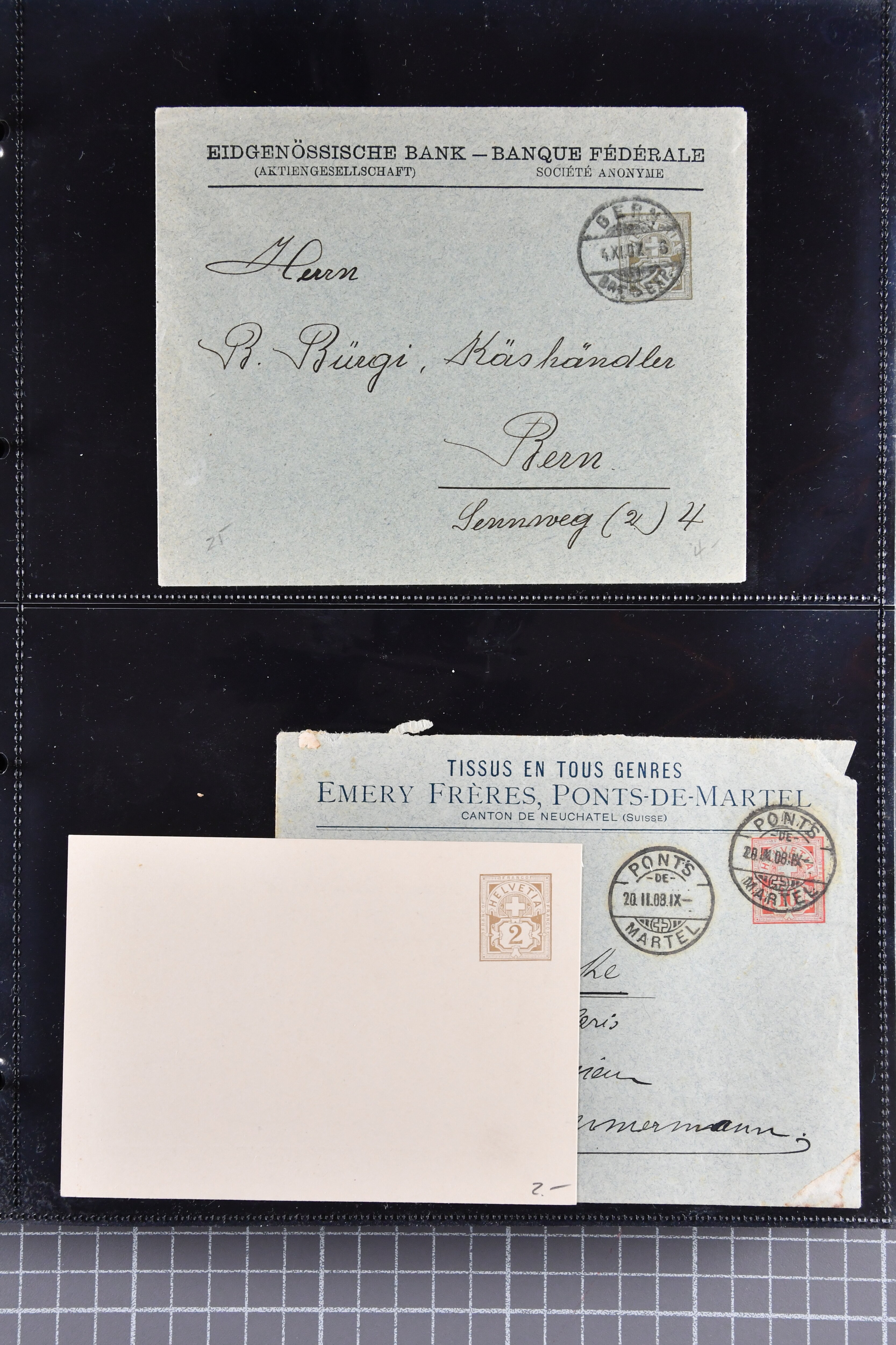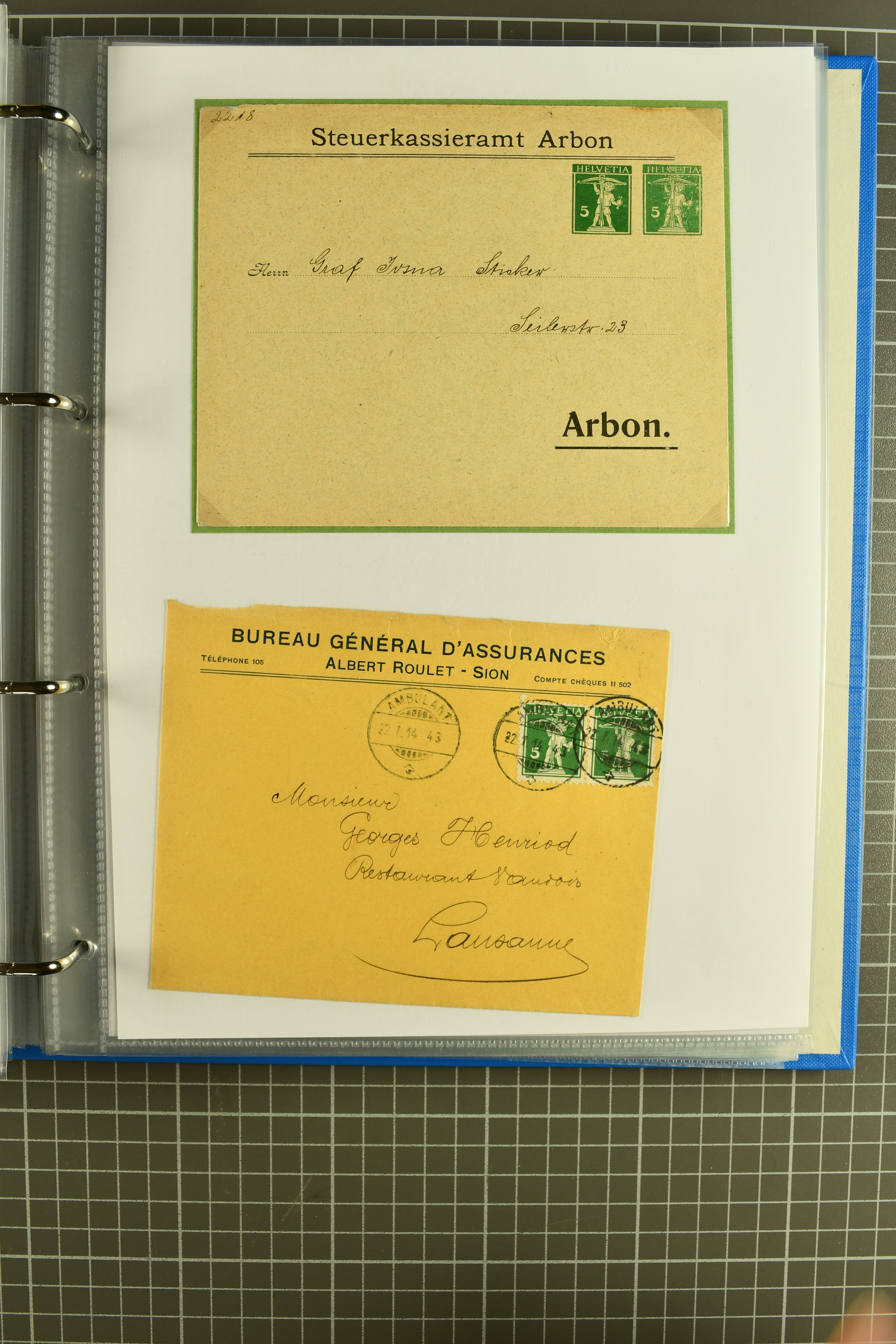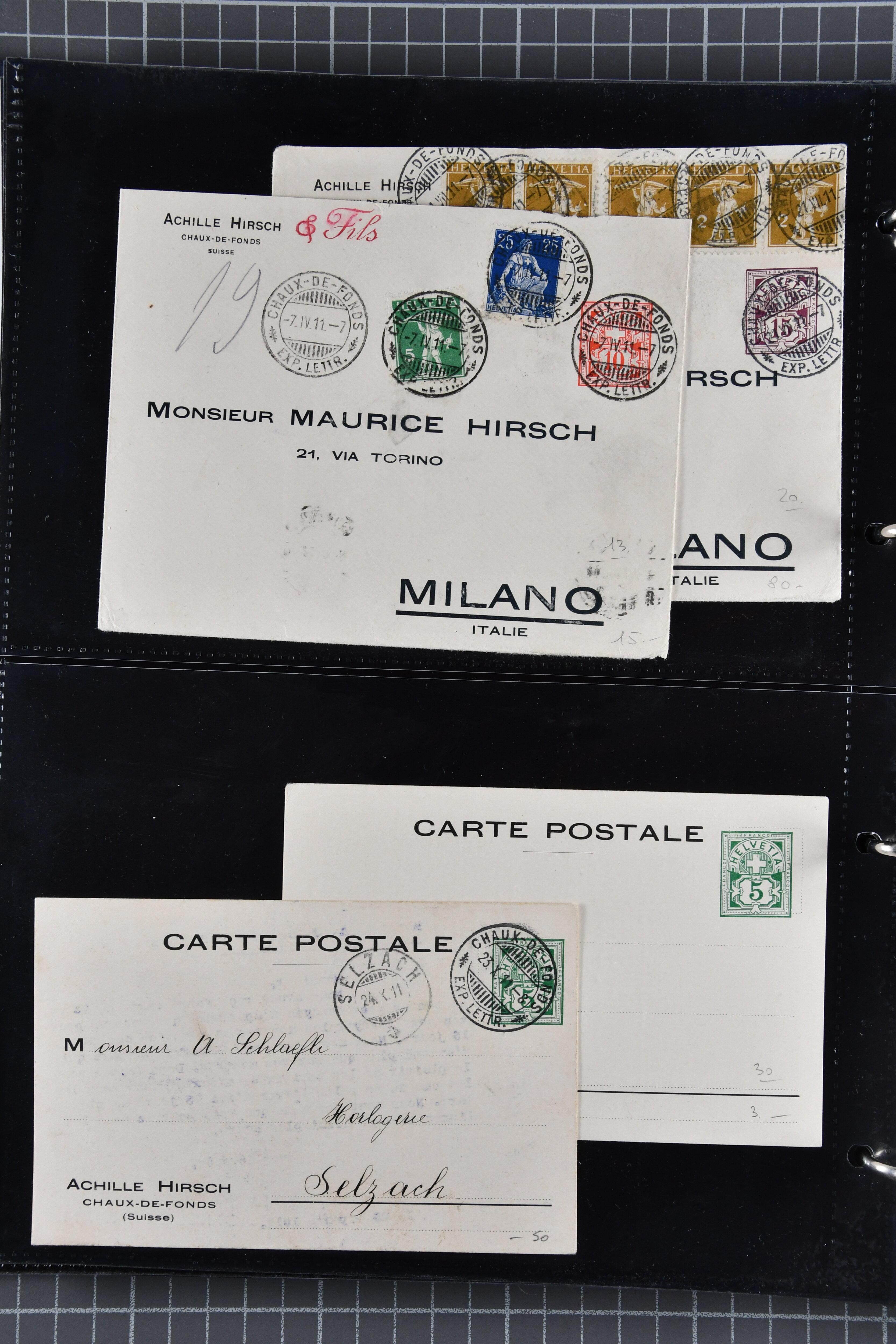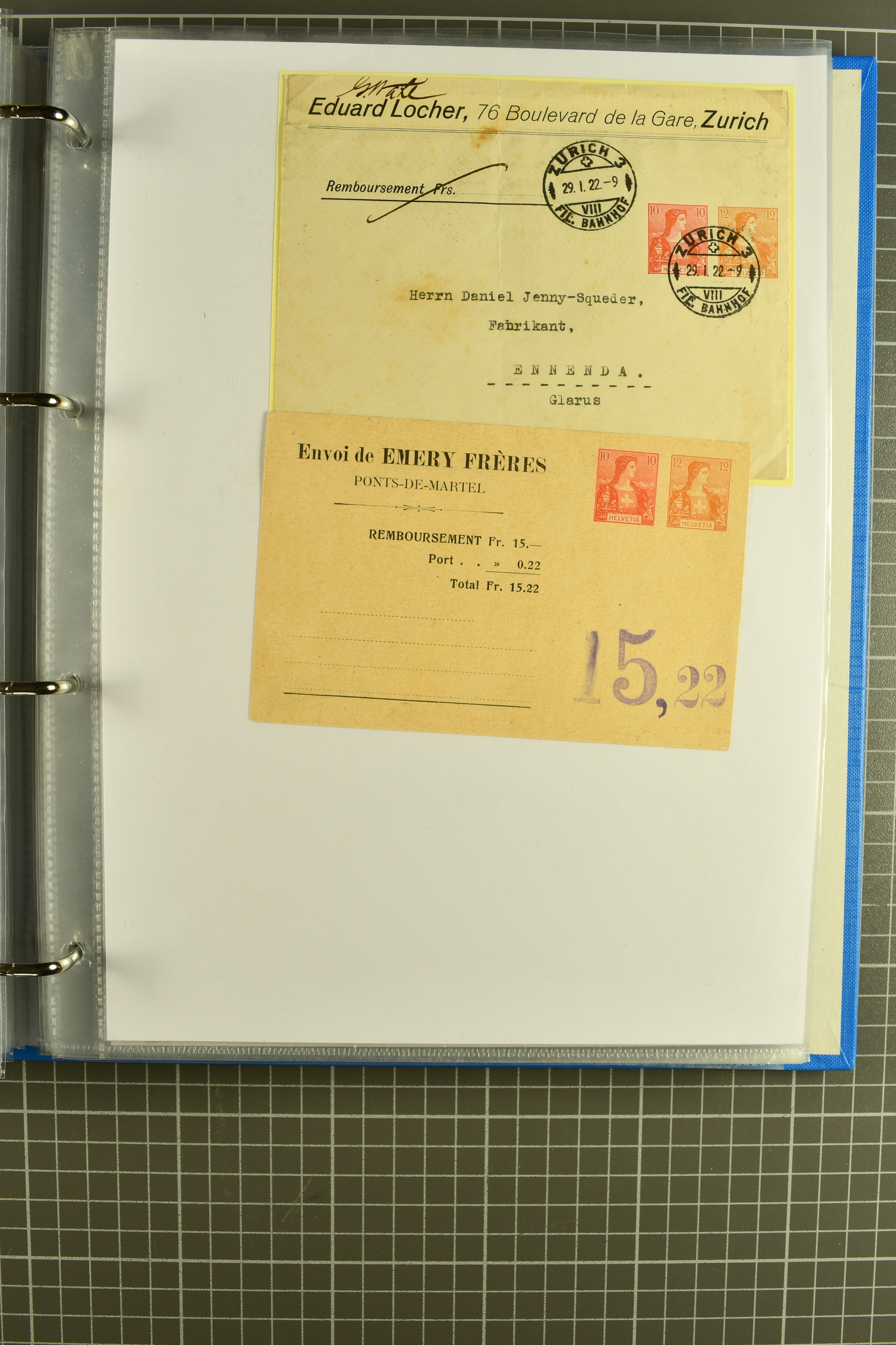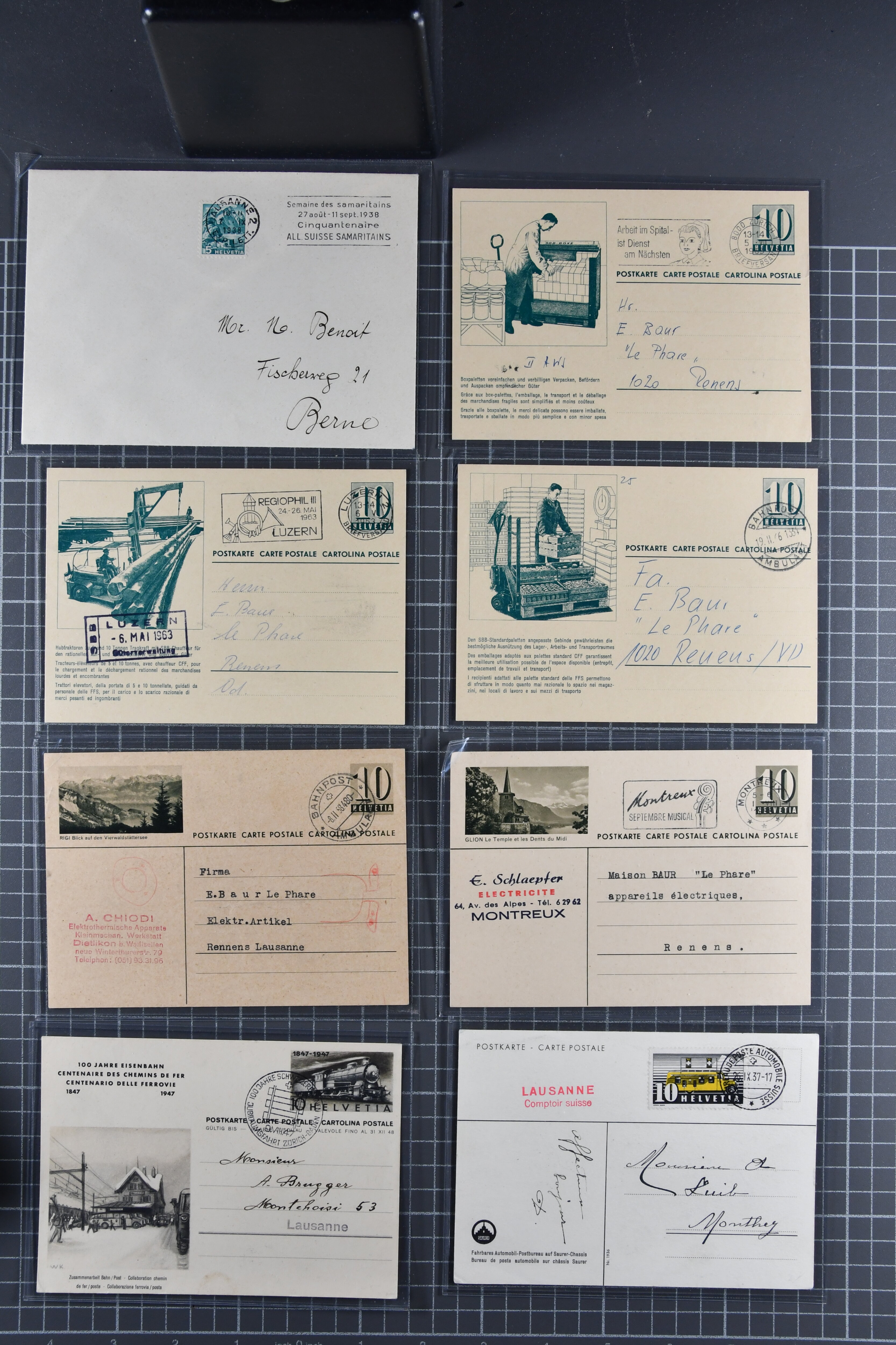 Umschlägen auch zu 12 oder 15 Rappen, Zusatzfrankaturen, Drucksachen-Karten mit Besuchsanzeigen, zwei Bahnhofsbriefe; weiterhin 120 meist ungebrauchte Umschläge / Karten meist mit zwei oder drei Wertstempeln; sowie 80 häufige nahezu vollständig