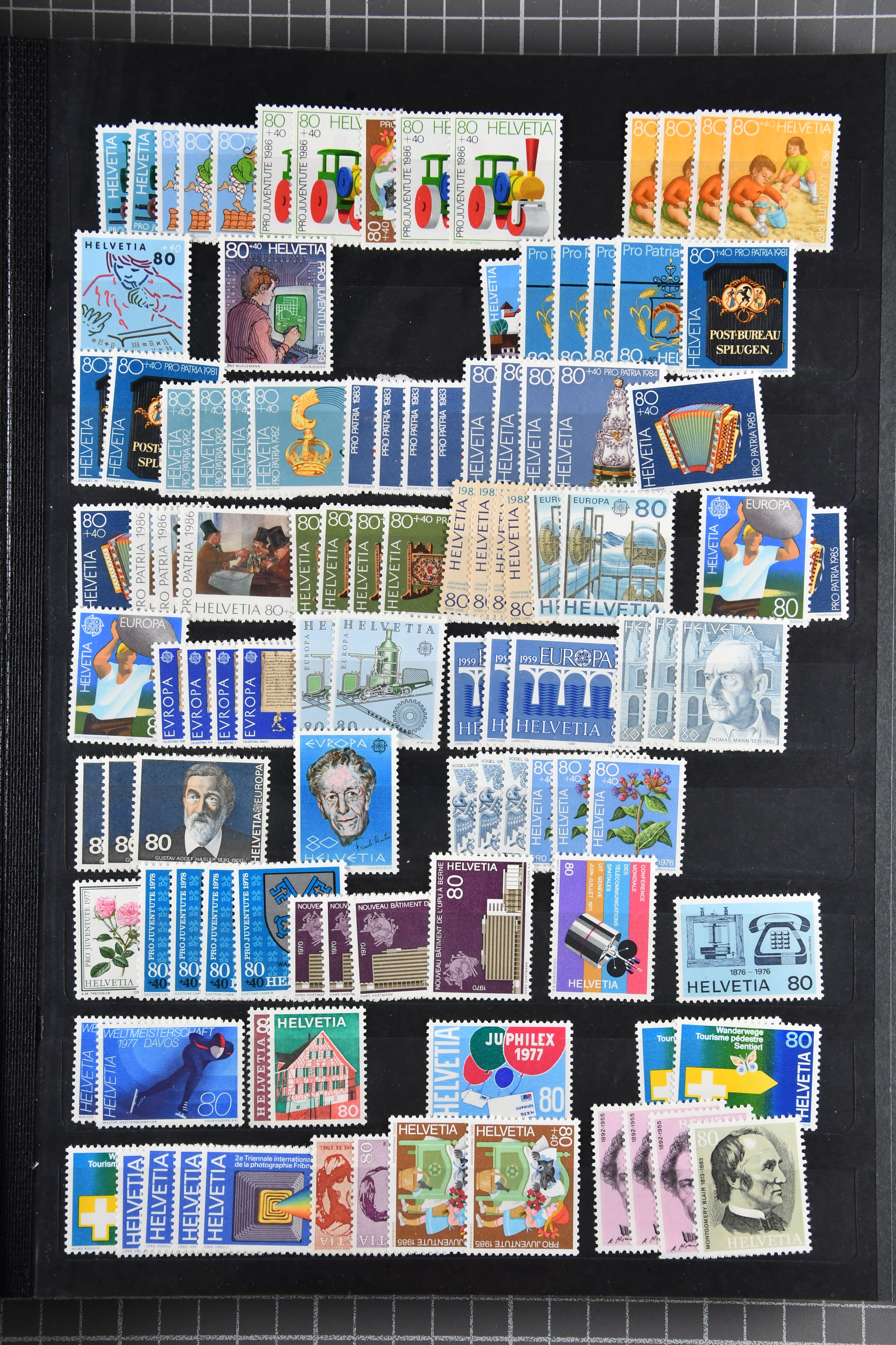 1980/84: En-gros-Posten ungebrauchte Ganzsachenpostkarten – Schweiz. Zusammensetzung: 40 Rp. LURABA 1981 mit Motiv 'Space Shuttle', (PK 212): ca. 10’700 Stück; 40 Rp. Tembal 1983: ca. 500+ Stück; 50 Rp. Stickerei: ca.1’600+ Stück; 40+10 Rp.