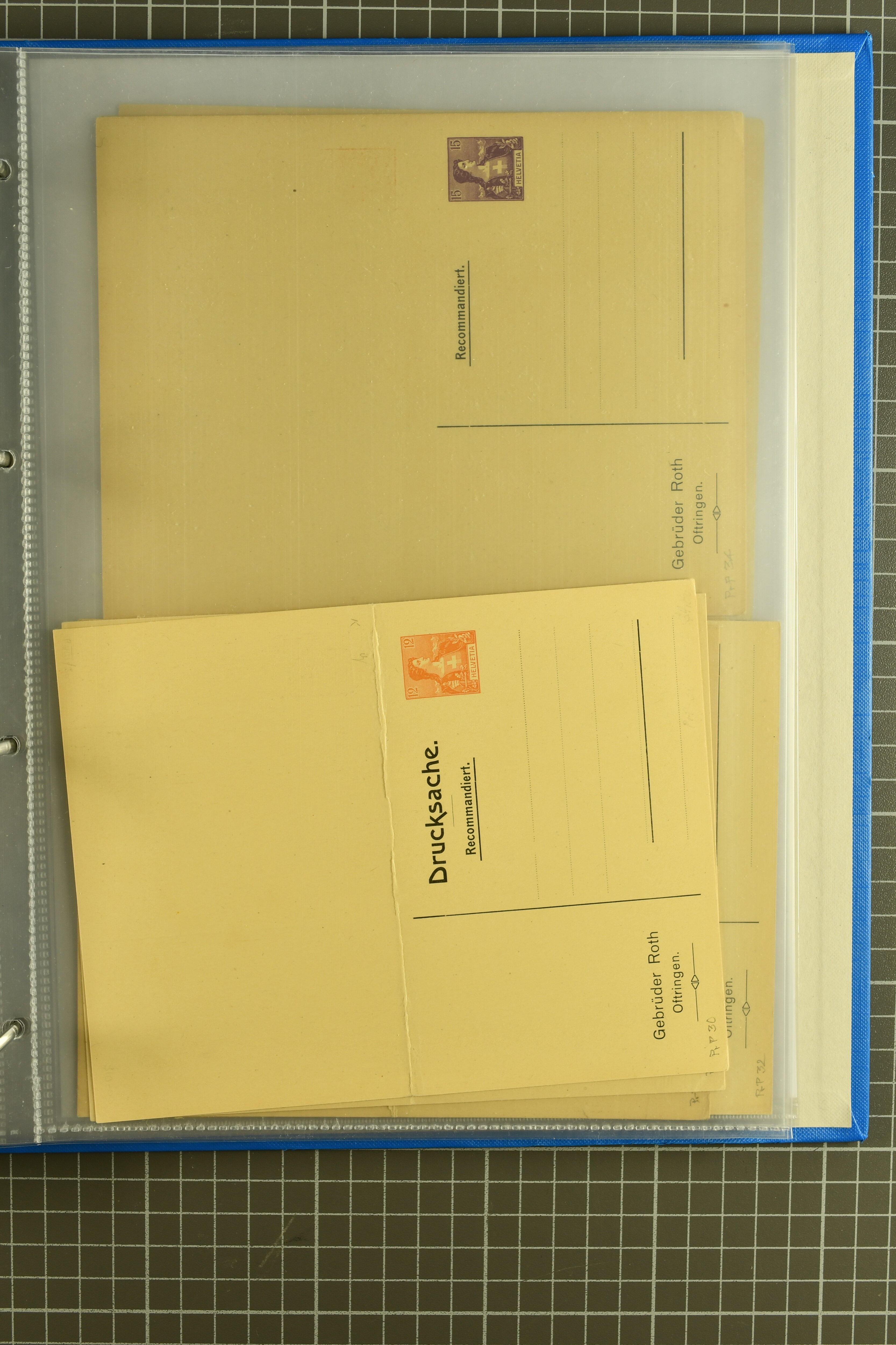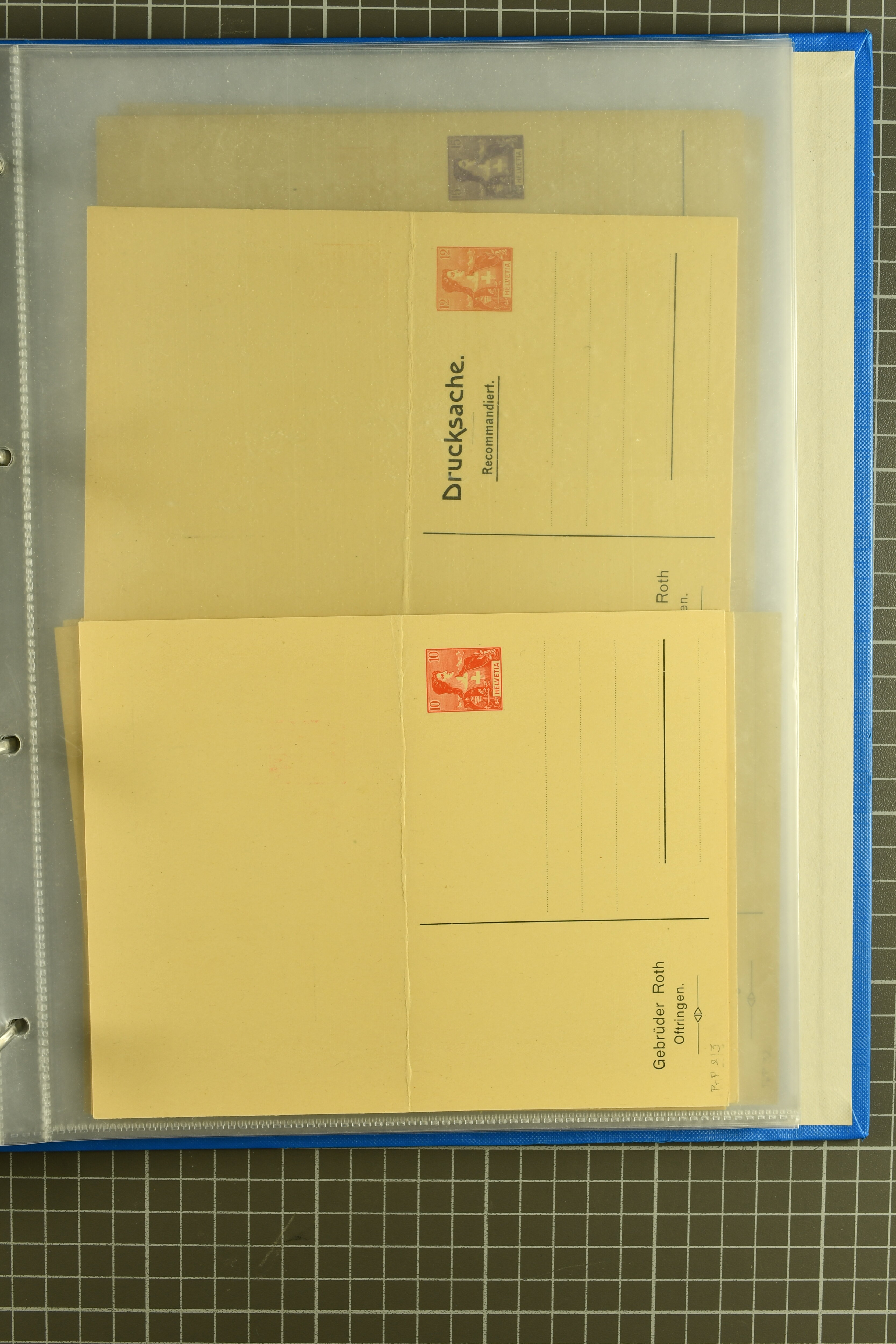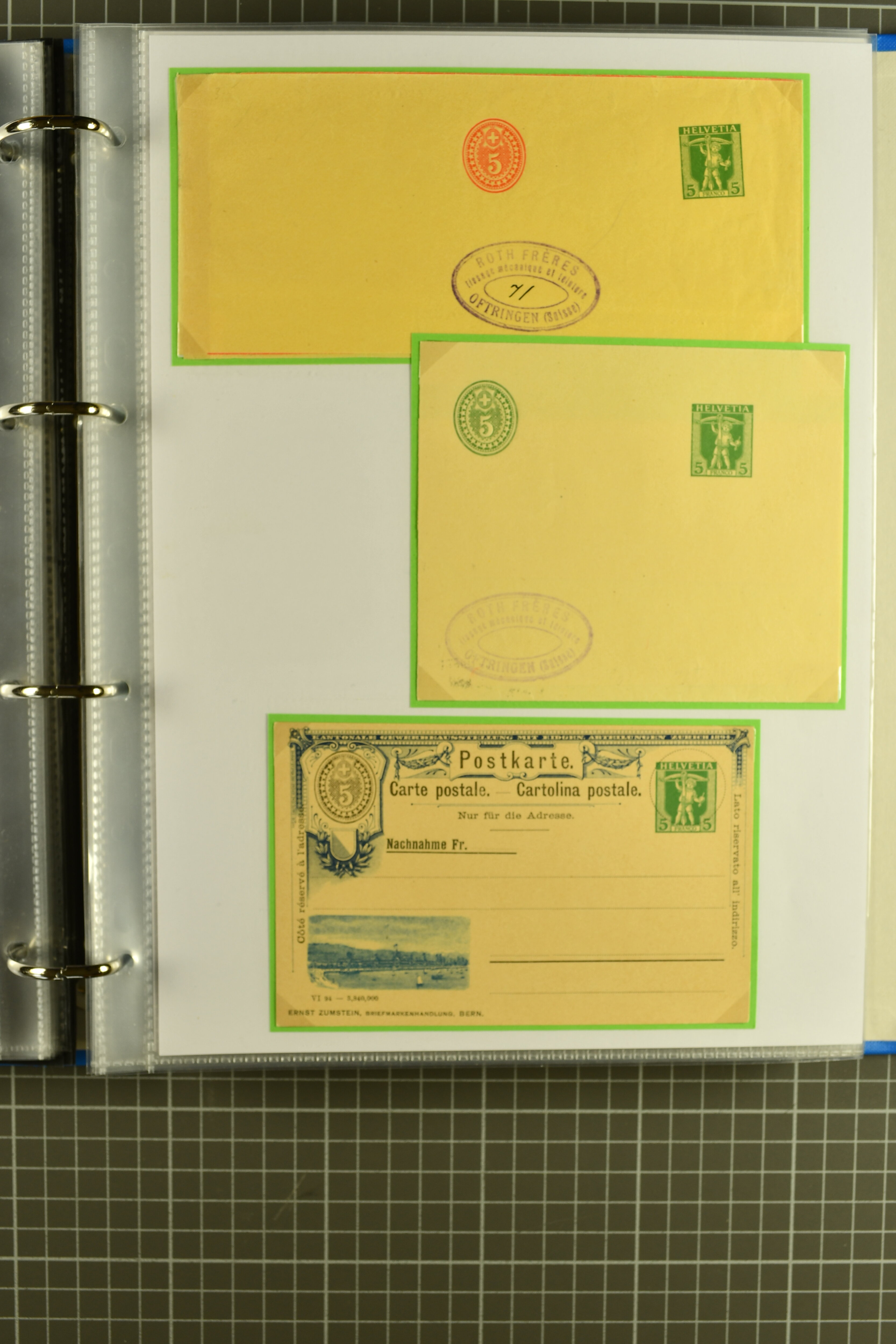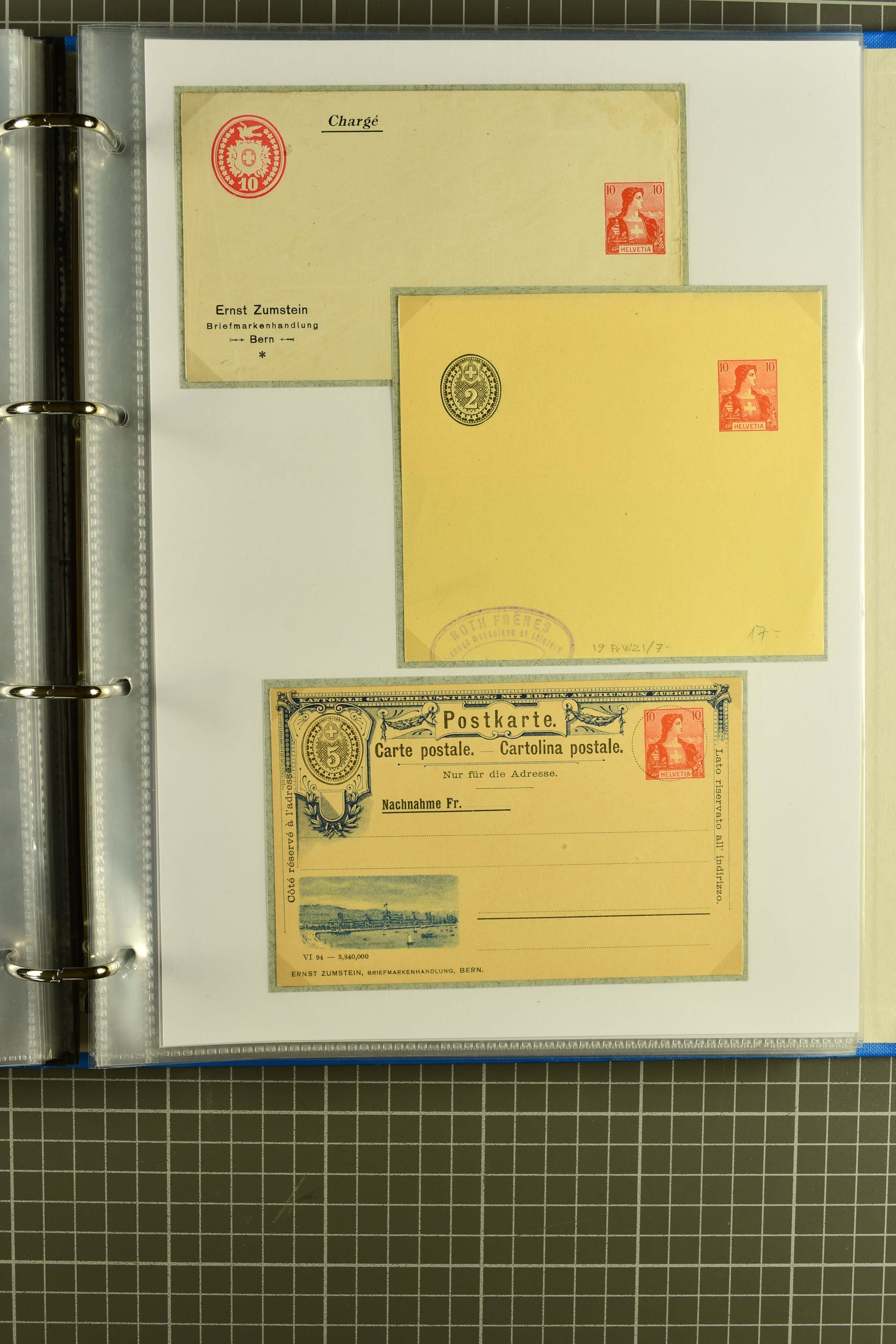 ungebrauchte Ganzsachen mit Ziffer resp. Helvetiabrustbild, auch mit zwei Wertstempeln, Kartenbriefen, Schleifen aus bekannten Quellen wie Roth Oftringen; in drei Alben (Image 1)
