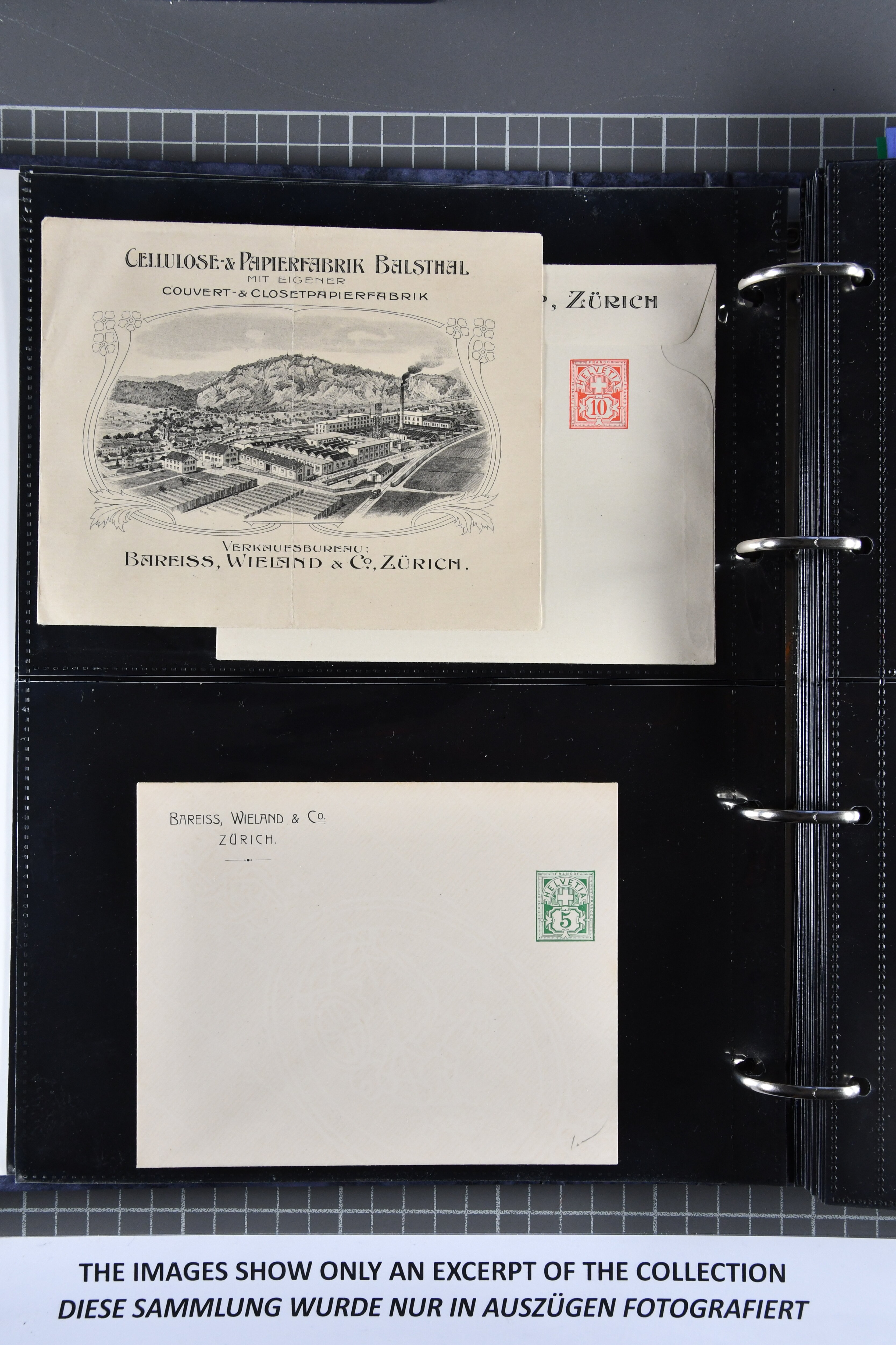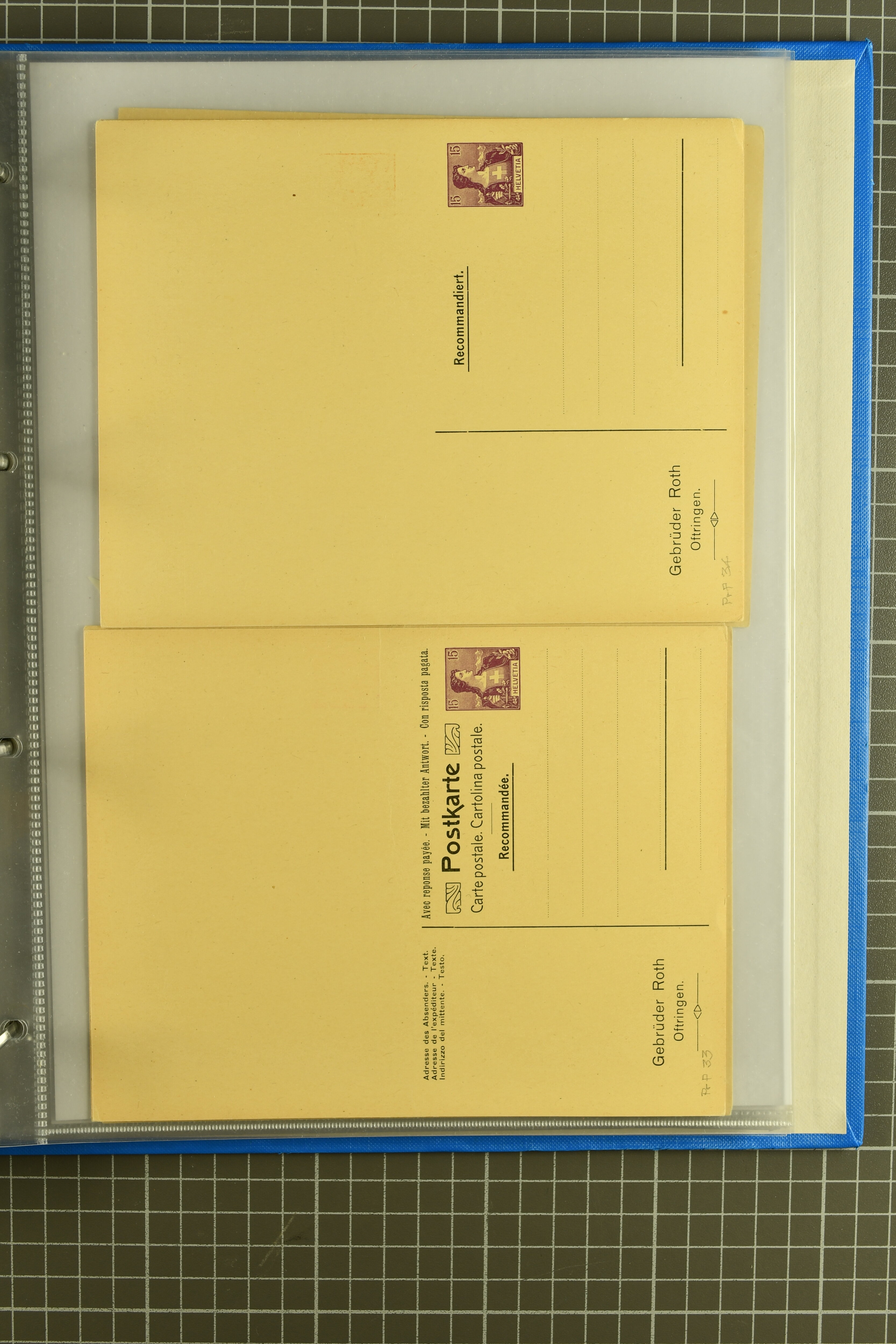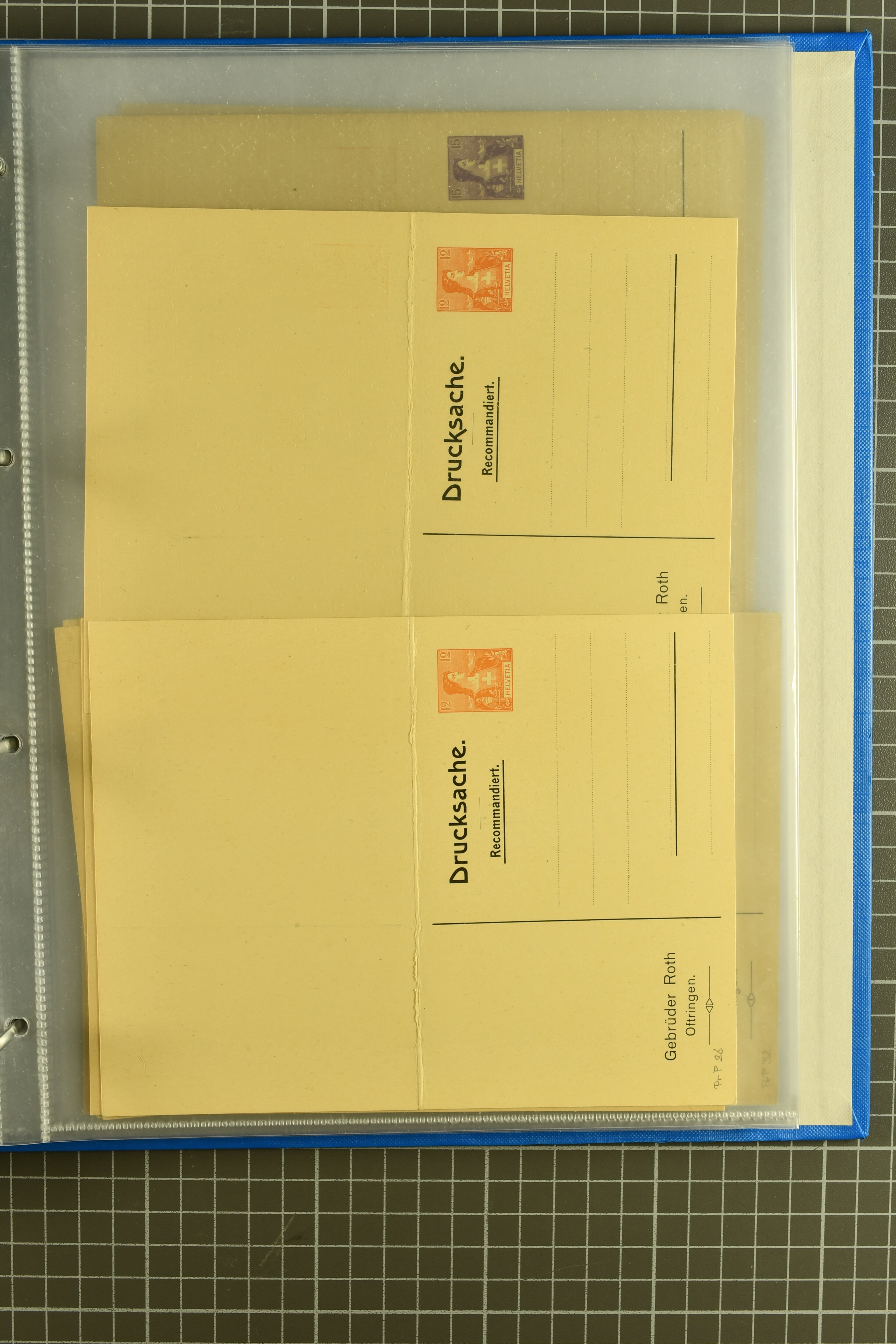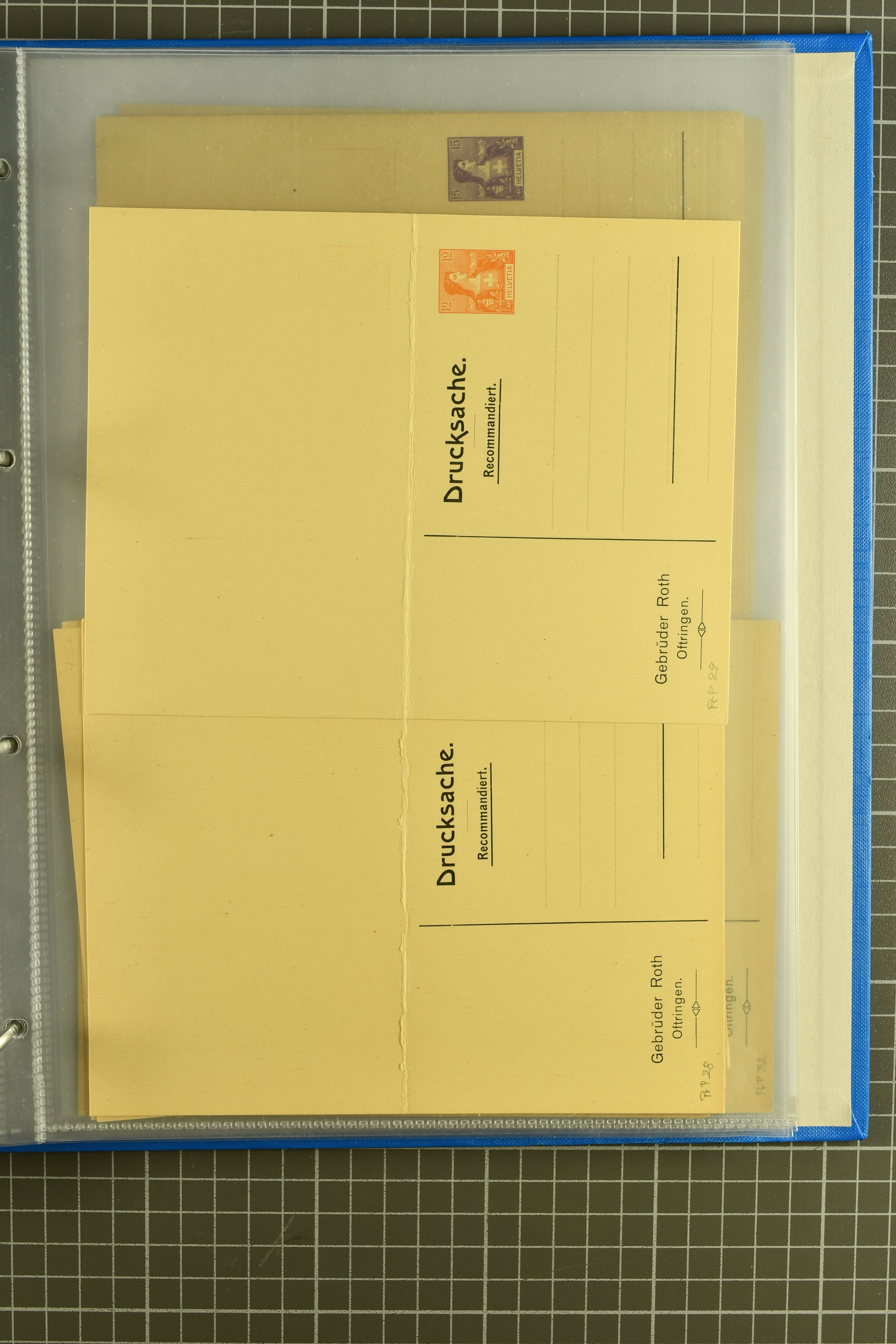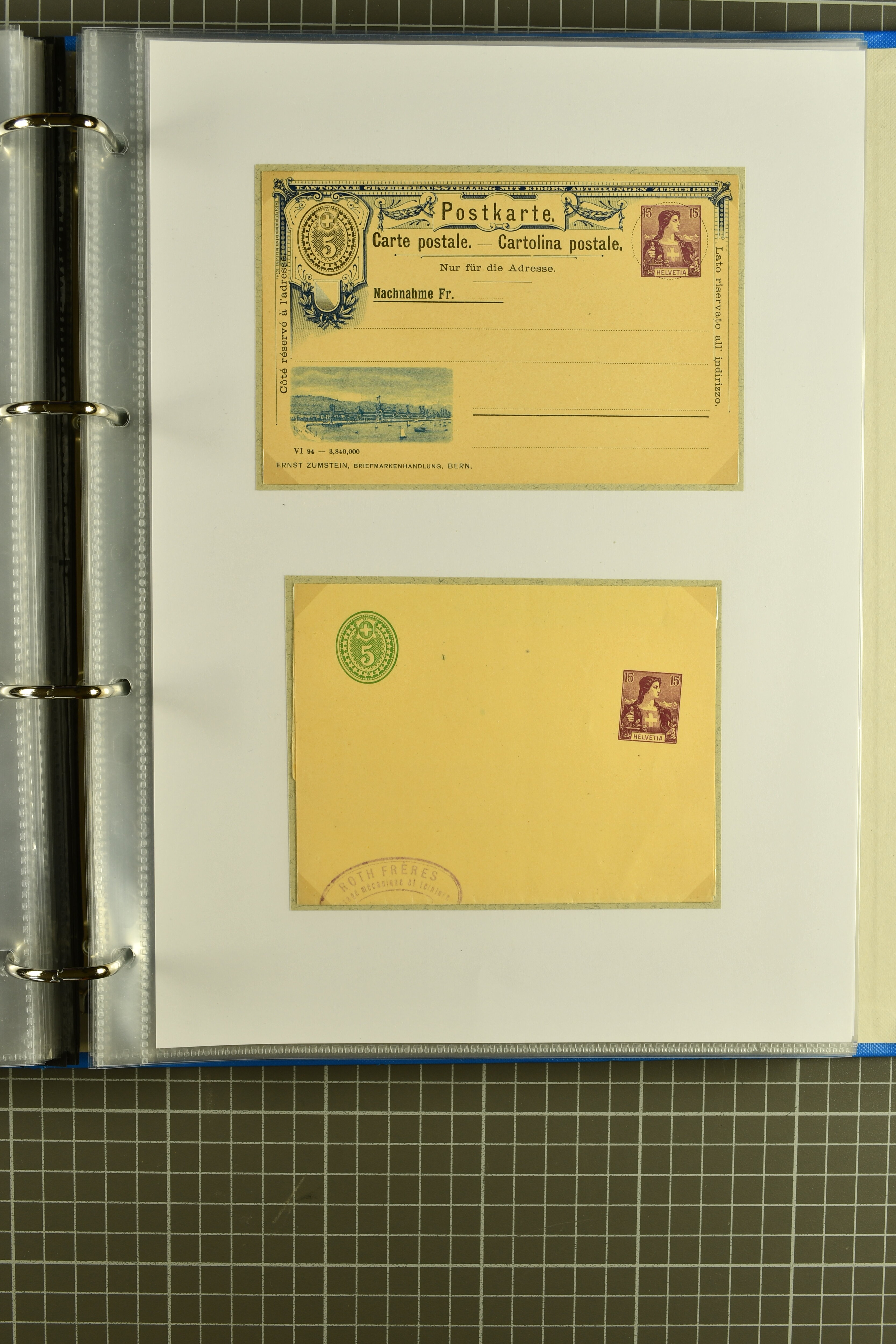 ungebrauchte Ganzsachen mit Ziffer resp. Helvetiabrustbild, auch mit zwei Wertstempeln, Kartenbriefen, Schleifen aus bekannten Quellen wie Roth Oftringen; in drei Alben (Image 1)