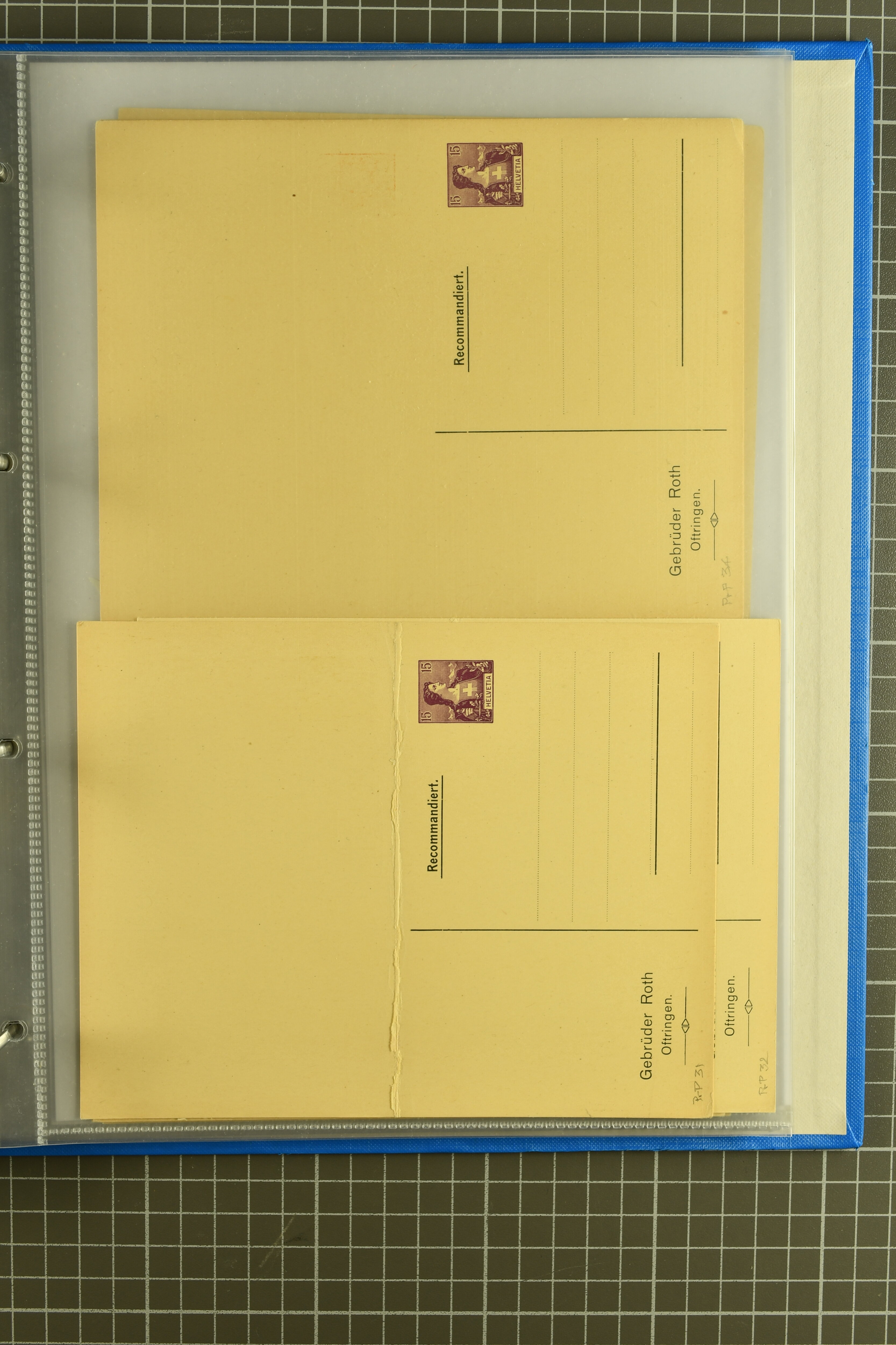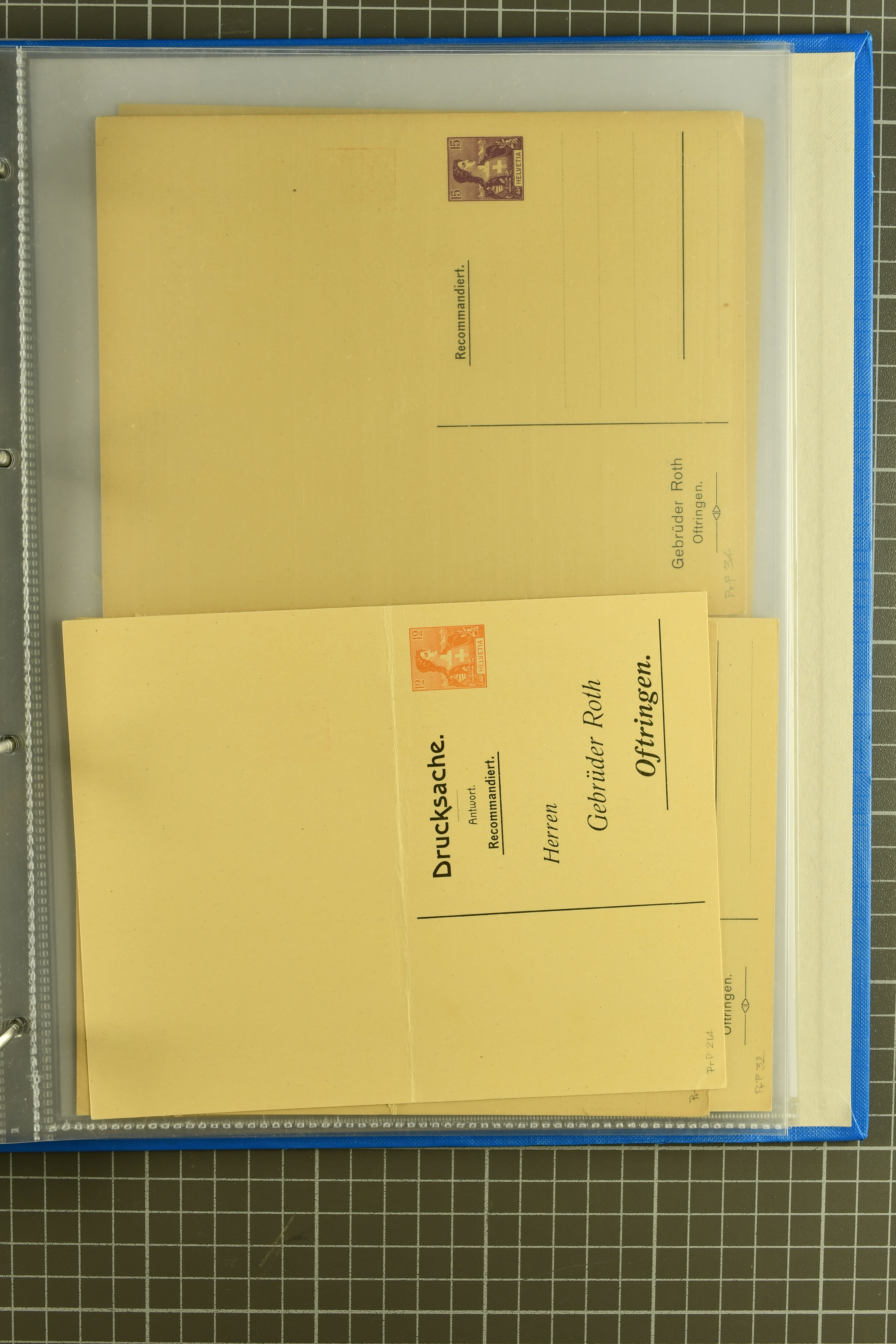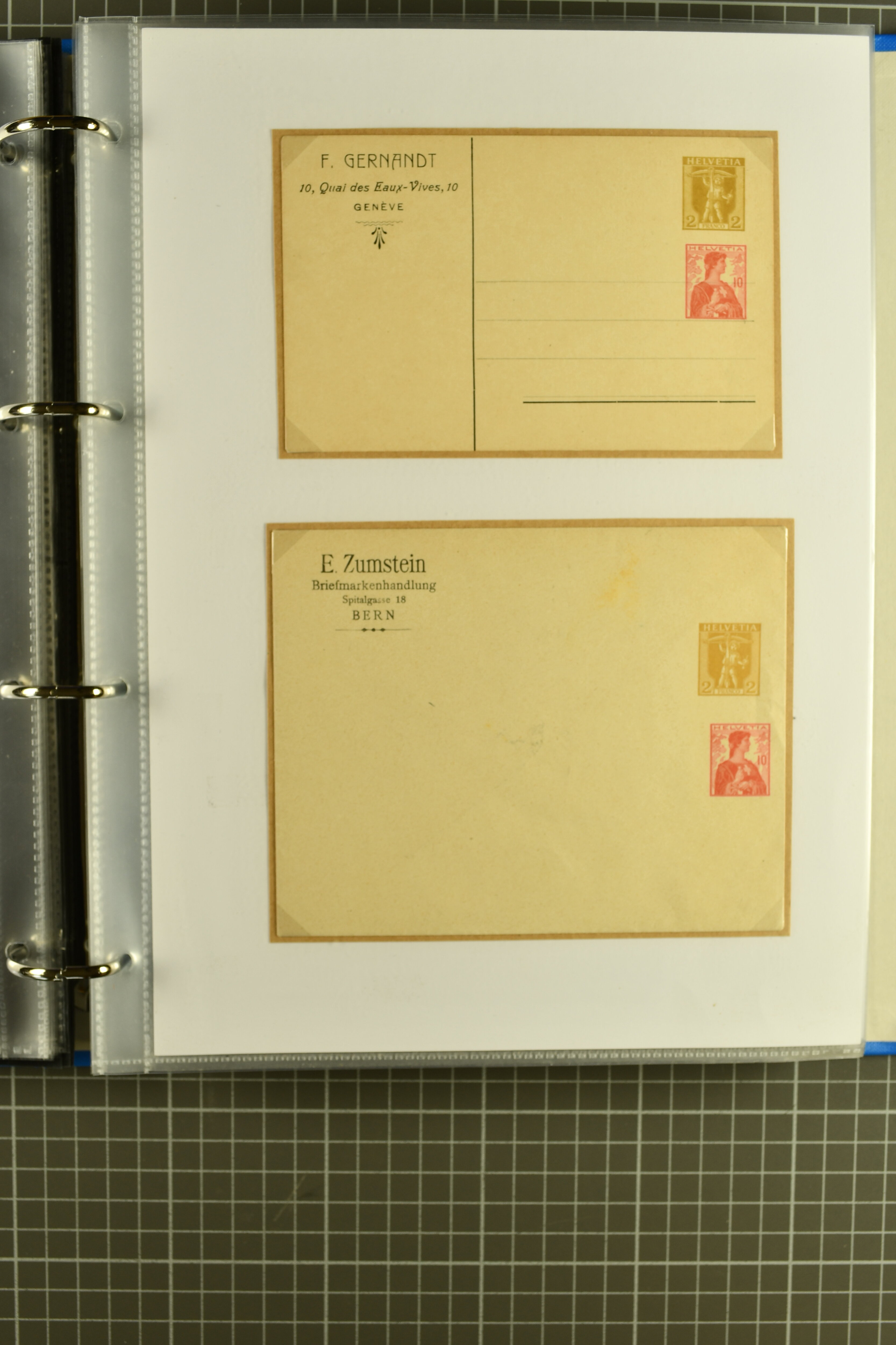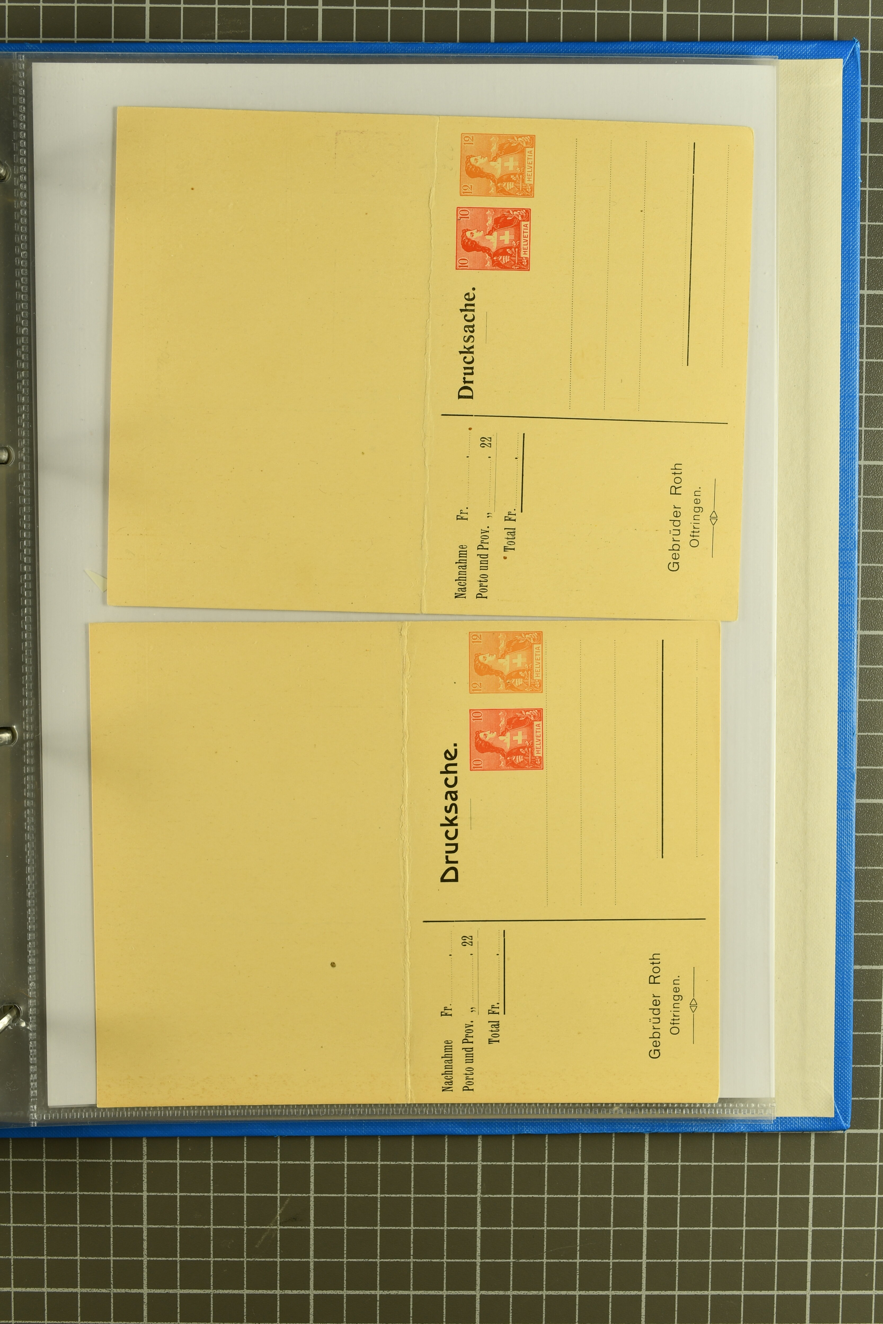 ungebrauchte Ganzsachen mit Ziffer resp. Helvetiabrustbild, auch mit zwei Wertstempeln, Kartenbriefen, Schleifen aus bekannten Quellen wie Roth Oftringen; in drei Alben (Image 1)