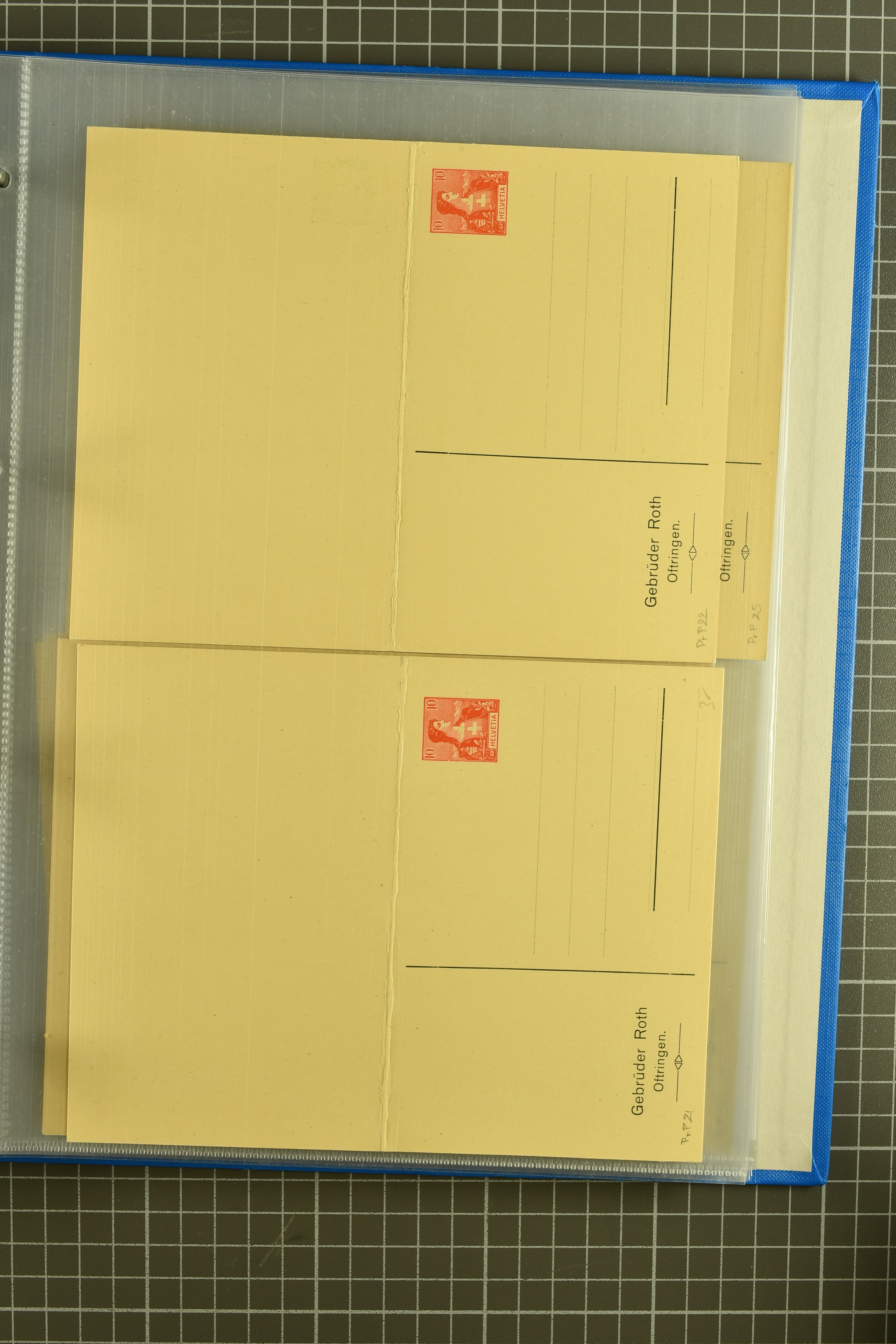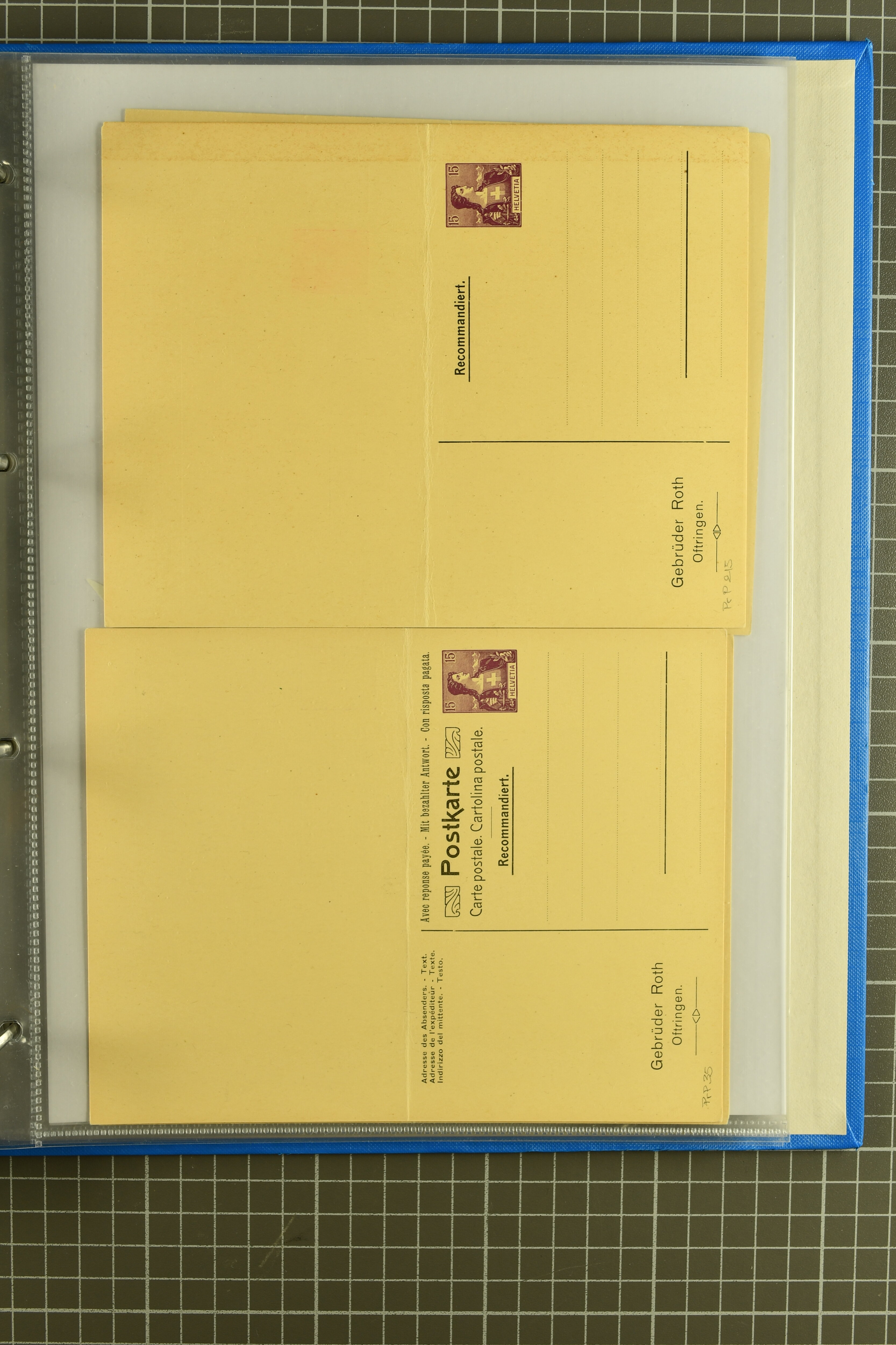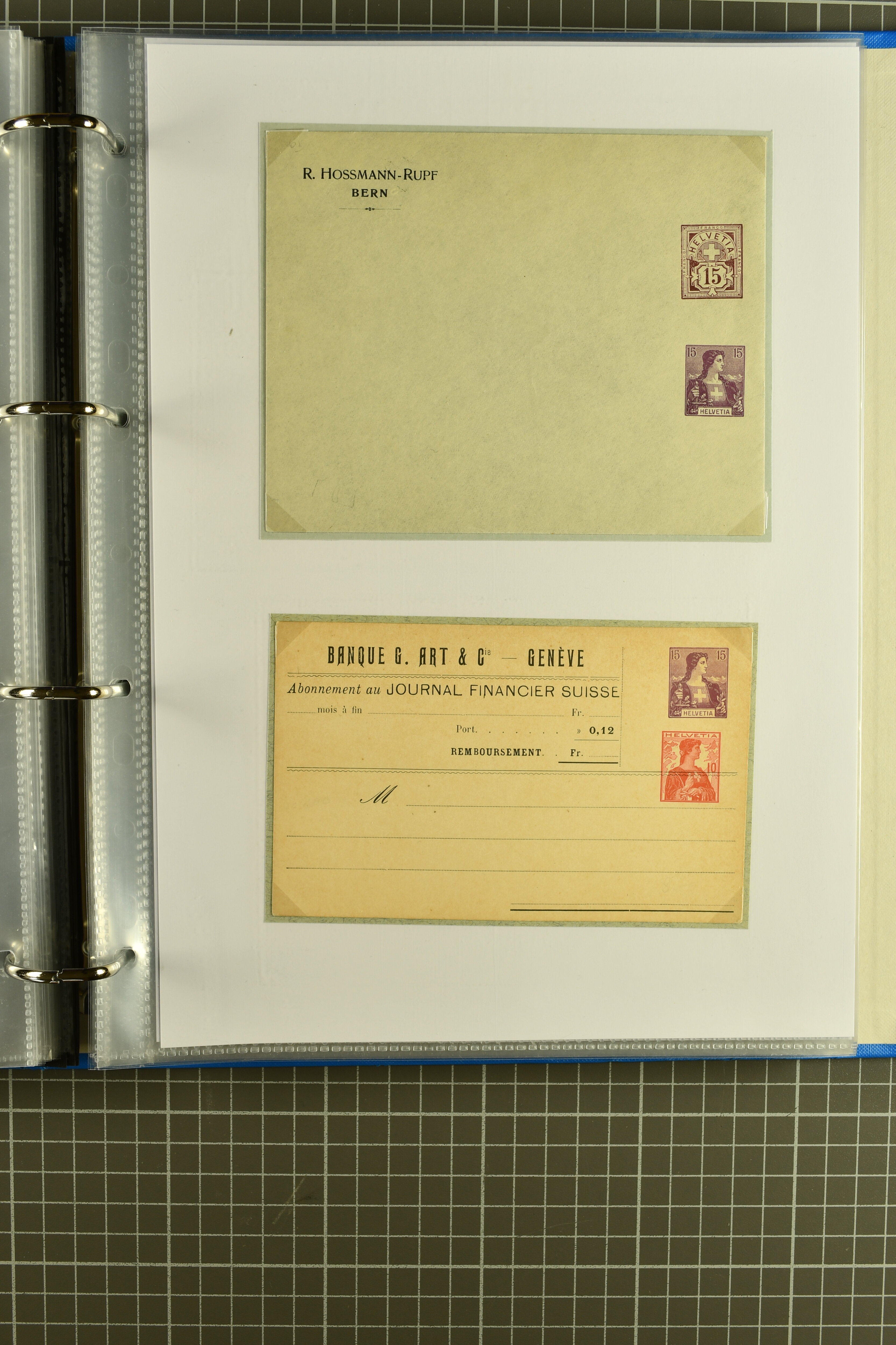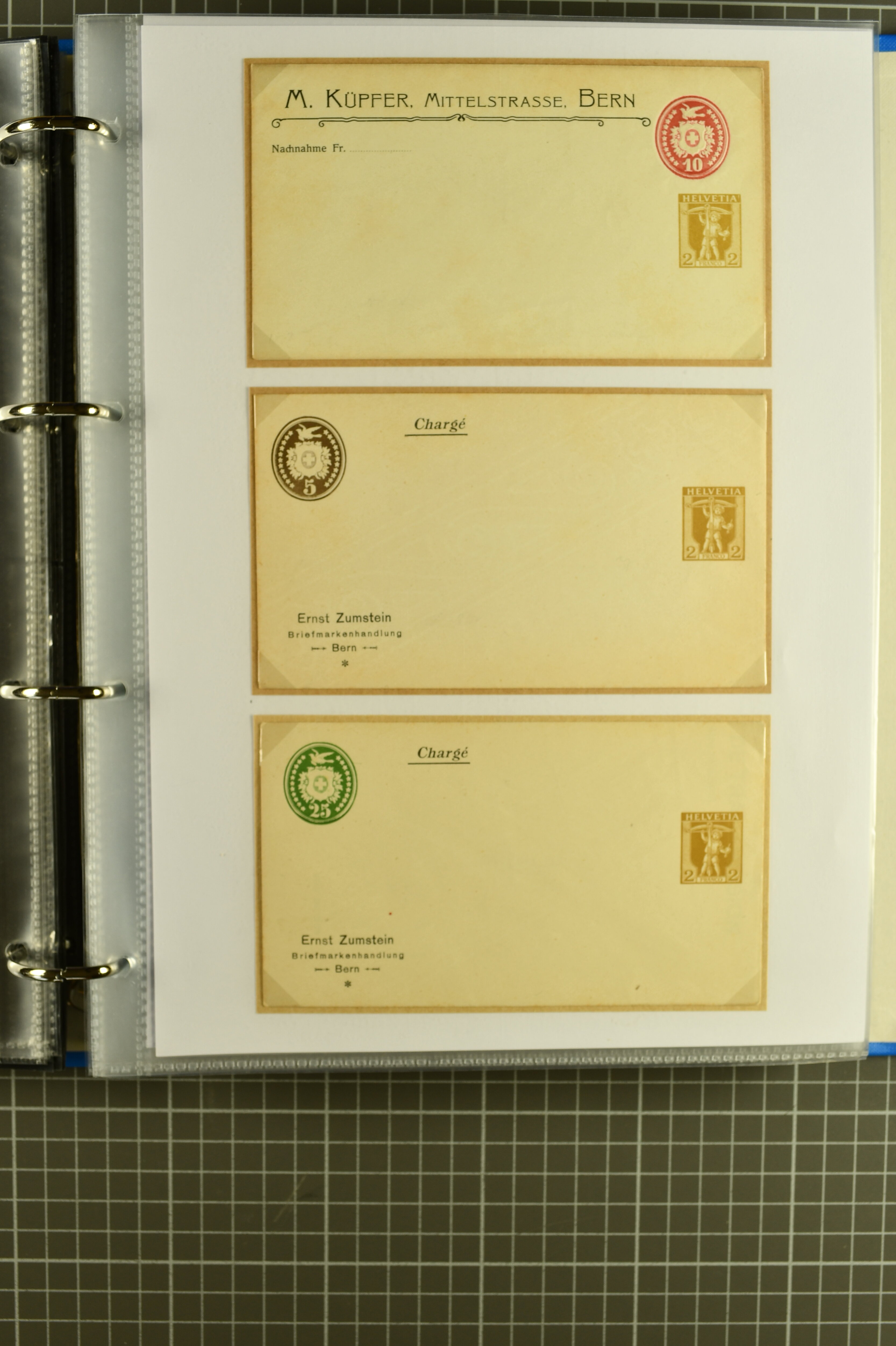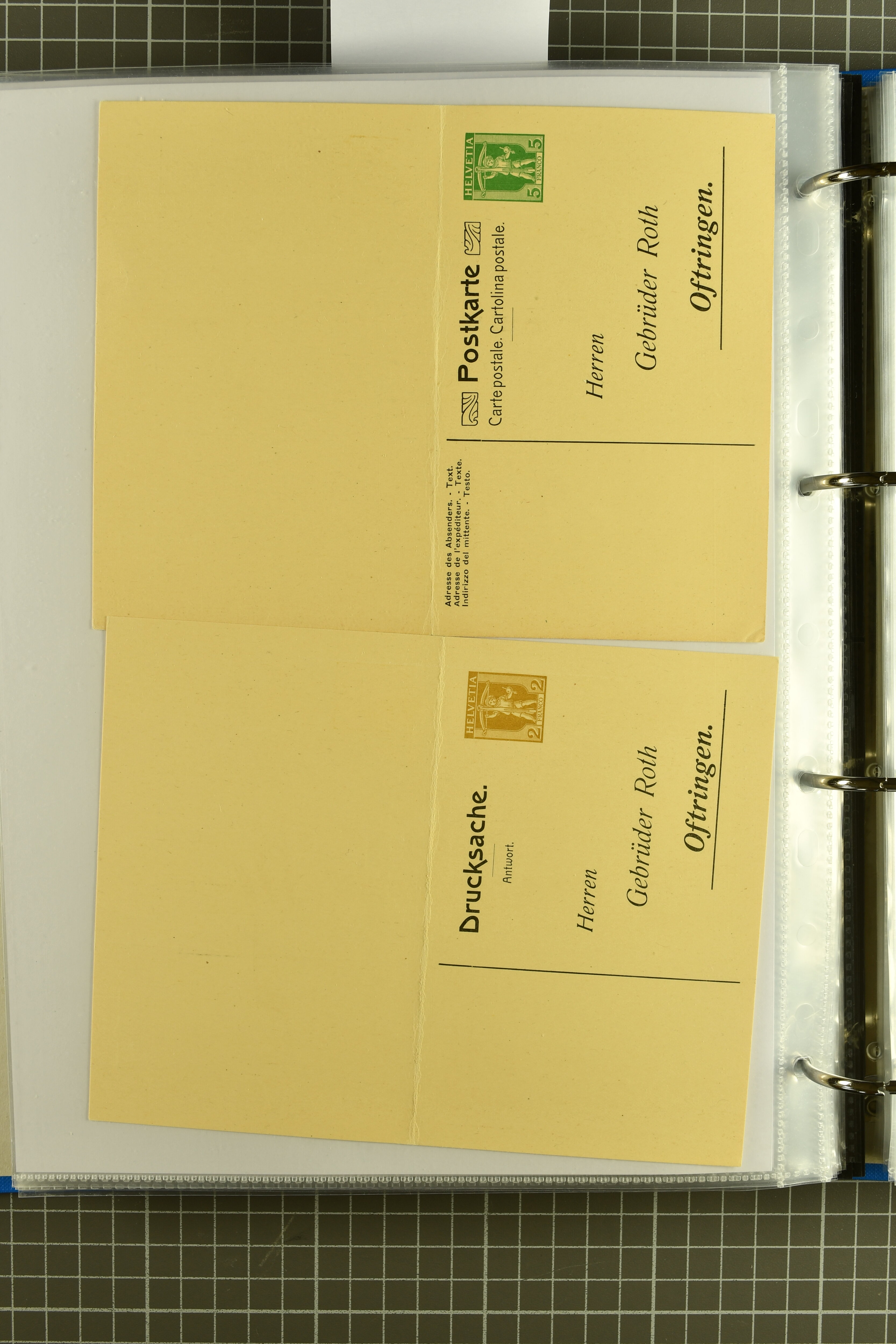 ungebrauchte Ganzsachen mit Ziffer resp. Helvetiabrustbild, auch mit zwei Wertstempeln, Kartenbriefen, Schleifen aus bekannten Quellen wie Roth Oftringen; in drei Alben (Image 1)