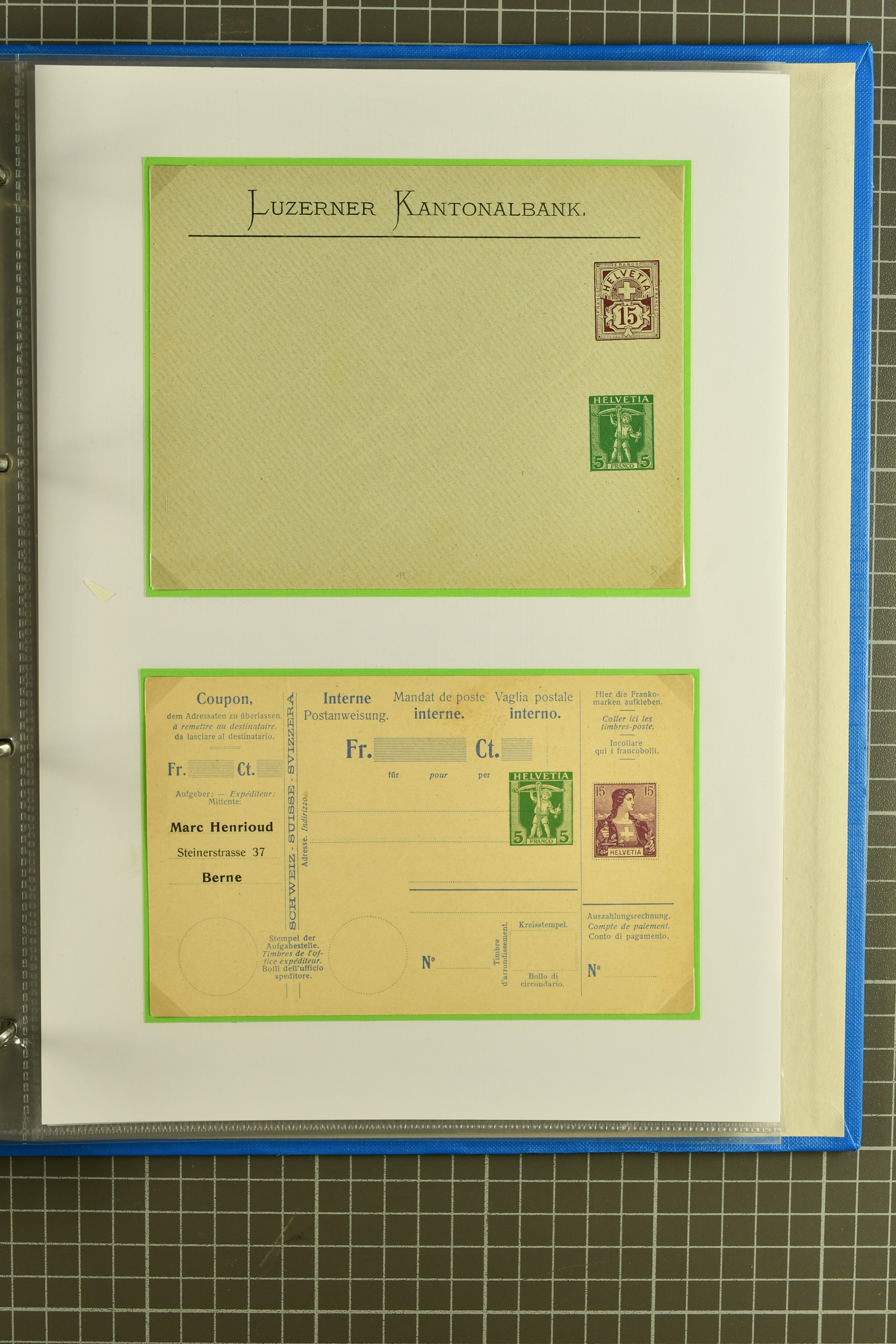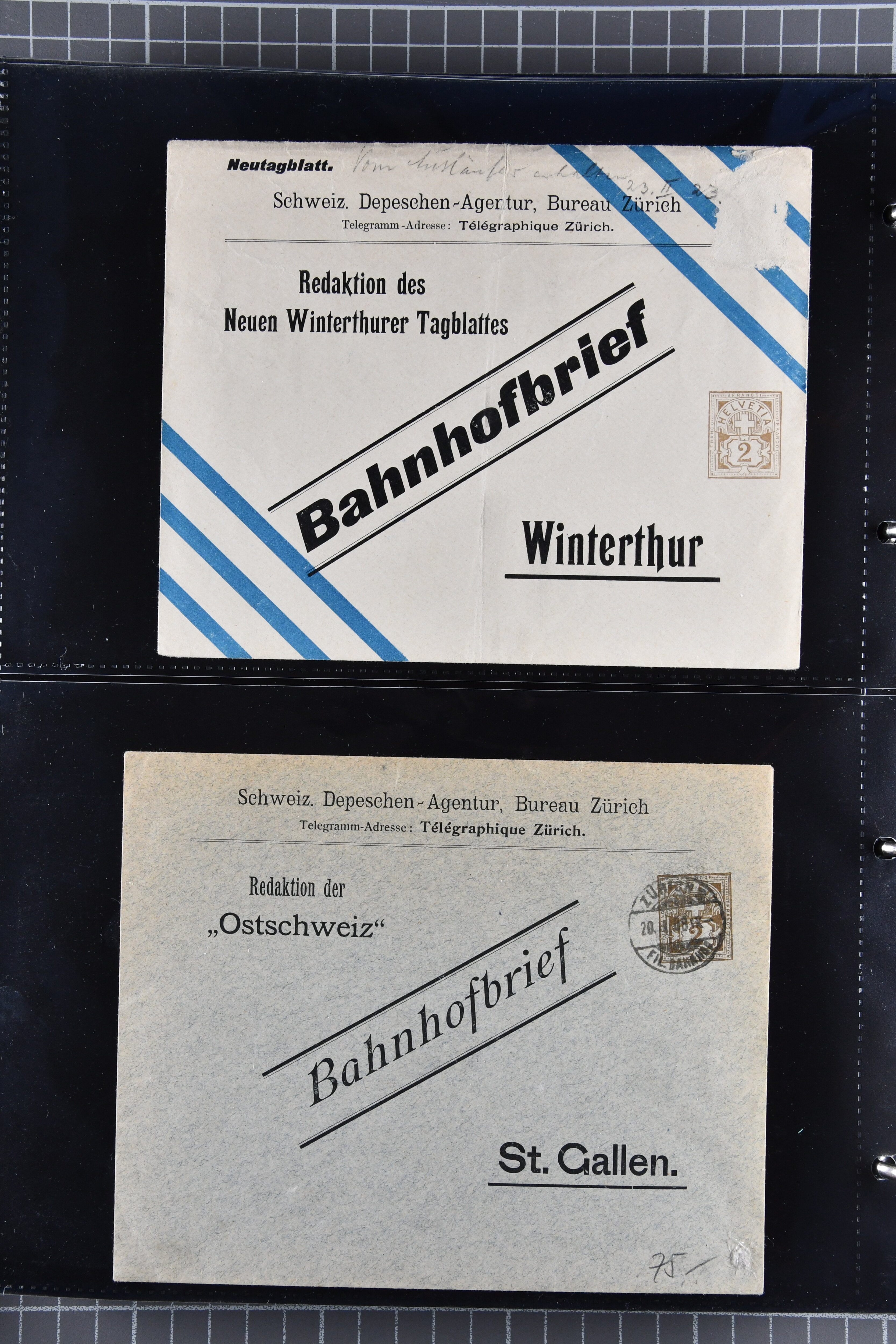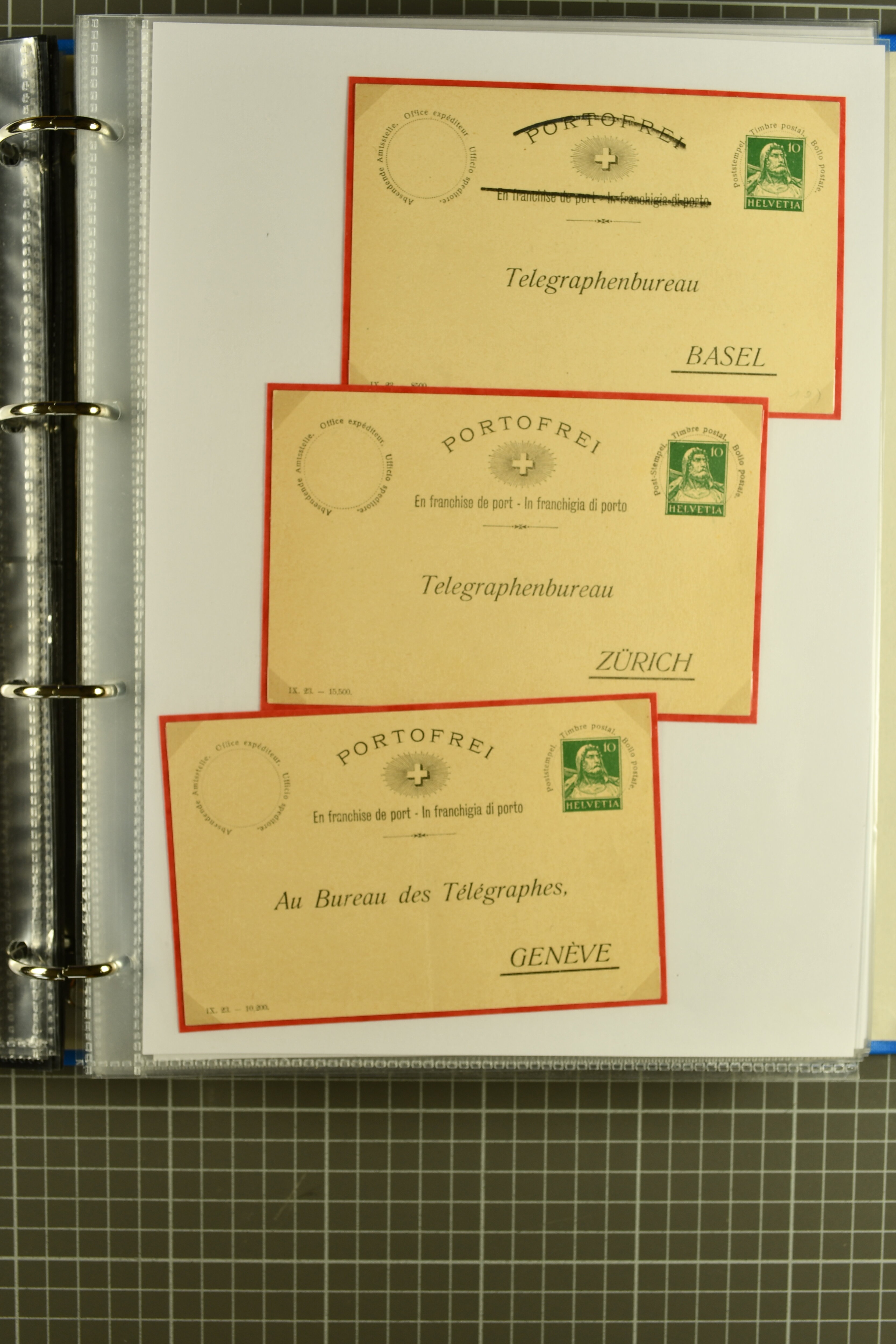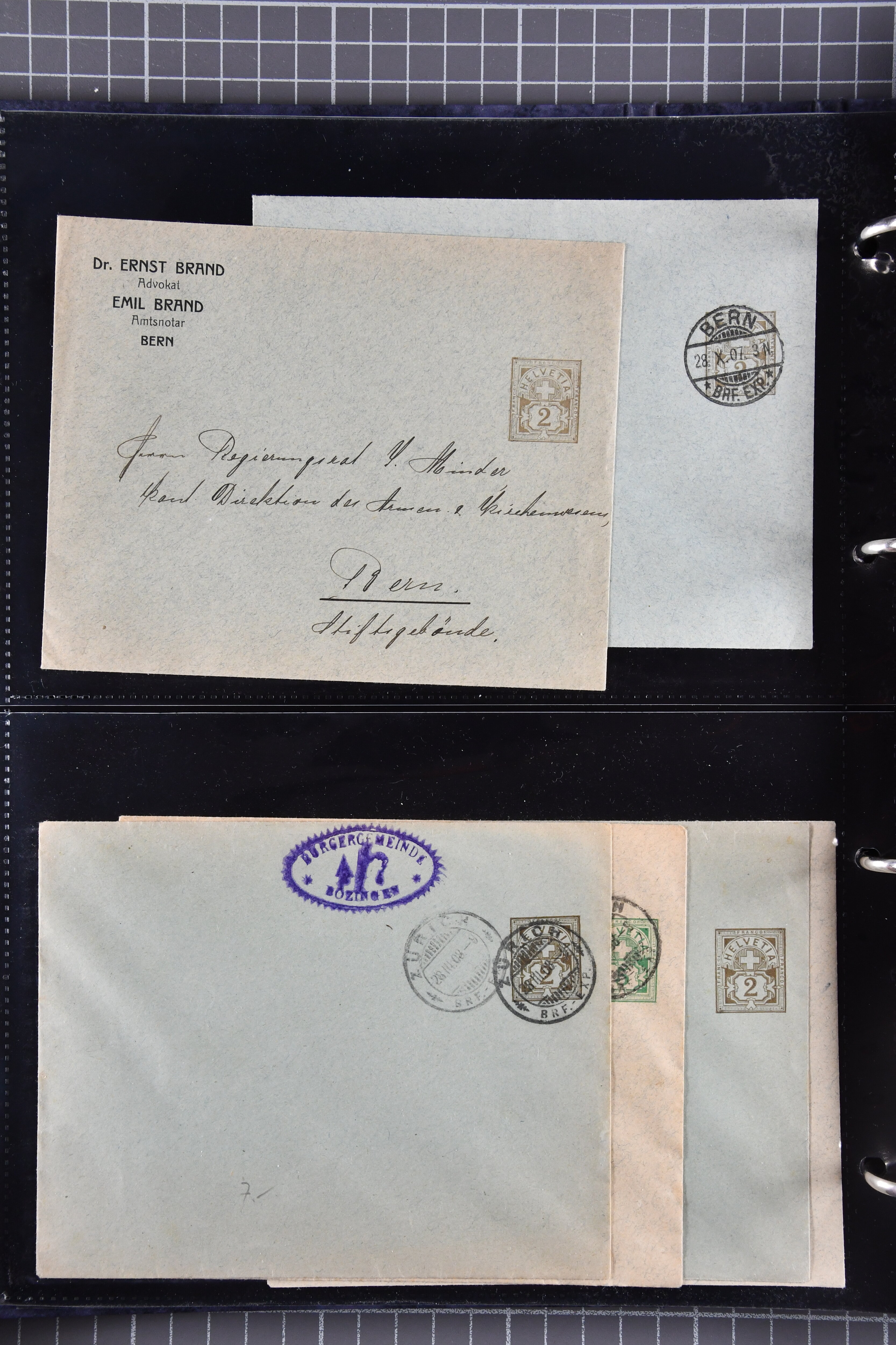ungebrauchte Ganzsachen mit Ziffer resp. Helvetiabrustbild, auch mit zwei Wertstempeln, Kartenbriefen, Schleifen aus bekannten Quellen wie Roth Oftringen; in drei Alben (Image 1)
