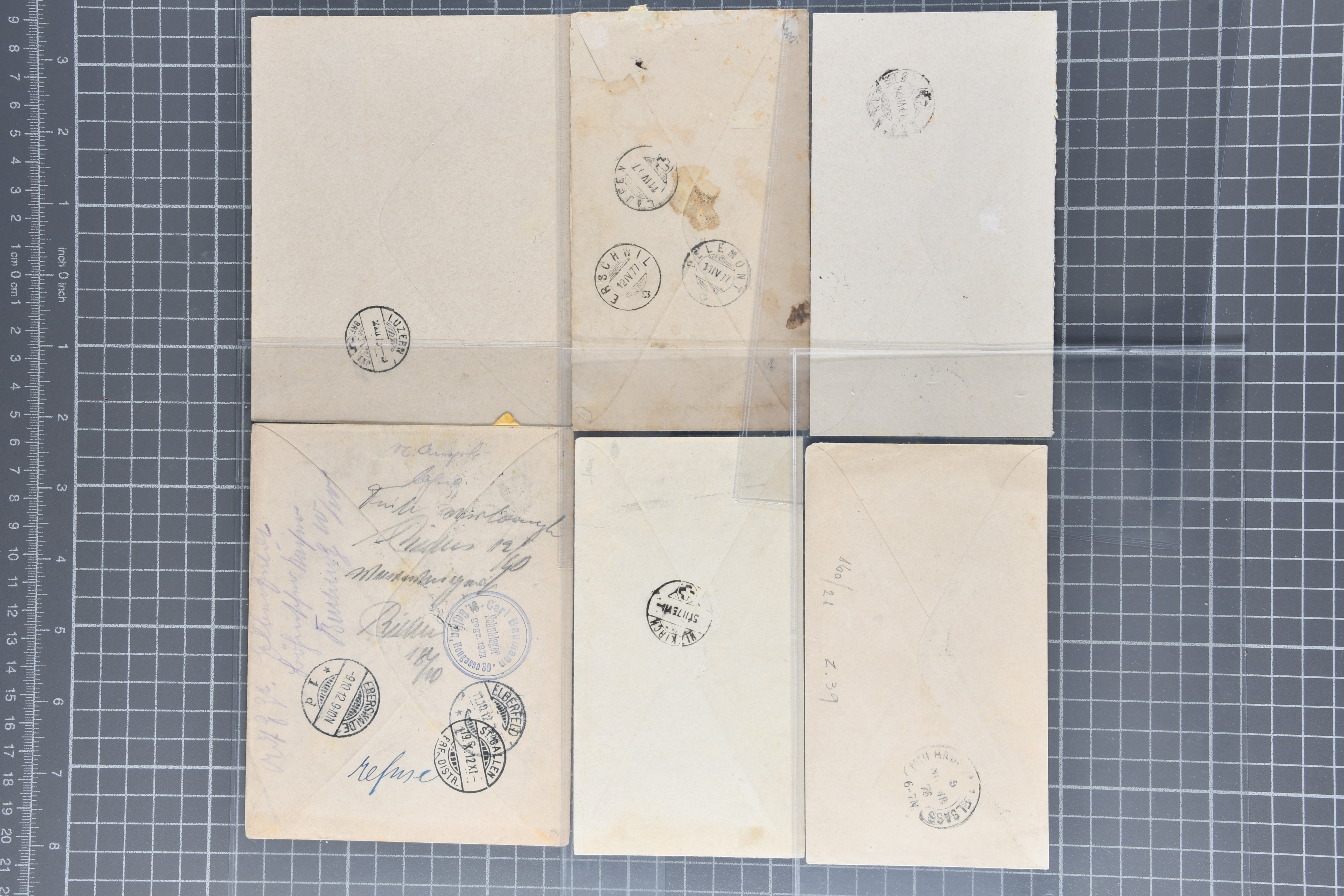 1868/1907: Lot 24 versch. Tüblibriefe von 5 Rp. bis 25 Rp, beide Formate, meist mit Zusatzfrankaturen und interessanten Abstempelungen und Frankaturkombinationen, viele ins Ausland gelaufen, in guter Erhaltung aus