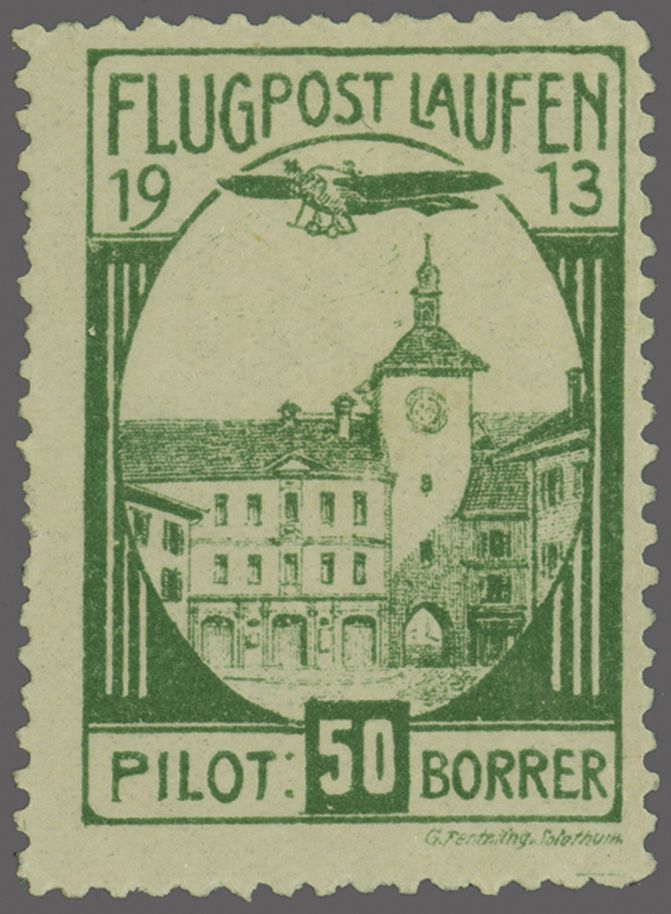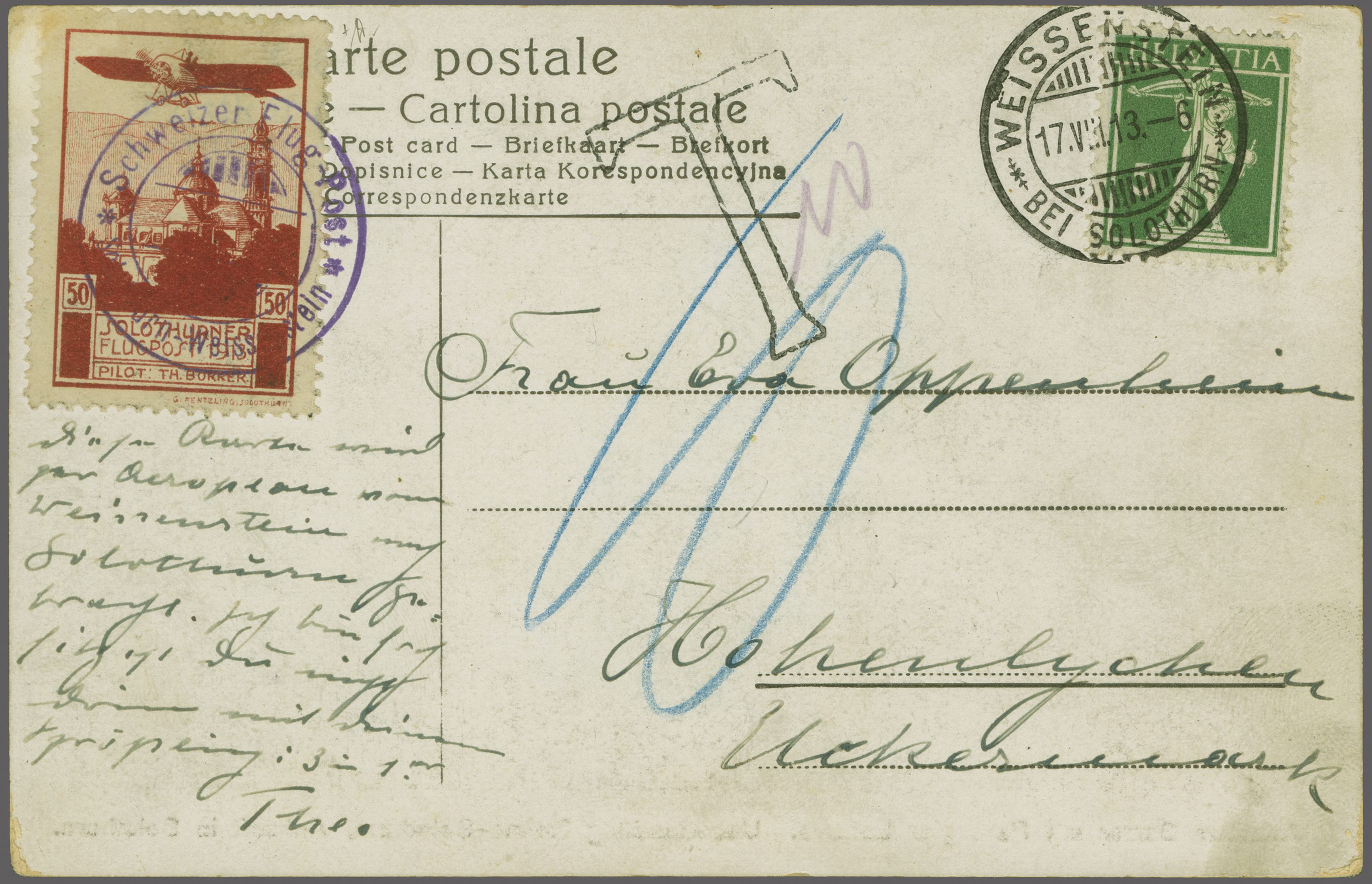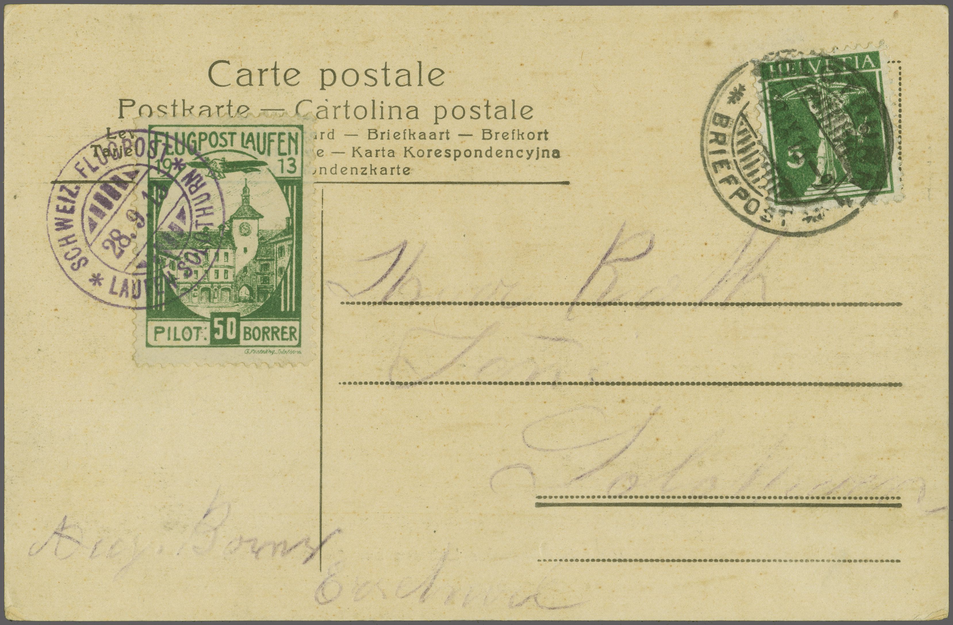 FLUGPOST LAUFEN-SOLOTHURN 28.9.13" und AnkStp. "SOLOTHURN 1 BRIEFPOST 28.IX.13-9" SLH = CHF 3'200 (Image 1)