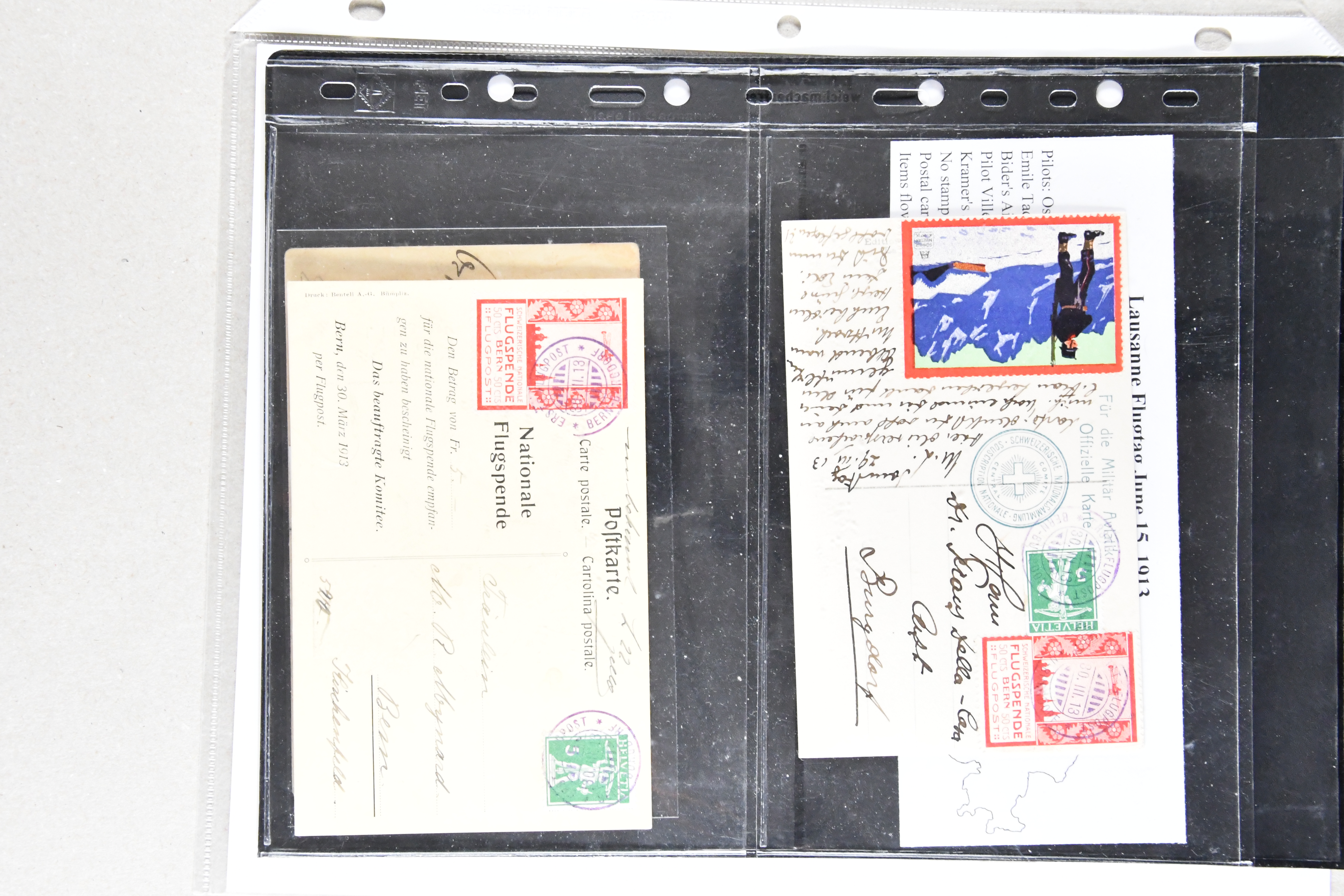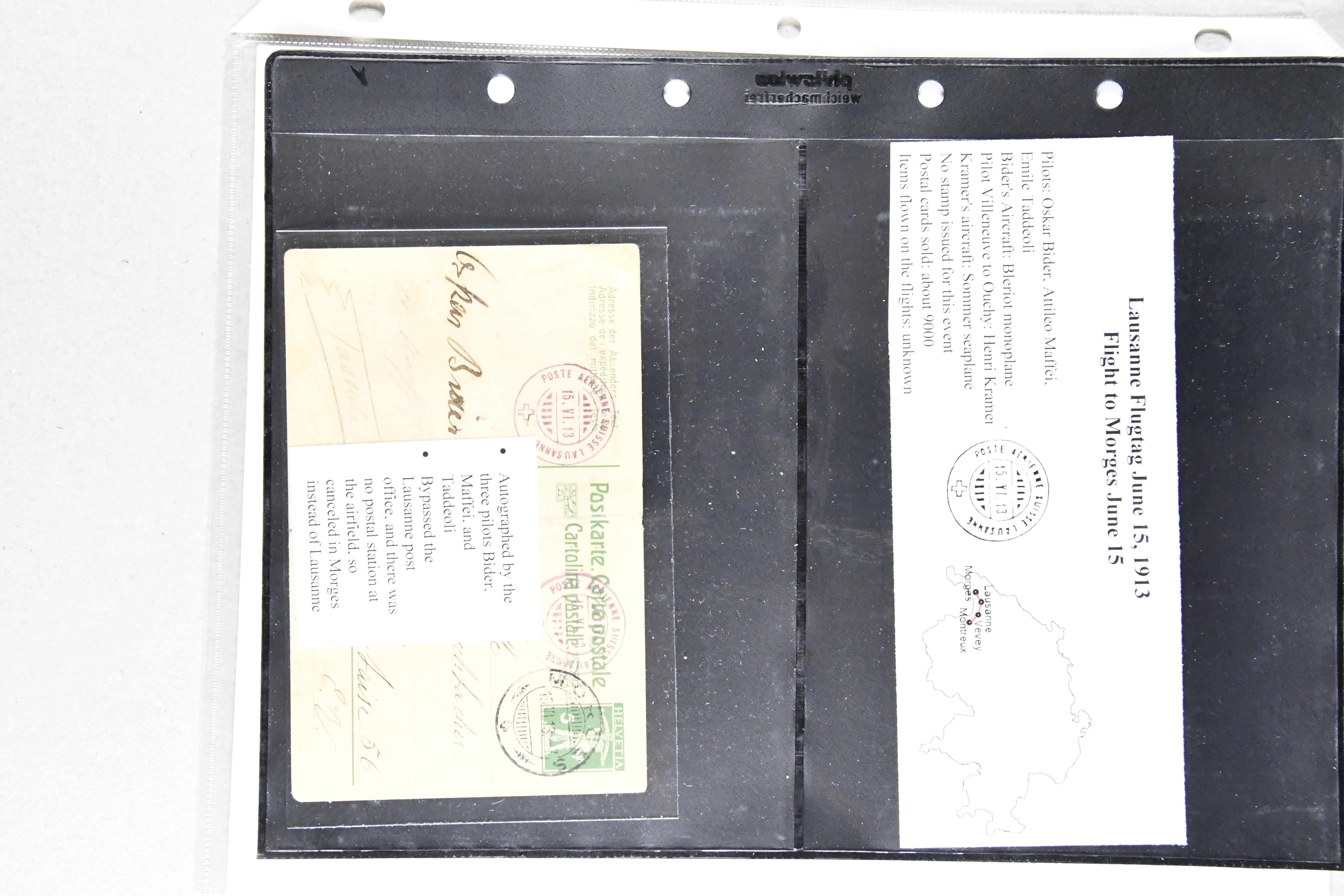 1913: Lot fünf Vorläufer Belege, dabei Flugtag Bern mit Brief und zwei Karten sowie Flugtag Lausanne (15. Juni) mit zwei 5 Rp. GS-Karten, dabei Karte nach Morges mit den Unterschriften der Flieger Bider, Maffei
