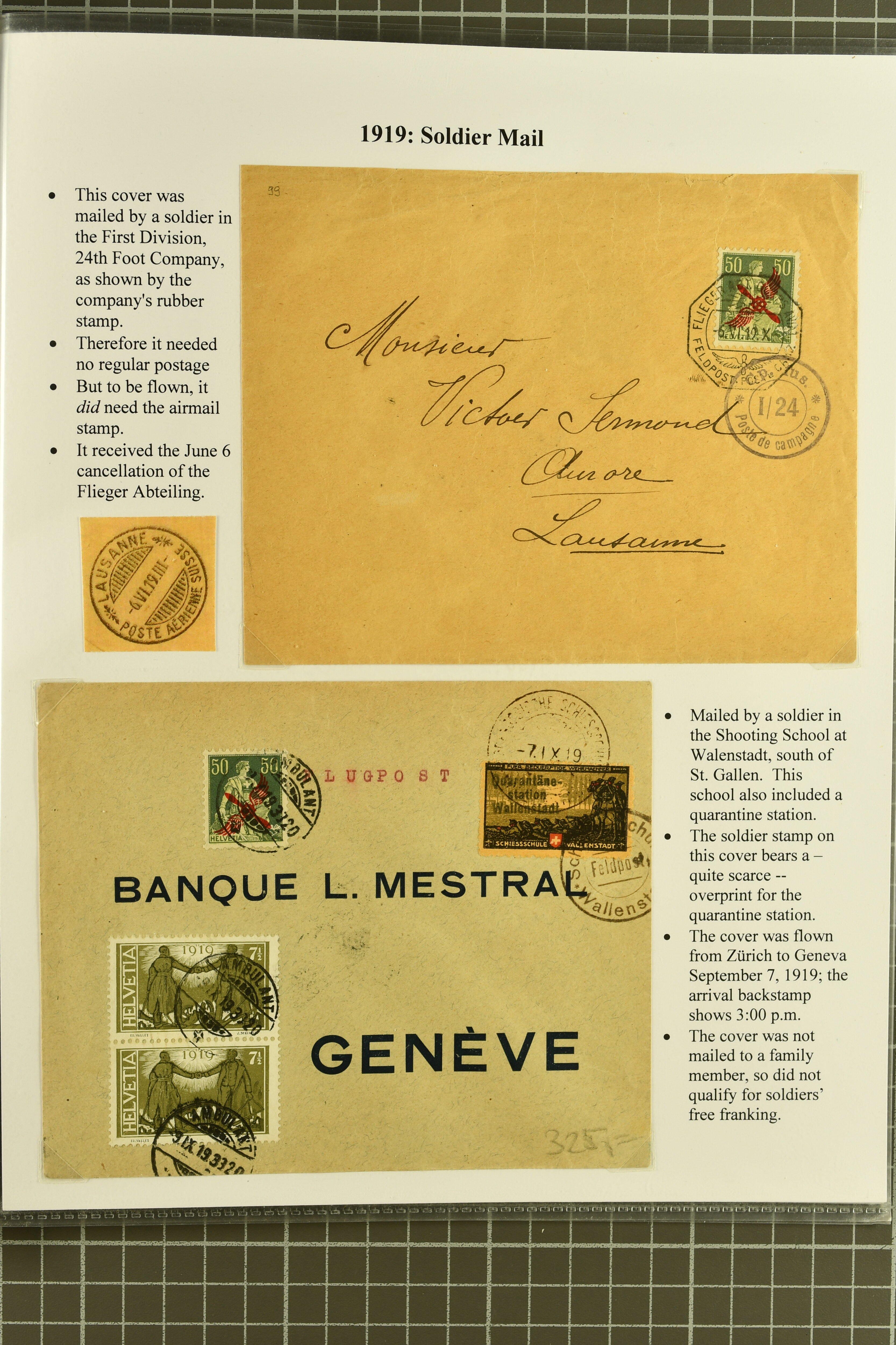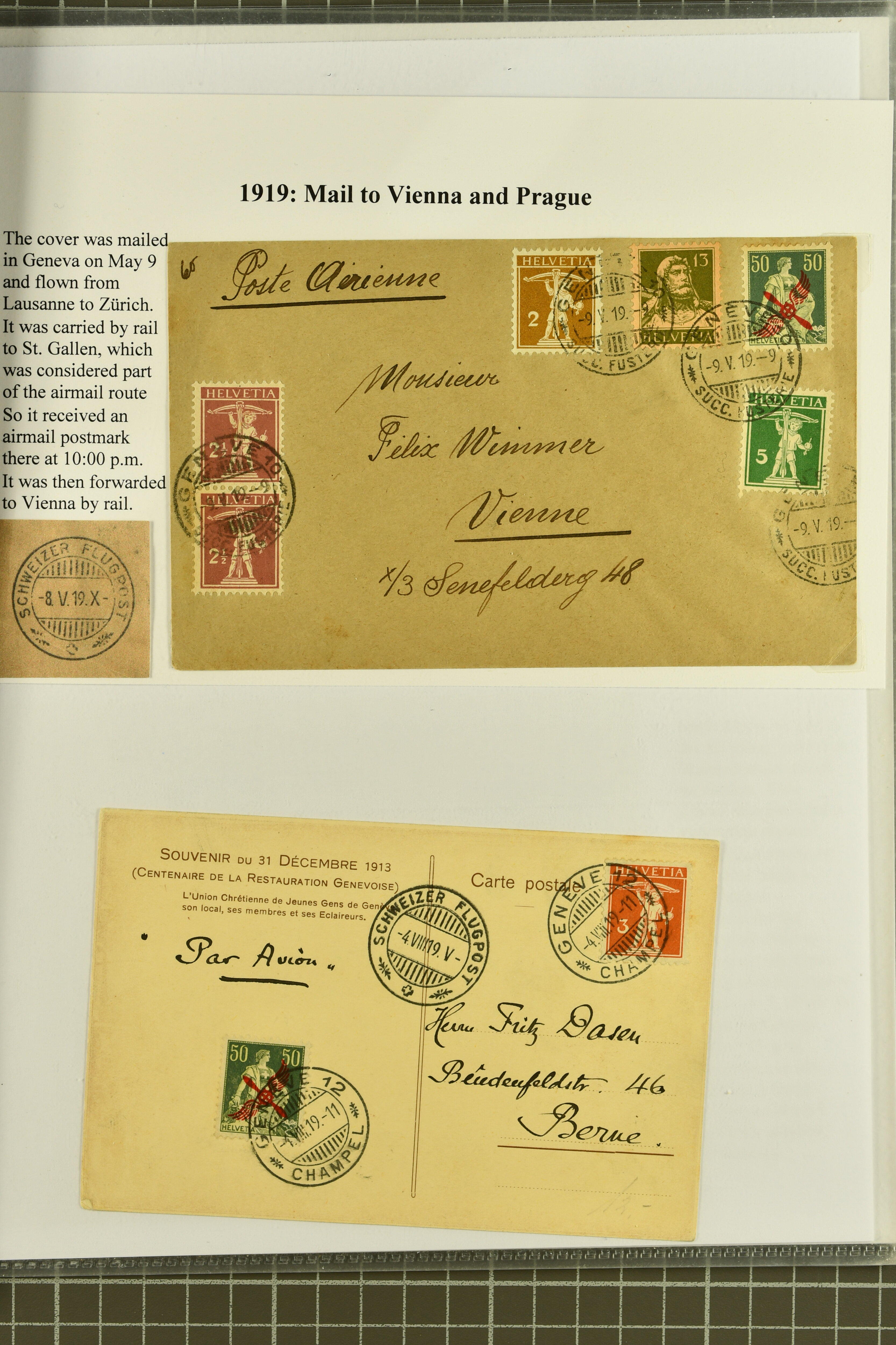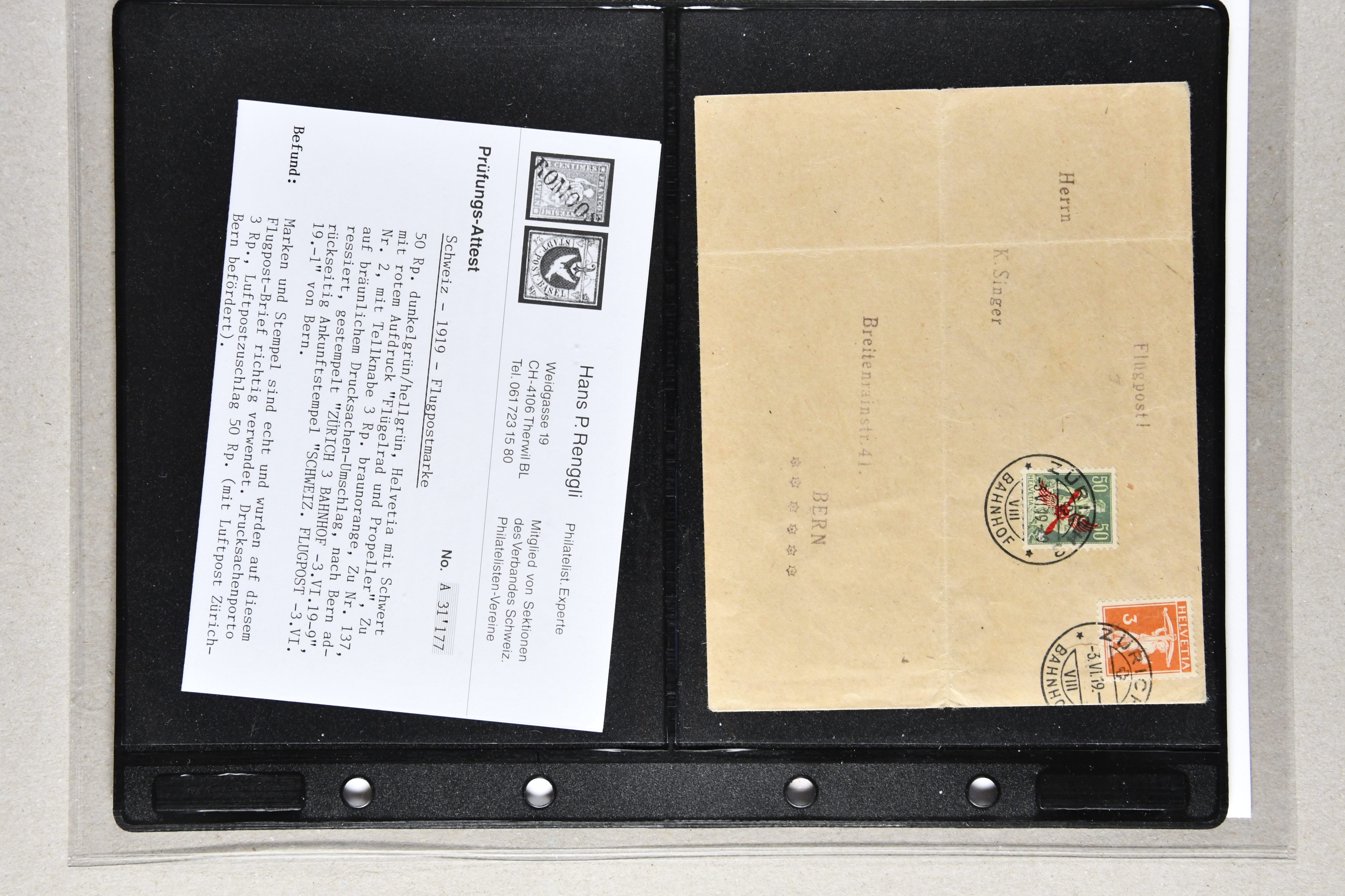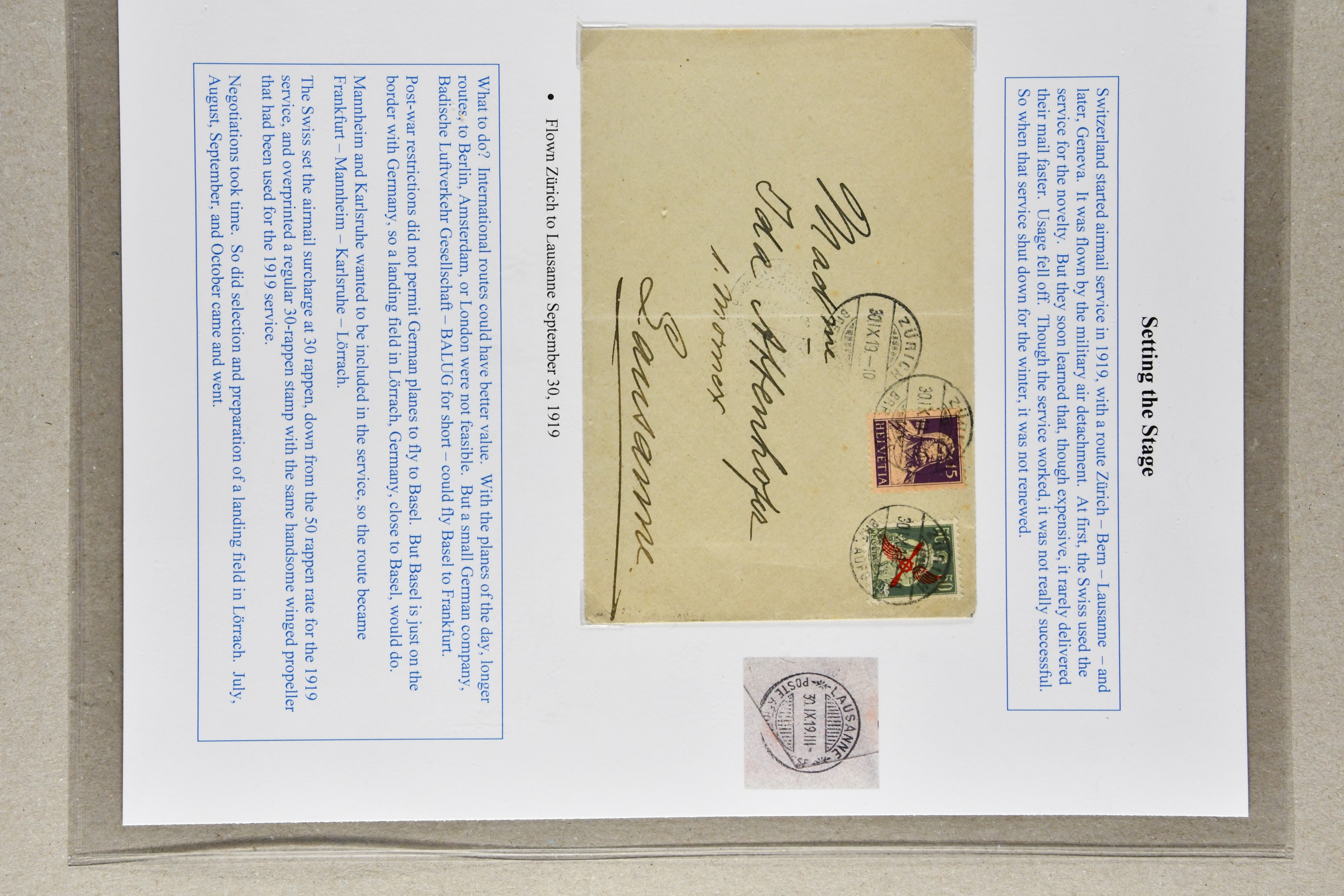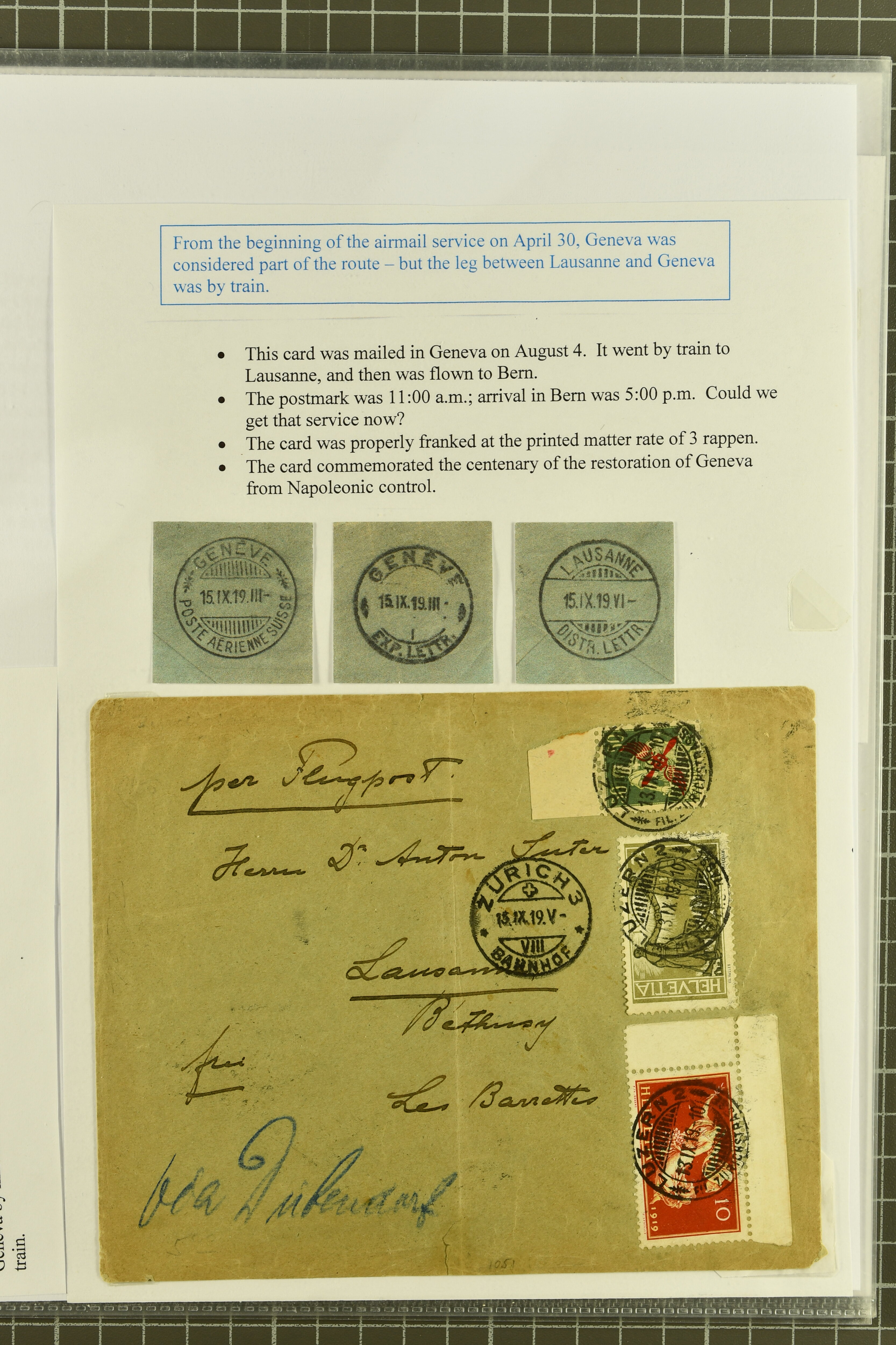 Flugppst Zürich-Bern-Lausanne-Genf 1919 (Mai-Sept.): Lot mit sechs besonderen Belegen, dabei 'Irrläufer' von "Zürich 15.IX.19" via "Genève Poste Aérienne 15.IX.19.III" nach "Lausanne 15.IX.19 VI", Karte zum