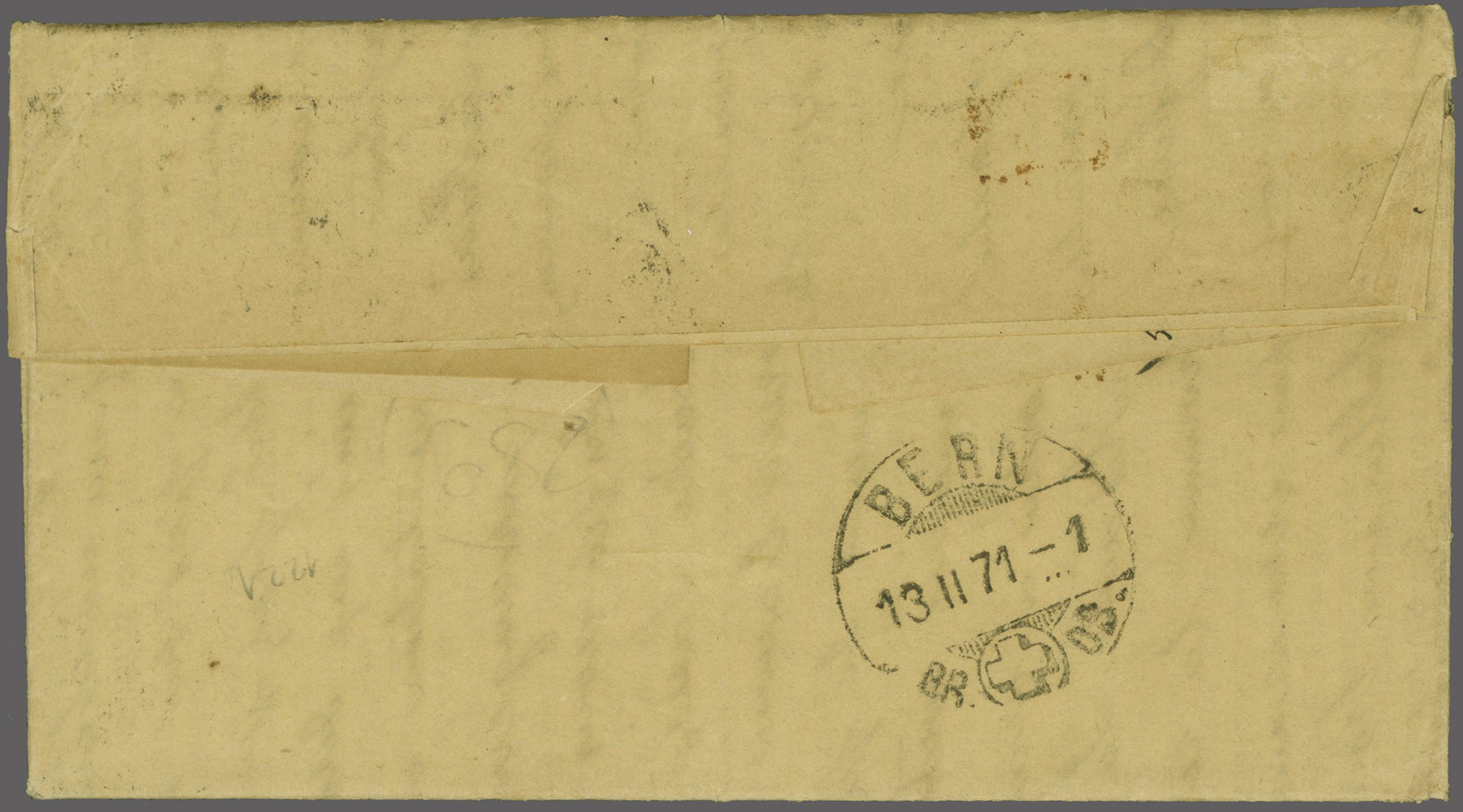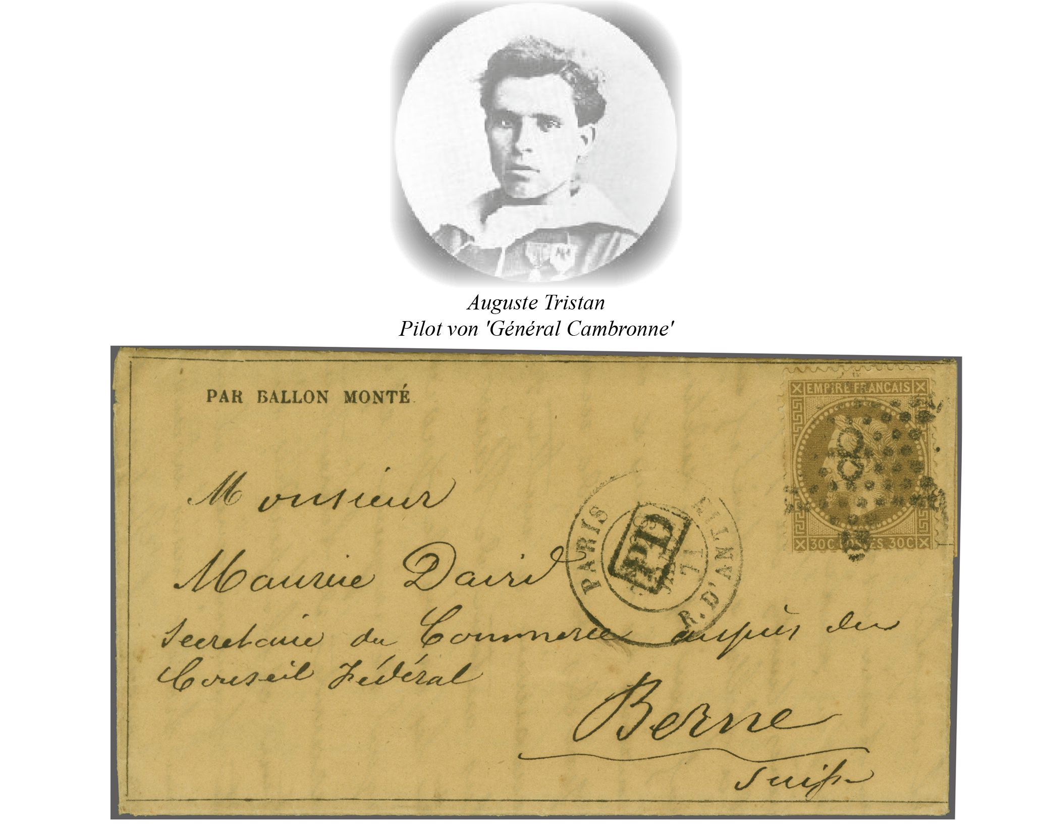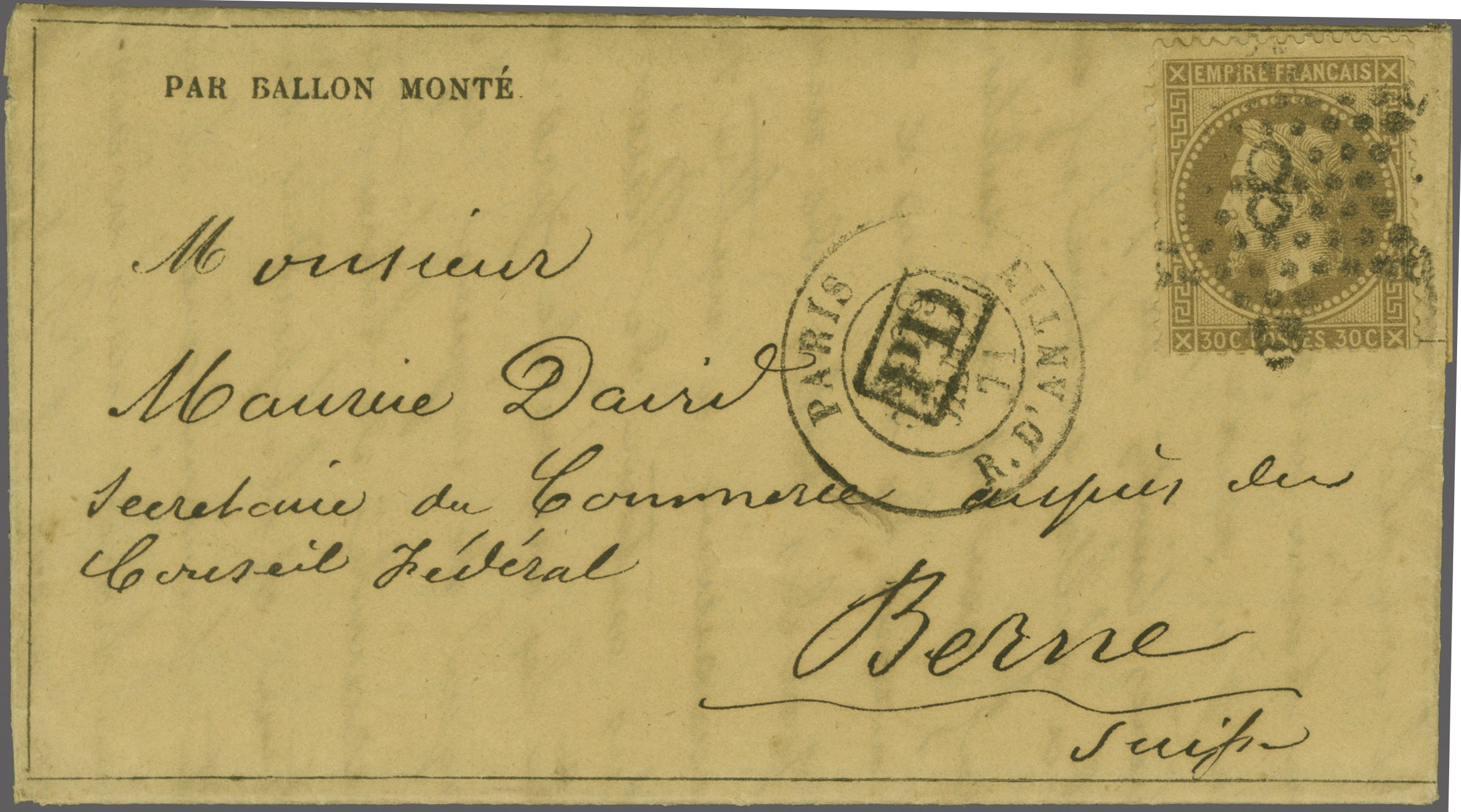 Bern, rücks. mit sauberem AStp. vom 13. Februar. Sehr seltener Beleg vom letzten Ballon aus Paris in die Schweiz Muggler Nr. 67 = CHF 2'900, Maury 67 (Image