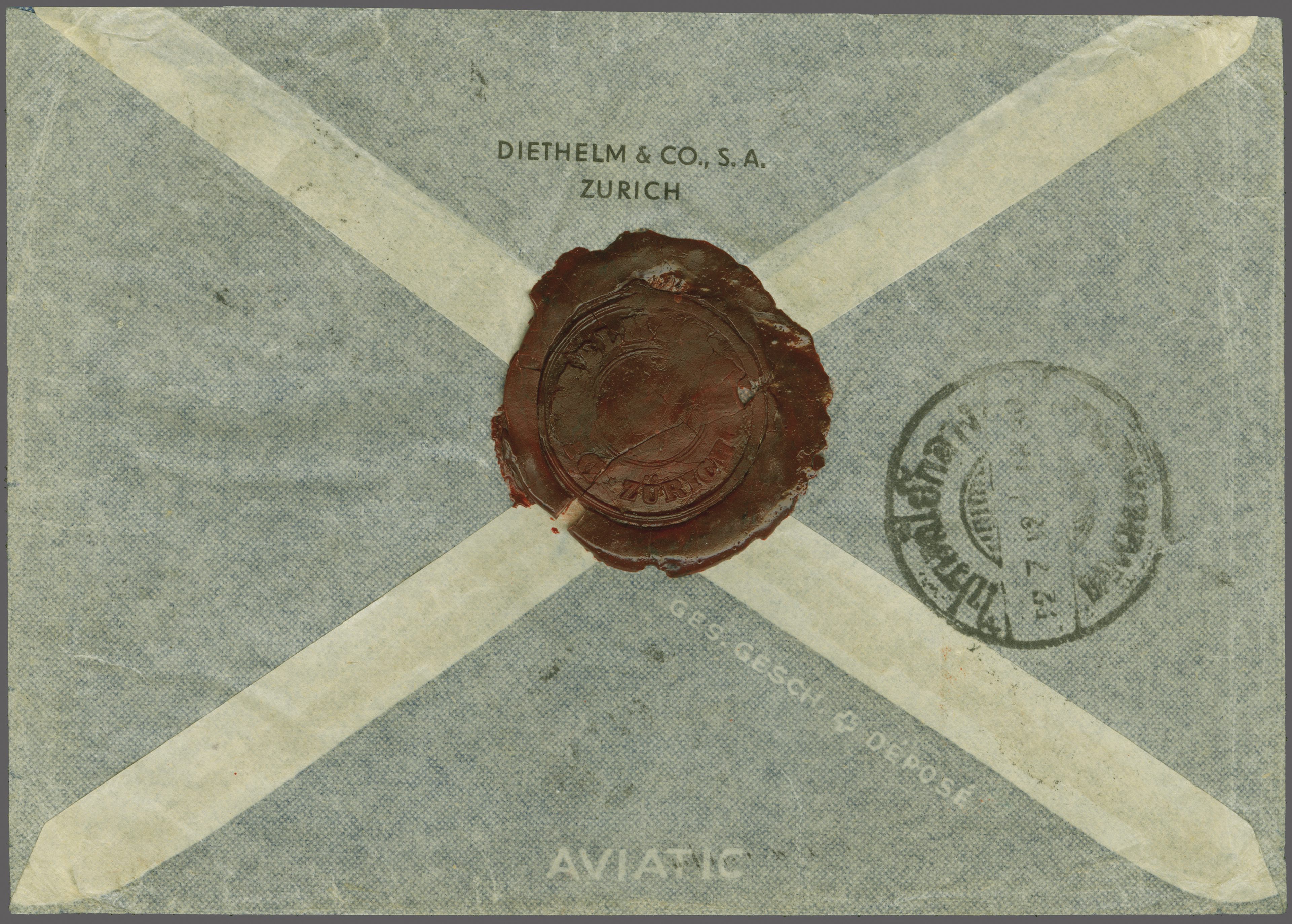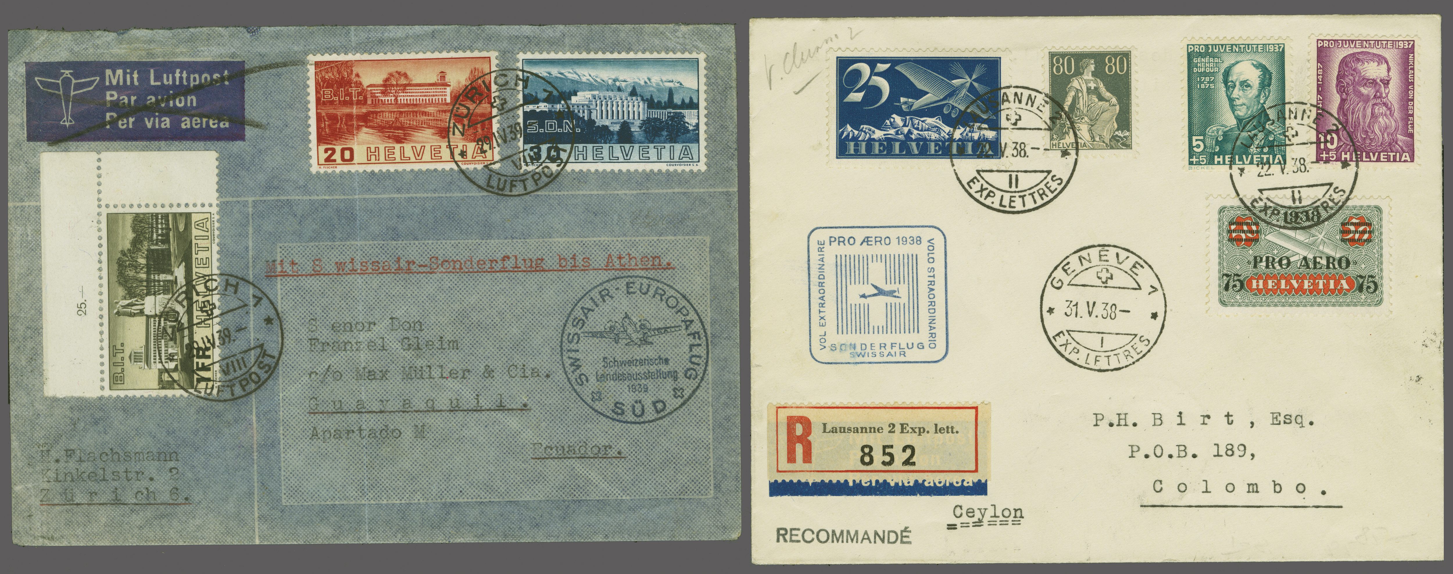 1938/39: 2 Sonderflüge Pro Aero 38 'Lausanne-Genf' bzw. 'Swissair-Europaflug bis Athen', je weitergeleitet nach COLOMBO (Ceylon) bzw. nach GUAYAQUIL in Ecquador. Spezielle Weiterleitungsflüge (Image 1)