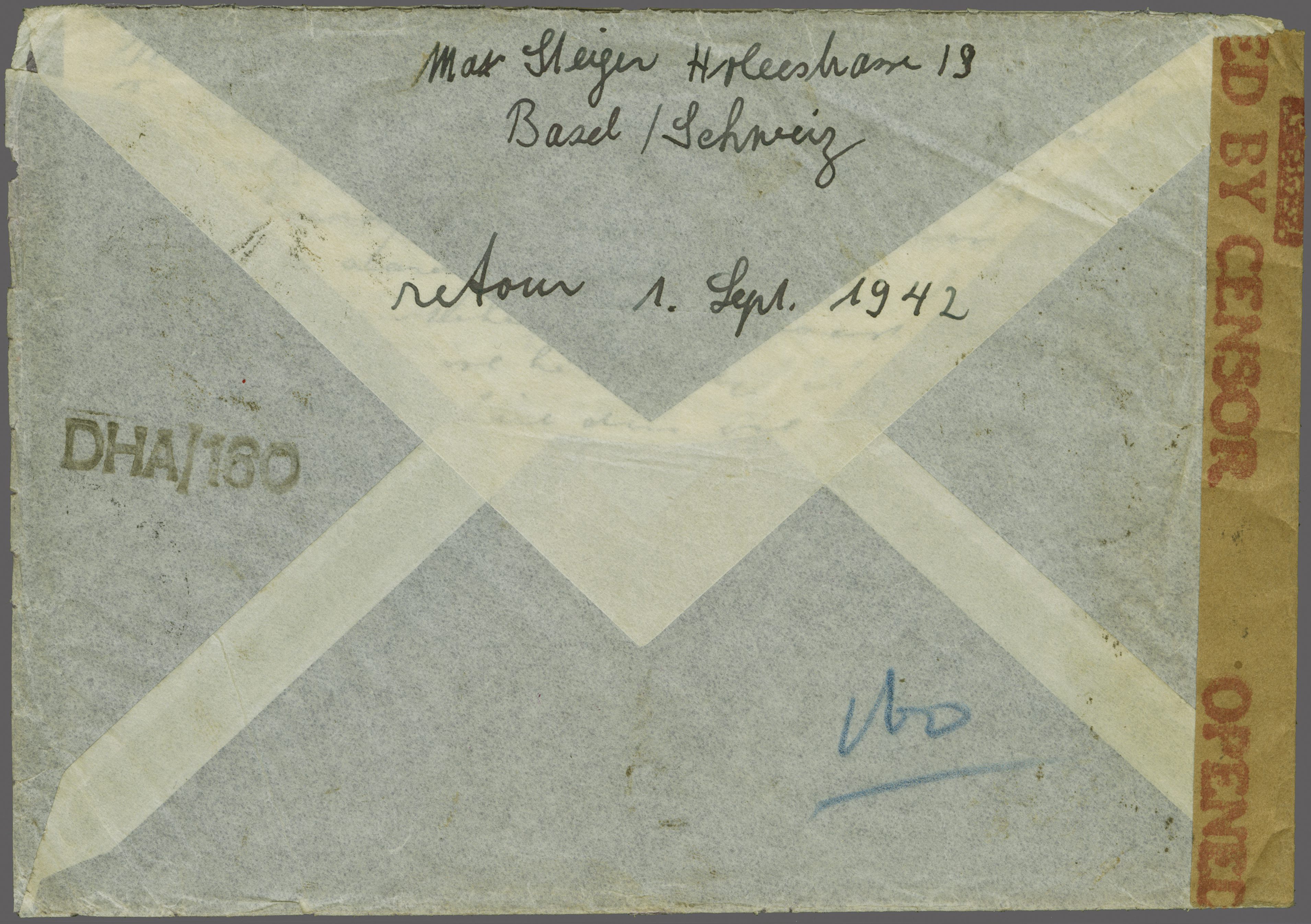 Java kein Weiterkommen und der Brief wurde darauf retourniert, mit rücks. Absendervermerk, bezw. Empfängernotiz 'retour 1. Sept. 1942' (Image 1)