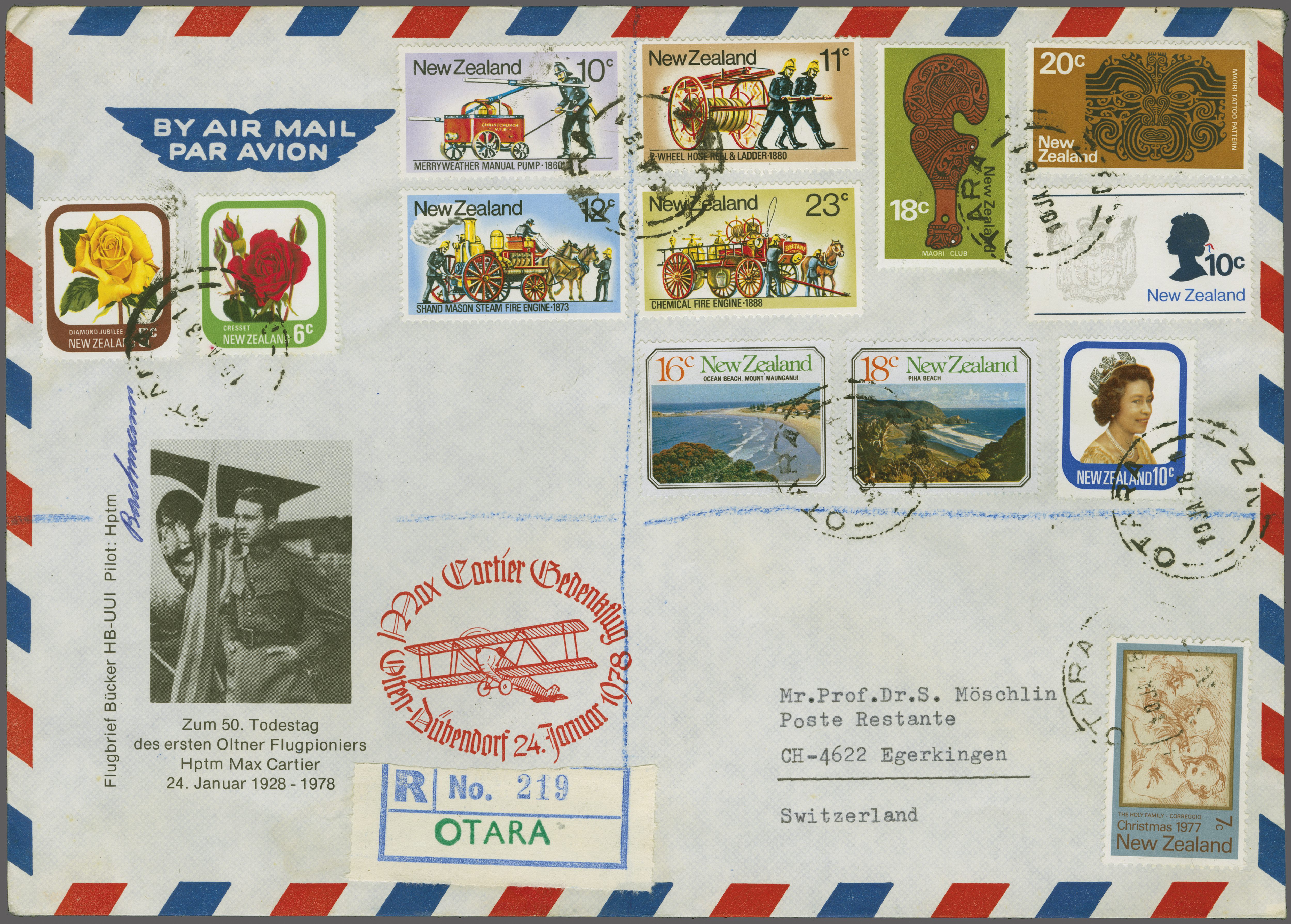 1978: Max Cartier Gedenkflug mit rotem Sonderstempel auf offiziellem illustrierten Flugpostumschlag, seltene und nicht katalogisierte Zuleitung aus Otara (New Zealand). Seltener und attraktiver Beleg! (Image 1)