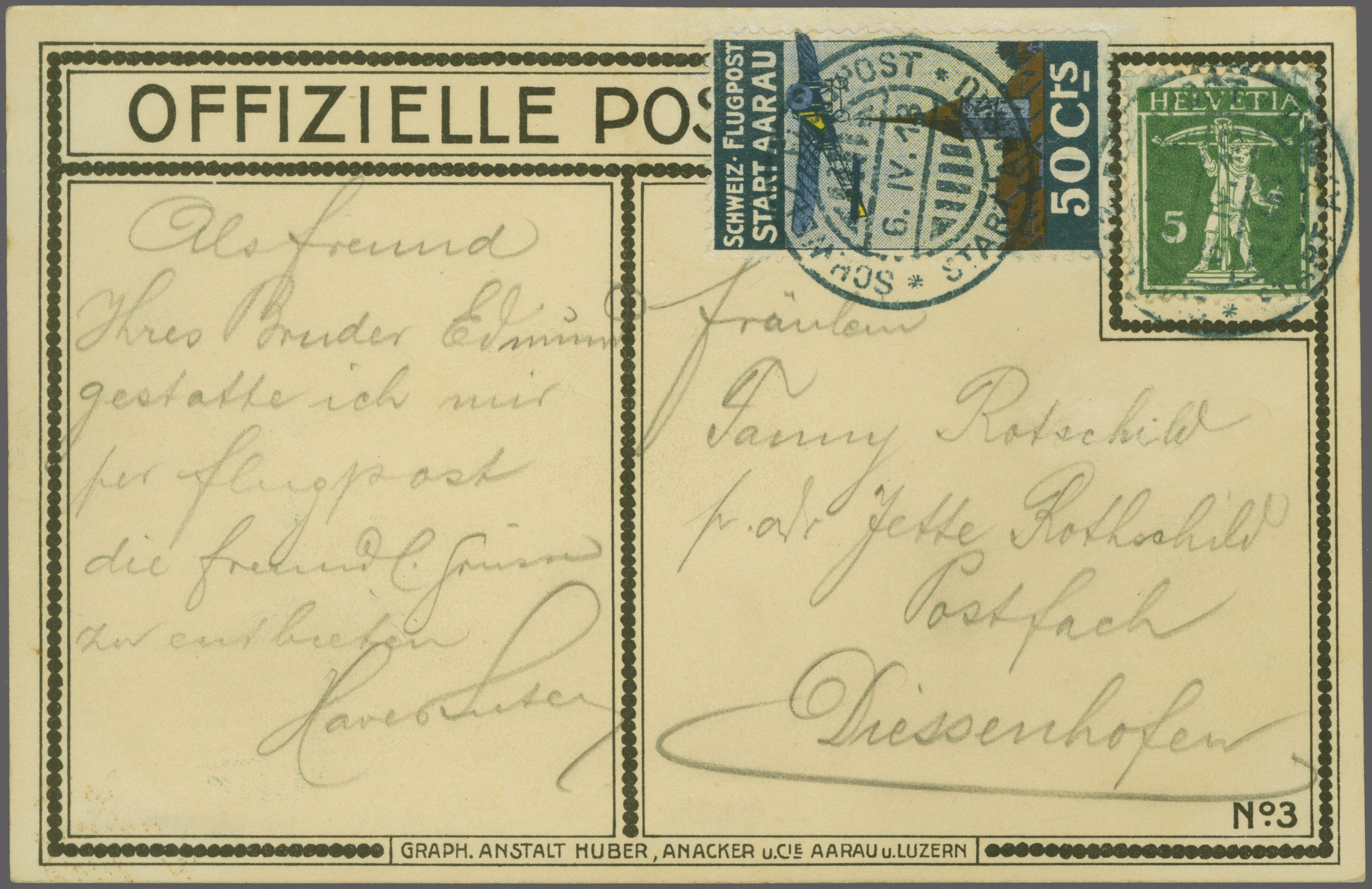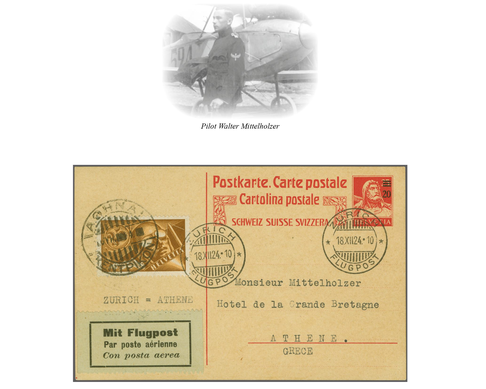 selten, insgesamt nur sechs Belege bekannt, wovon einer im Museum für Kommunikation in Bern, die weiteren Belege sind im SLH unter der Nr. SF 34.1b-d gelistet. Attest Bohler (1993). SLH = CHF 13'000. Walter Mittelholzer, der erste technische Direktor