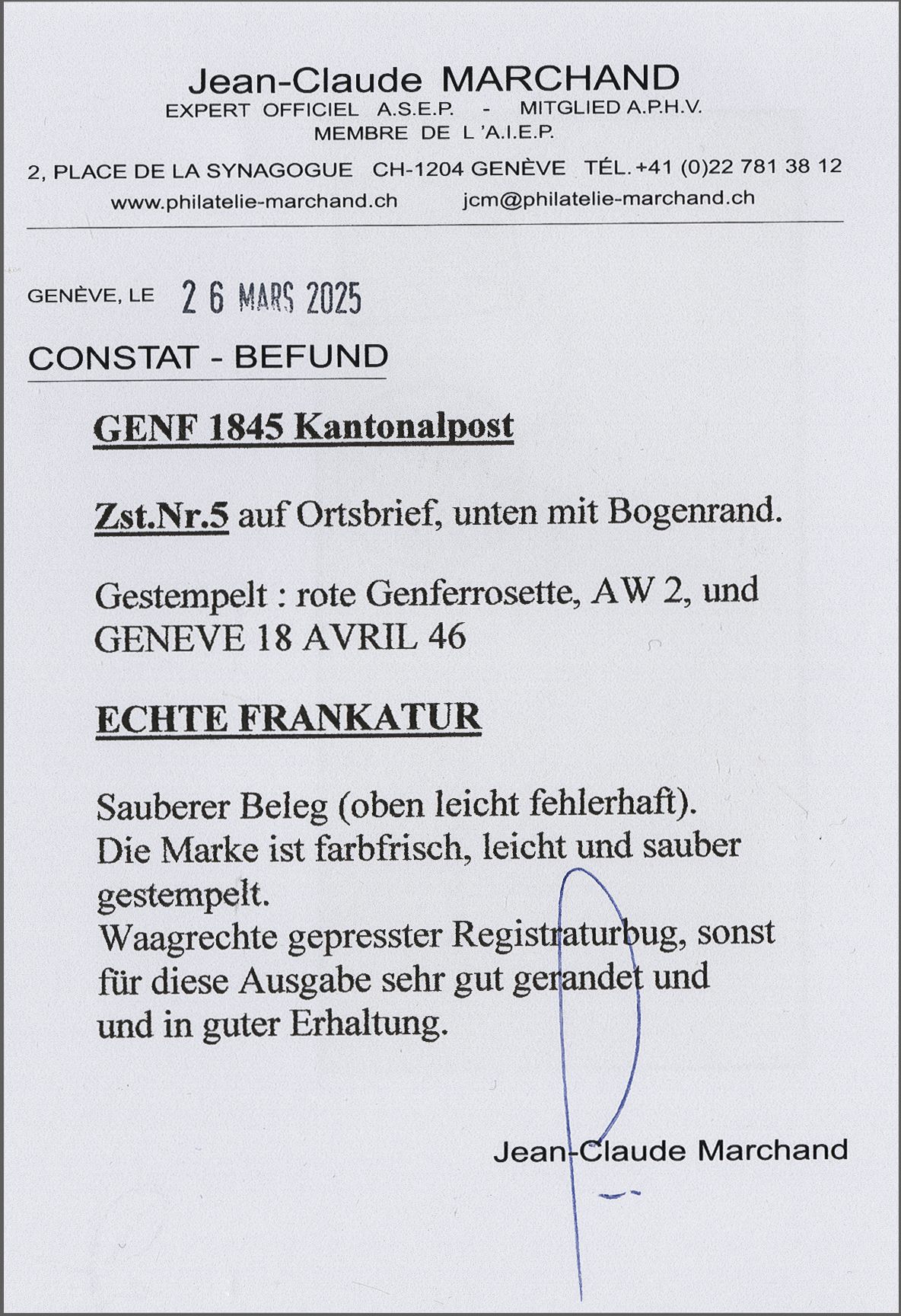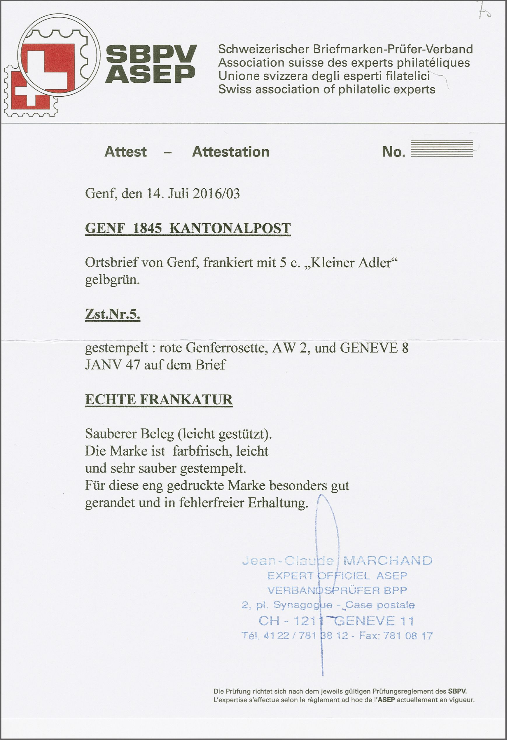 Bestätigung von Jean-Claude Marchand (2023). SBK=CHF 23'000 (Image 1)