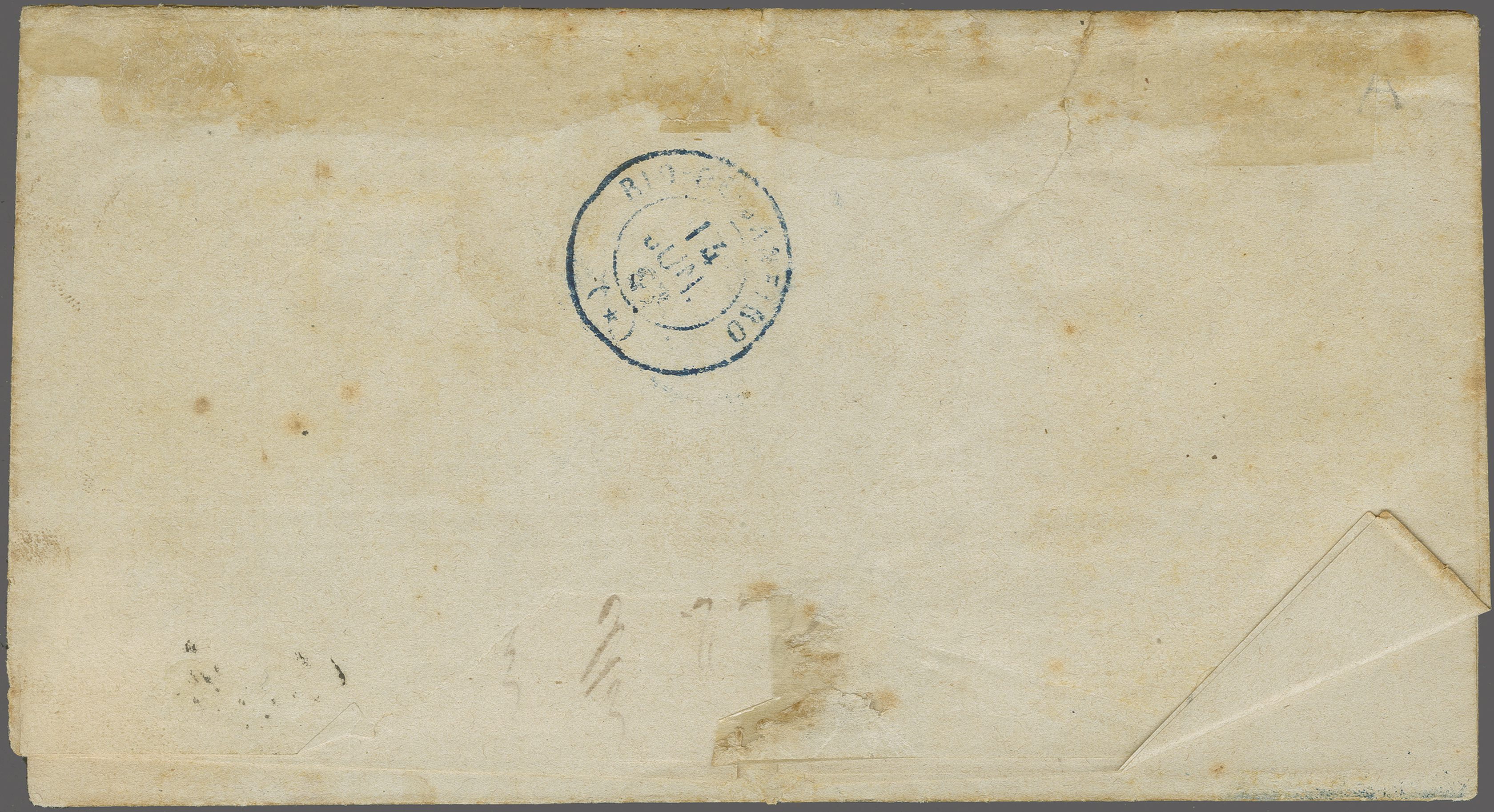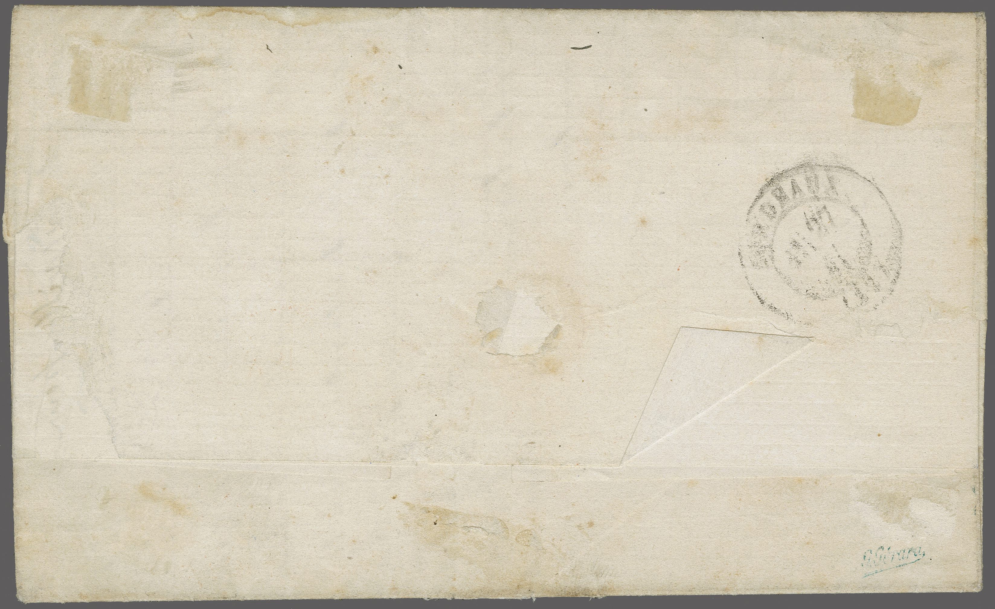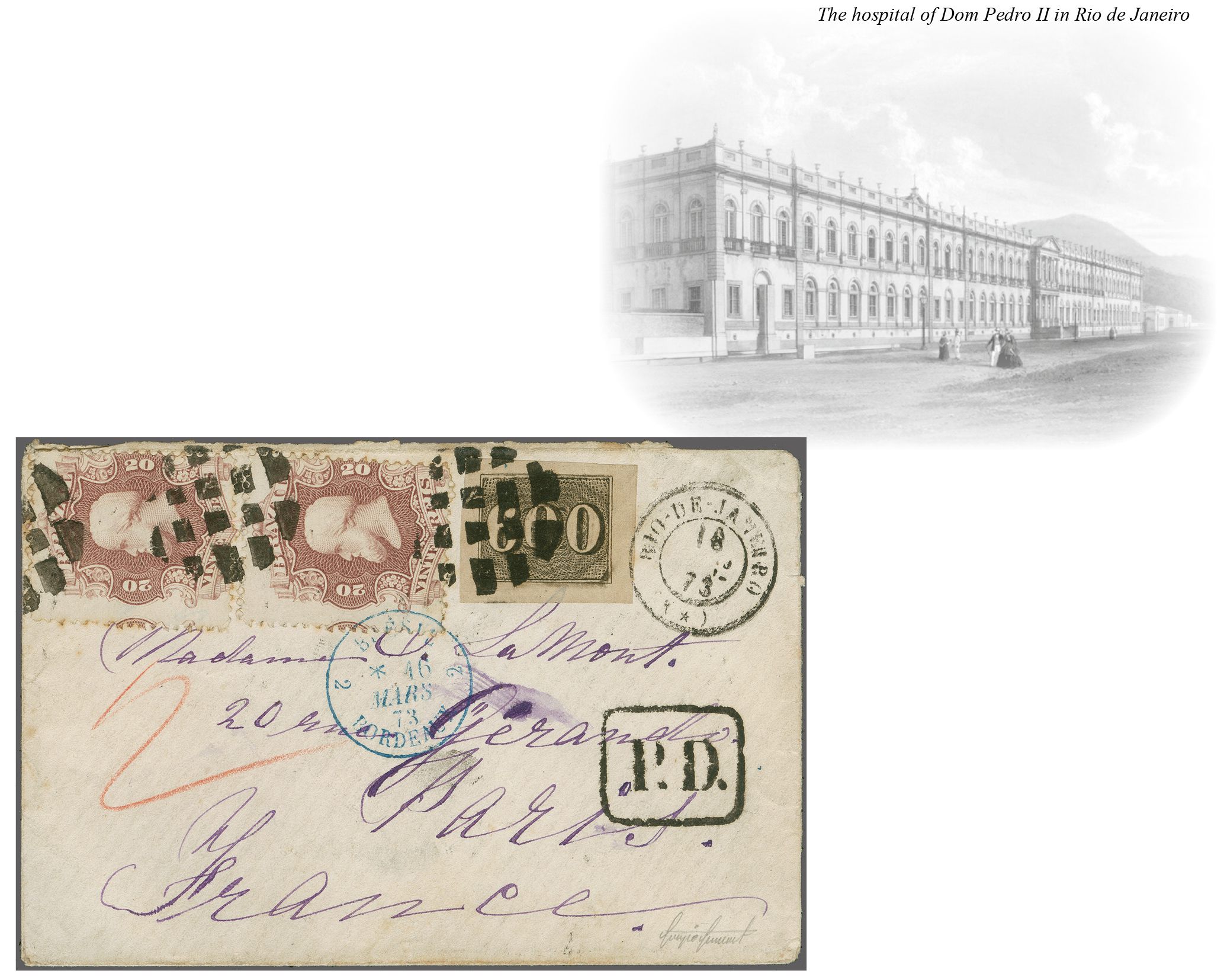 rate; all tied by segmented cork handstamps with "Rio-De-Janeiro" french type despatch cds at right and framed "P.D." in black; Bordeaux entry marking (March 16) in blue. A delightful and rare cover. Signed Sismondo. Cert. Sismondo (2005). Note: For