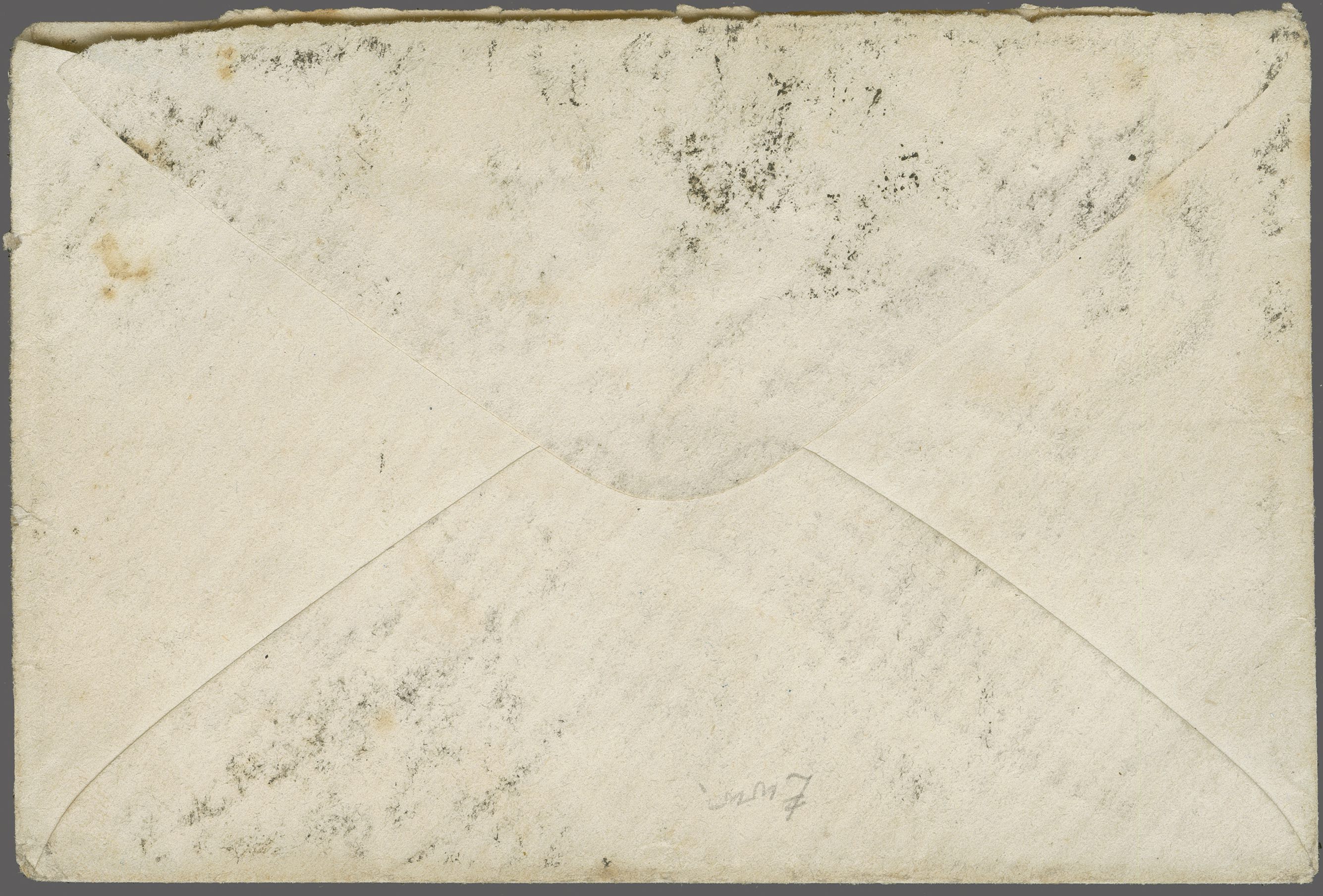 right and Calais entry marking in blue (July 16). Each stamp with imperfections and the cover cleaned and creased (Image 1)