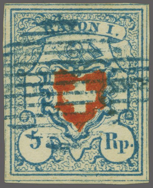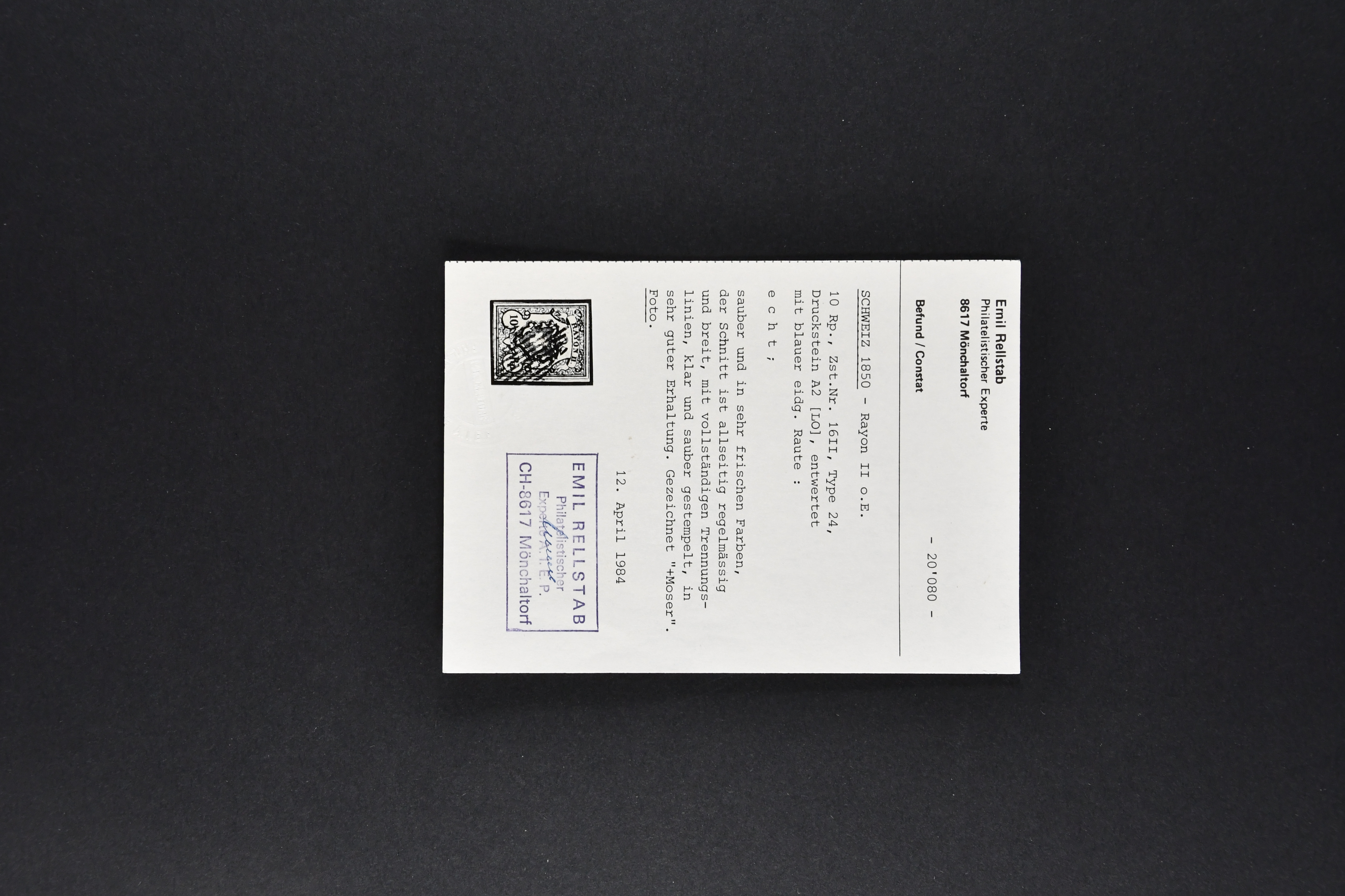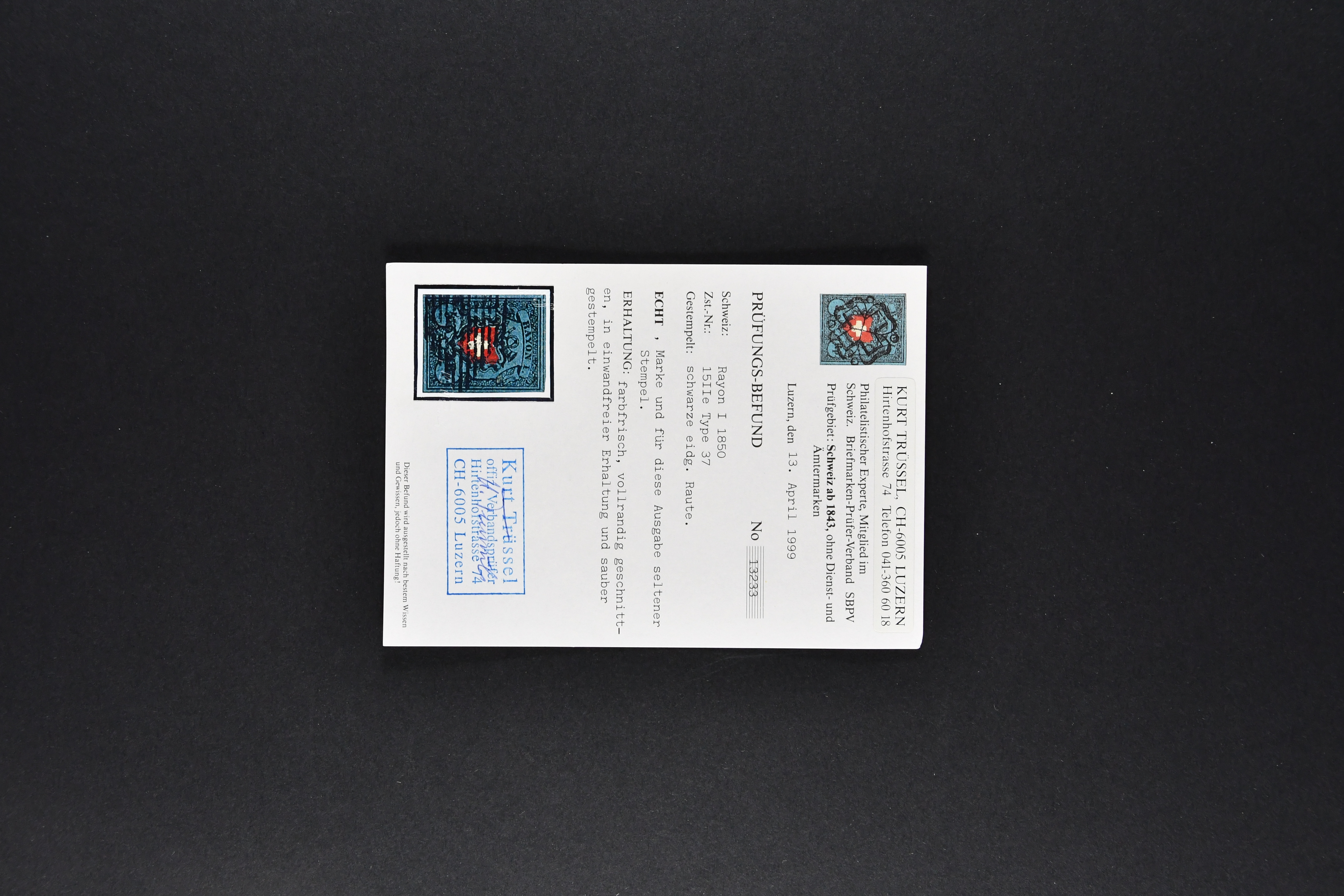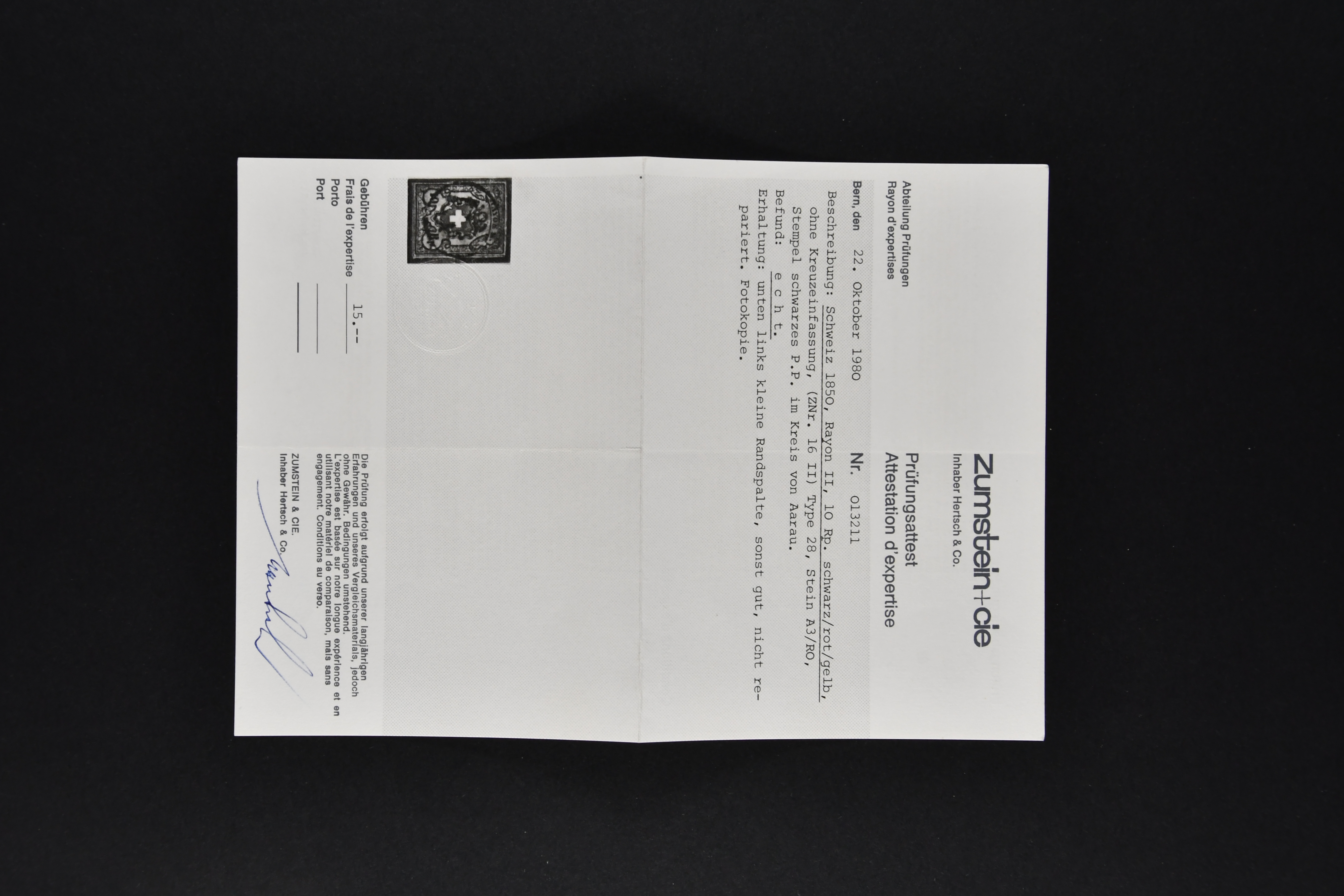 Schlüsselstück für höchste Ansprüche; Atteste Moser (1963), Städeli (1977) und Rellstab (1994). SBK=CHF 7'440. Provenienz: 2. Spezialangebot der Firma Ernst Müller, Basel, 1929, Los 1238; Sammlung Jack Luder, 233. Corinphila-Auktion, Zürich Dezember