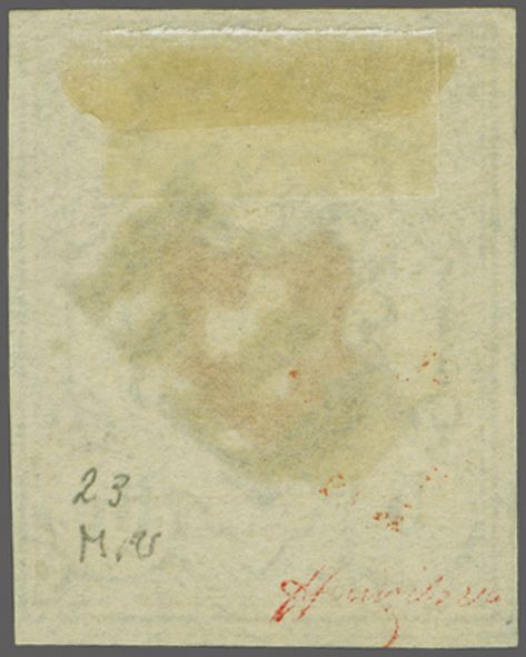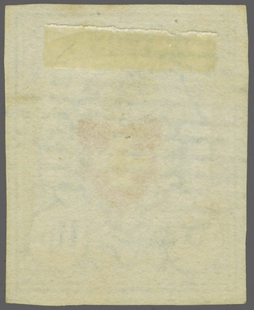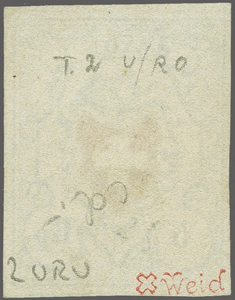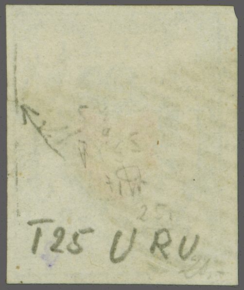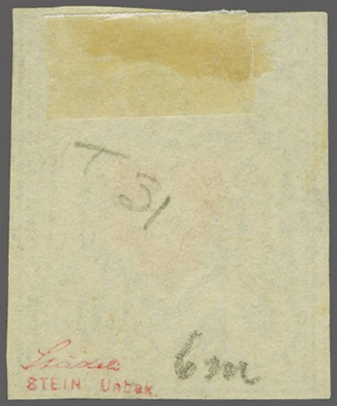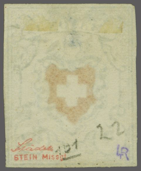 Missglückter Stein: Type 22 u/G in einer blassen Nuance mit dem charakteristisch deformierten Kreuz, farbfr. und gut- bis breitrandig (leicht falzhell, kl. Punkt unterhalb der Wertziffer), leicht und kreuzfrei entw. mit