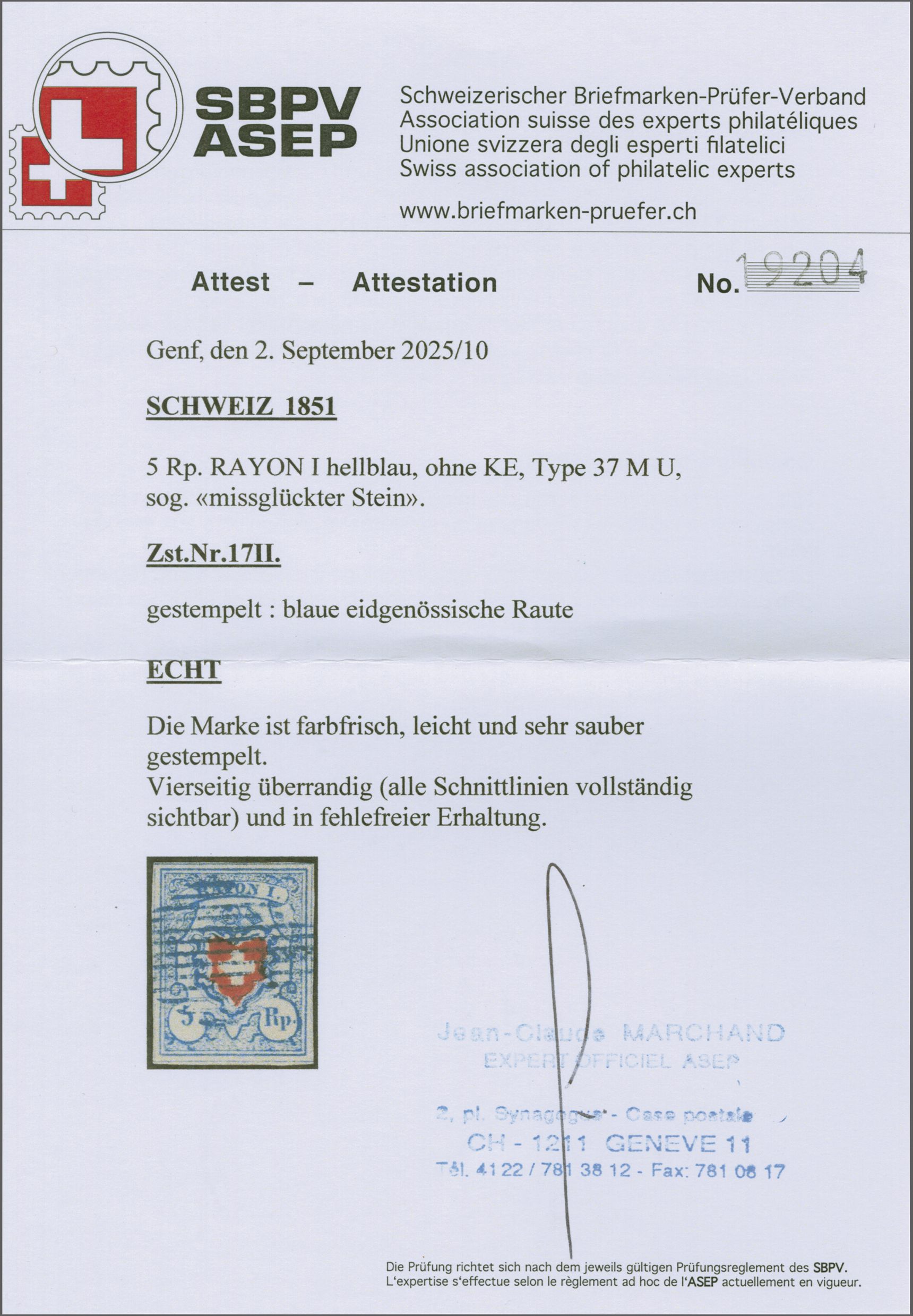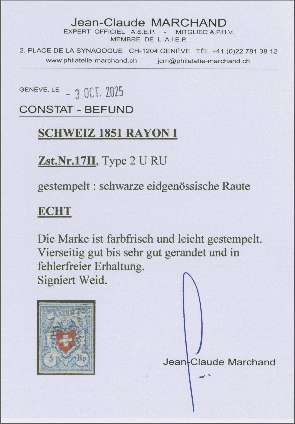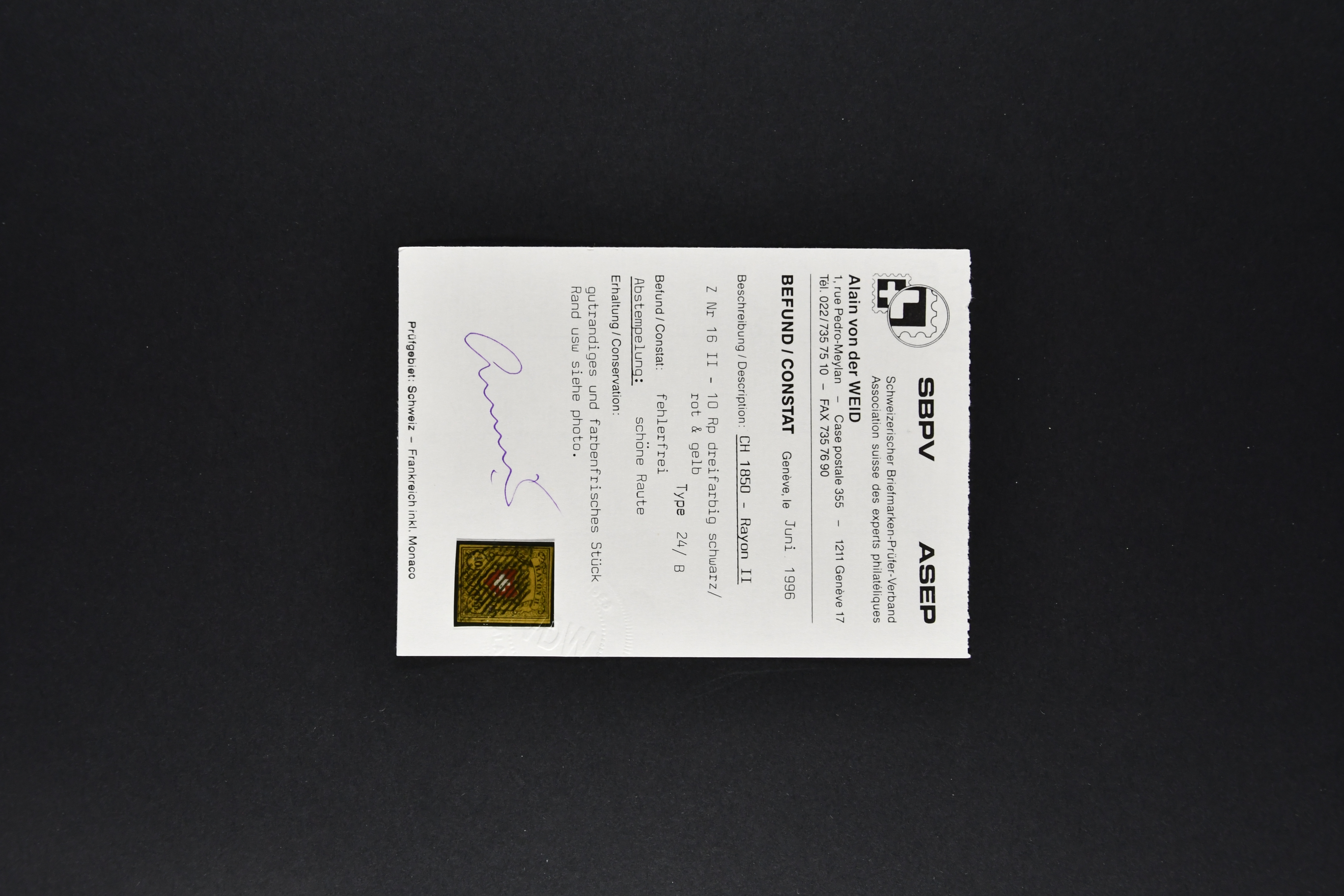 Unbekannter Stein: Type 2 r/u, farbfr. und breit- bis überrandig, zart entw. mit schwarzer eidg. Raute. Signiert von der Weid, Befund Marchand (2025). SBK=CHF 675 (Image 1)