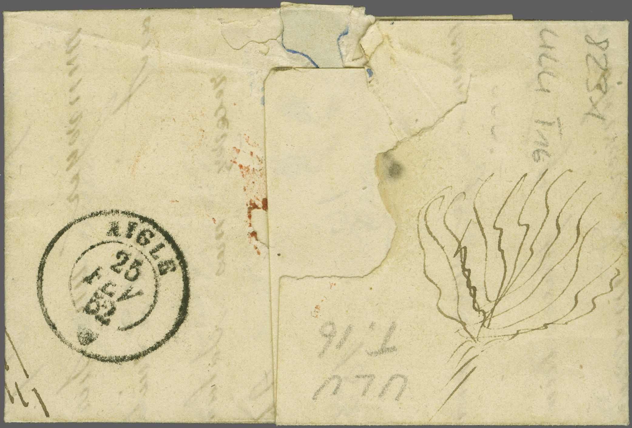 mit "5" Rappen (Rötel) zu Lasten des Empfängers nachtaxiert. Rücks. Transitstp. "AIGLE 25 FEV. 52". Ein attraktives und vielseitiges Brieflein das eine grosszügig geschnittene Marke von einer der selteneren linken Gruppen des Unbekannten Steins mit