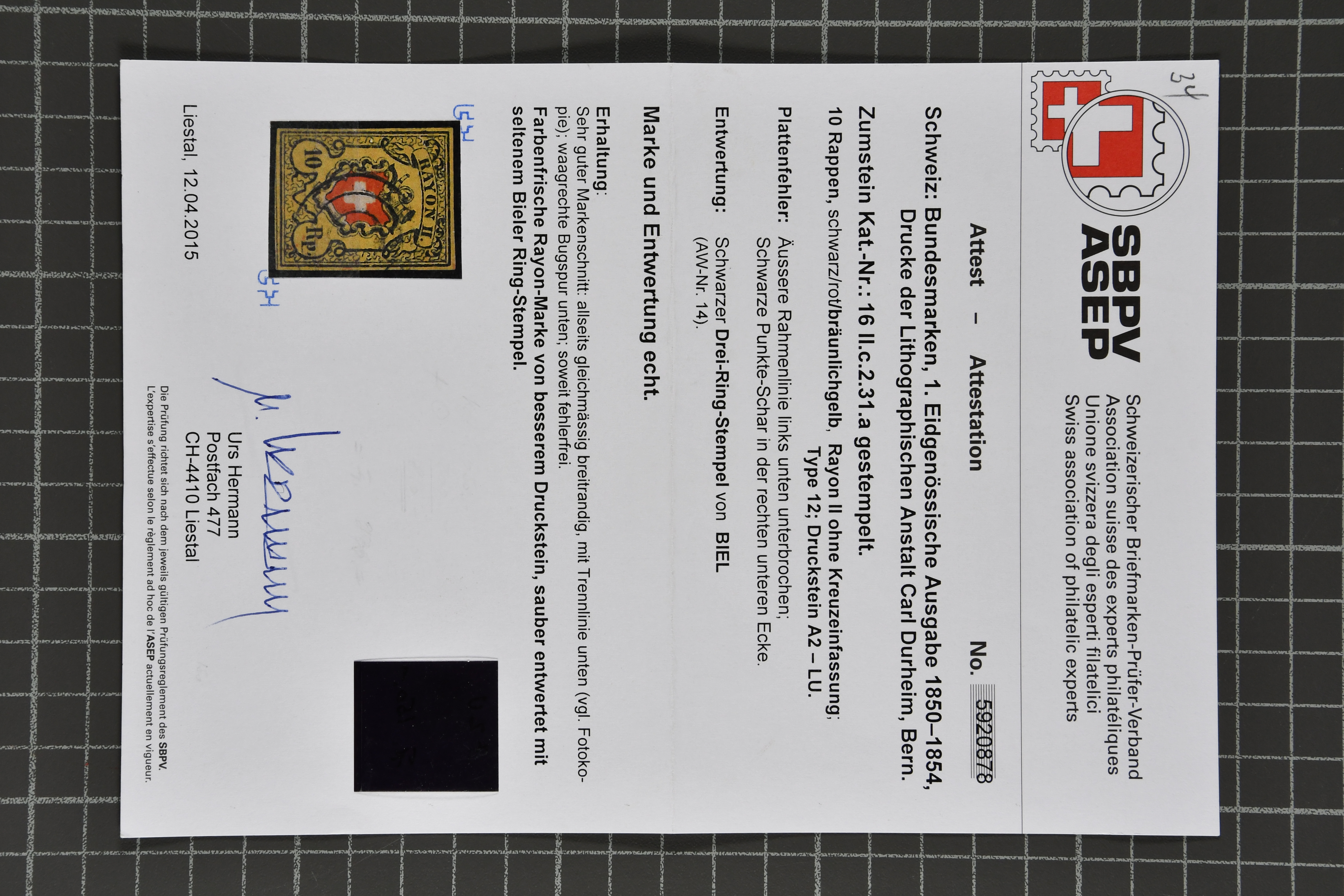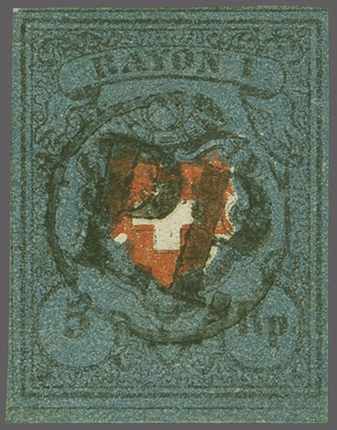schwarzen eidg. Raute. Eine interessante und äusserst dekorative Marke vom seltensten Stein; Attest Renggli (2000). SBK=CHF 4'000 (Image 1)