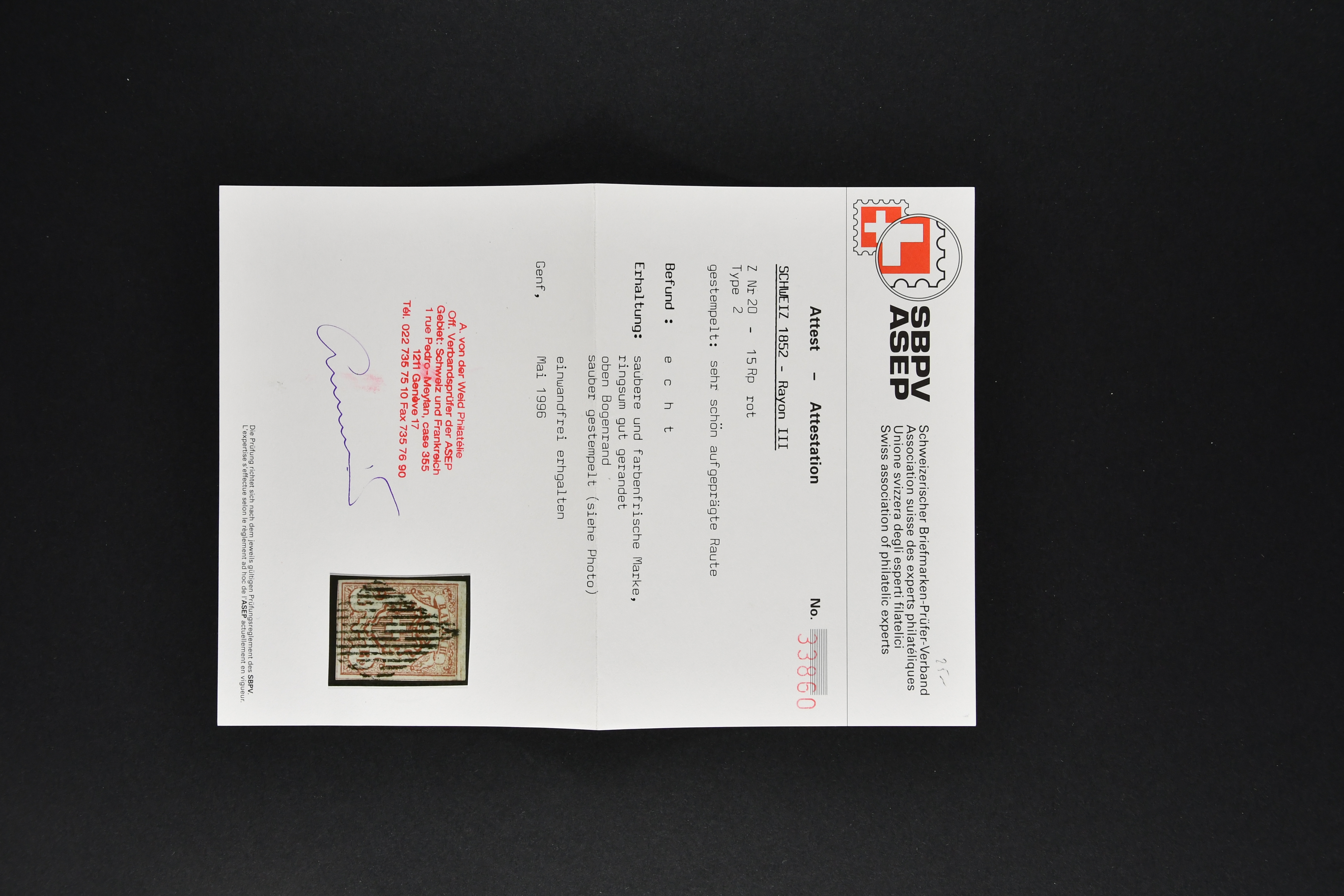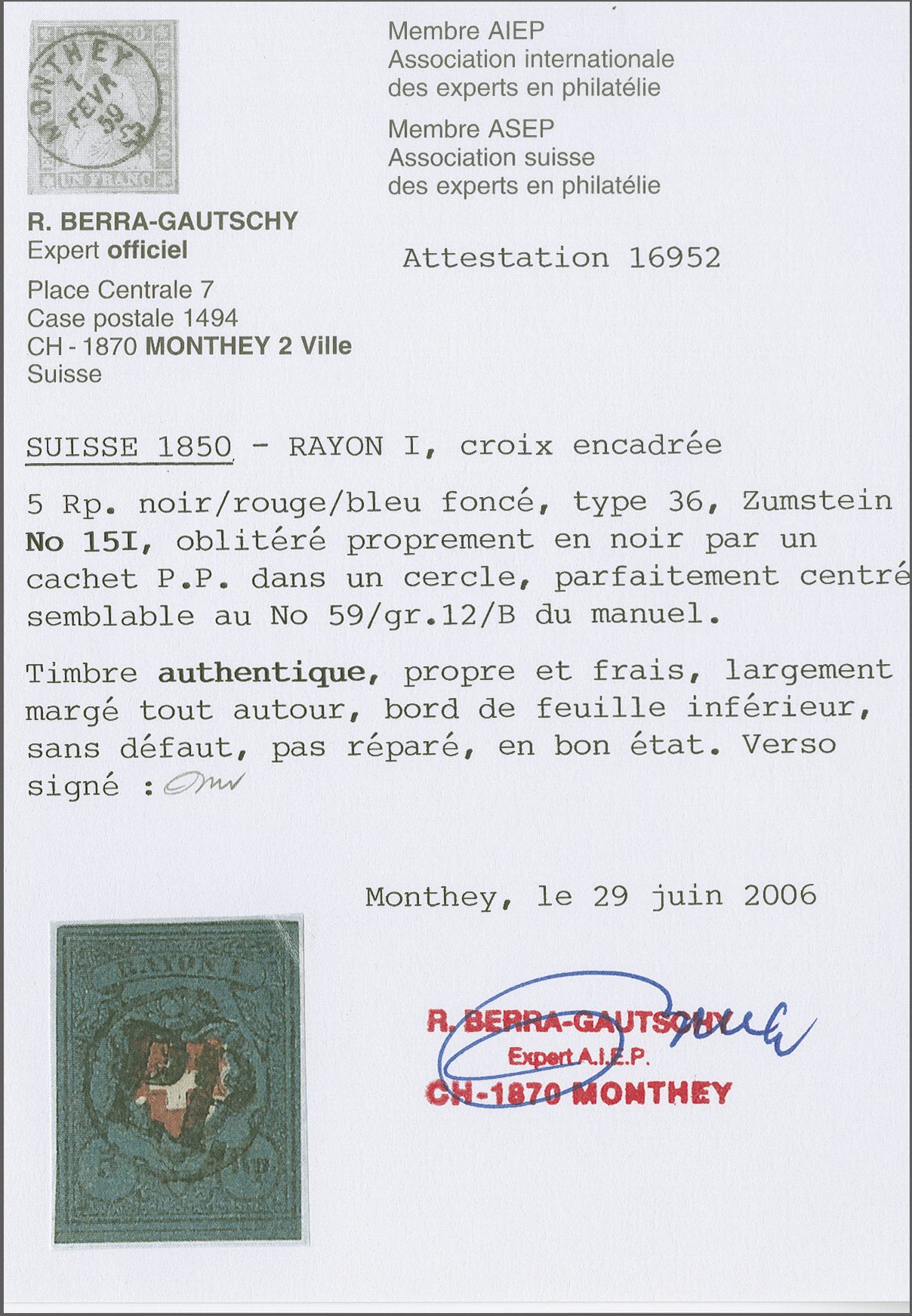 Type 36, farbintensiv und sehr gut- bis überrandig mit Bogenrand unten, klar und kontrastreich entw. mit "P.P." im Kreis (AW 311). Attest Berra-Gautschy (2006) SBK = CHF 1'800 (Image 1)