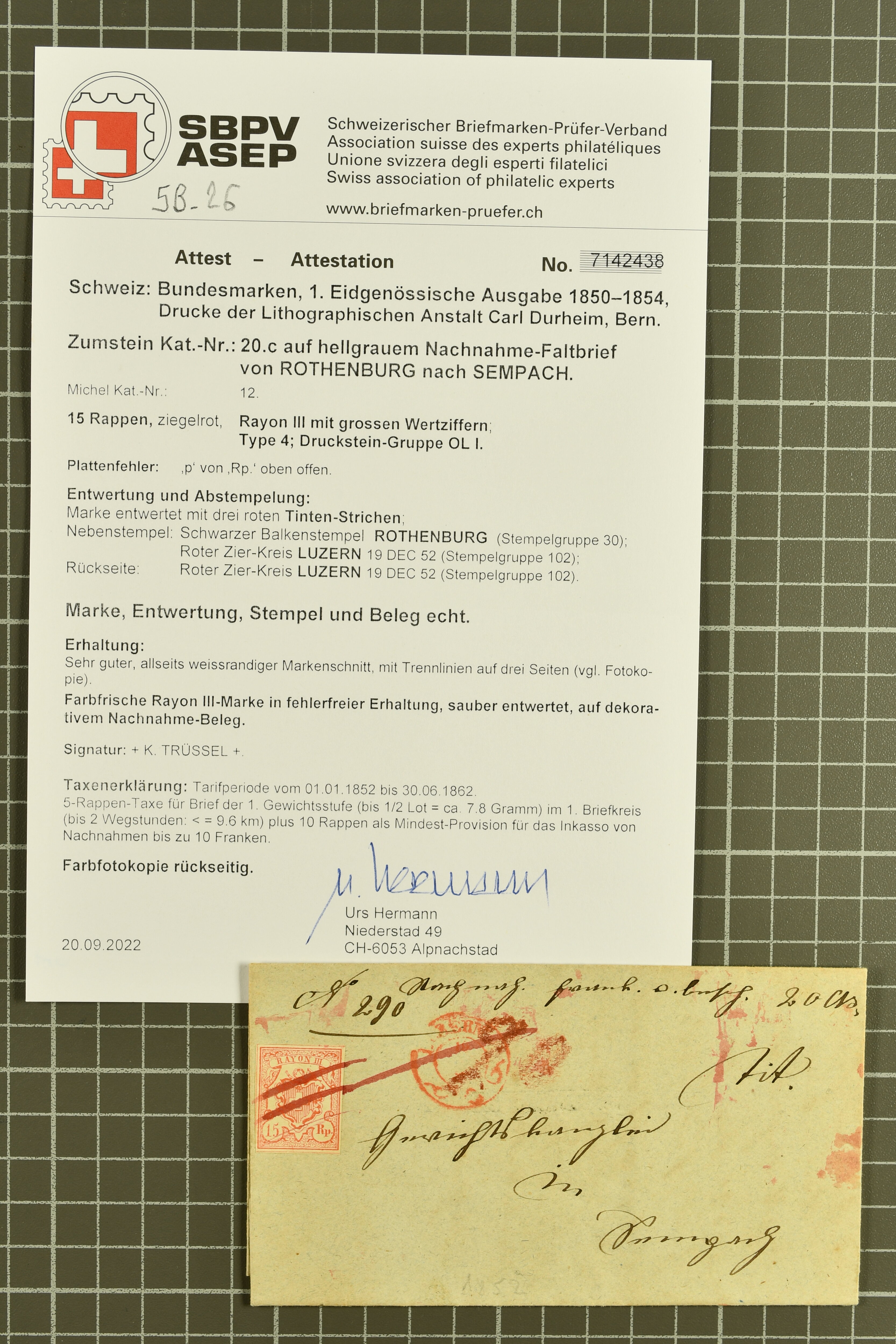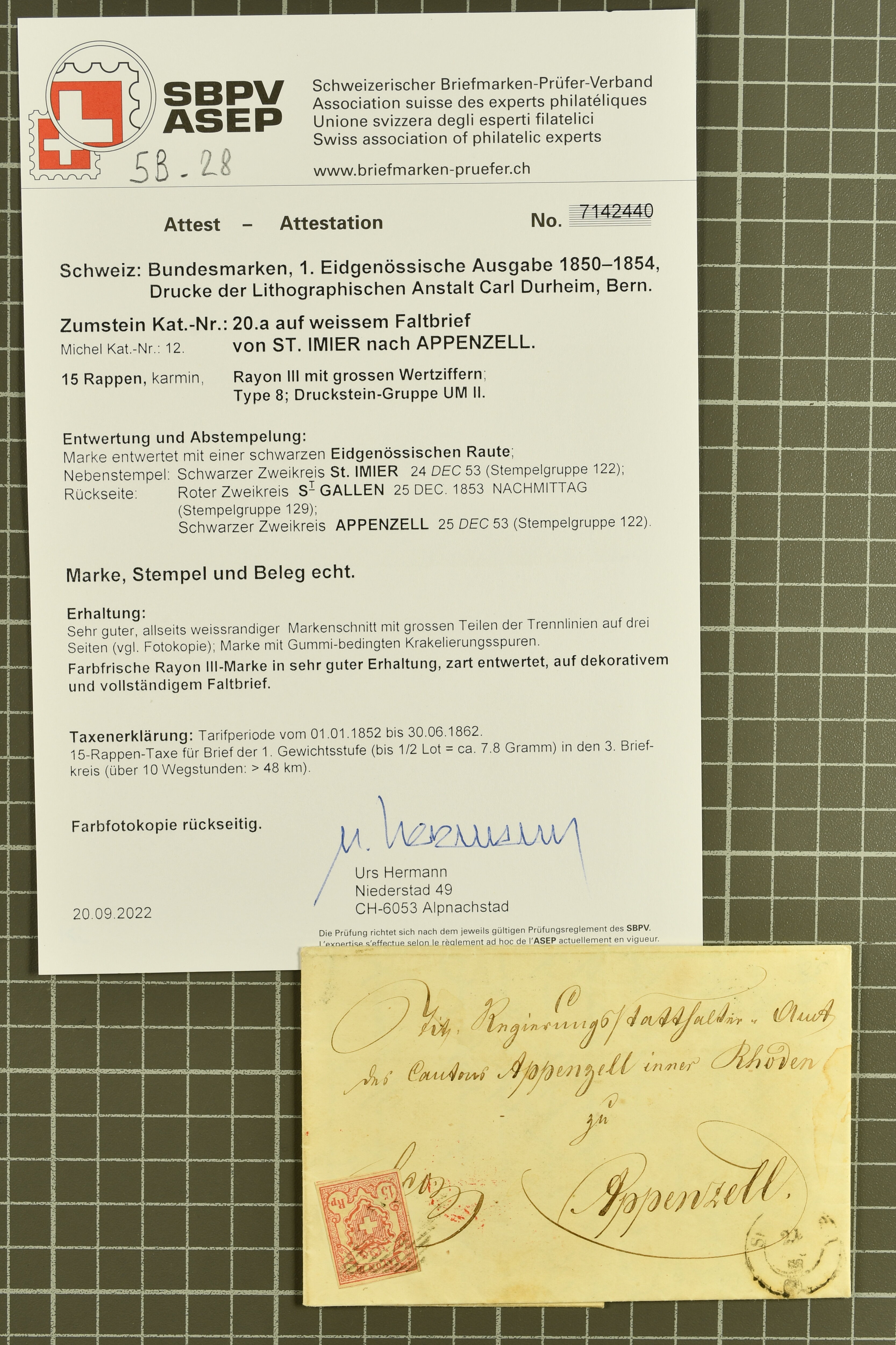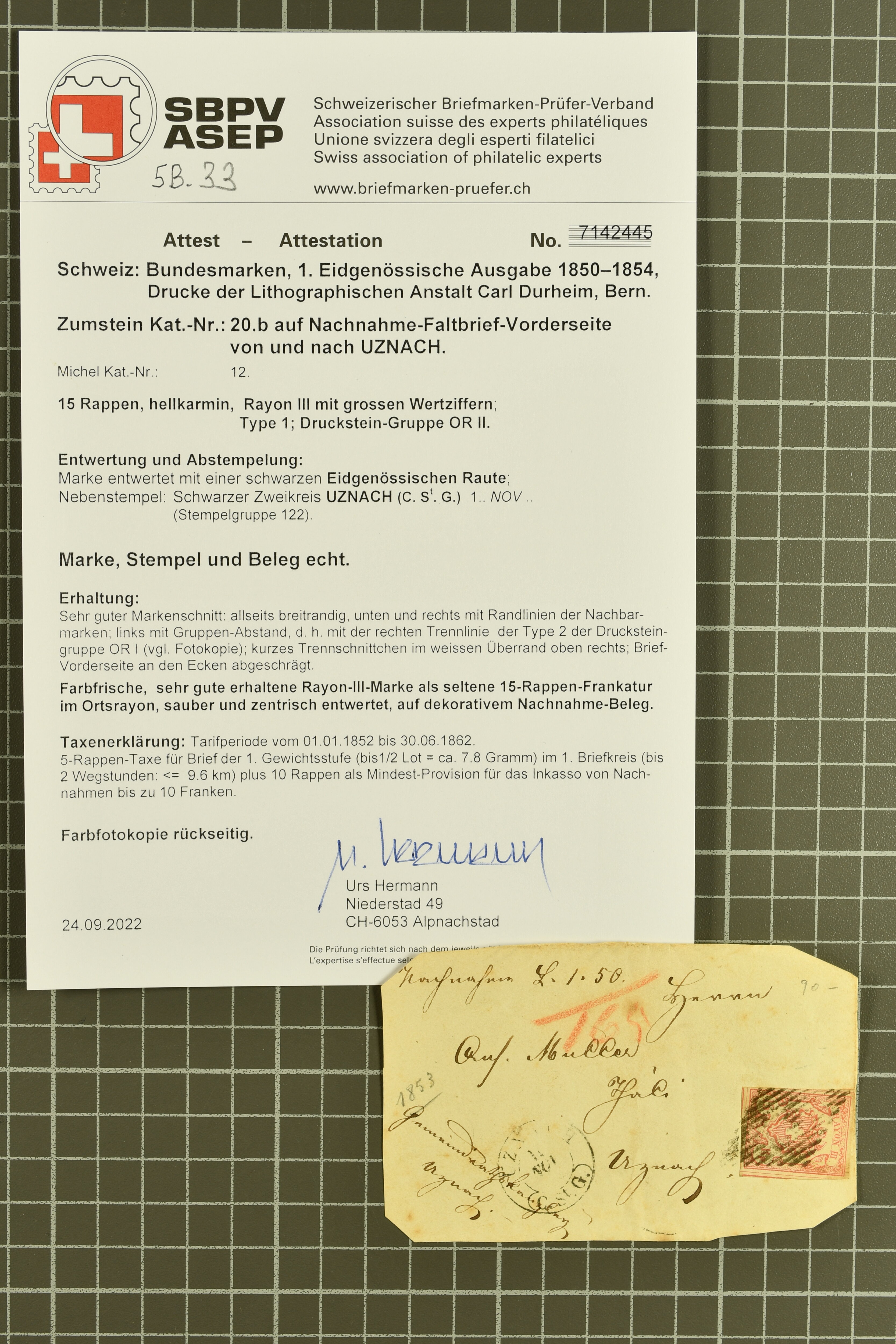 einer originellen Entwertung und einer interessanten, unterfrankierten Verwendung im 2. Briefkreis zu kombinieren weiss; signiert von der Weid, Attest Hermann (2016). SBK=CHF 1'800 (Image 1)