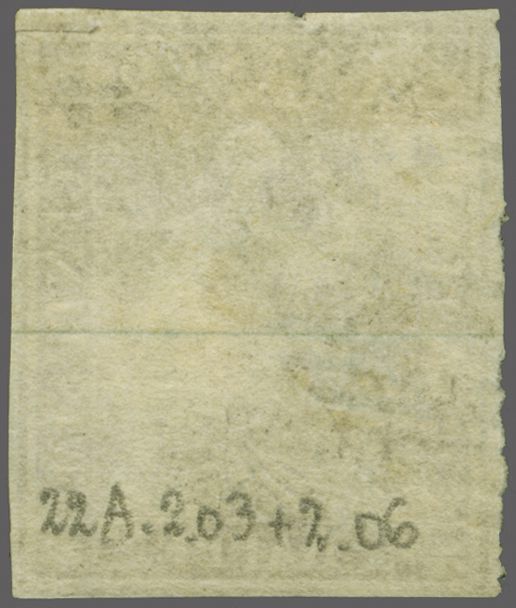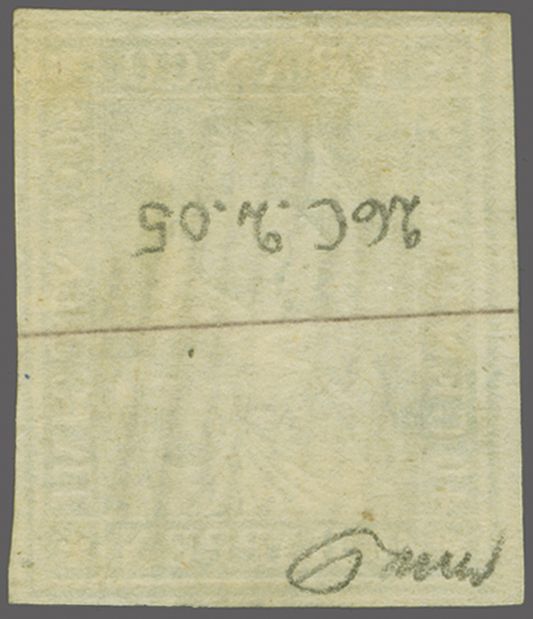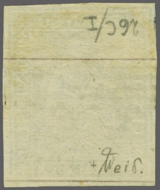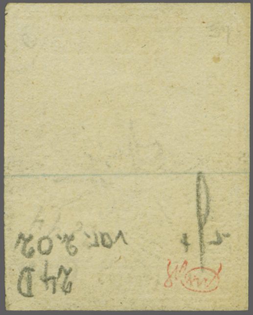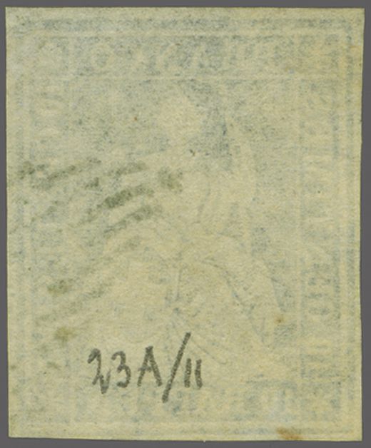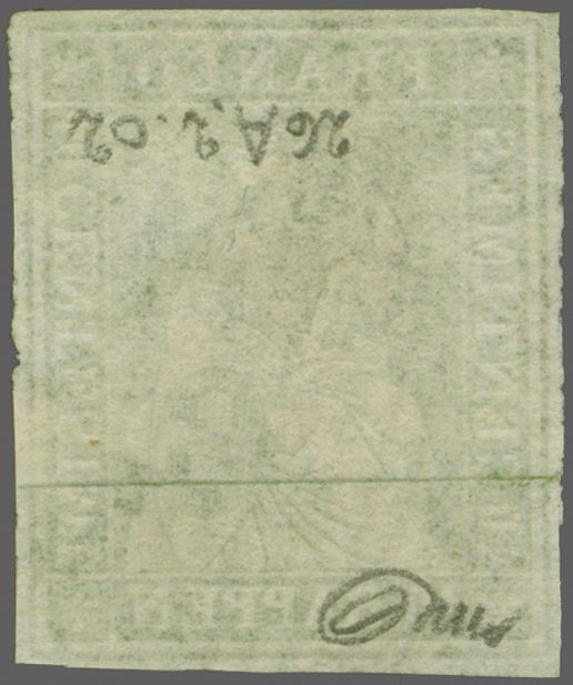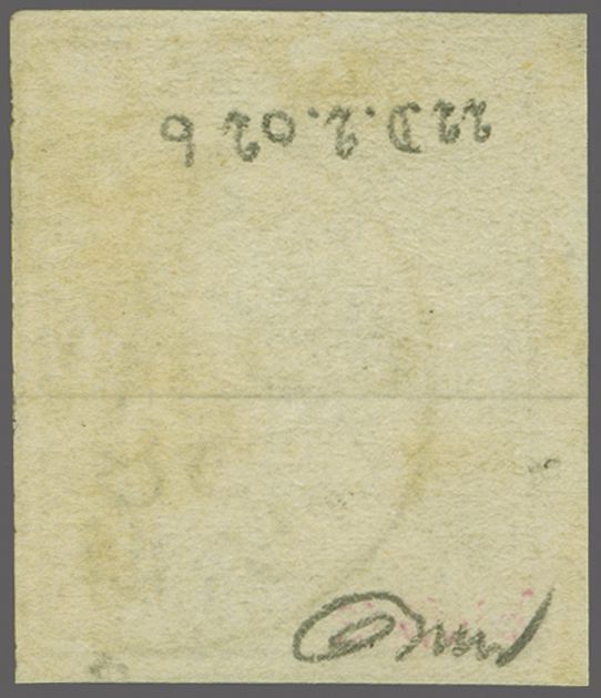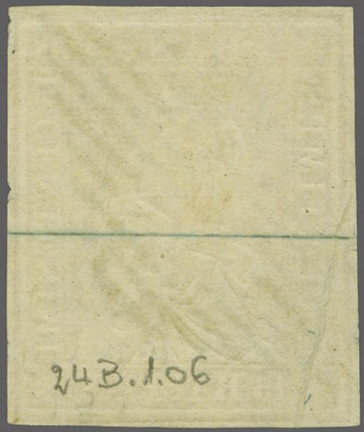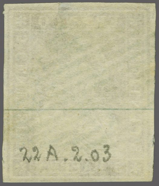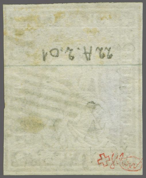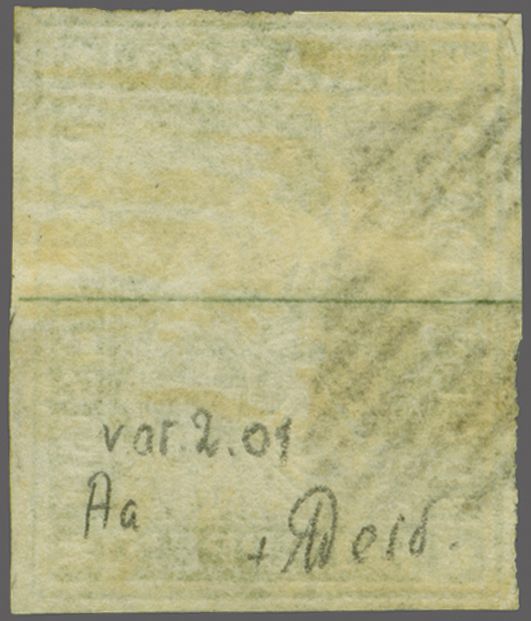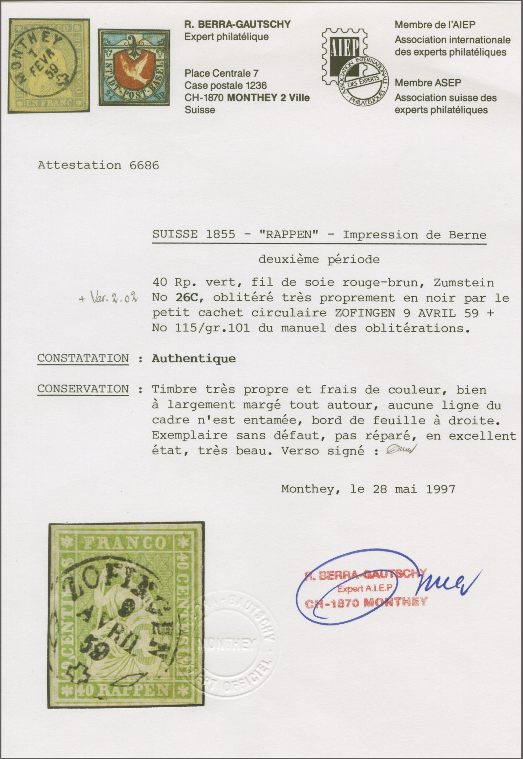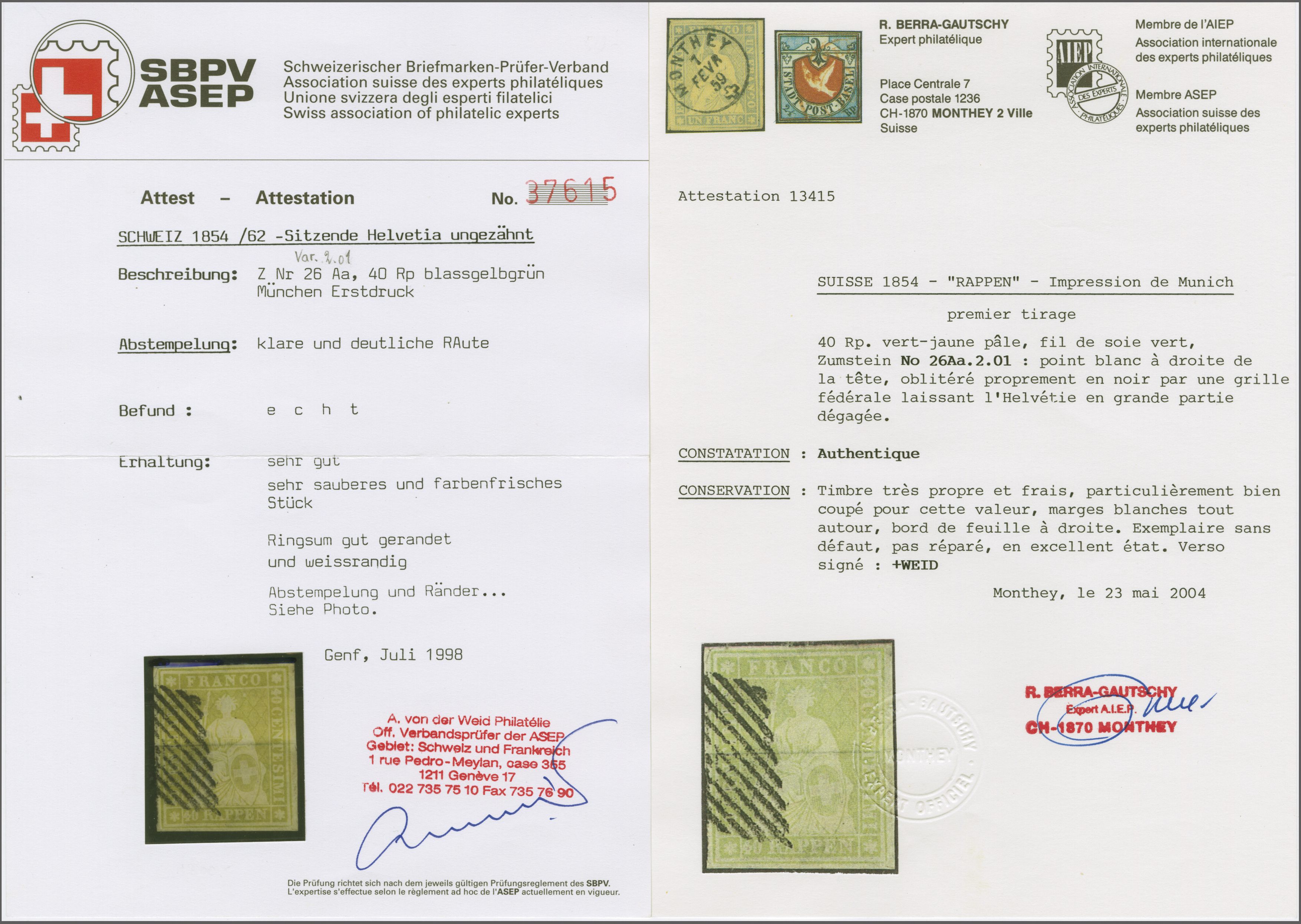 40 Rp. grünlicholiv mit seltener Abart: doppelter Seidenfaden, farbfr. und allseits breit weissrandig, zart entw. mit schwarzer eidg. Raute. Atteste von der Weid (1983), Marchand (1992). Provenienz: Corinphila-Auktion 160