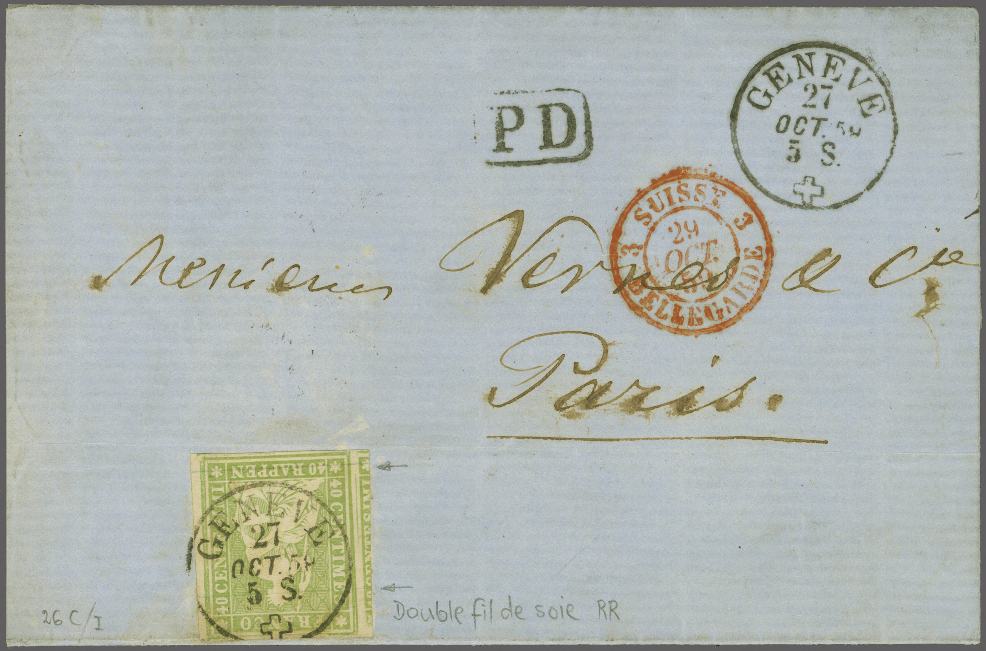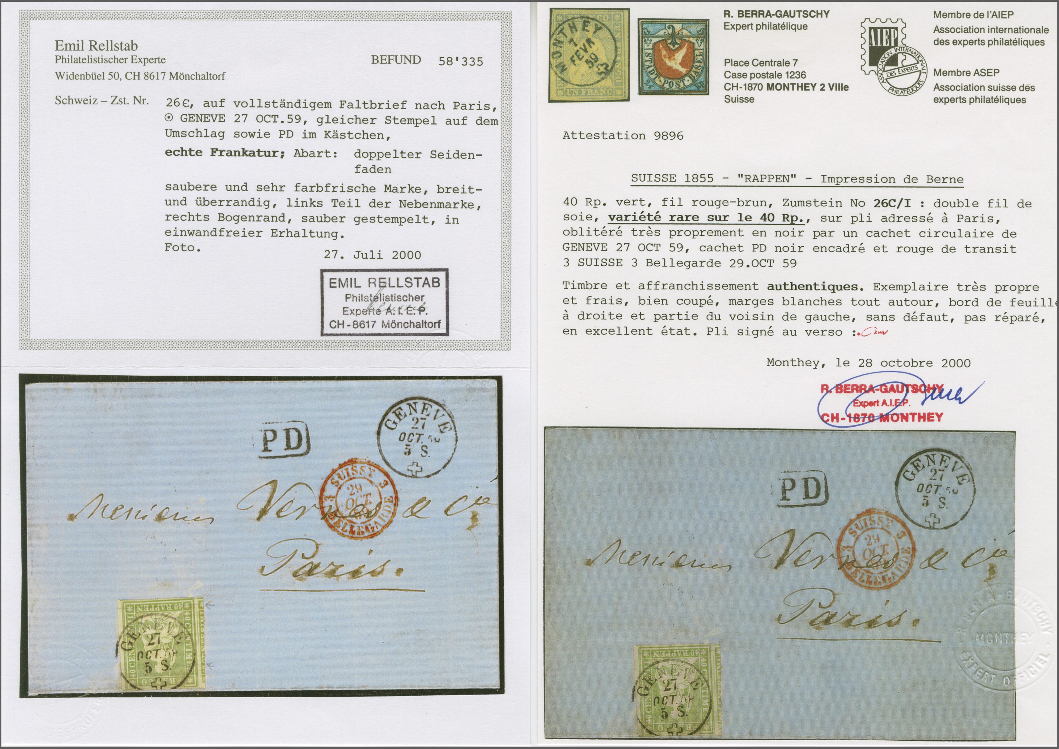 nochmals nebenges. wie auch gefasster PD und roter franz. Grenzübergangsstp. BELLEGARDE auf Faltbrief nach Paris, rücks. mit Ankunftsstp. "PARIS 29 OCT. 59". Ein schöner Brief, Befund Rellstab (2000), Attest Berra (2000) (Image 1)