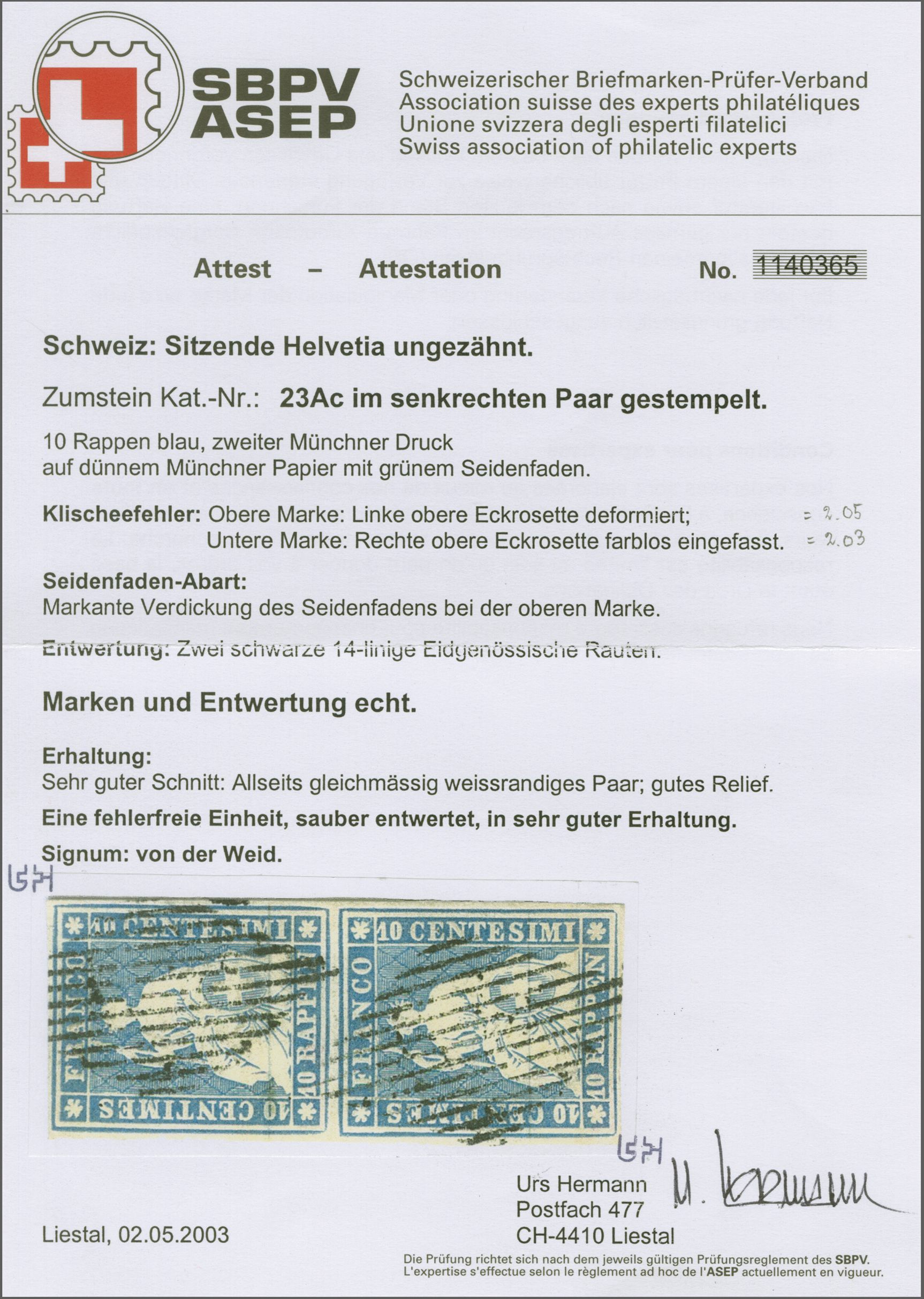 Einheit, je zartklar entw. mit eidg. Raute, auch die Plattenfehler freilassend. Attest Hermann (2003) (Image 1)