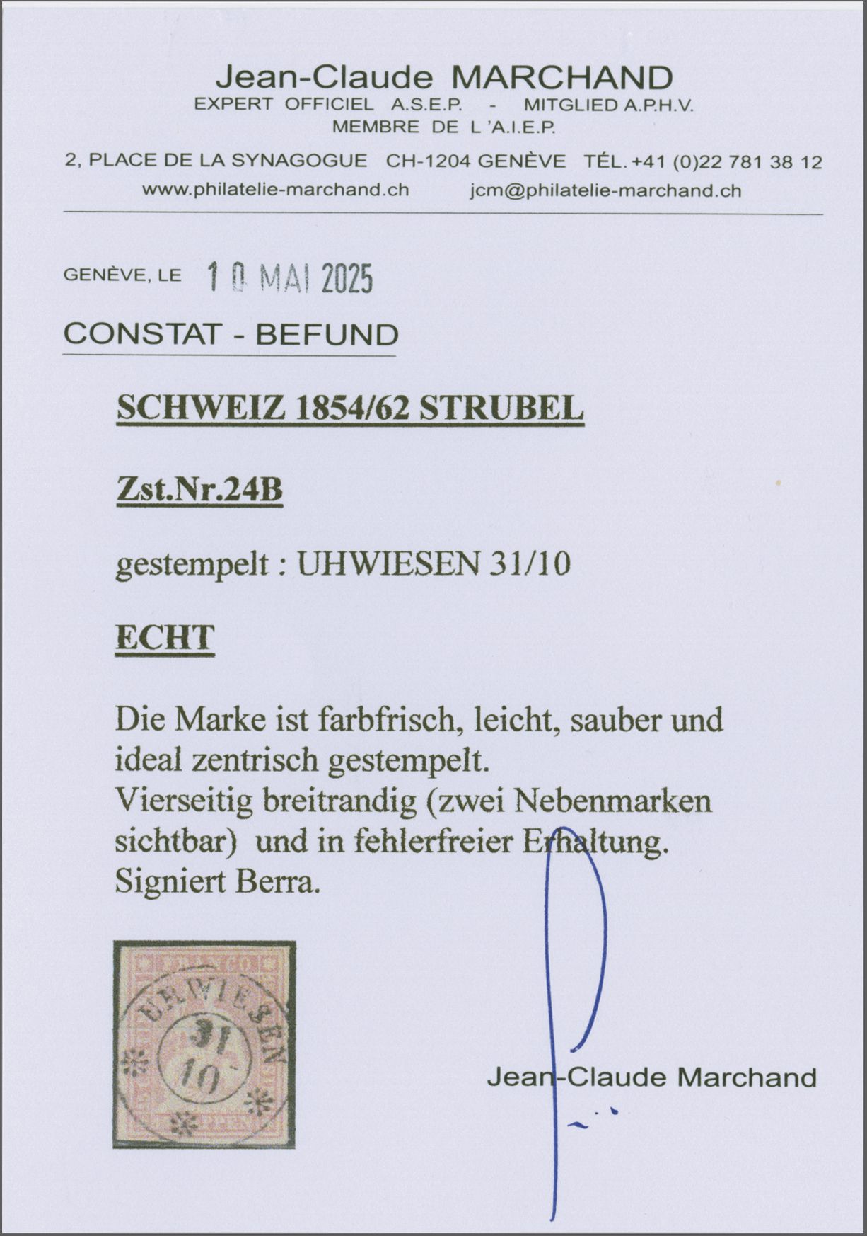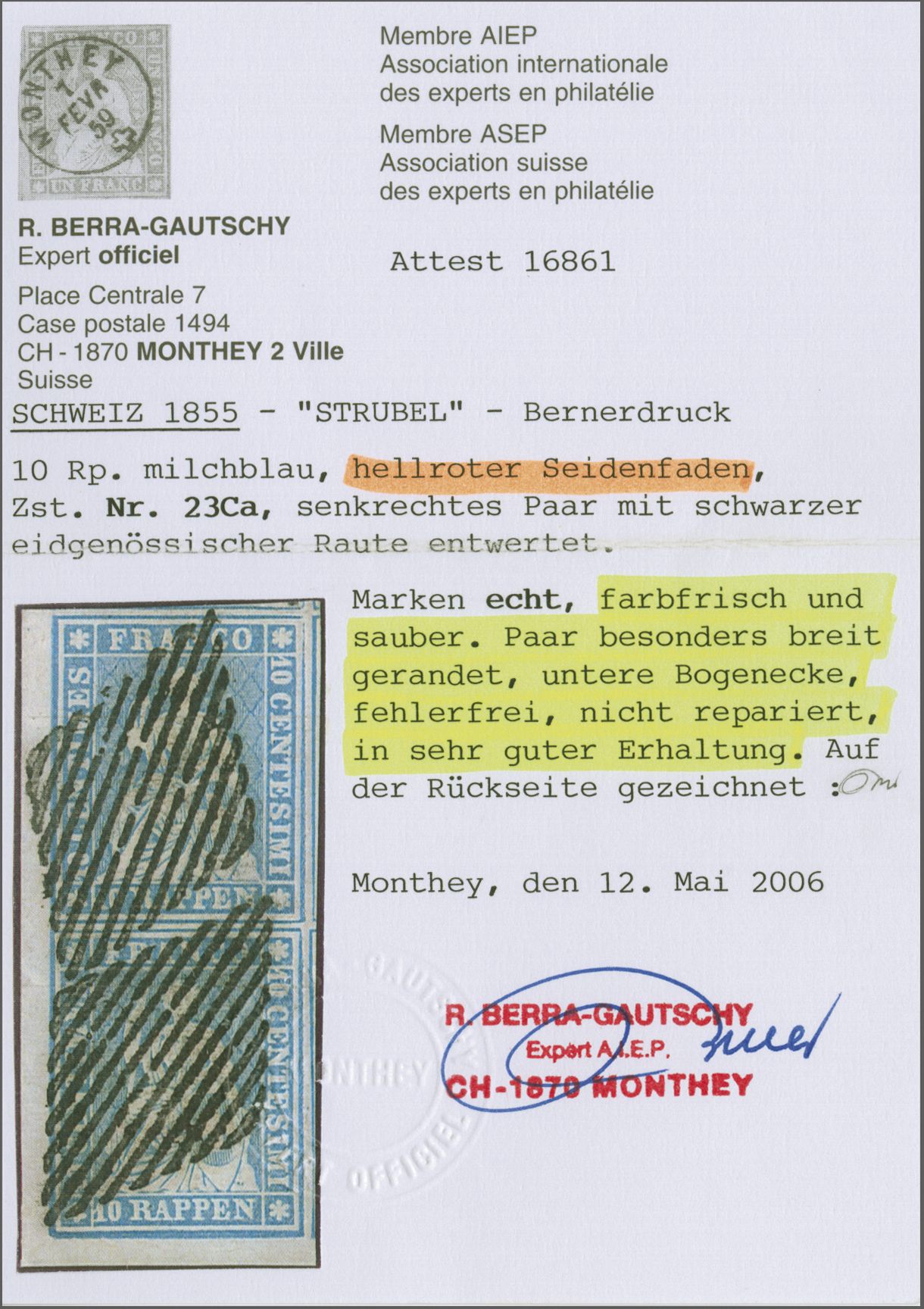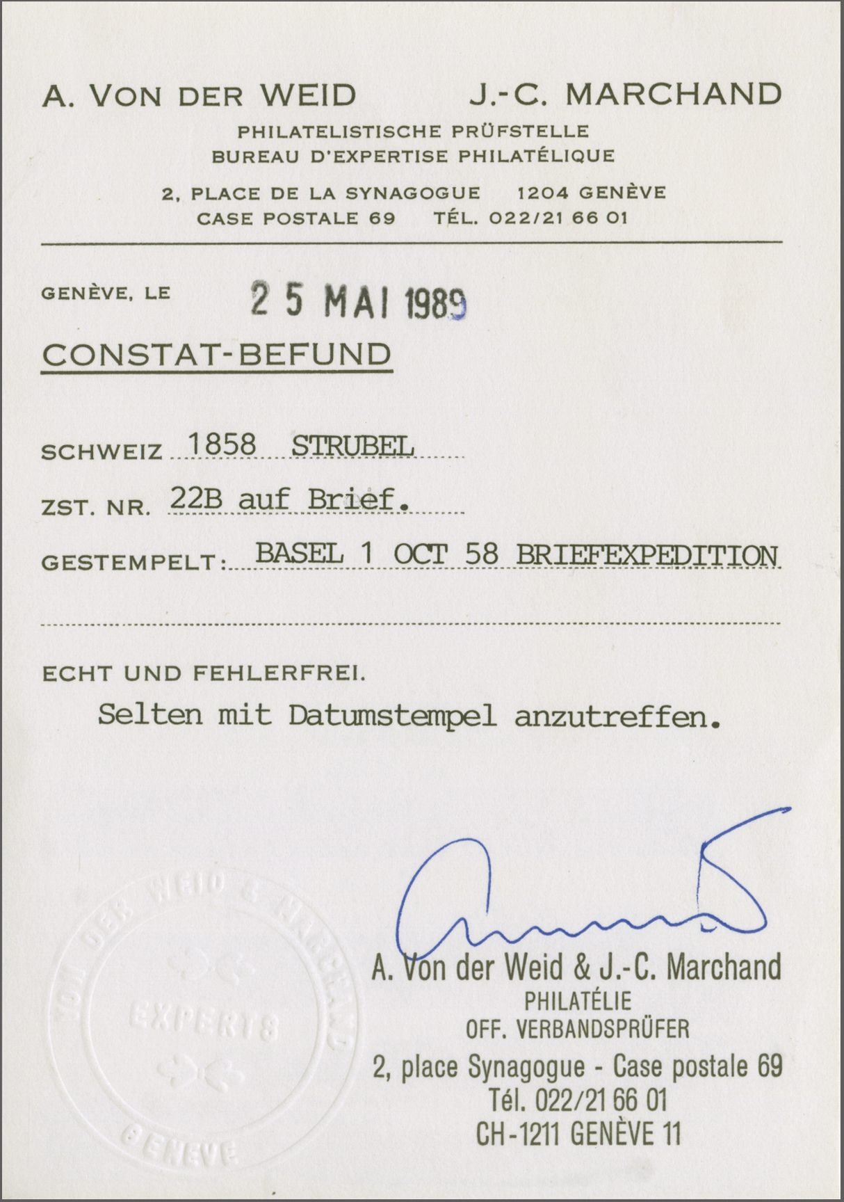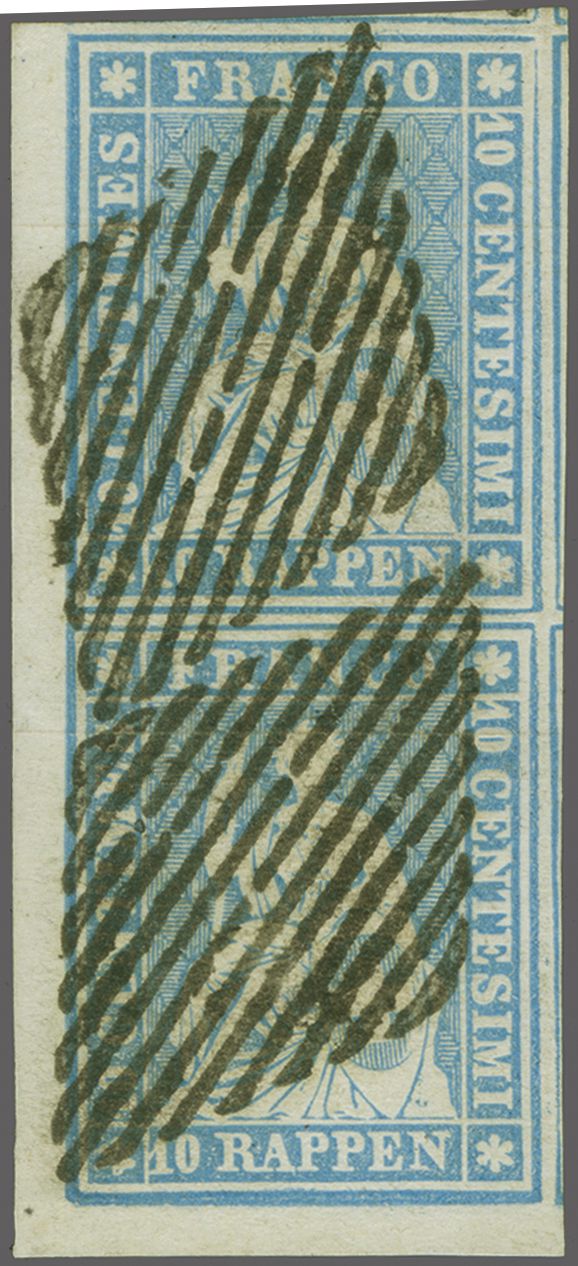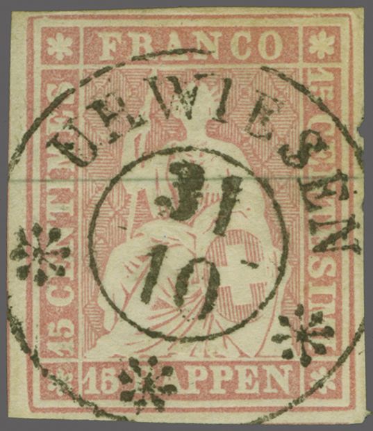Provenienz: Sammlung "Chaumont", 82. Corinphila-Auktion, Zürich September 1991, Los 1311; Sammlung Peter Brodtbeck, 96. Corinphila-Auktion, Zürich März 1997, Los 538; Spezialsammlung Entwertungen auf Rayon- und Strubelmarken, 176. Corinphila-Auktion,