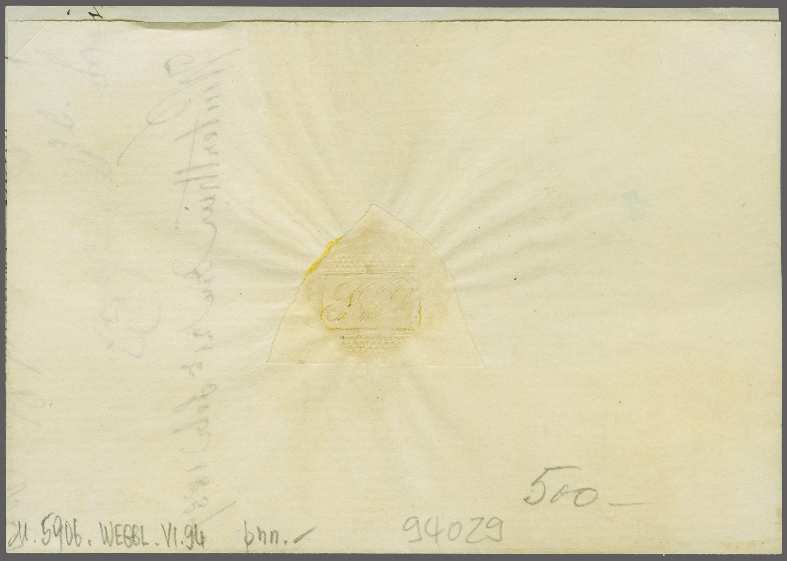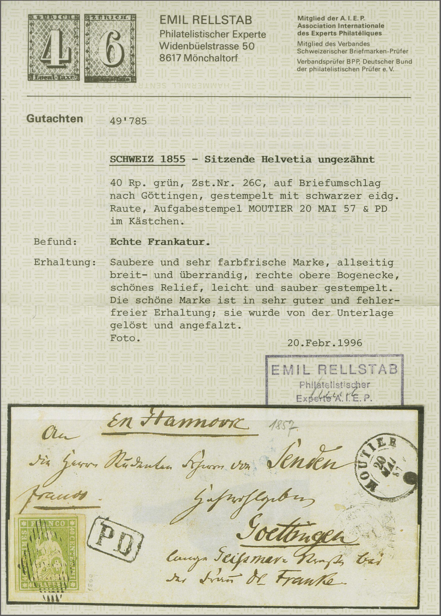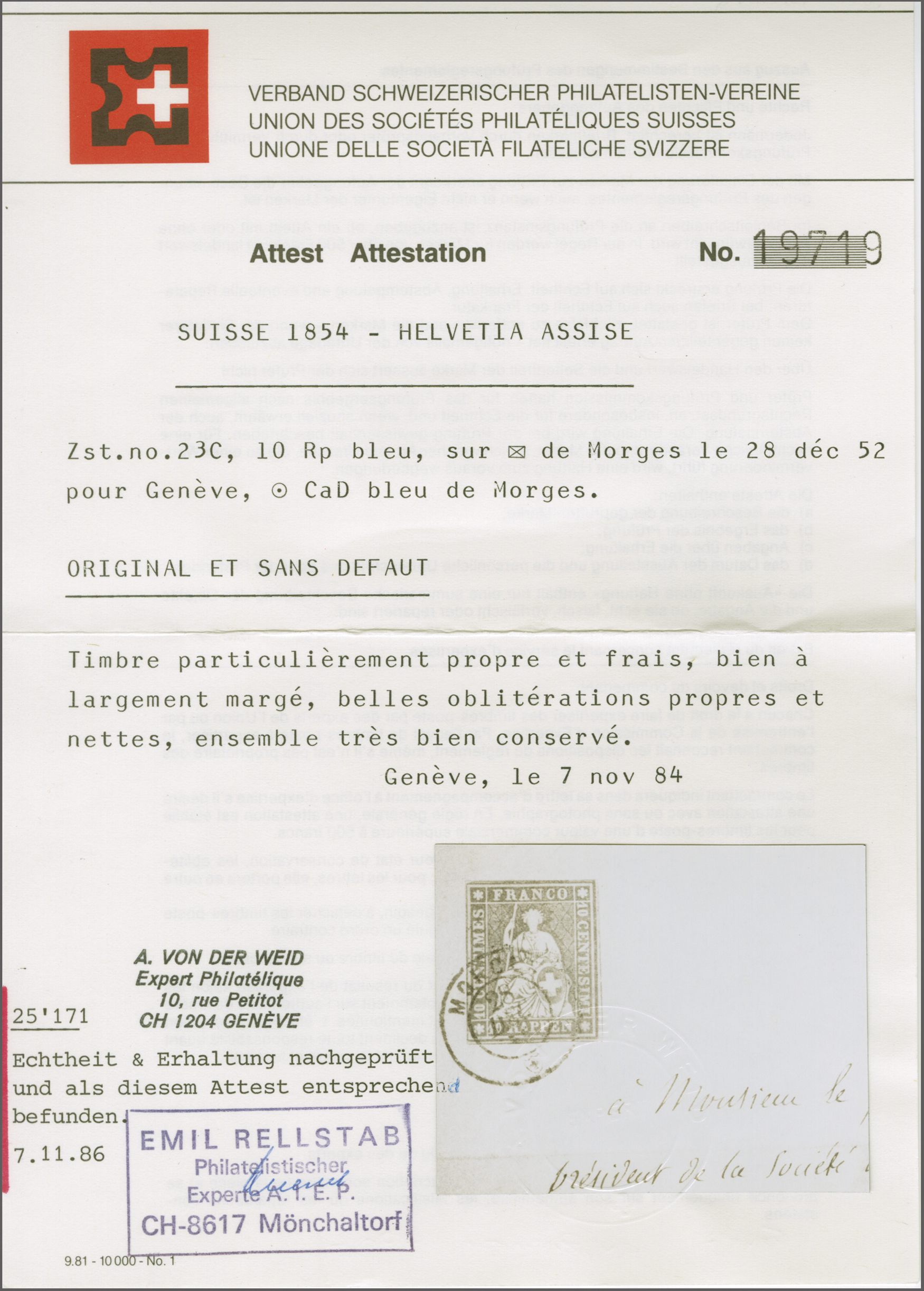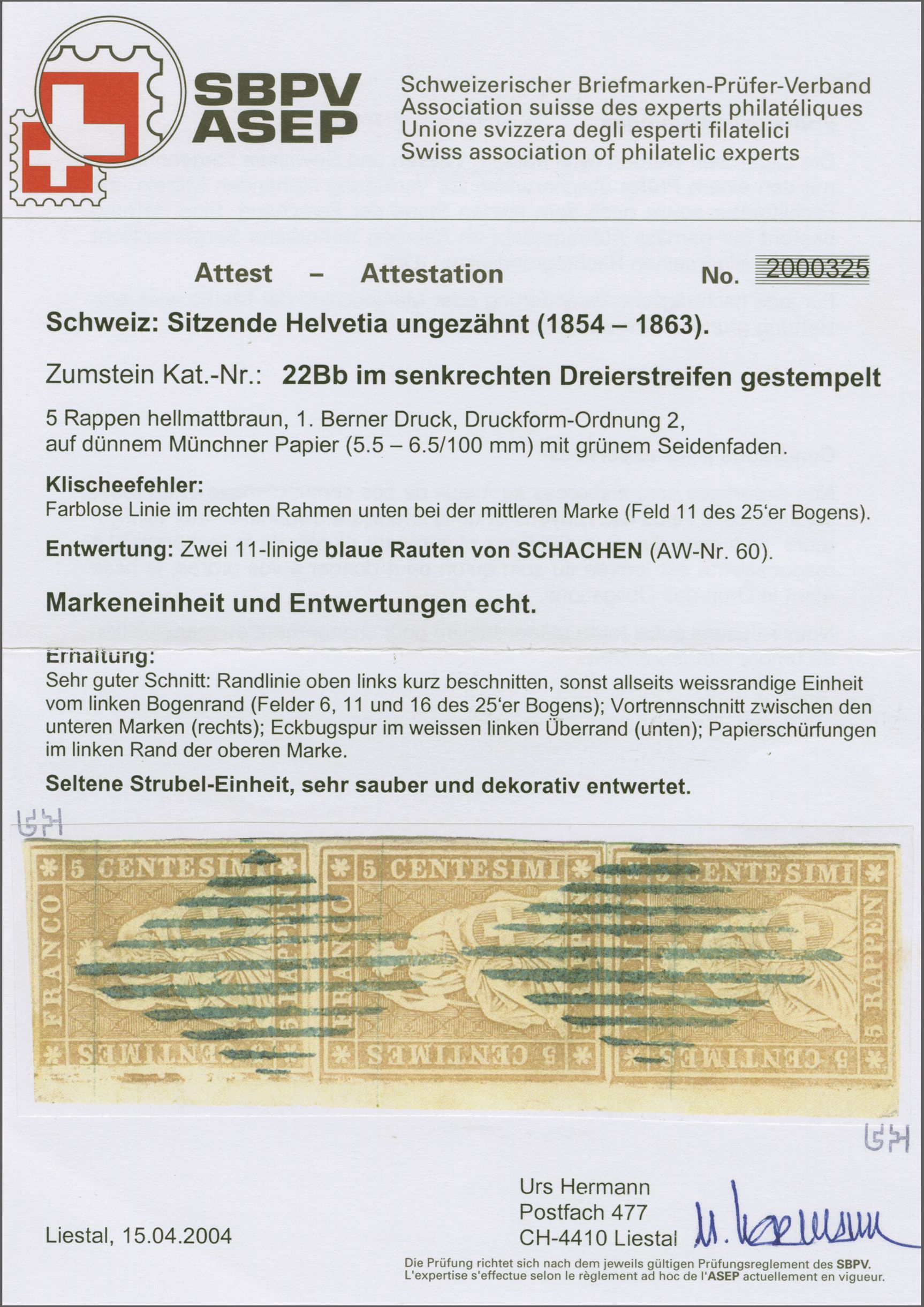 Provenienz: Sammlung "Chaumont", 82. Corinphila-Auktion, Zürich September 1991, Los 1311; Sammlung Peter Brodtbeck, 96. Corinphila-Auktion, Zürich März 1997, Los 538; Spezialsammlung Entwertungen auf Rayon- und Strubelmarken, 176. Corinphila-Auktion,