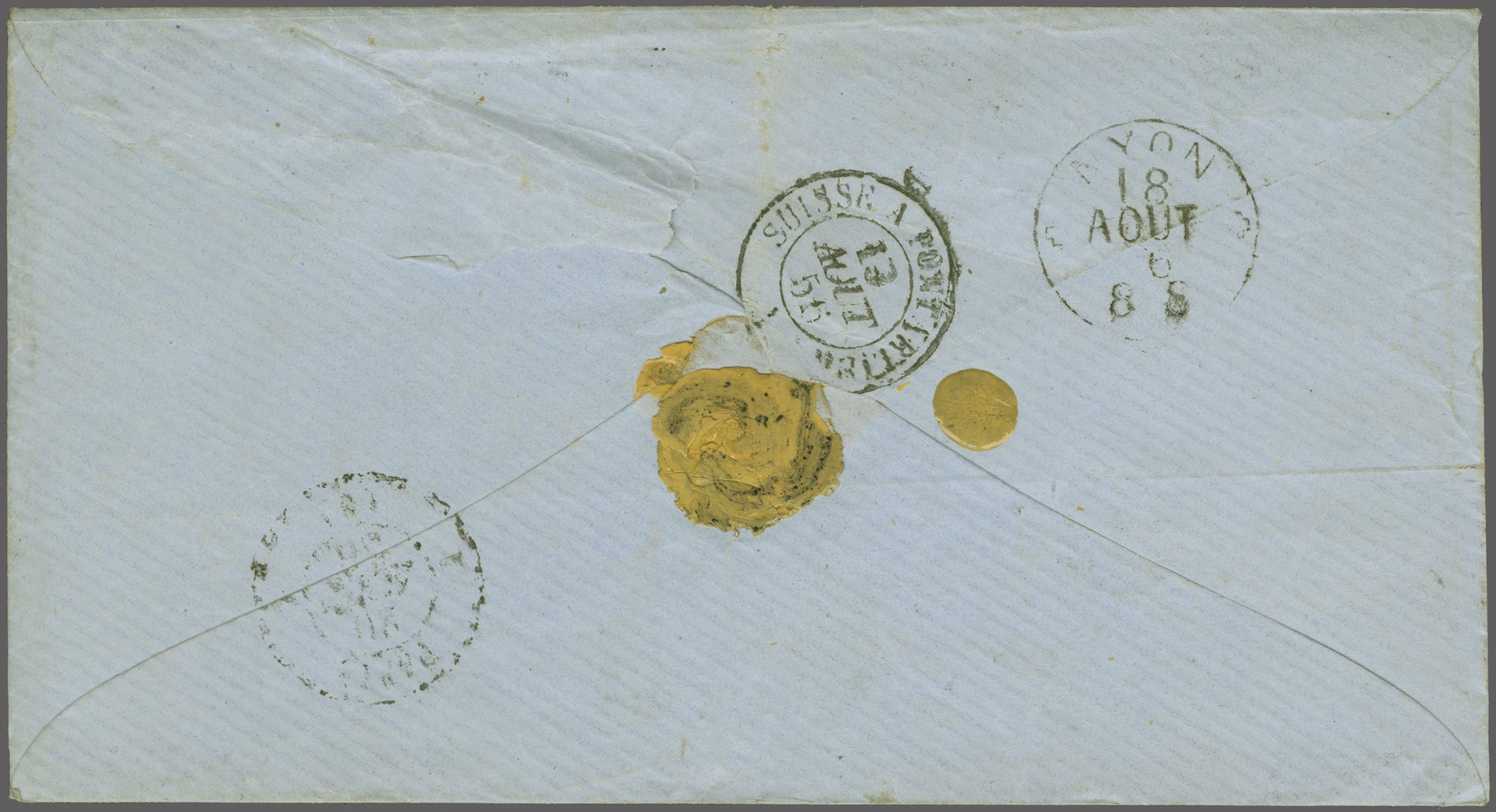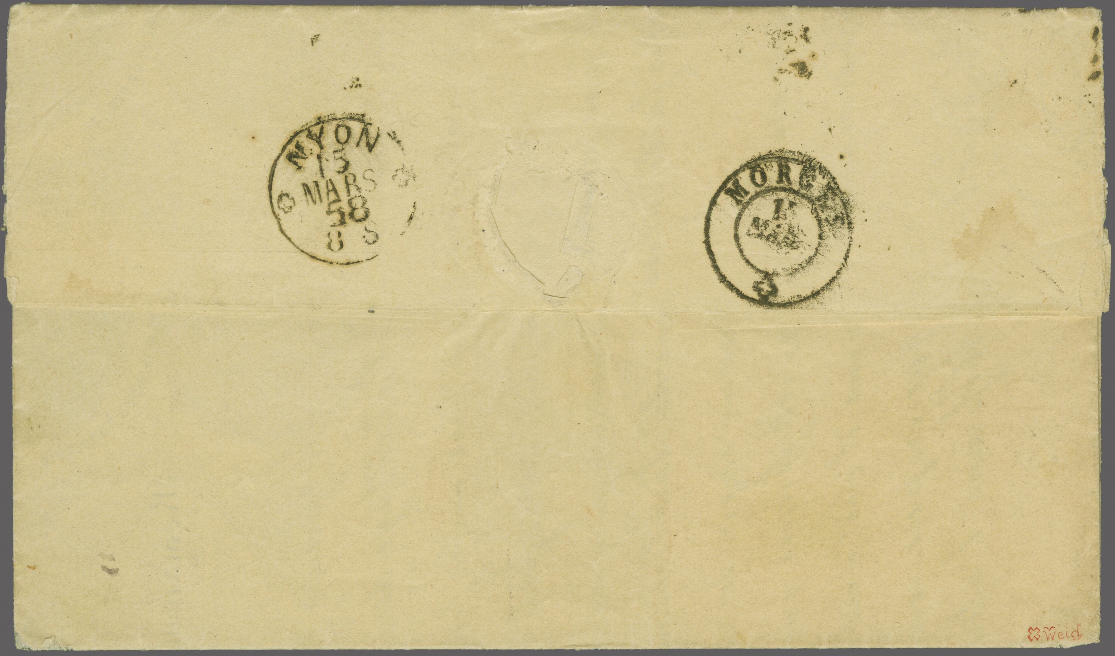 Ankunftsstp. vom 20. August. Ein ansprechender Auslandsbrief, mit 35 Rappen portogerecht frankiert für einen Brief aus dem 1. Schweizer Rayon in die übrigen Departemente gemäss Tarif vom 14. September 1854. Attest Eichele (2008) (Image 1)