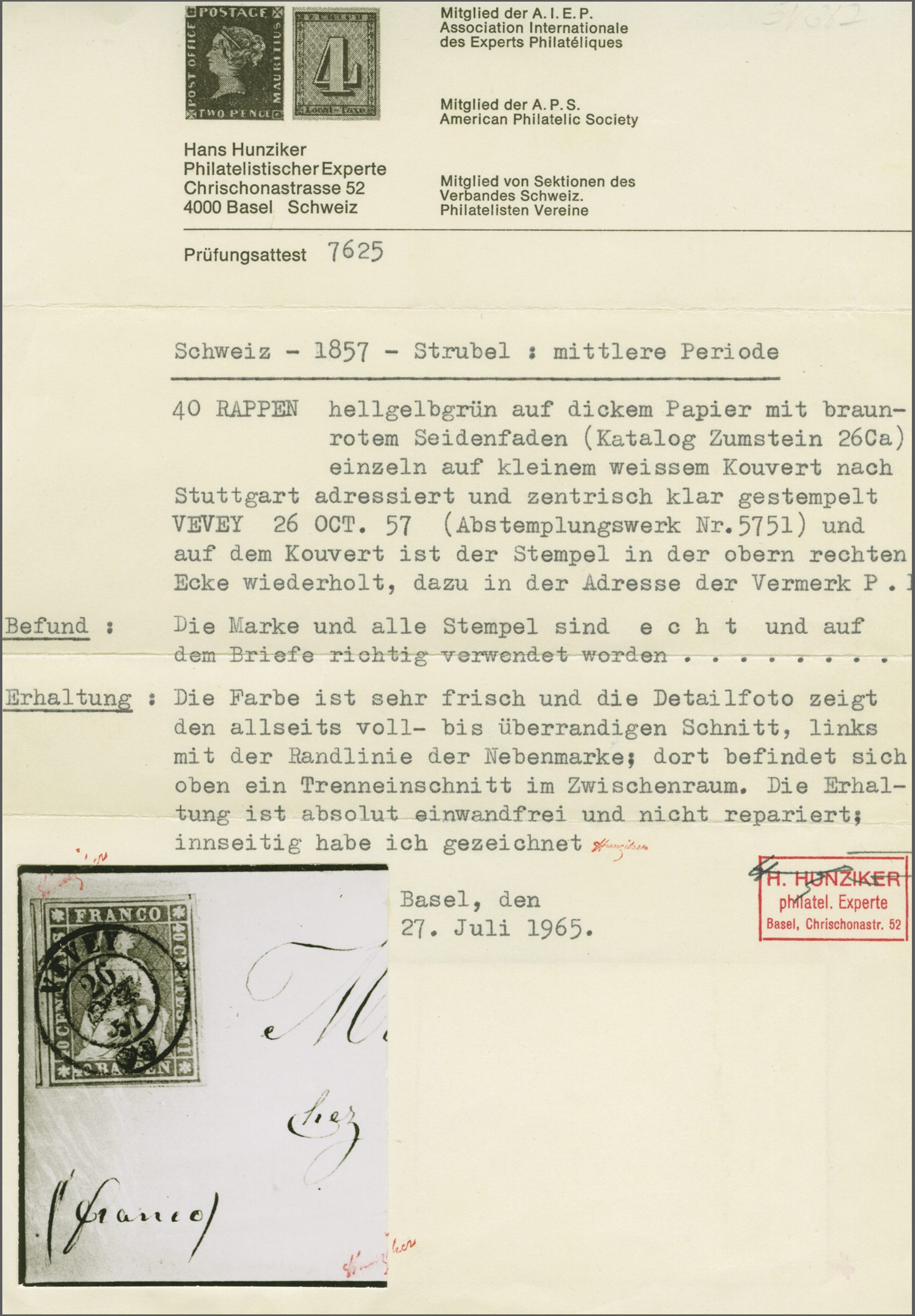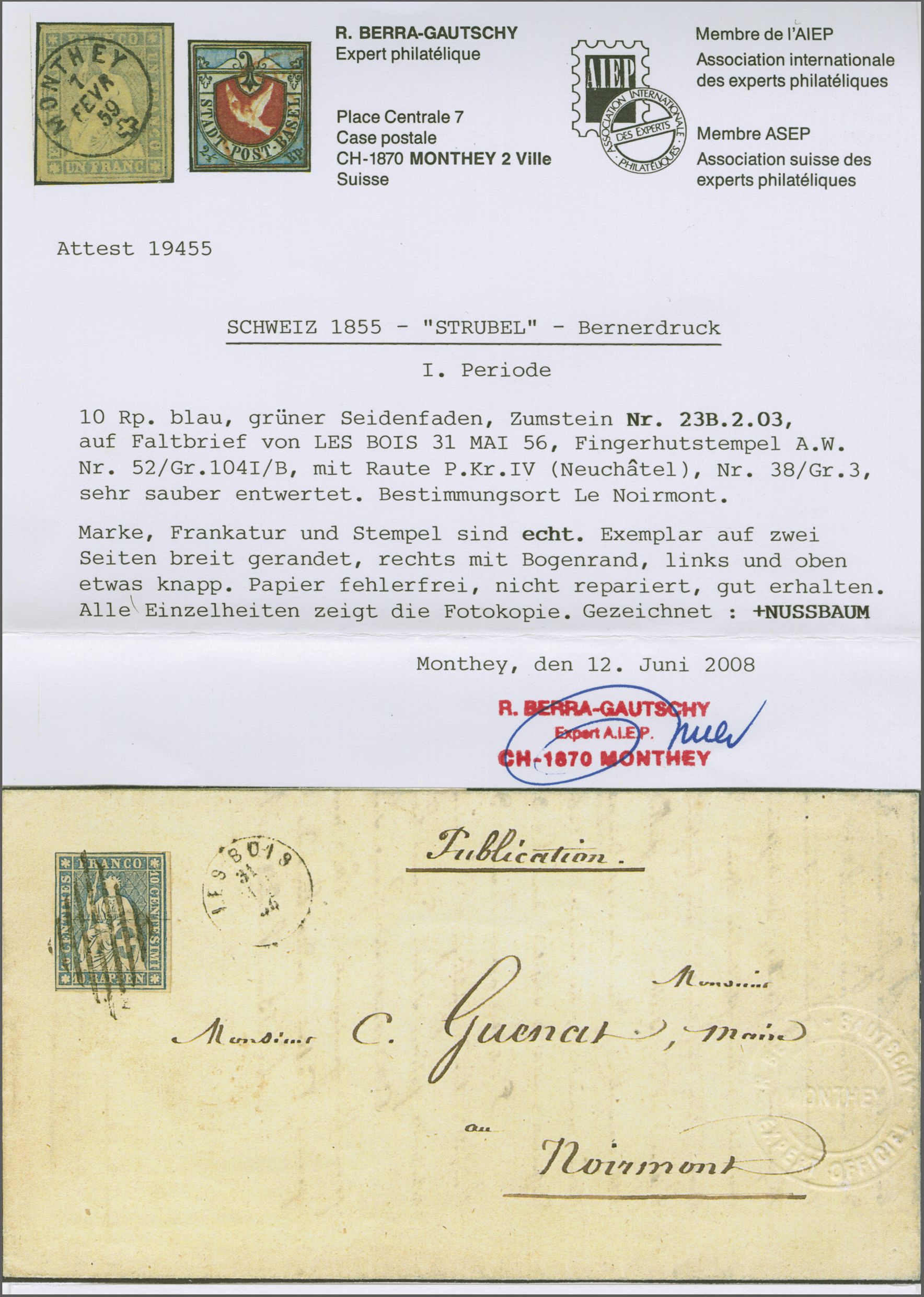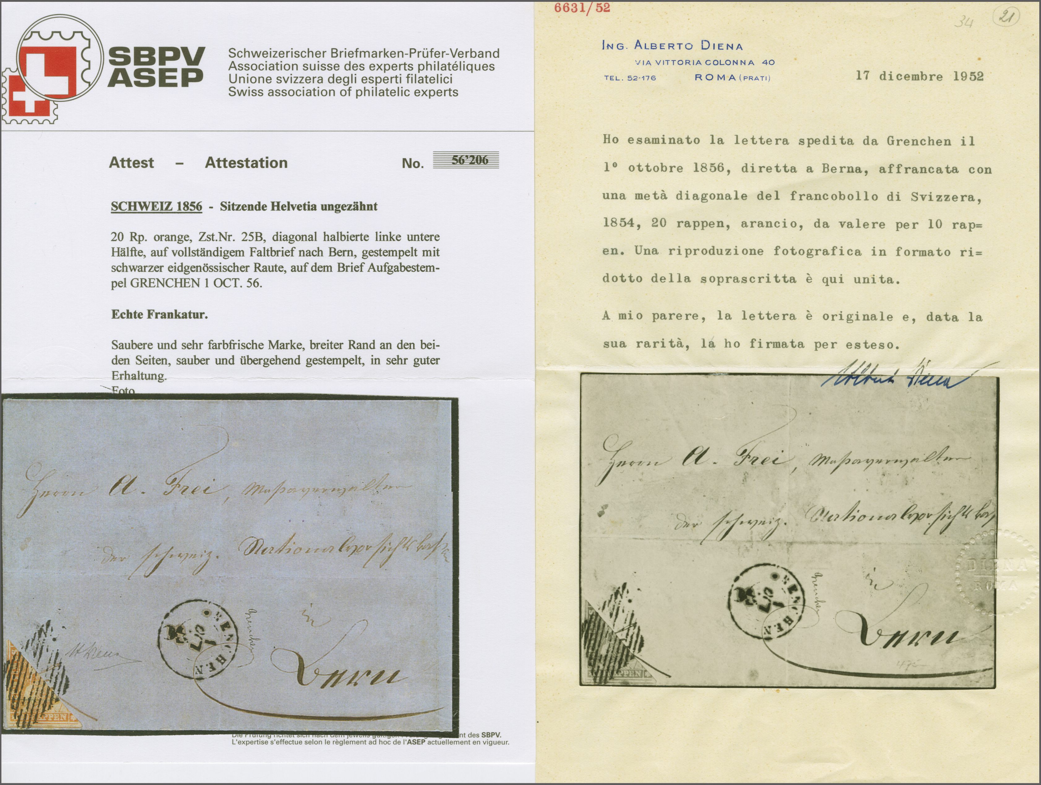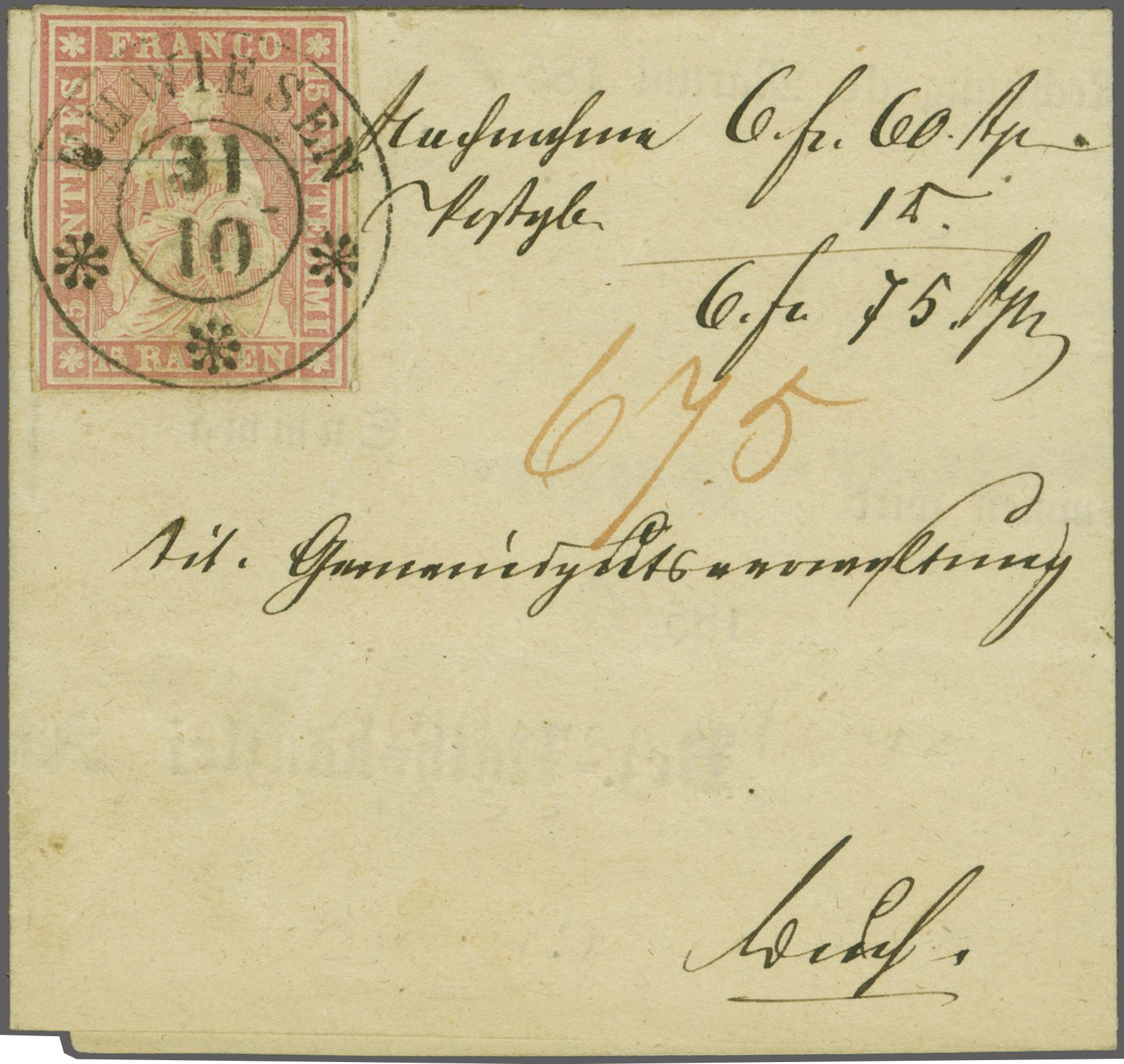 Grenchen vom 2. Oktober 1852, was die Annahme der Halbierung mangels 10 Rappen-Marken unterstreicht. Provenienz: Sammlung "Silvaplana", 110. Corinphila-Auktion, Zürich Mai 1999, Los 1275 (Image 1)