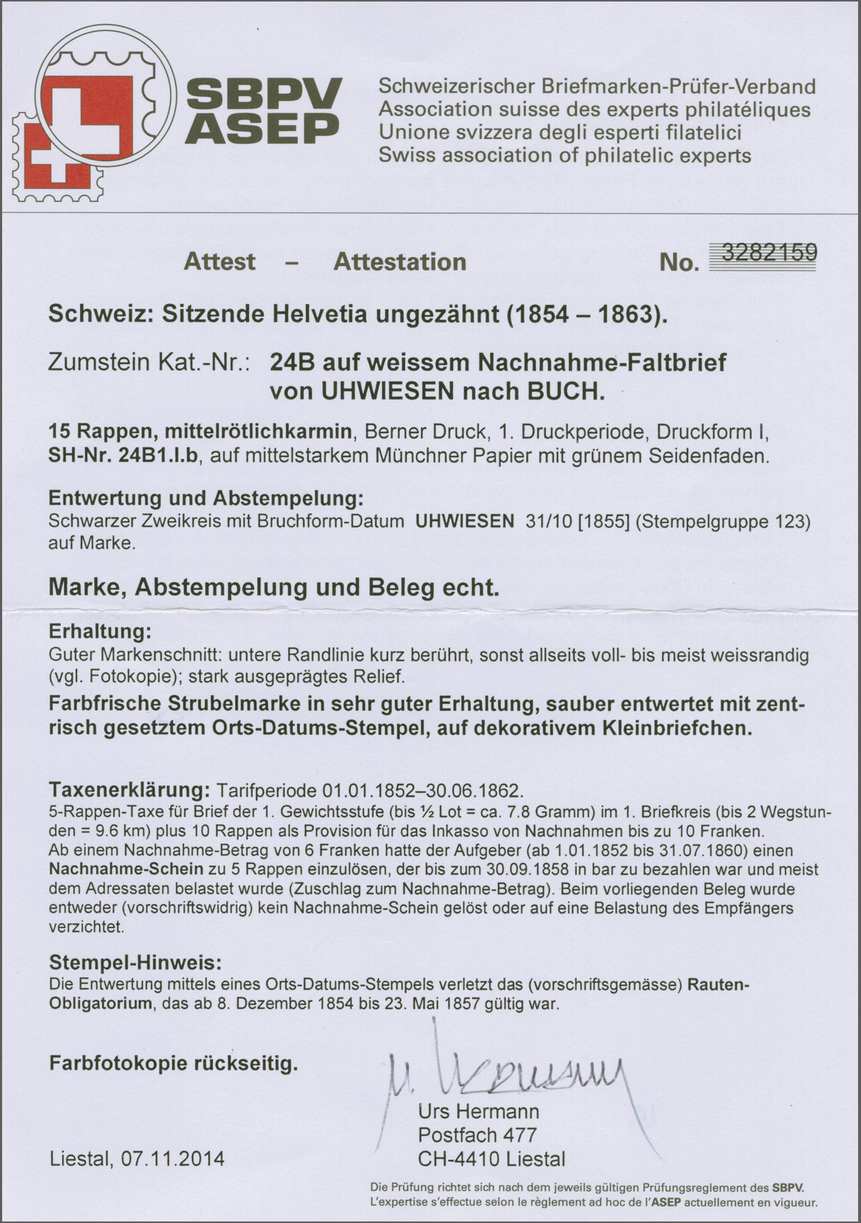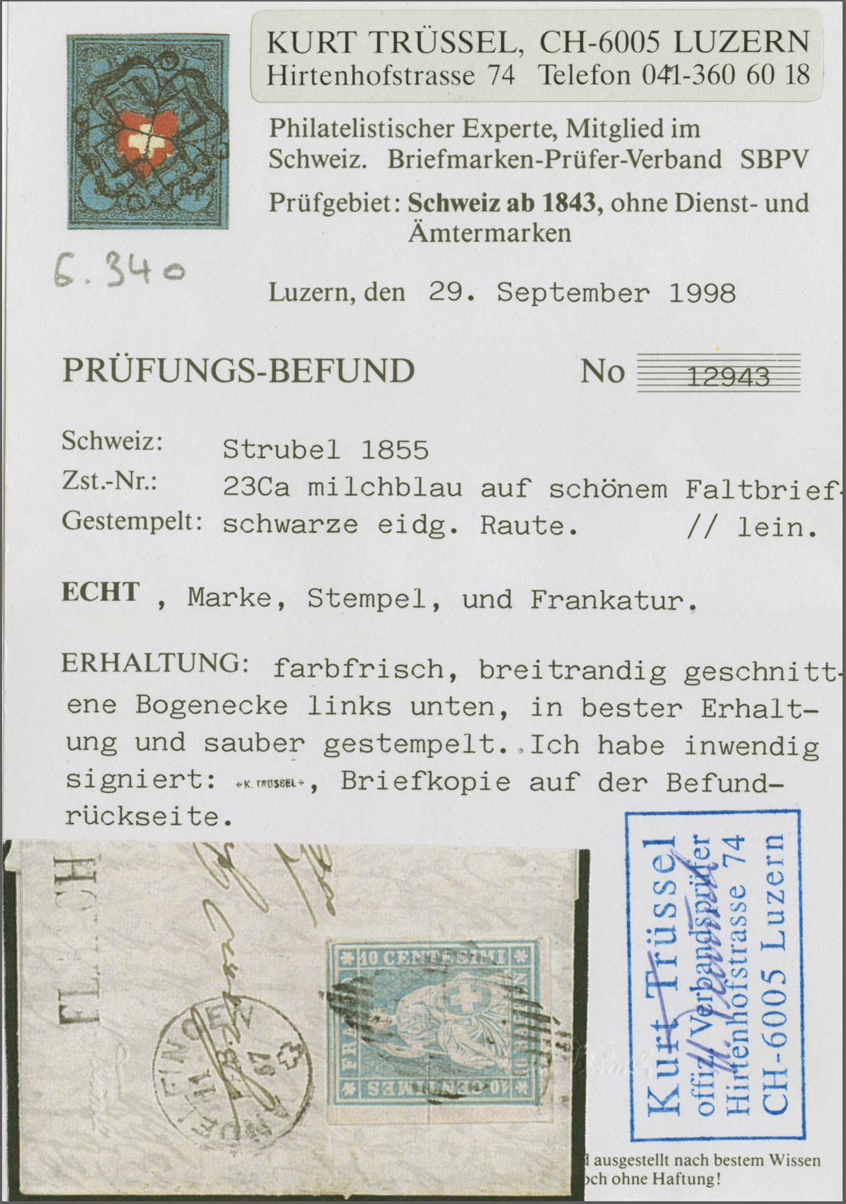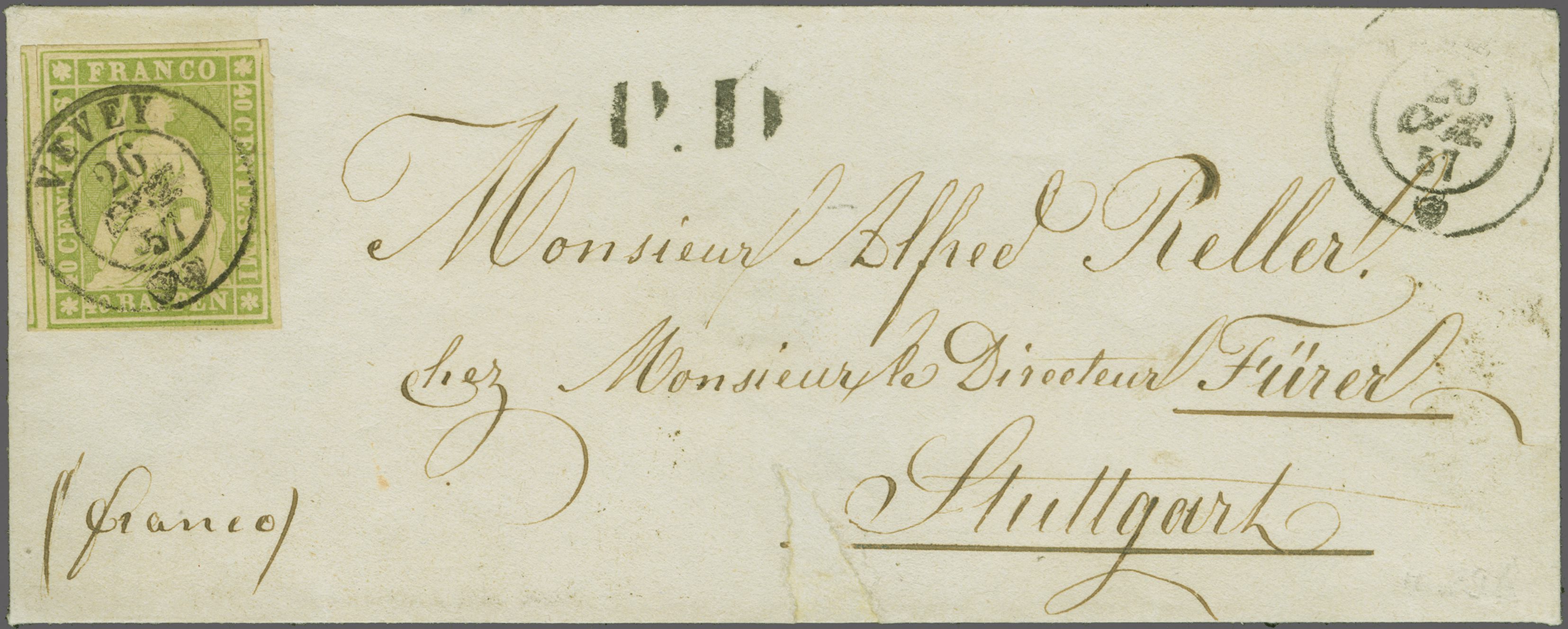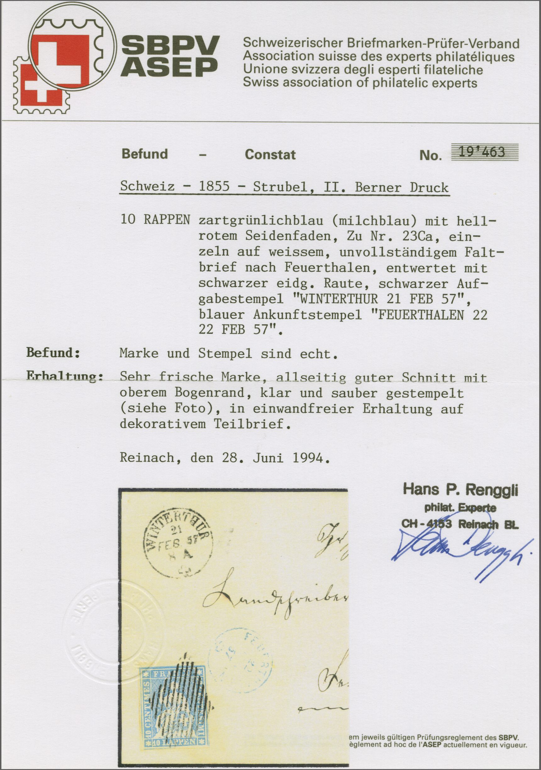 Grenchen vom 2. Oktober 1852, was die Annahme der Halbierung mangels 10 Rappen-Marken unterstreicht. Provenienz: Sammlung "Silvaplana", 110. Corinphila-Auktion, Zürich Mai 1999, Los 1275 (Image 1)