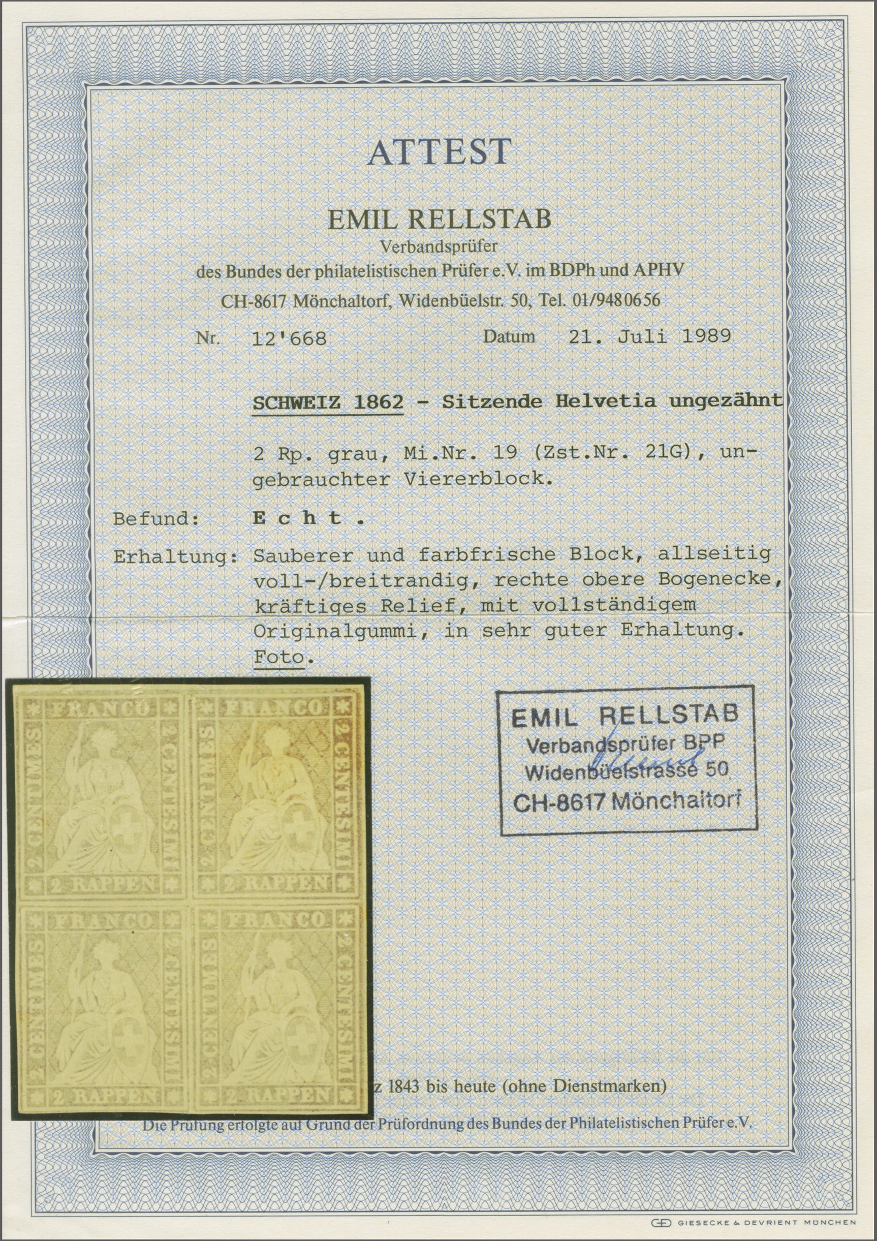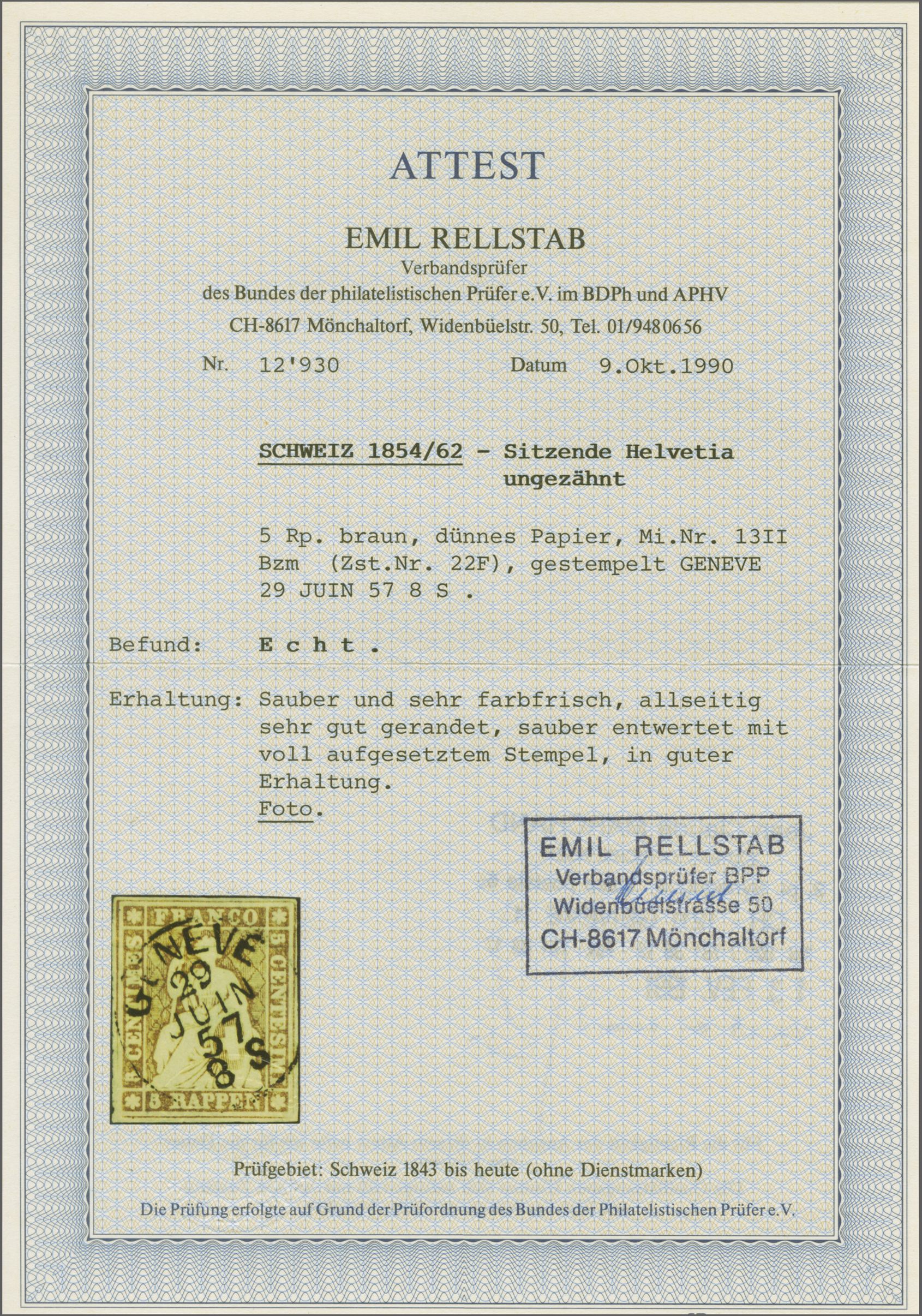 seltene Einheit. Attest Rellstab (1989). SBK=CHF 5'400 (Image 1)