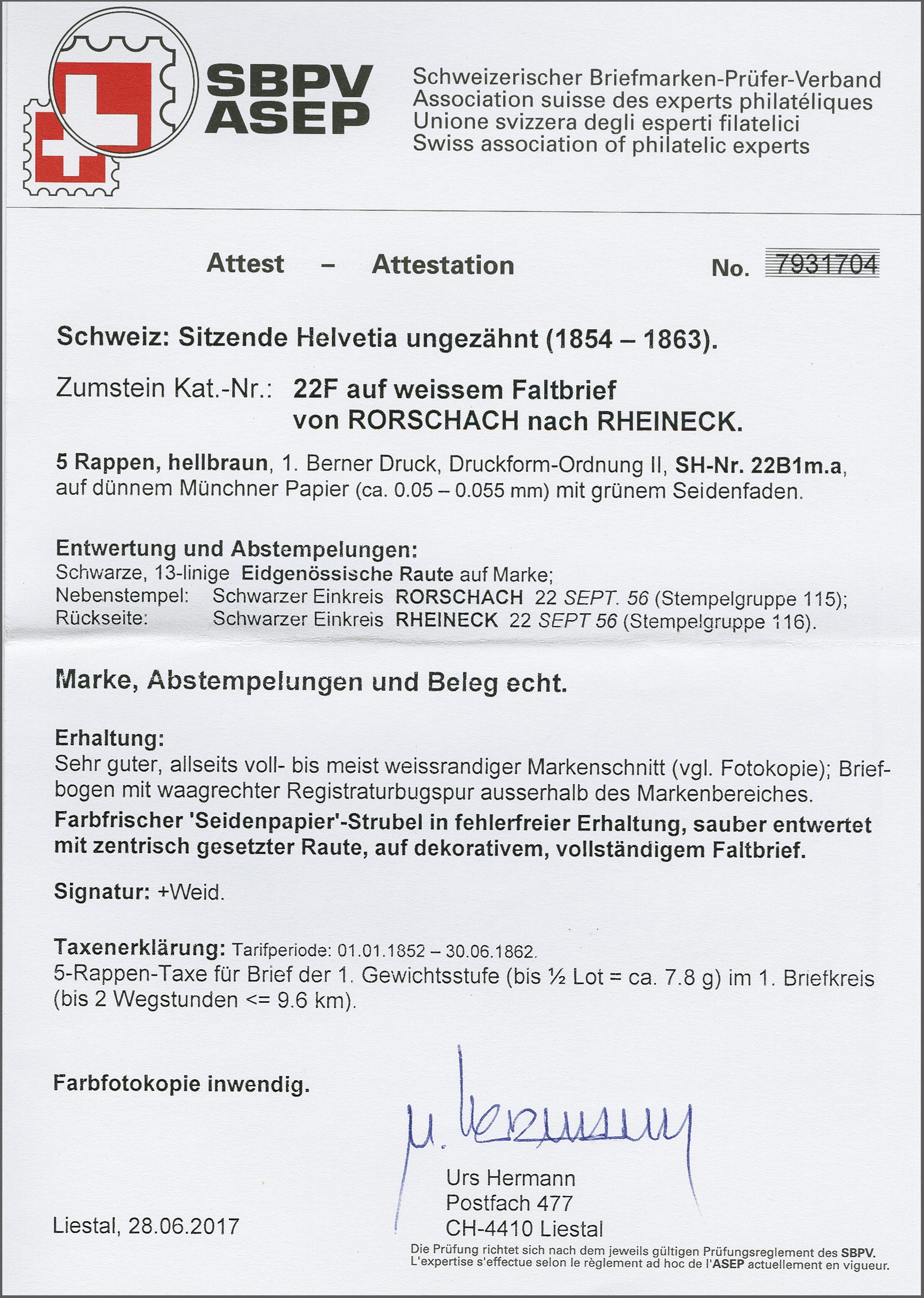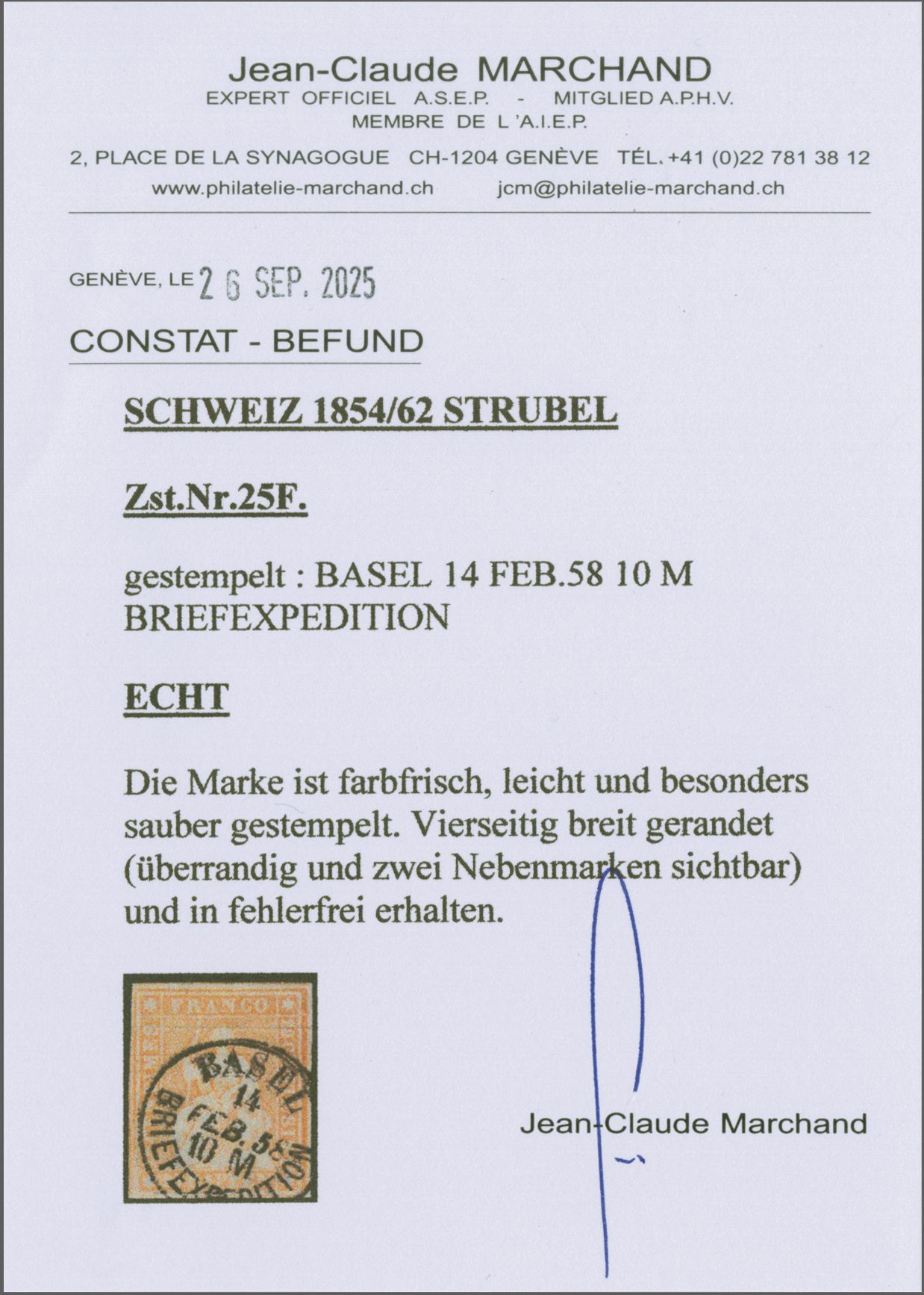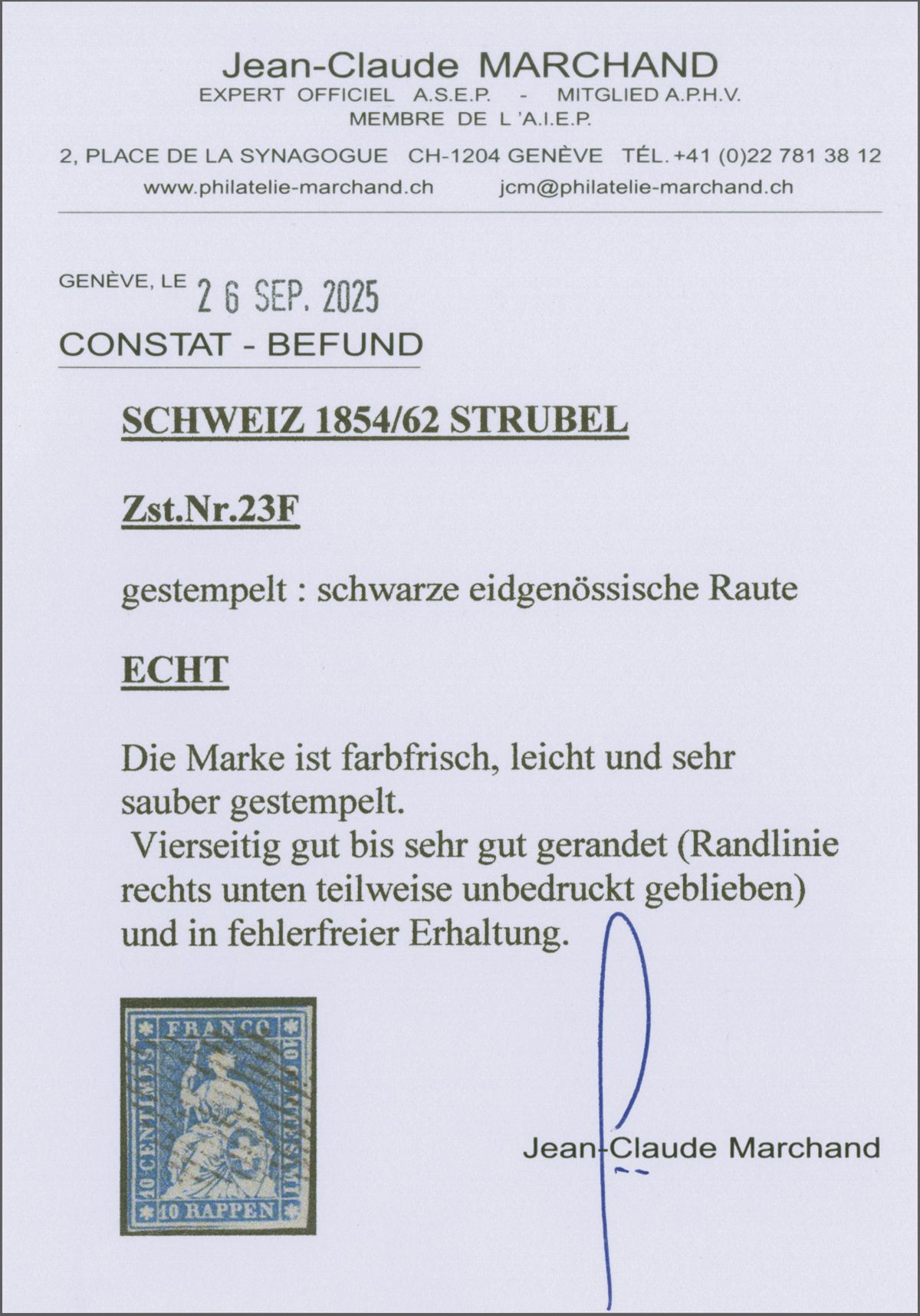 Attest Marchand (2016) SBK = CHF 6'000. Provenienz: Sammlung Rüschlikon, 212. Corinphila-Auktion (November 2016), Los 4076 (Image 1)