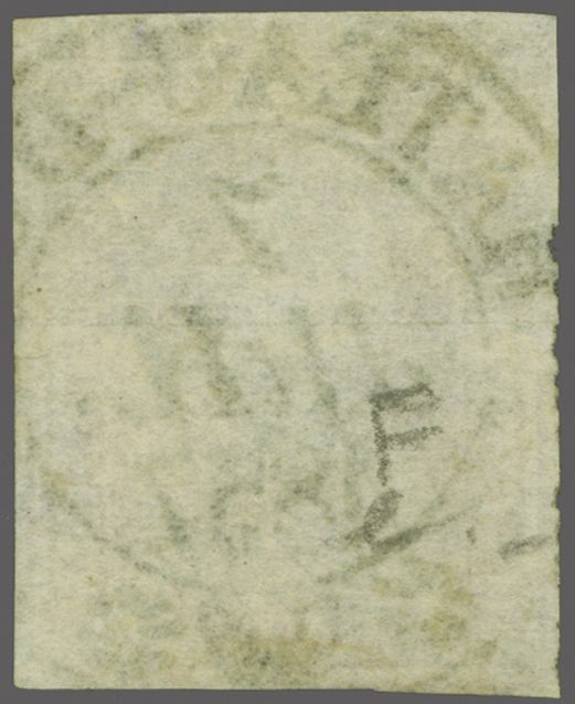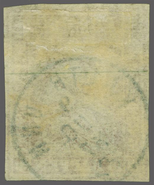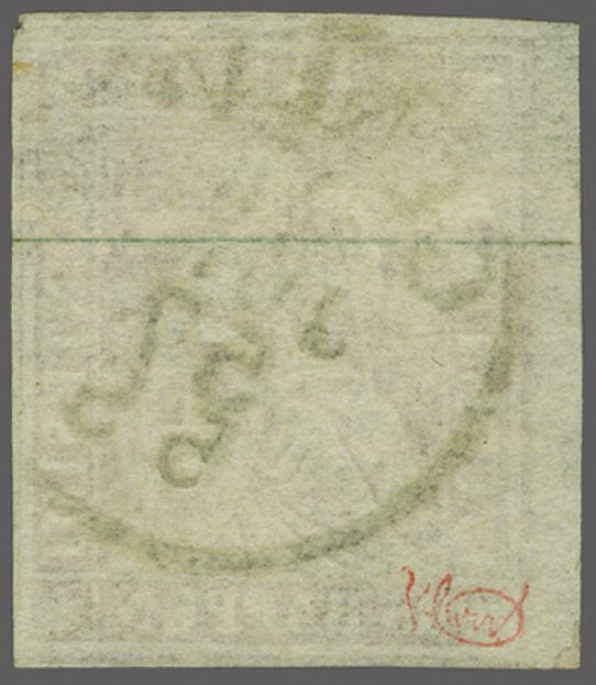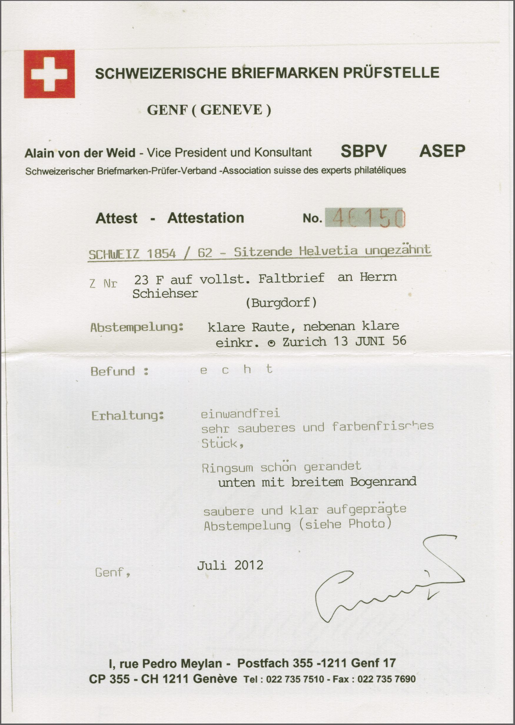 Briefstück (Marken zu Prüfungszwecken abgelöst und zurück gefalzt). Ansprechend, eine seltene Entwertung auf dieser Druckperiode, Attest von der Weid (1966) SBK = CHF 3'000 (Image 1)