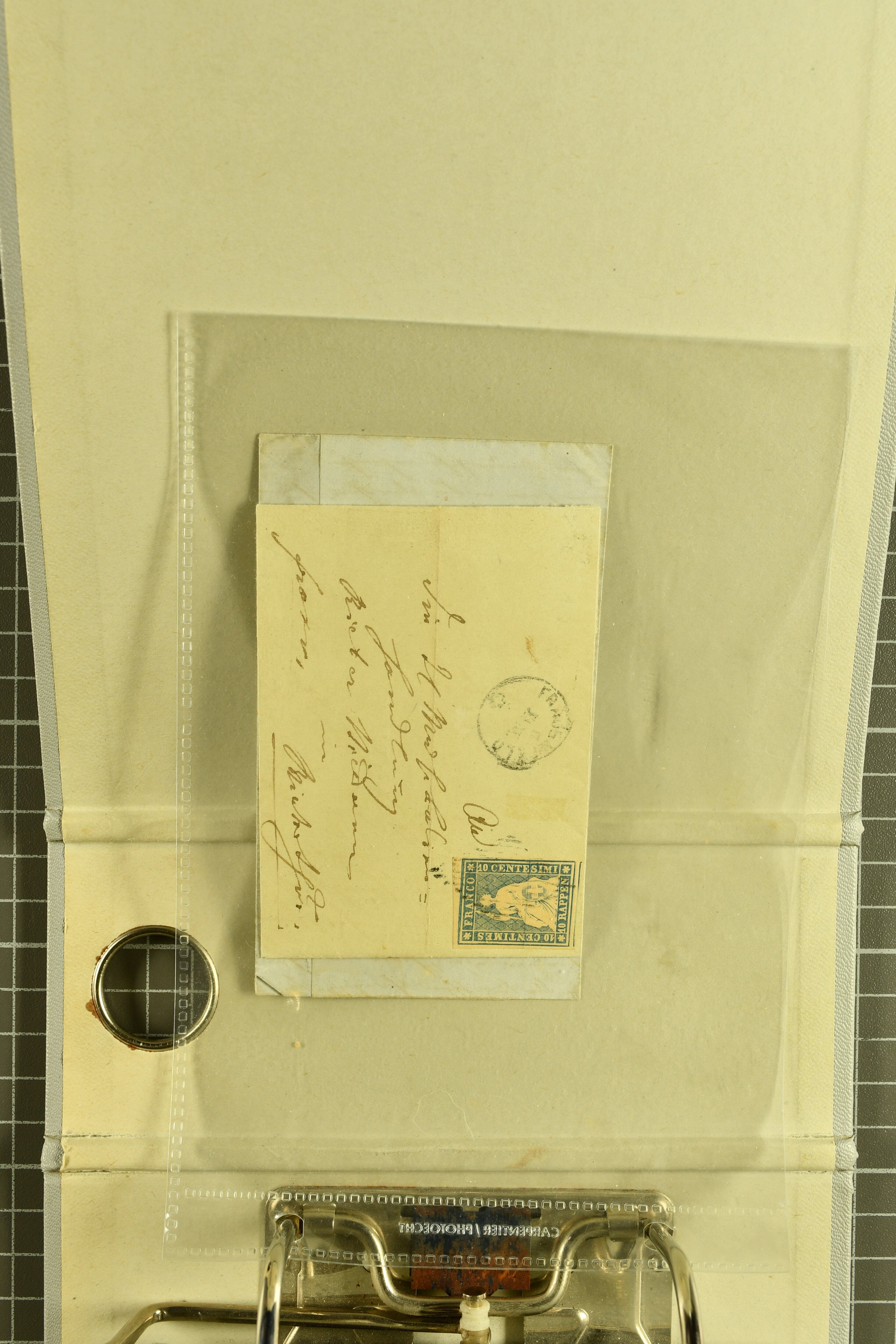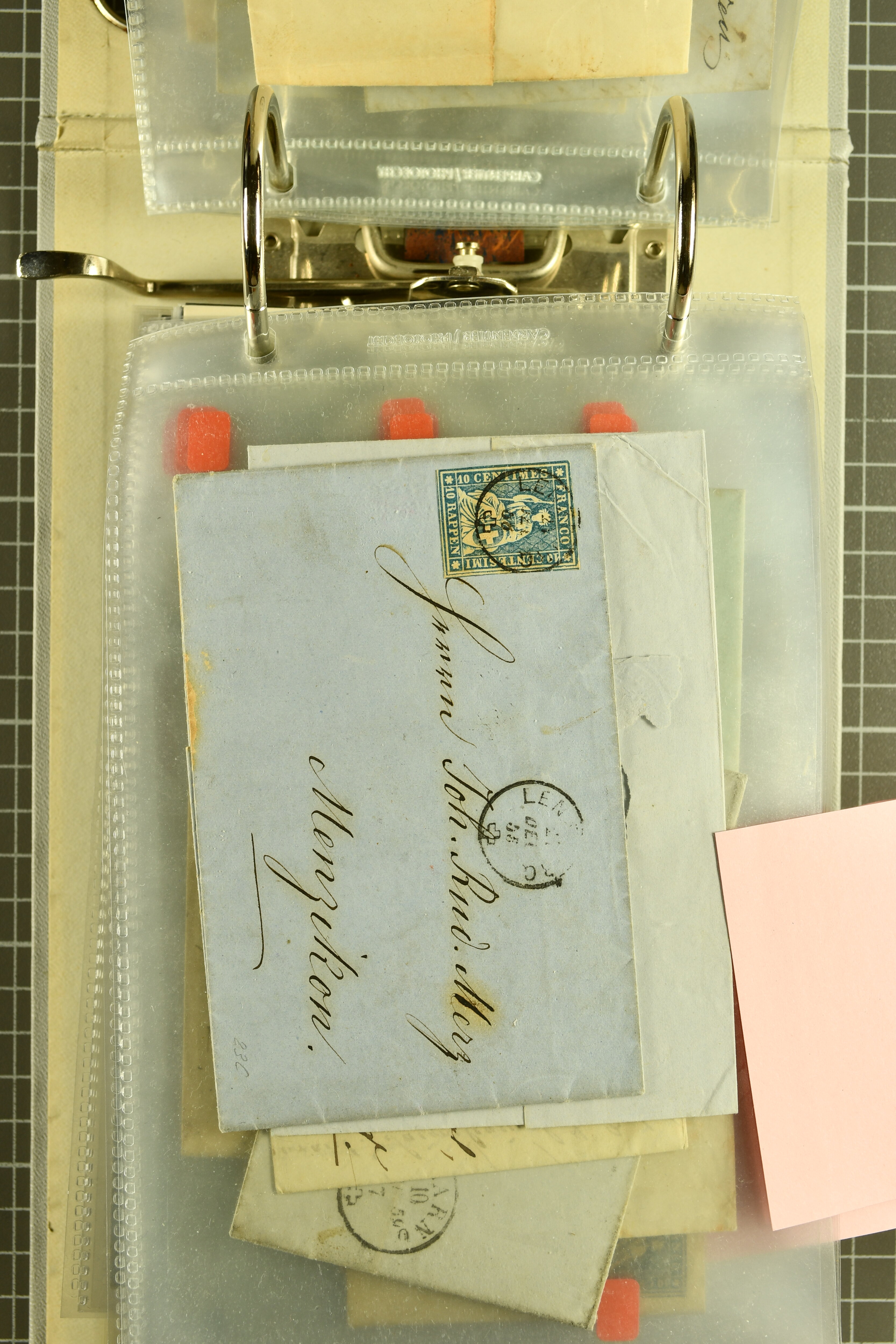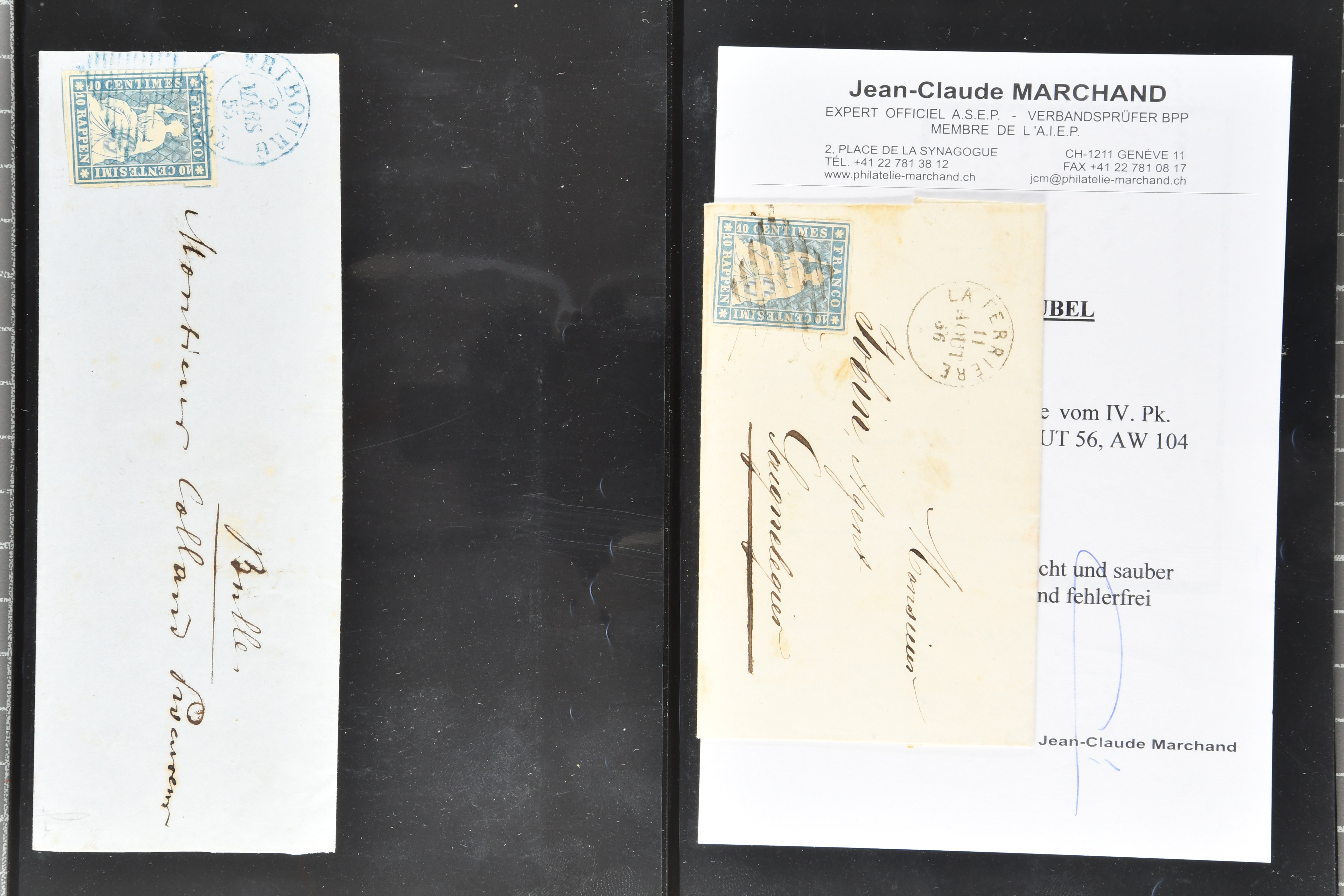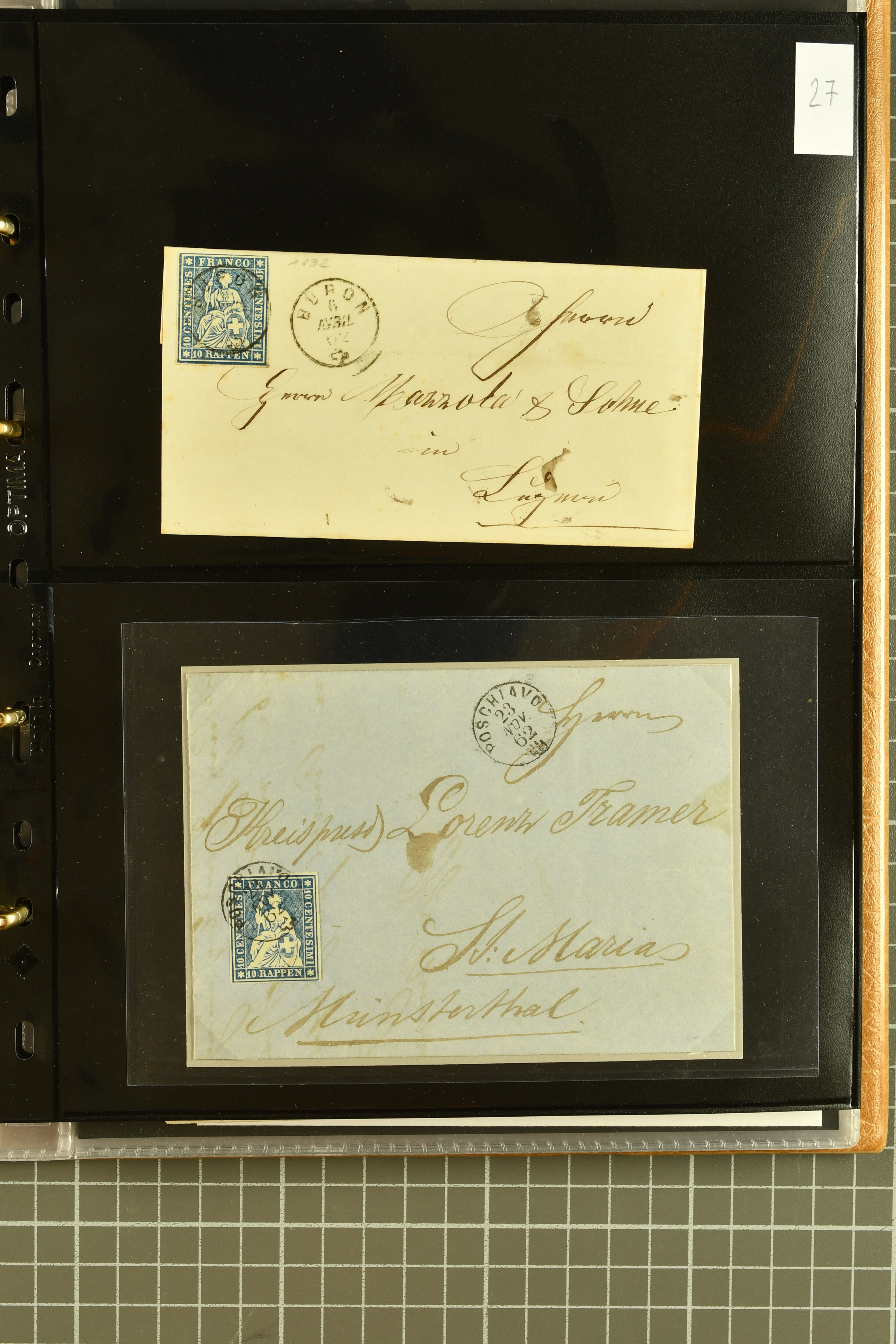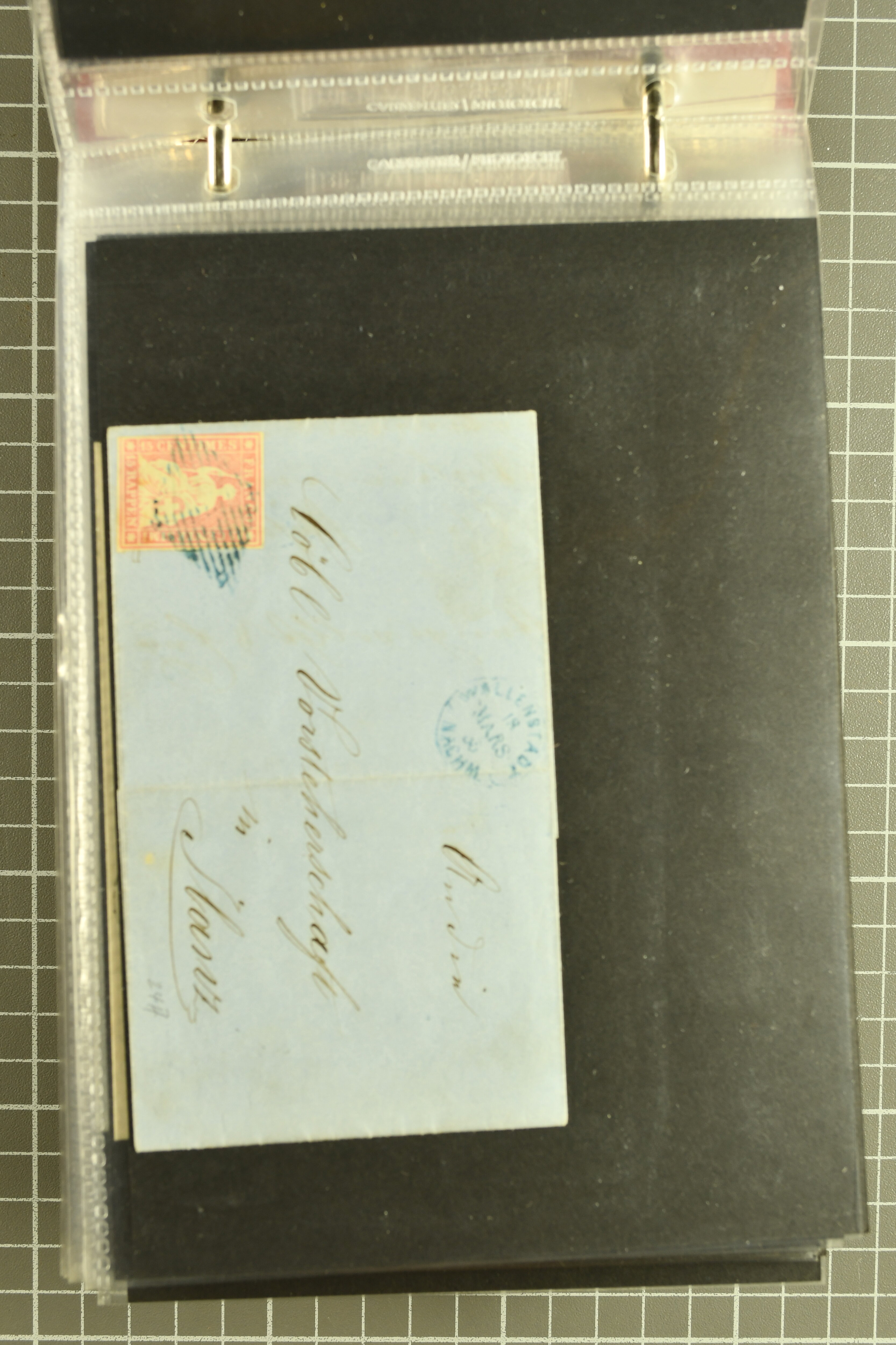 9784 cover image1854/62: Lot 26 Strubelfrankaturen. Dabei interessante Kombinationen wie 20 Rp. orange (SBK 25D) in seltener Mischfrankatur mit Sitzender Helvetia 10 Rp. blau (SBK 31) auf Faltbrief von Châtel-St-Denis nach Turin, Italien oder Dreifarbenfrankatur 5 Rp. braun, 10 Rp. blau und 15 Rp. karmin (SBK 22D+23Cc+24D) als 30 Rp. Porto für einen eingeschriebenen Brief im 3. Briefkreis von Lausanne nach Wikon, seltene Auflagen wie 10 Rp. lebhaftpreussischblau auf dünnem Zürcher Papier (SBK 23E/SH 23B3m) mit breitem Bogenrand rechts auf Faltbrief im 2. Briefkreis von Fleurier nach Neuchâtel, Einzelfrankaturen früher Druckperioden, Marken mit breiten Bogenrändern oder eine Handvoll Auslandsfrankaturen nach Deutschland, Frankreich oder Italien. Unterschiedliche Erhaltung; zwei Befunde, drei Atteste. SBK=CHF 7'000+ (Image 1) (Image 2) (Image 3) (Image 4) (Image 5) (Image 6) (Image 7) (Image 8) (Image 9) (Image 10) (Image 11) (Image 12) (Image 13) (Image 14) (Image 15) (Image 16)