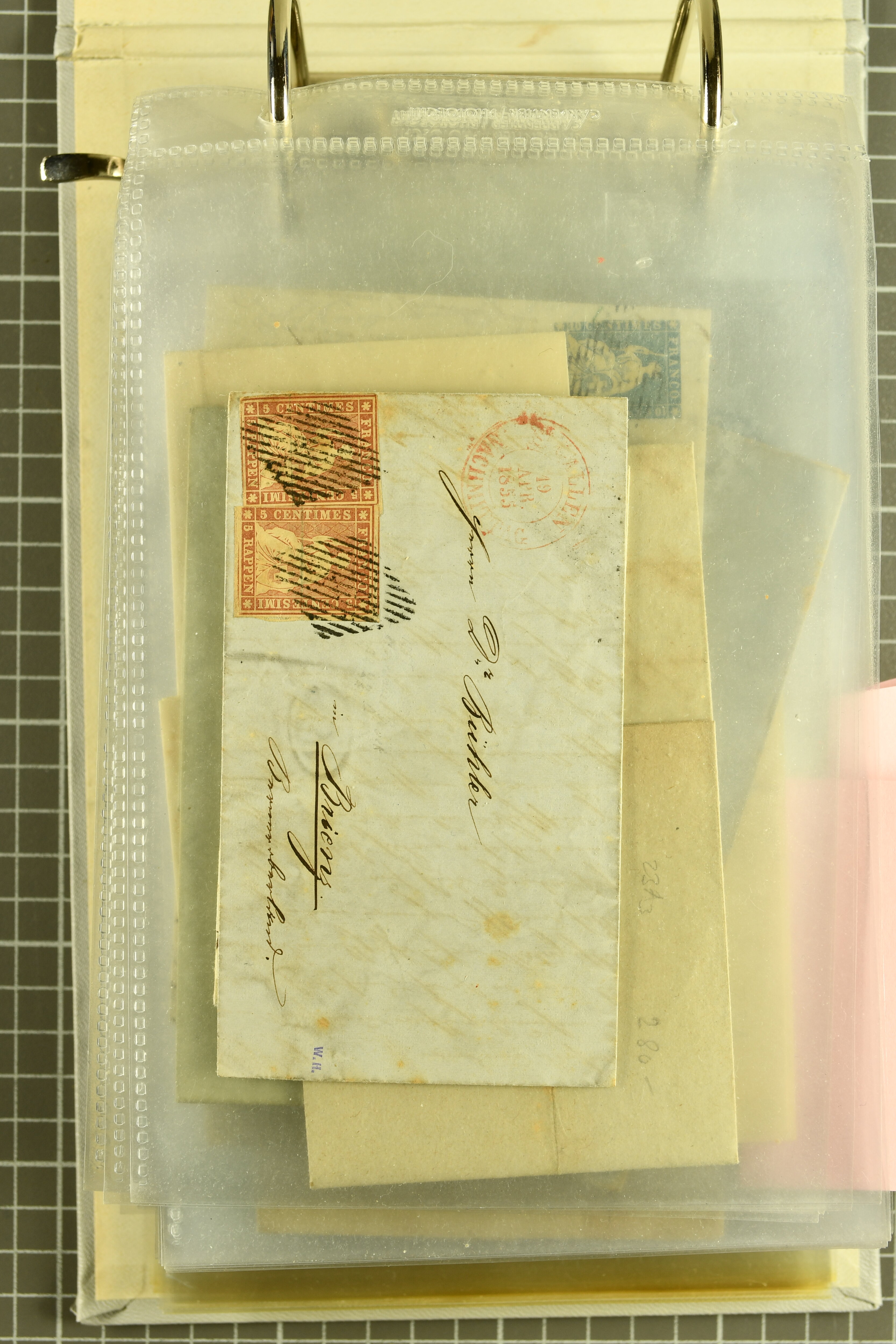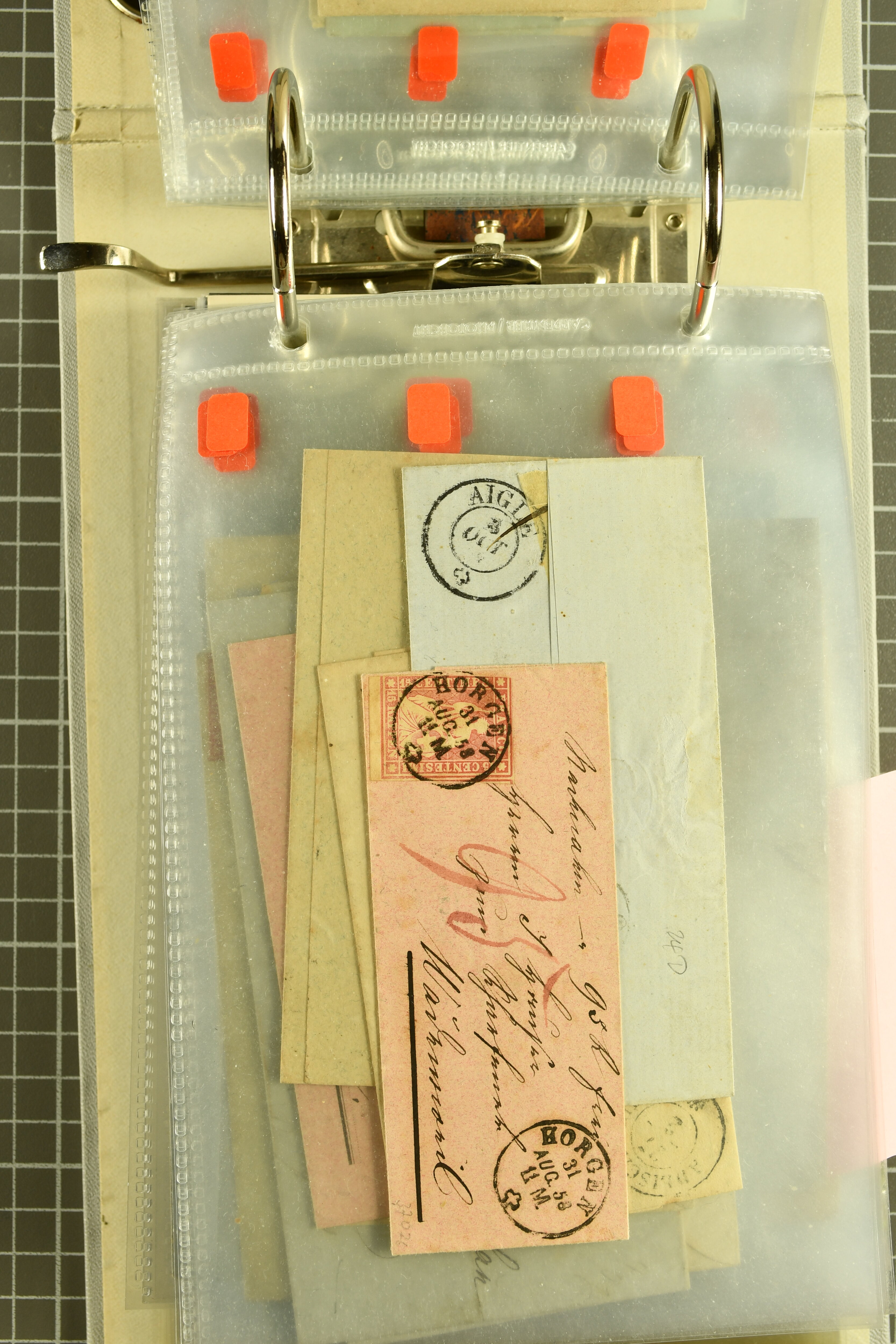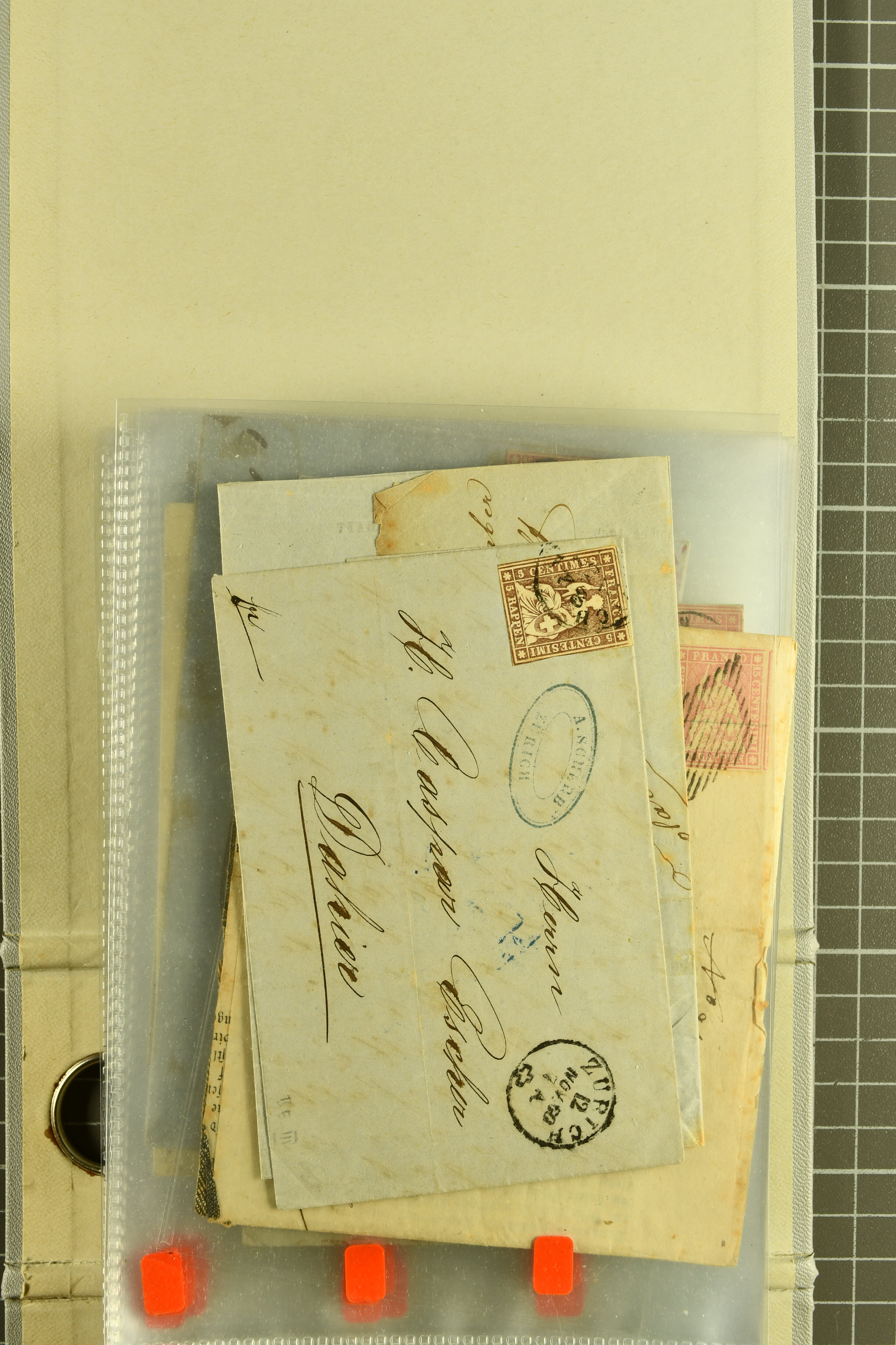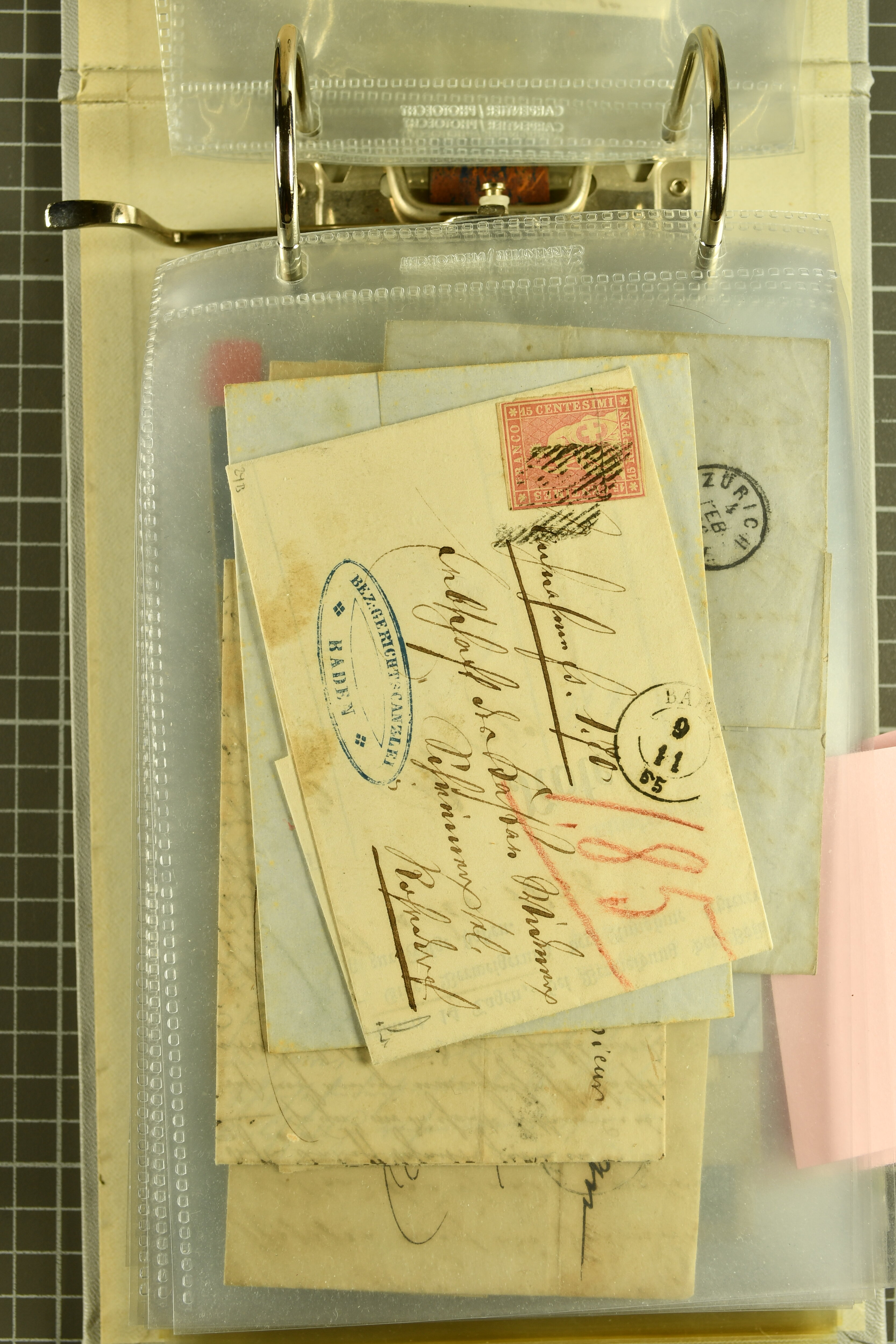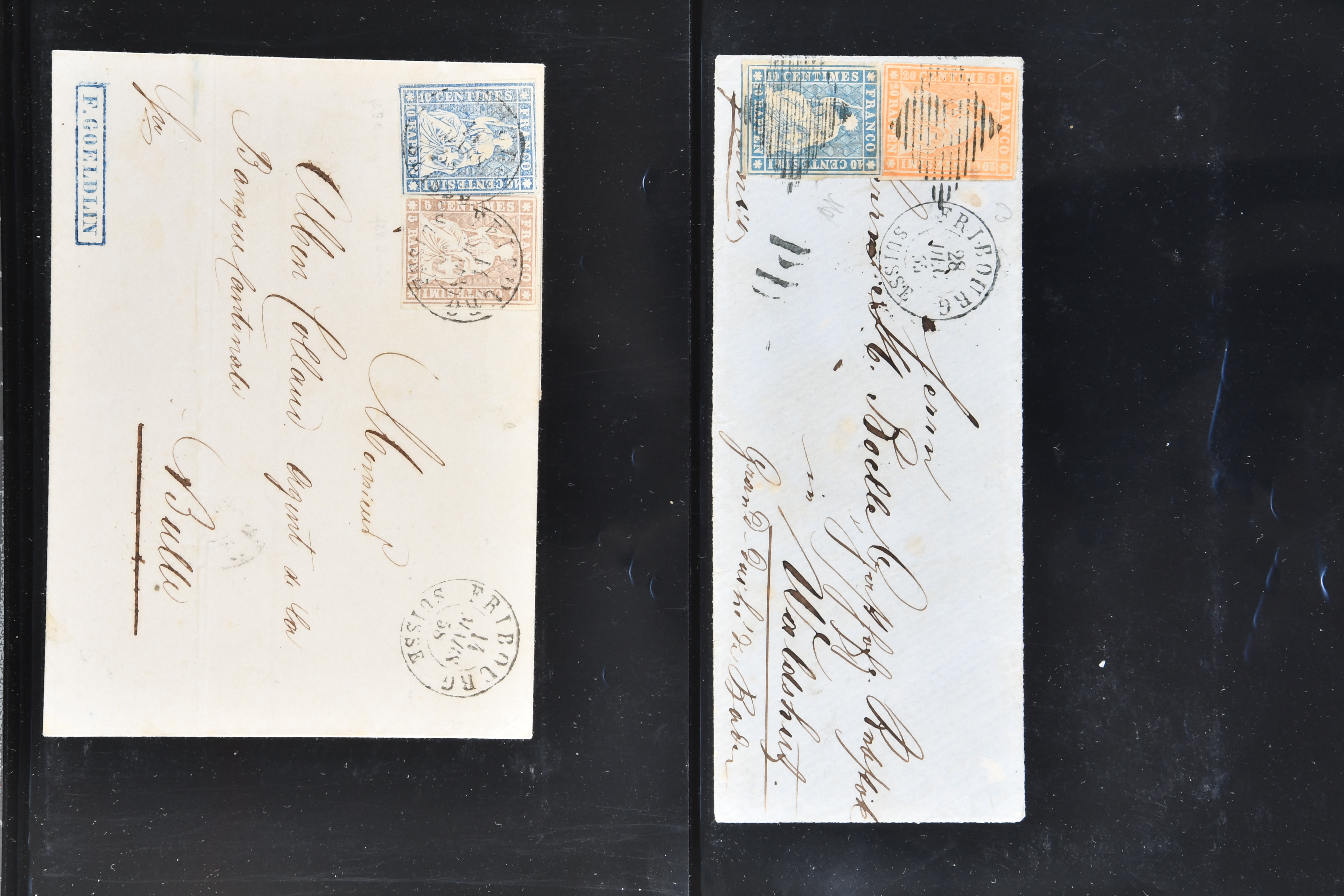 9784 cover image1854/62: Lot 26 Strubelfrankaturen. Dabei interessante Kombinationen wie 20 Rp. orange (SBK 25D) in seltener Mischfrankatur mit Sitzender Helvetia 10 Rp. blau (SBK 31) auf Faltbrief von Châtel-St-Denis nach Turin, Italien oder Dreifarbenfrankatur 5 Rp. braun, 10 Rp. blau und 15 Rp. karmin (SBK 22D+23Cc+24D) als 30 Rp. Porto für einen eingeschriebenen Brief im 3. Briefkreis von Lausanne nach Wikon, seltene Auflagen wie 10 Rp. lebhaftpreussischblau auf dünnem Zürcher Papier (SBK 23E/SH 23B3m) mit breitem Bogenrand rechts auf Faltbrief im 2. Briefkreis von Fleurier nach Neuchâtel, Einzelfrankaturen früher Druckperioden, Marken mit breiten Bogenrändern oder eine Handvoll Auslandsfrankaturen nach Deutschland, Frankreich oder Italien. Unterschiedliche Erhaltung; zwei Befunde, drei Atteste. SBK=CHF 7'000+ (Image 1) (Image 2) (Image 3) (Image 4) (Image 5) (Image 6) (Image 7) (Image 8) (Image 9) (Image 10) (Image 11) (Image 12) (Image 13) (Image 14) (Image 15) (Image 16)