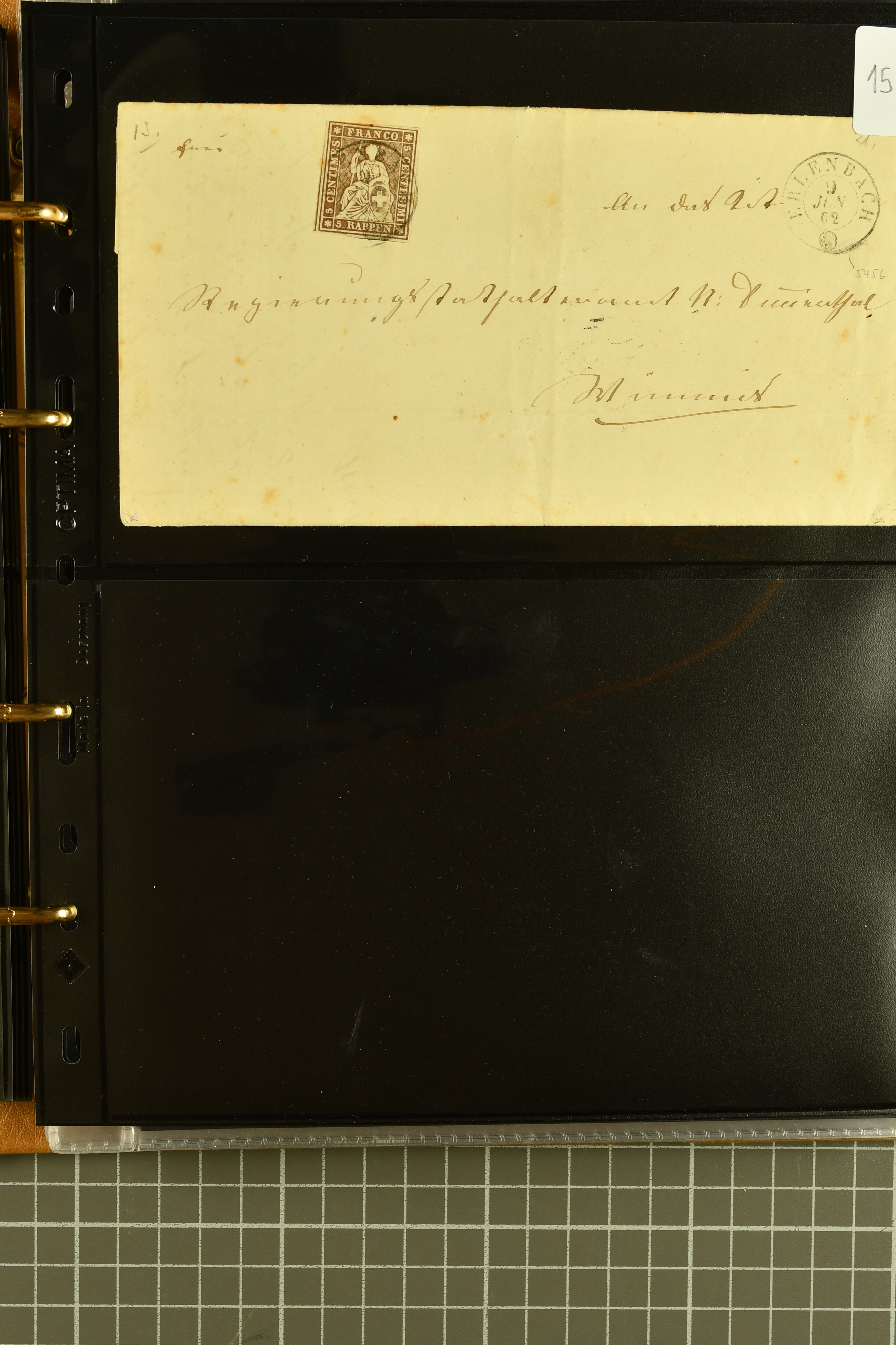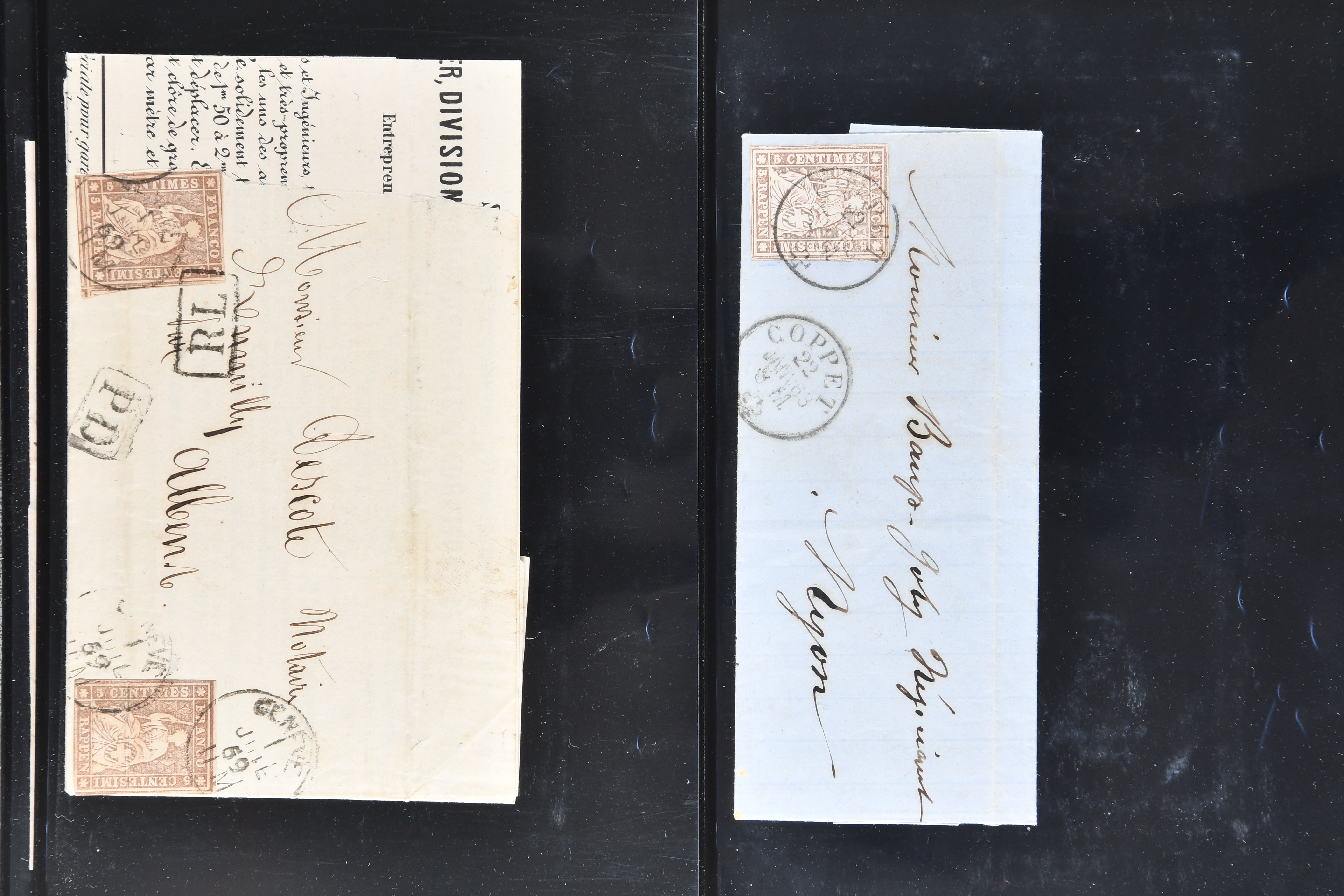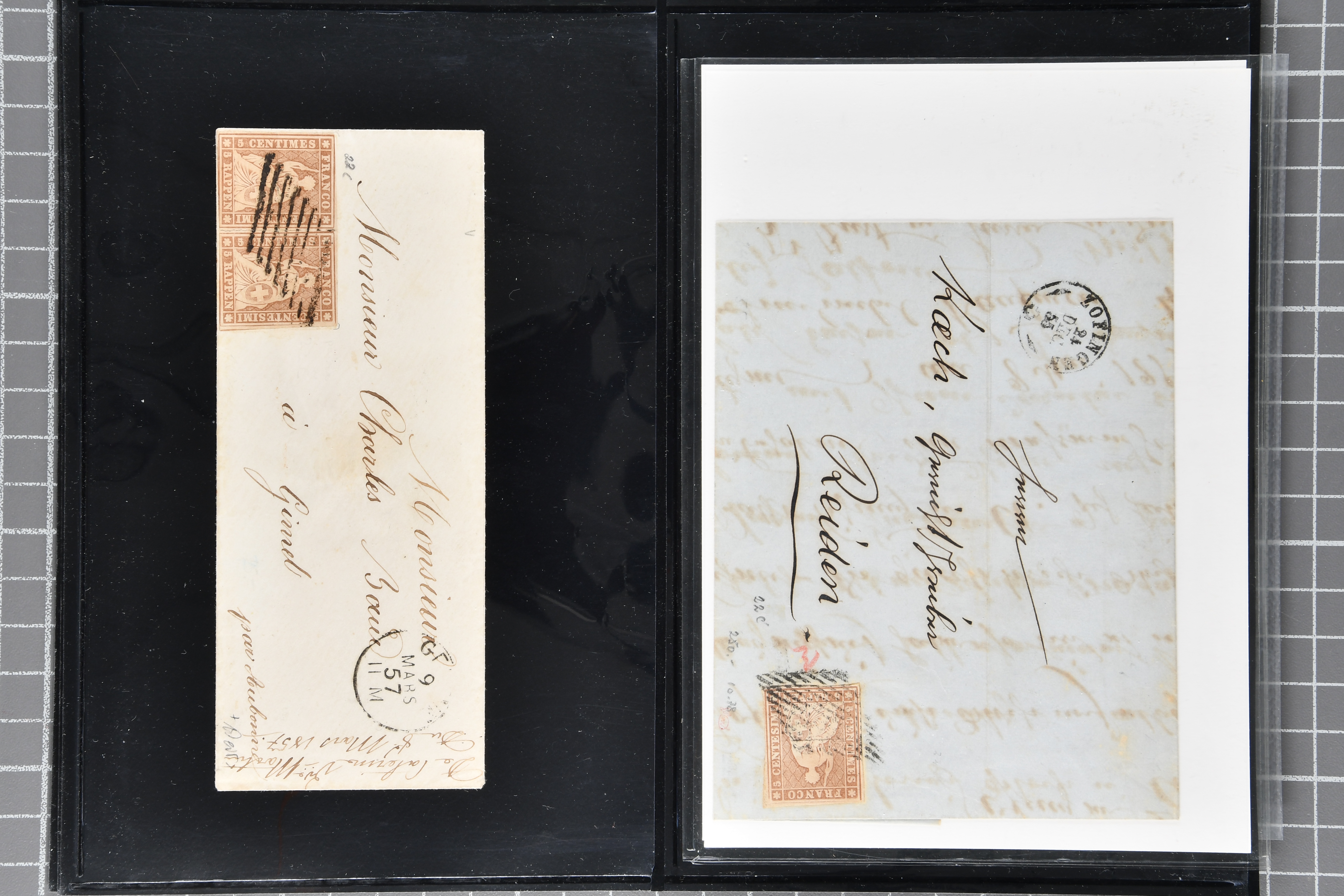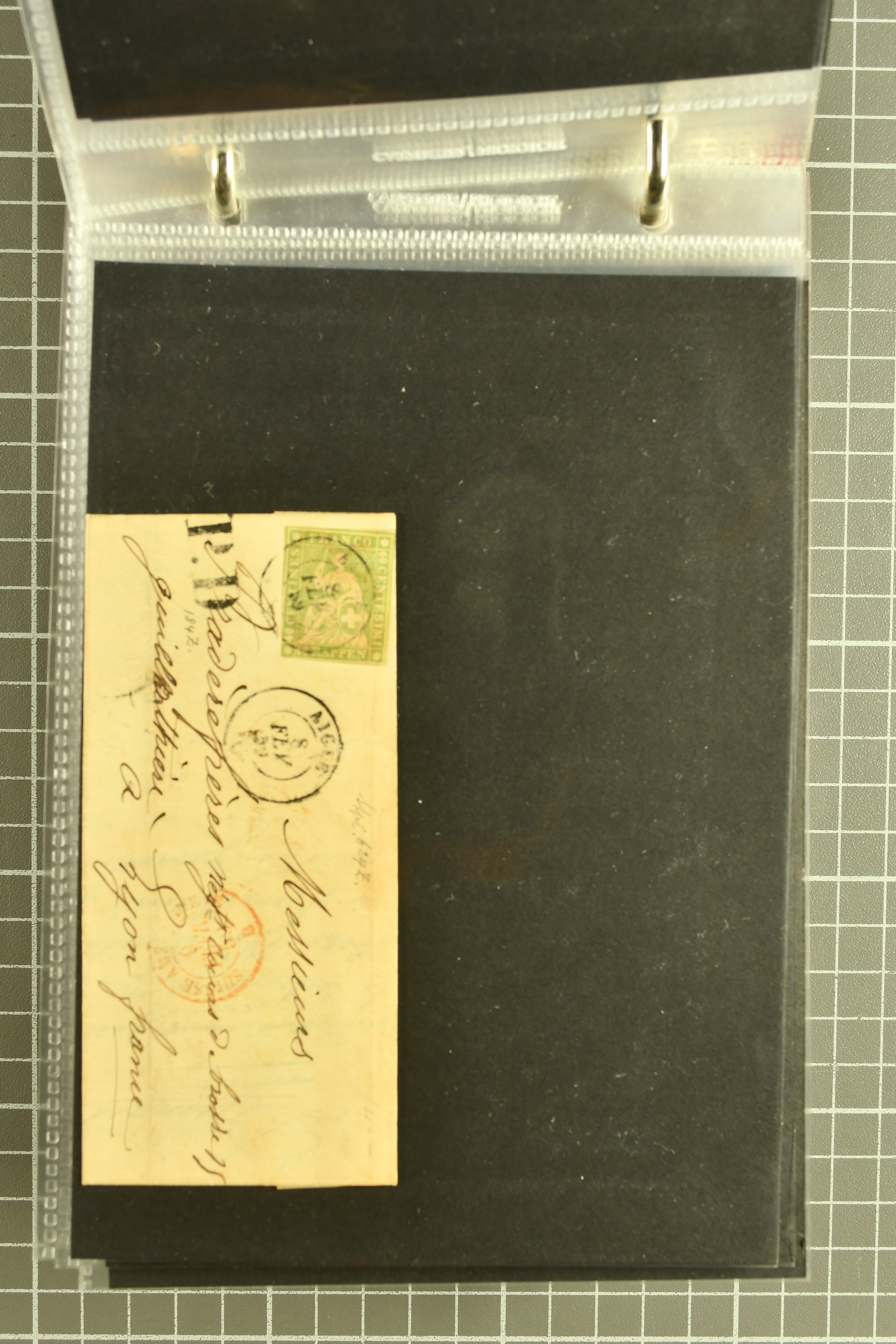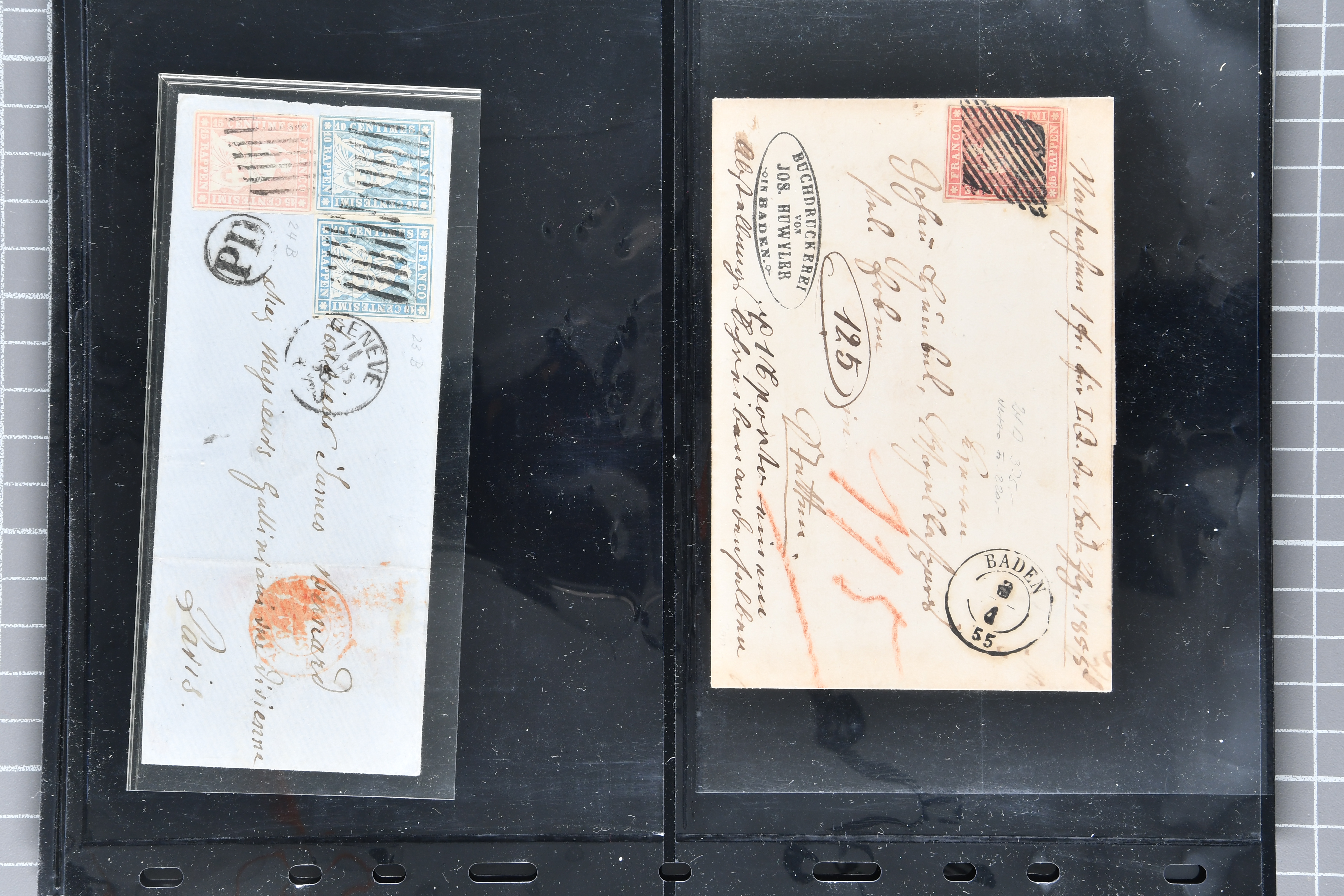 9778 image1854/62: Ziemlich spezialisierte Sammlung mit 21 Briefen und 110 ungebr./gest. Einzelwerten auf 23 Ausstellungsblättern. Dabei elf ungebr. Werte inkl. 5 Rp. braun (SBK 22A), 20 Rp. gelblichorange (SBK 25G), 40 Rp. olivgrün (2, SBK 26G) und 1 Fr. grau (SBK 27D), bessere gest. Werte wie neun Exemplare der 2 Rp. grau (SBK 21G), drei Exemplare 1 Fr. grau mit schwarzem Seidenfaden (SBK 27C) und sechs mit gelbem Seidenfaden (SBK 27D) sowie interessante Frankaturen wie 2 Rp. grau, ideal klar und übergehend entw. mit kl. Zweikreisstp. "WEISSENBURG 1 NOV. 62" auf frischer Trauer-Drucksache nach Aeschi bei Spiez, 5 Rp. braun (SBK 22G), diagonal halbiert als sog. "Genfer Provisorium" auf Briefstück, 15 Rp. karminrot (SBK 24A) entw. mit seltener 10-liniger Raute von Triengen (AW 55) in schwarz auf Nachnahme-Faltbrieflein im Ort, 20 Rp. gelblichorange (SBK 25B) auf Faltbrieflein im Grenzrayon von Genf nach Bonneville, Savoyen (Sardinien) sowie auf Nachnahme von Langenthal nach Dagmersellen mit nebenges. Schreibschriftspt. "Gondiswil" oder 40 Rp. grünlicholiv (SBK 26C) im waagr. Paar auf sauberem Faltbrief von Schaffhausen nach Leipzig, Sachsen. Unterschiedliche Erhaltung; vier Befunde. SBK=CHF 30'000+ (Image 1) (Image 2) (Image 3) (Image 4) (Image 5) (Image 6) (Image 7) (Image 8) (Image 9) (Image 10) (Image 11) (Image 12) (Image 13) (Image 14) (Image 15) (Image 16) (Image 17) (Image 18) (Image 19) (Image 20) (Image 21) (Image 22) (Image 23) (Image 24) (Image 25) (Image 26)