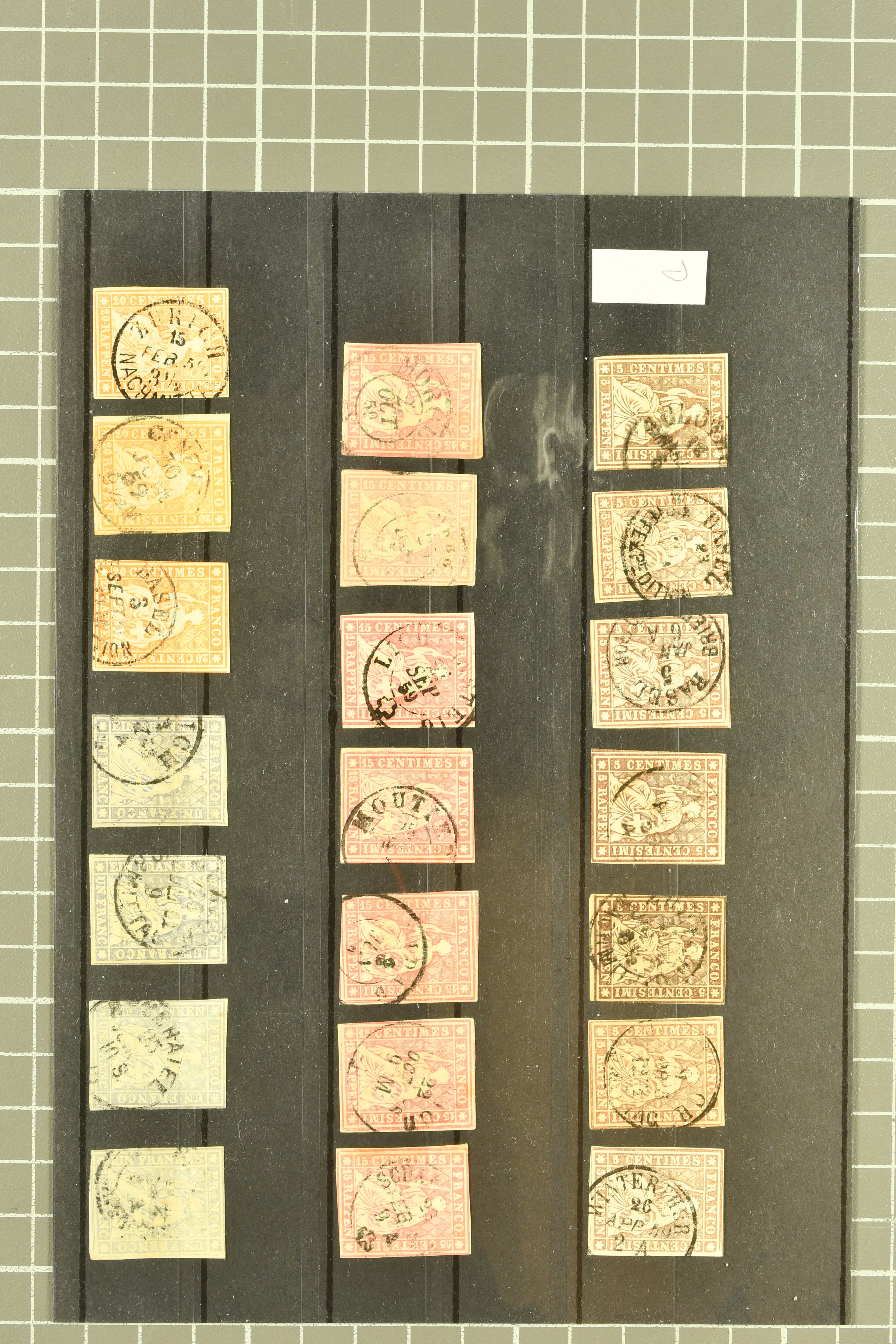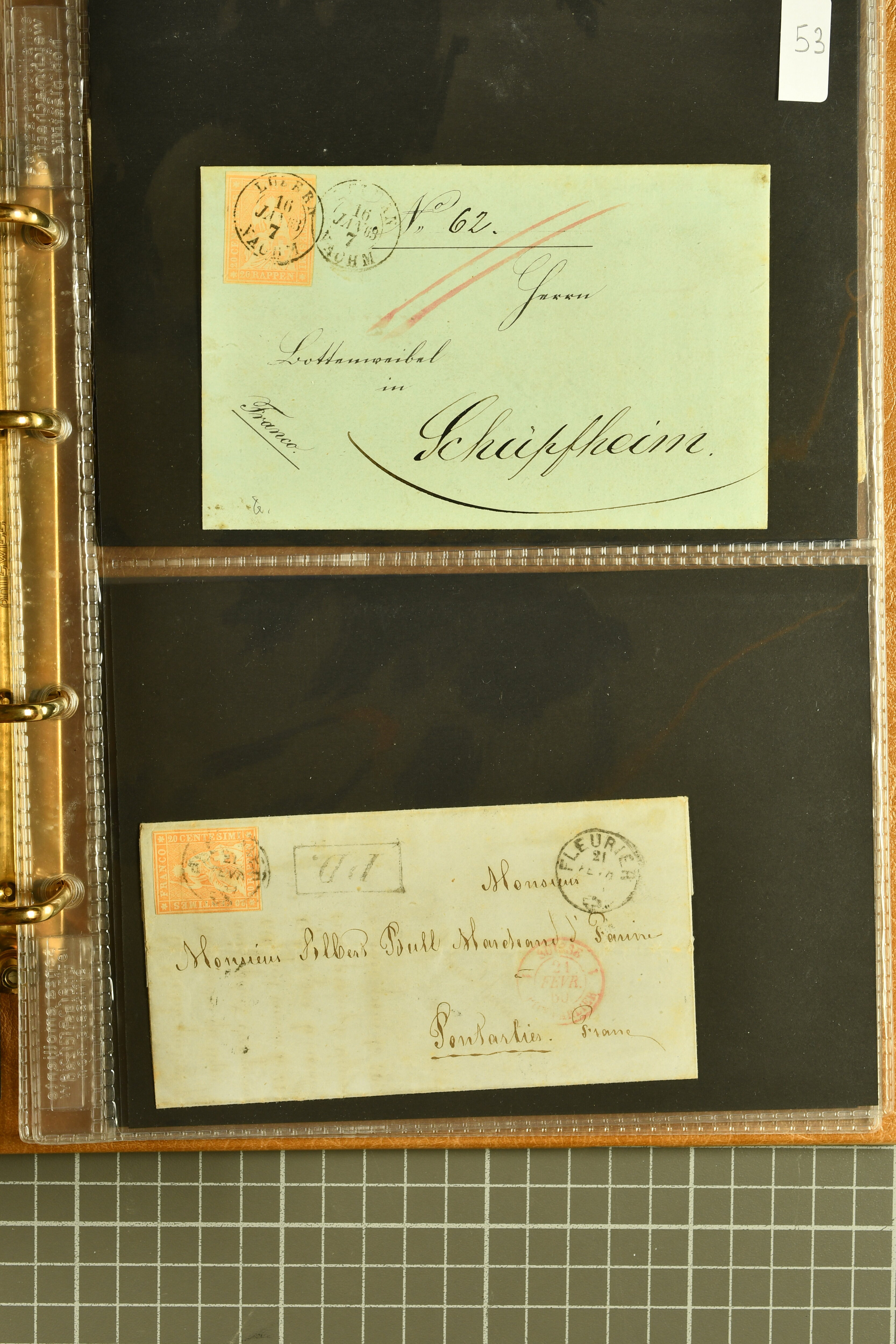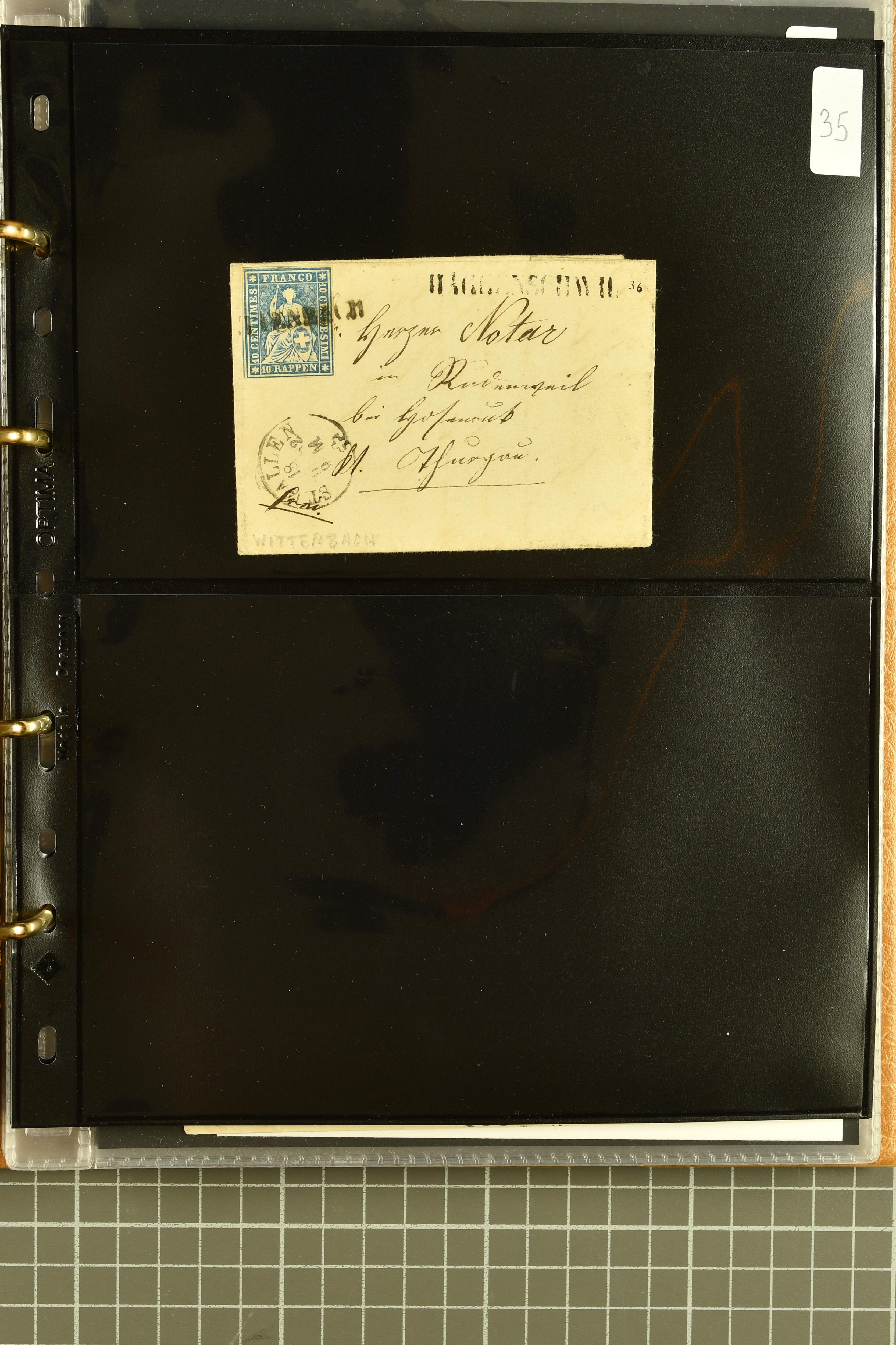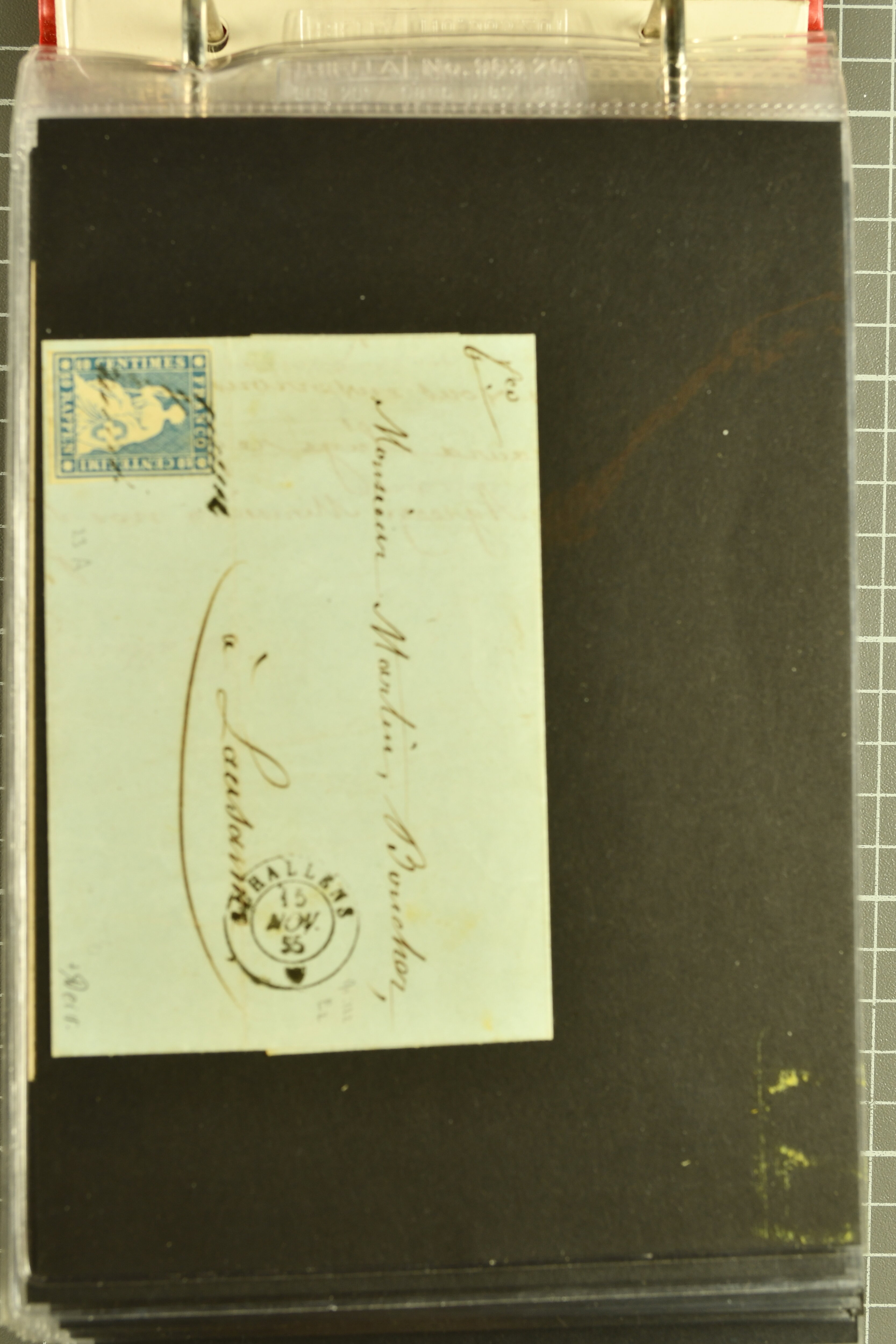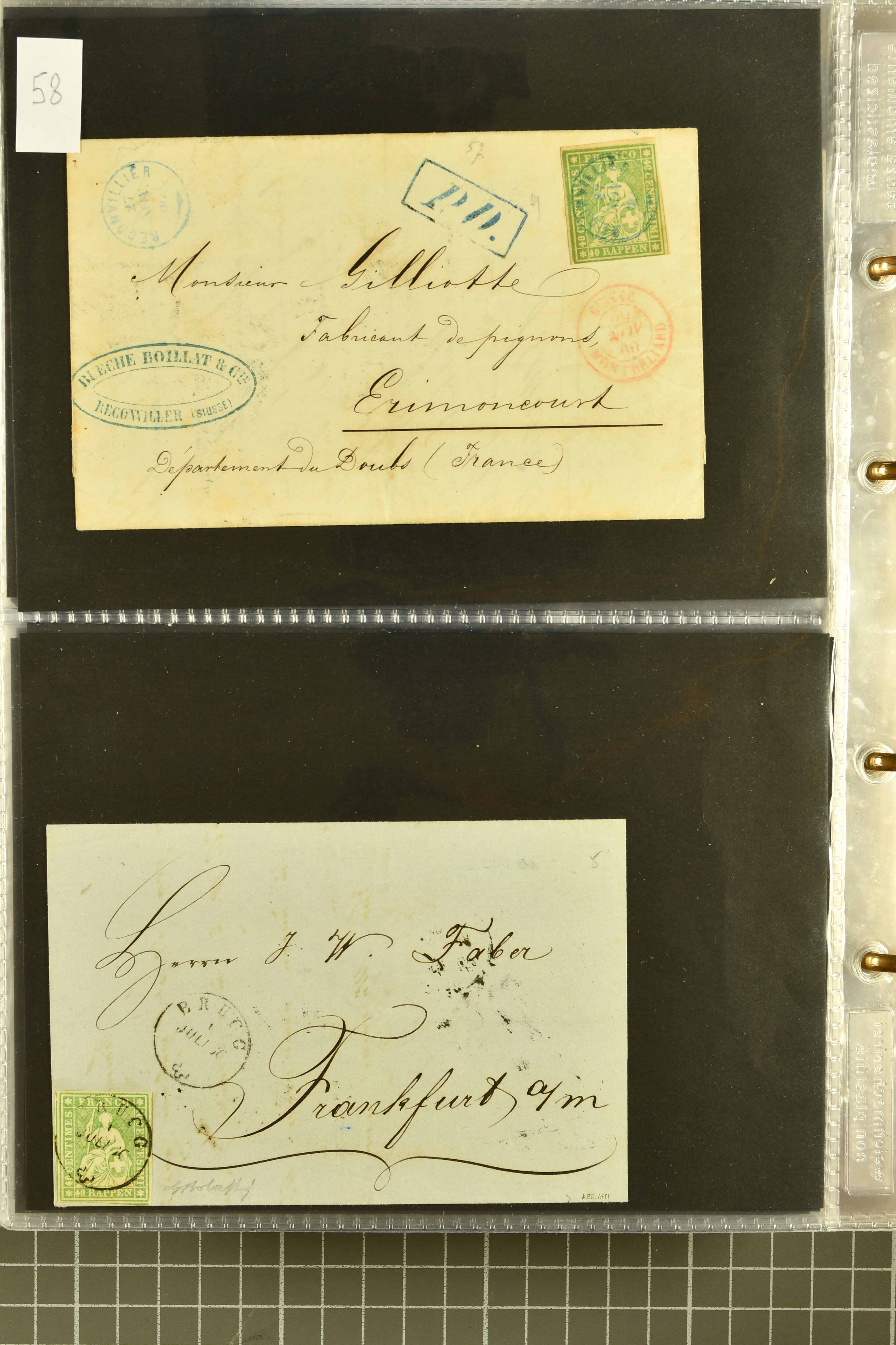 9791 cover image1859/62: Sammlung 92 Strubelfrankaturen der letzten Berner Druckperiode mit einigen schönen Randstücken, Einschreibe- oder Nachnahmefrankaturen, schwerpunktmässig aber einer interessanten Vielfalt an Entwertungen. Dabei Schreibschriftstp. "Schwarzenegg" auf 10 Rp. blau (SBK 23G) auf Brief nach Schlosswil, grosse Zierkreisstempel "SAINT-SULPICE 28 AOUT 1862" auf 10 Rp. blau mit Bogenrand unten und "AUVERNIER 14 MAI 1861" ebenfalls auf 10 Rp. blau, Zierlinienstempel "SCHÜPFHEIM 16 AVRIL 62", Fingerhutstempel inkl. "RECONVILLIER 27 NOV. 60" in blau auf 40 Rp. olivgrün (SBK 26G) auf Faltbrief mit nebenges. kursivem "P.D." im Kasten (AW 375) nach Frankreich aber auch von Sonvillier, Les Brenets oder Poschiavo, gefasste Stabstp. inkl. den selteneren Solothurner Stempeln "HIMMELRIED", "KLUS" und "BÄRSCHWIL" sowie Stabstempel von zum Teil selteneren Ortschaften wie Murg, Fällanden, Bättwil, Zutzgen, Zeinigen, Klosters Platz, Seegräben, Pfungen, Hünenberg, Corcelles. Unterschiedliche Erhaltung. SBK=CHF 11'000+ (Image 1) (Image 2) (Image 3) (Image 4) (Image 5) (Image 6) (Image 7) (Image 8) (Image 9) (Image 10) (Image 11) (Image 12) (Image 13) (Image 14) (Image 15) (Image 16) (Image 17) (Image 18) (Image 19) (Image 20) (Image 21) (Image 22) (Image 23) (Image 24) (Image 25) (Image 26) (Image 27) (Image 28) (Image 29) (Image 30) (Image 31) (Image 32) (Image 33) (Image 34) (Image 35) (Image 36) (Image 37) (Image 38) (Image 39) (Image 40) (Image 41) (Image 42) (Image 43) (Image 44) (Image 45) (Image 46) (Image 47) (Image 48) (Image 49)