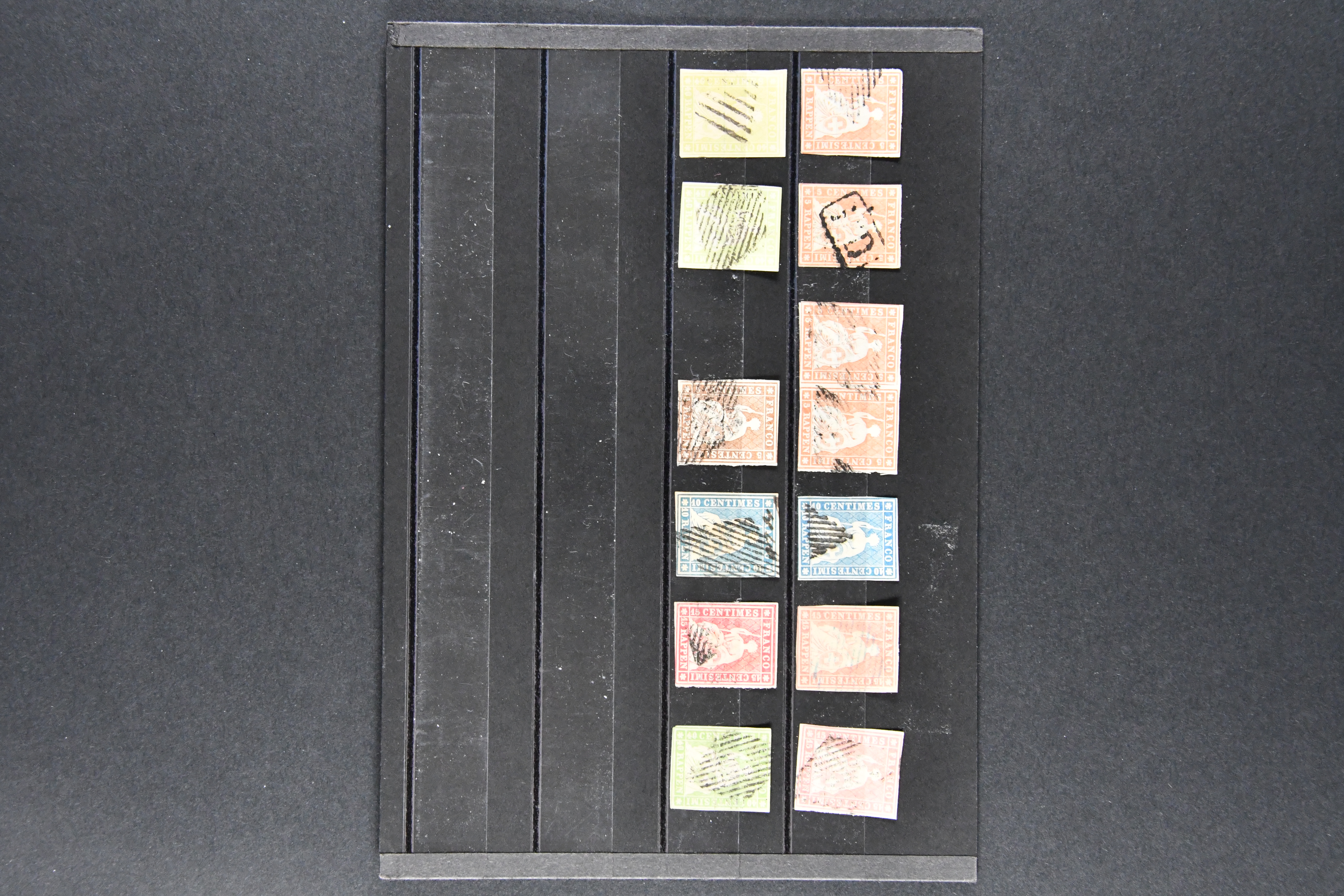 9777 image1854: Partie elf Einzelwerte und ein Paar früher Druckperioden. Dabei zwei Exemplare der 5 Rp. braunorange (SBK 22Aa), entw. mit zarter eidg. Raute in schwarz resp. voll aufges. "P.D." im Kästchen (AW 365), dieselbe Marke im waagr. Paar, zart entw. mit zwei Abschlägen der eidg. Raute oder zwei Exemplare der 40 Rp. gelboliv (SBK 26Aa). Meist gute Erhaltung; zwei Atteste. SBK=CHF 18'000+ (Image 1) (Image 2) (Image 3)