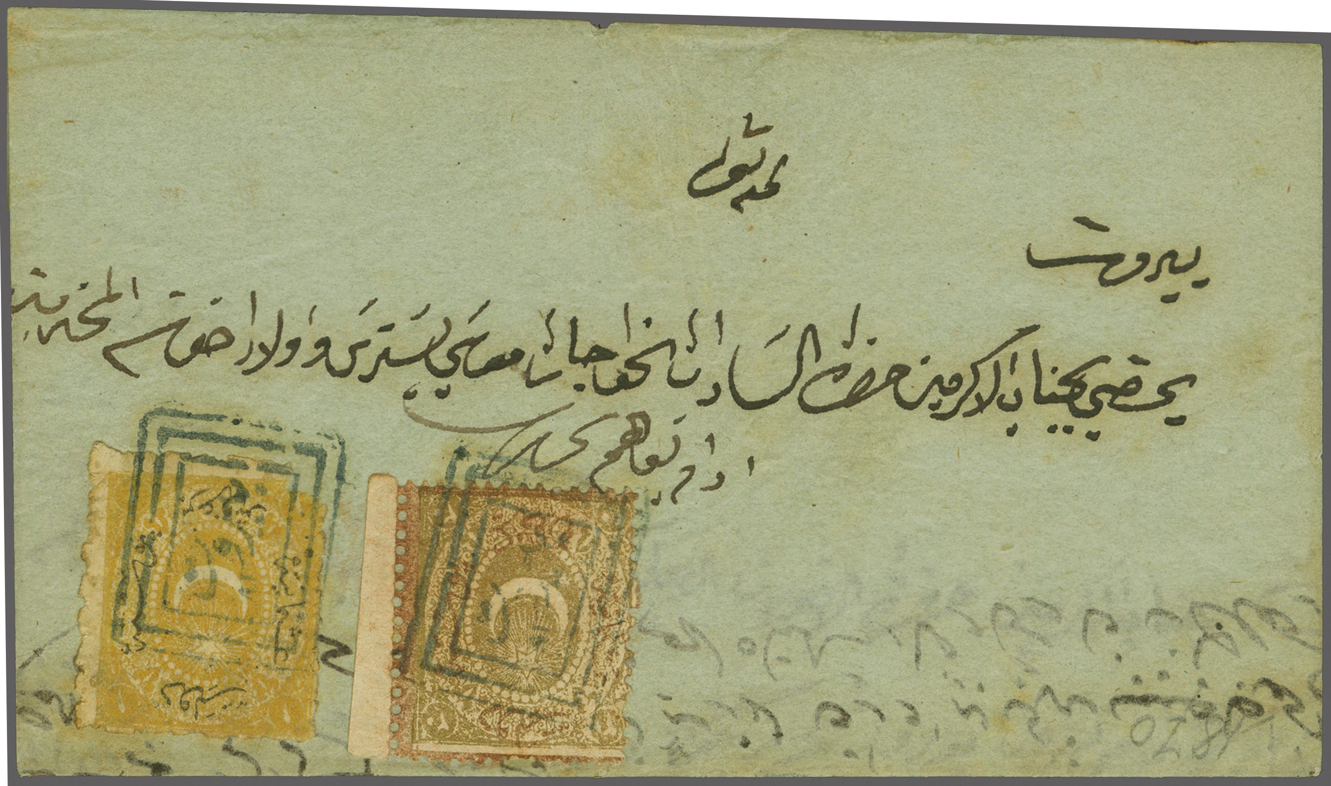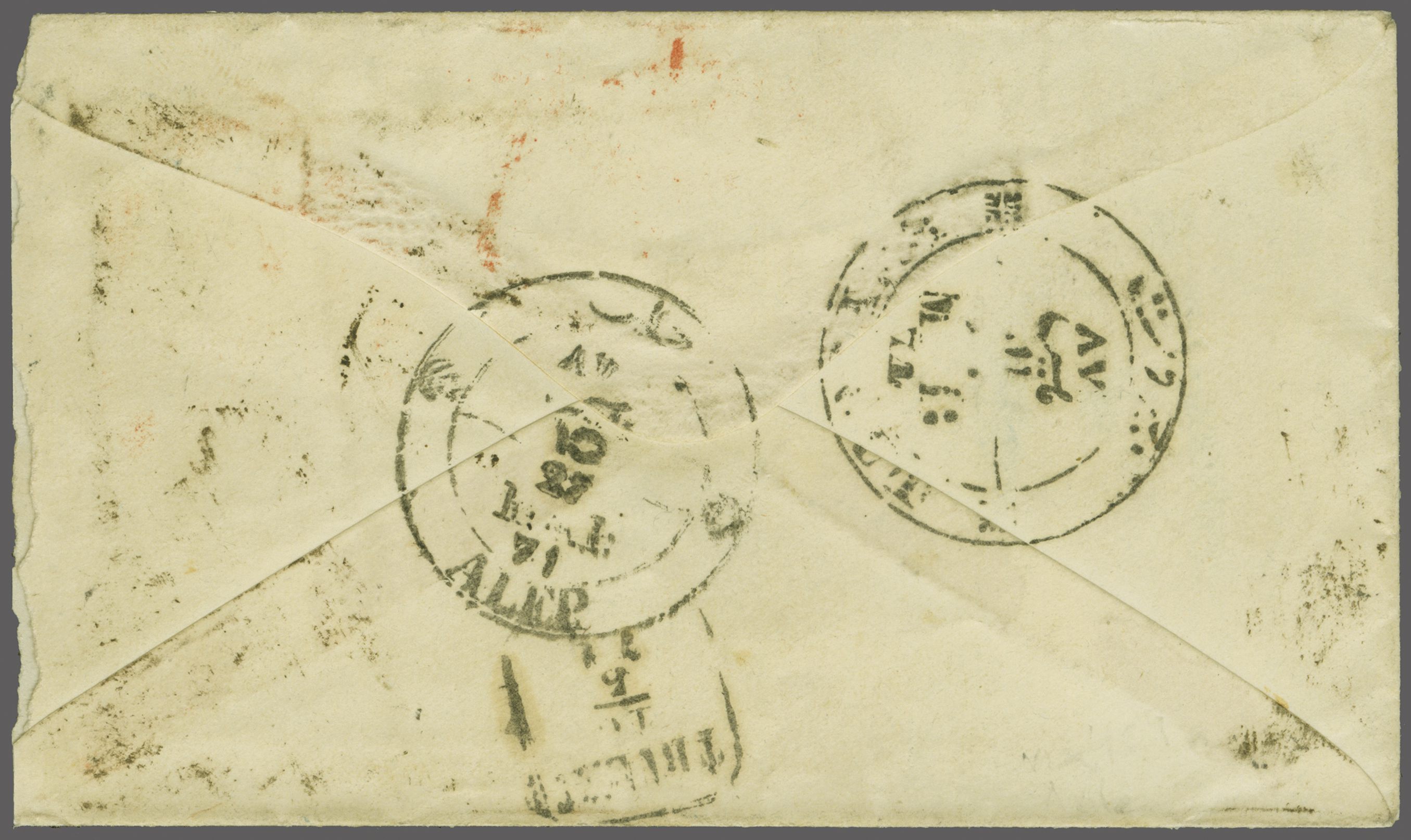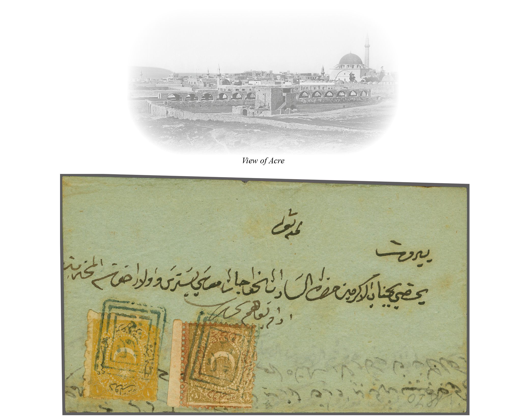 issue adhesives either in Beirut or, indeed, in any town of the Empire. A fine and most attractive cover, believed to be the only cover from Palestine to Beirut with a "Battal" on the 1865 issue (Image 1)