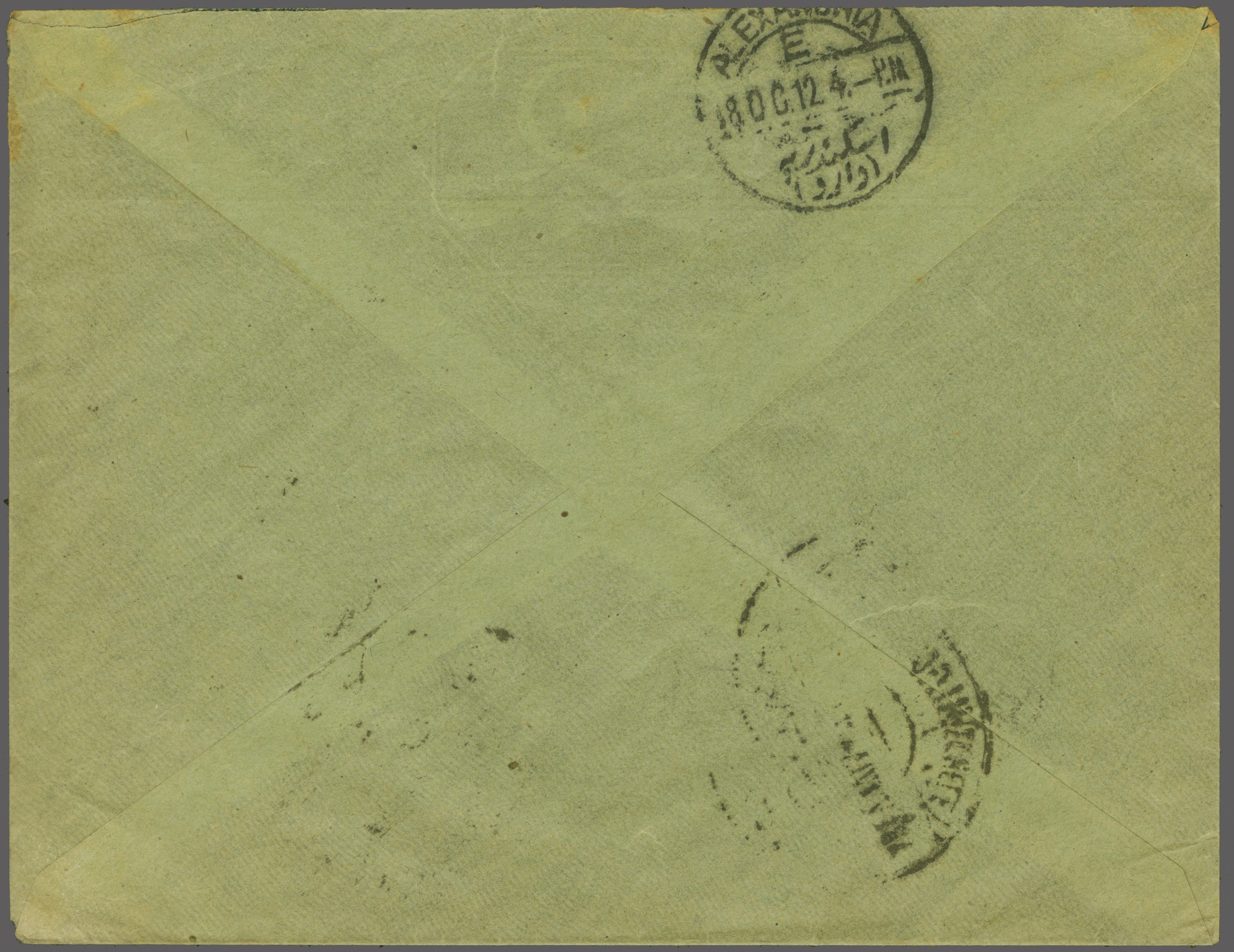 32, Ziya fig. 3 - rated 'RR'). Reverse with Alexandria (Oct 18) arrival cds. A fine and very scarce cover. Note: This cover is illustrated in the Ziya catalogue 'B' on page 137 (Image 1)