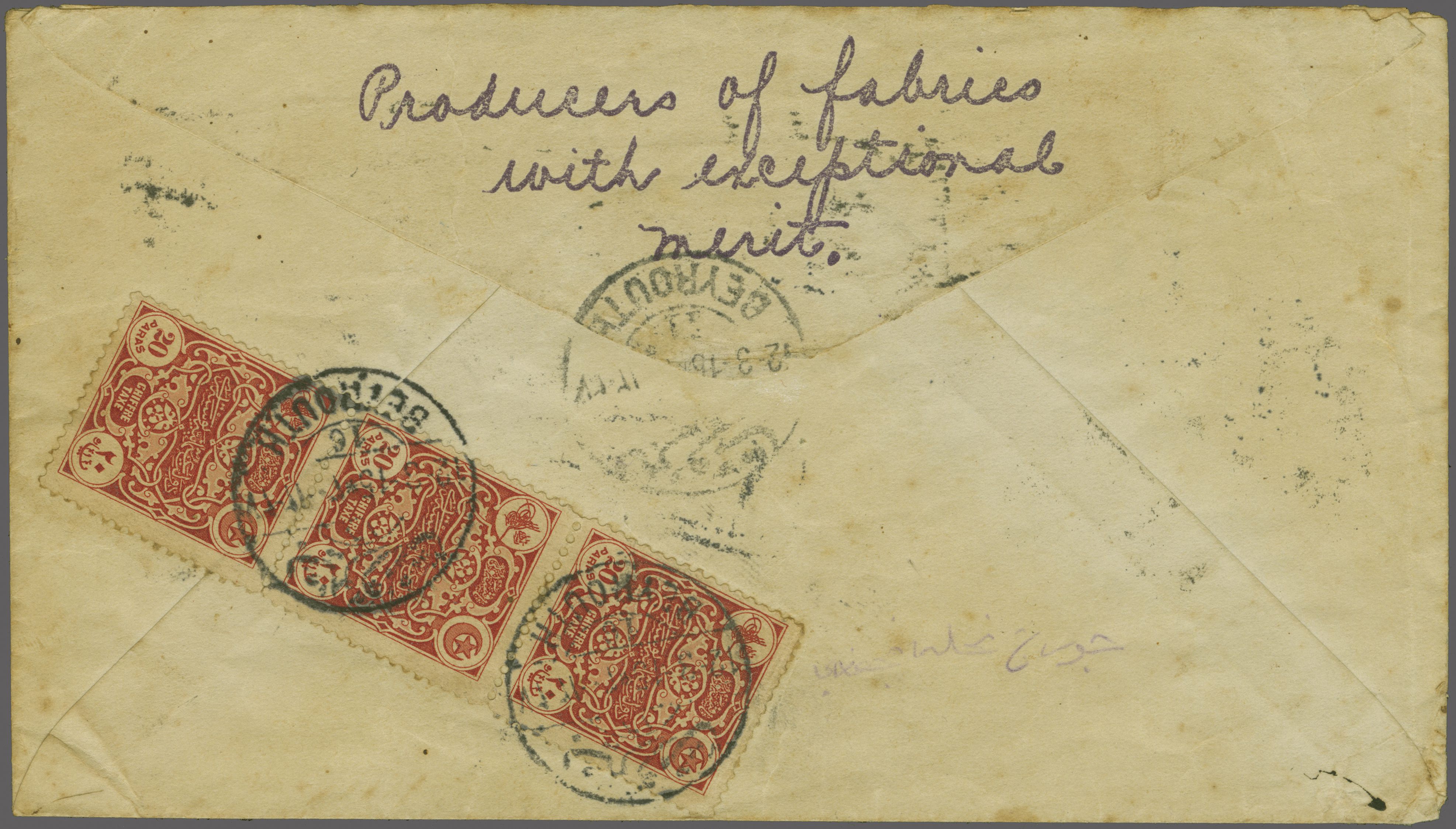 5 - rated 'RR') with BEYROUT despatch cds at right. Small part of flap missing on reverse but with Stamboul arrival in black. A most attractive and scarce cover. Signed Tevfik Kuyas RDP. Note: This cover is illustrated in the Ziya catalogue 'B' on