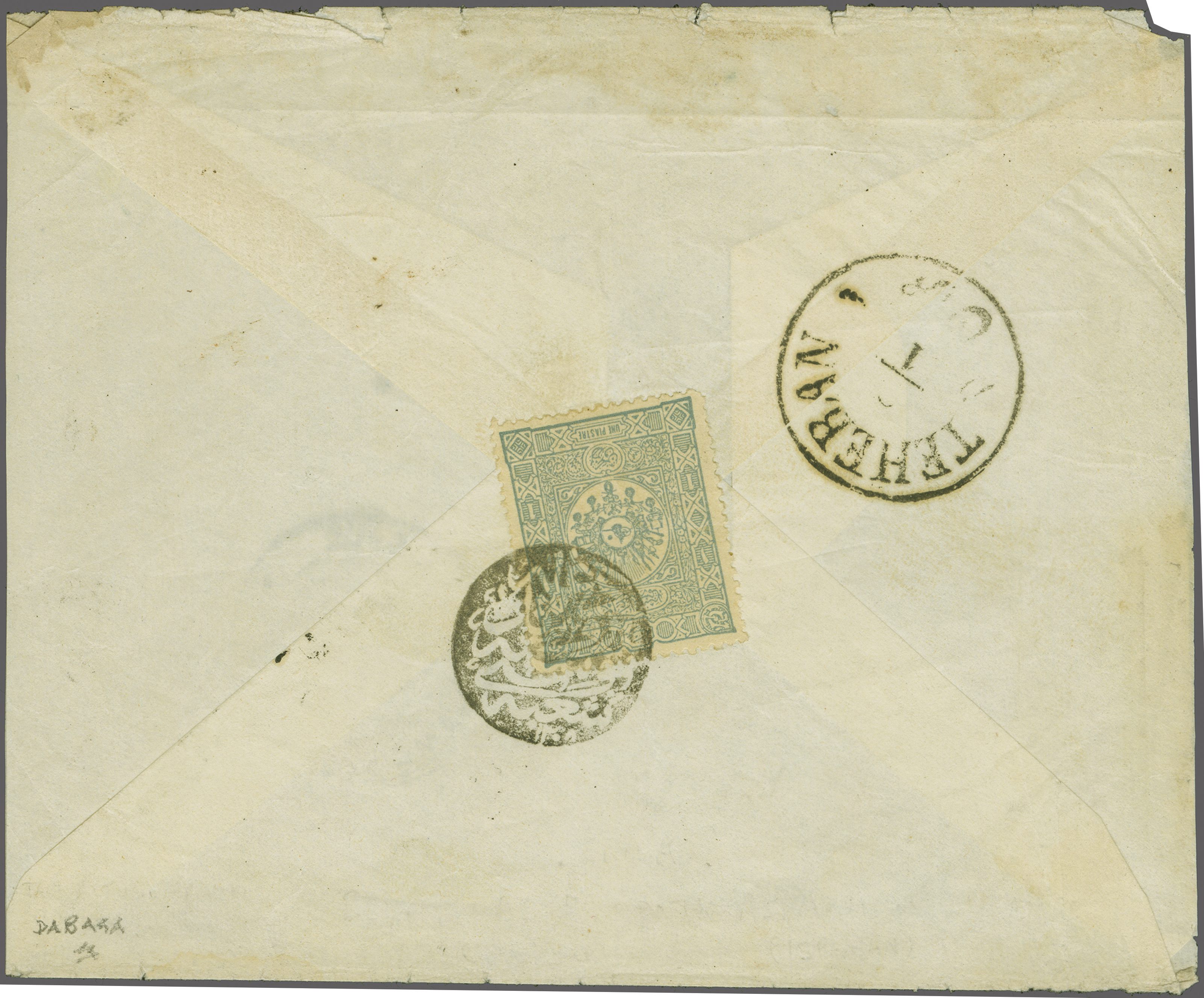 Beirut - Dabagha Office 1892: Turkey 1 pi. grey-blue, a used example on circa 1894 cover from the Tanner's Market District of Dabaga in Beirut to Isfahan, Persia tied by bold strike of circular "DABAGHA BEIRUTTA POSTA SHUBESI