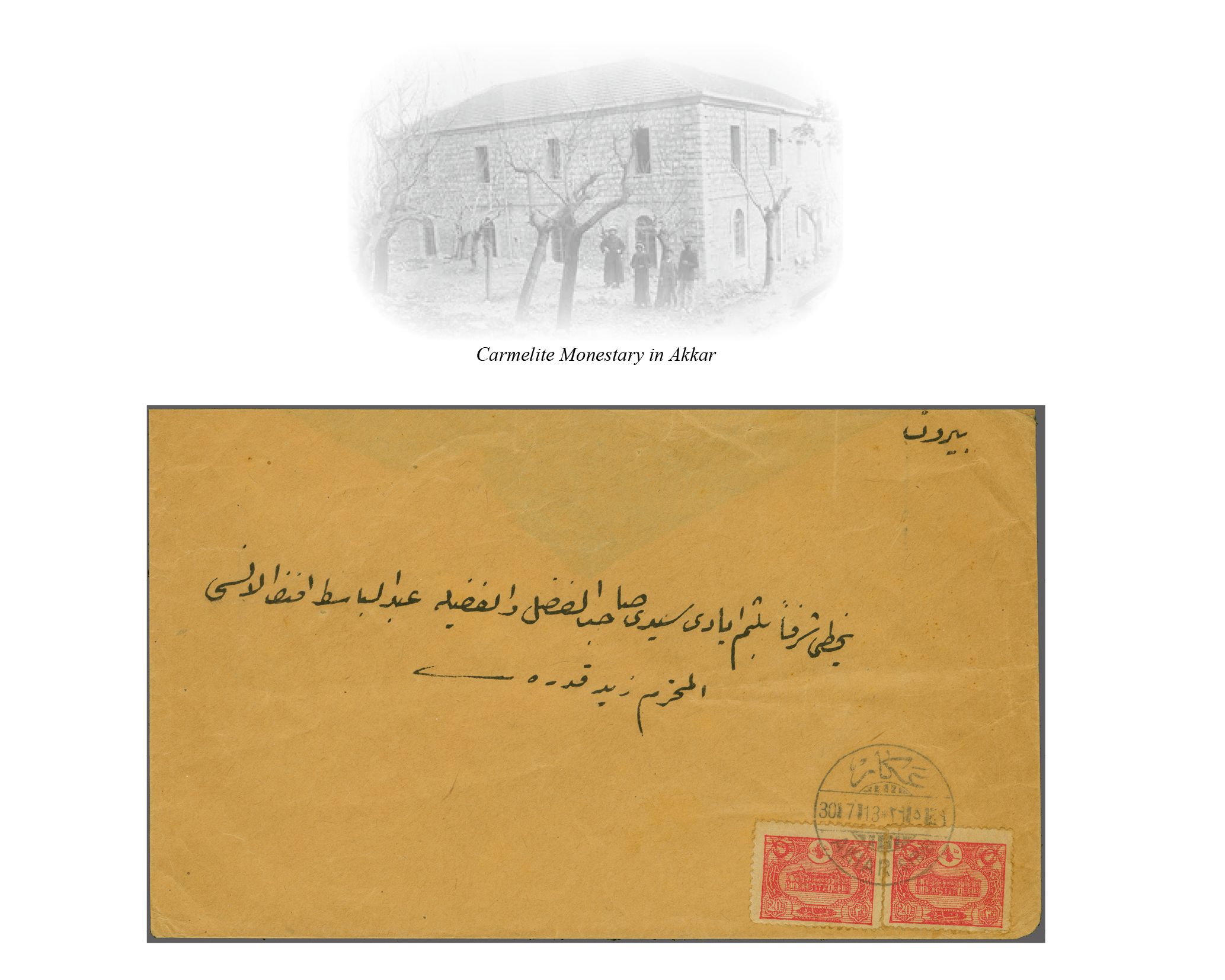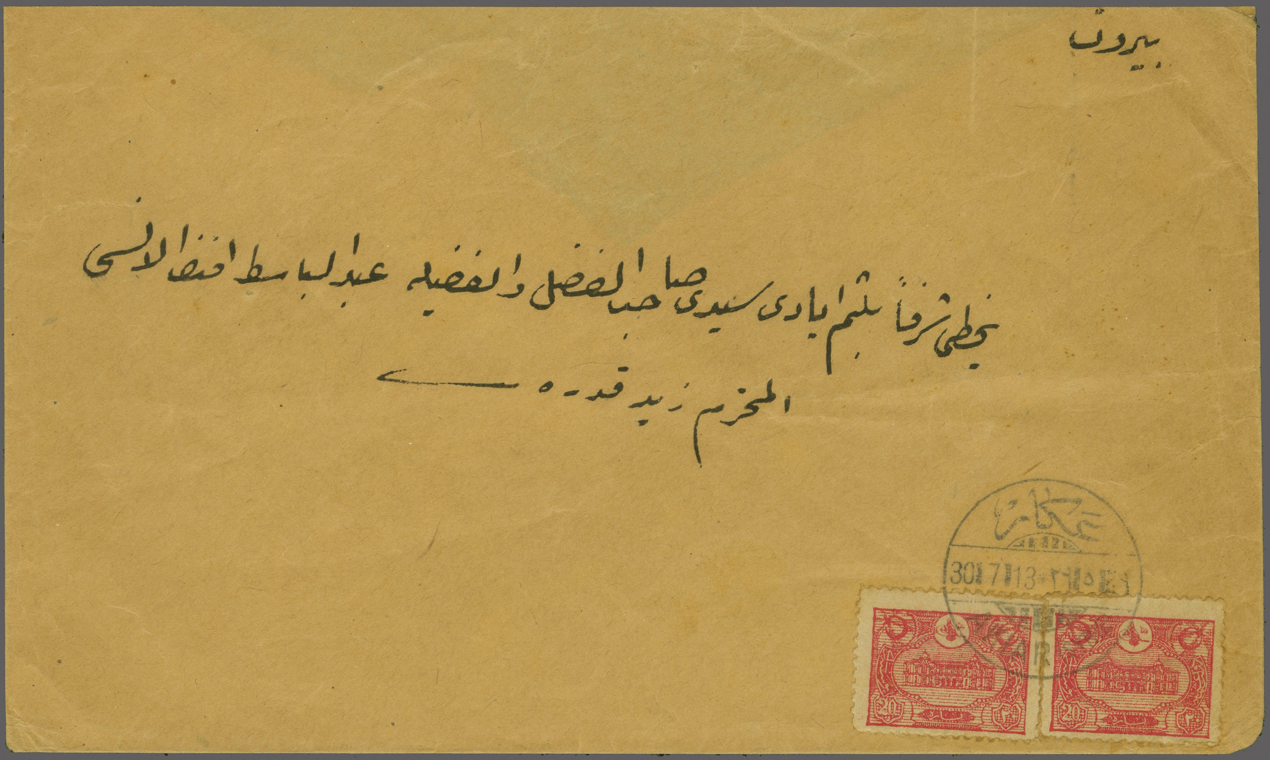 Vilayet of Beirut - Akkar / Akiar 1913: Turkey 20 pa. rose, a horizontal pair used on 1913 cover from Akkiar (Akkar) to Beirut tied by superb strike of bilingual "AKIAR (SYRIE)" circular datestamp (July 22, Turkish date) in