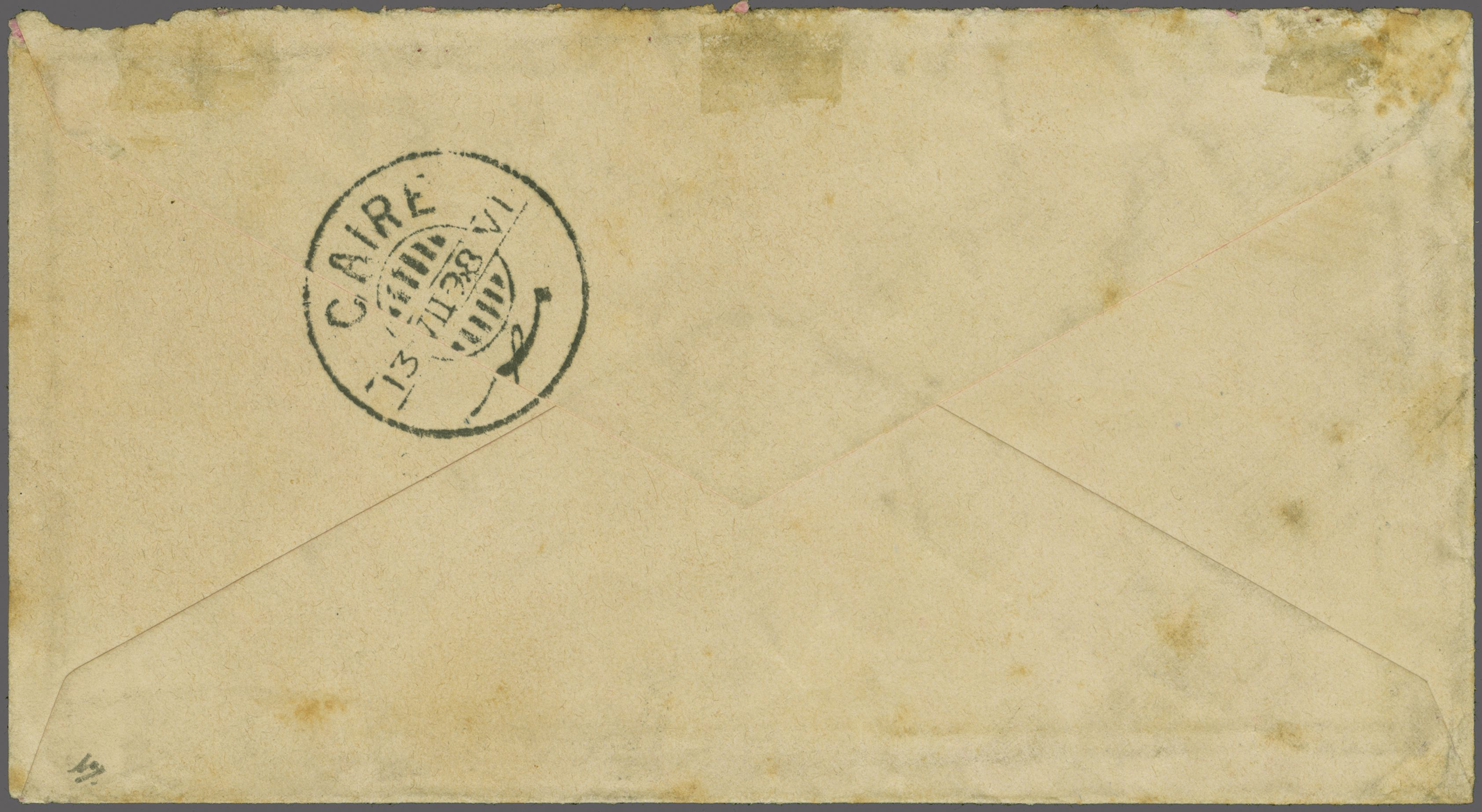 Office Saida 1887) in black (Coles & Walker unlisted, Ziya fig. 3 - rated 'RRR'). Reverse with Cairo arrival cds (July 13) in black. Slight soiling but very rare (Image 1)