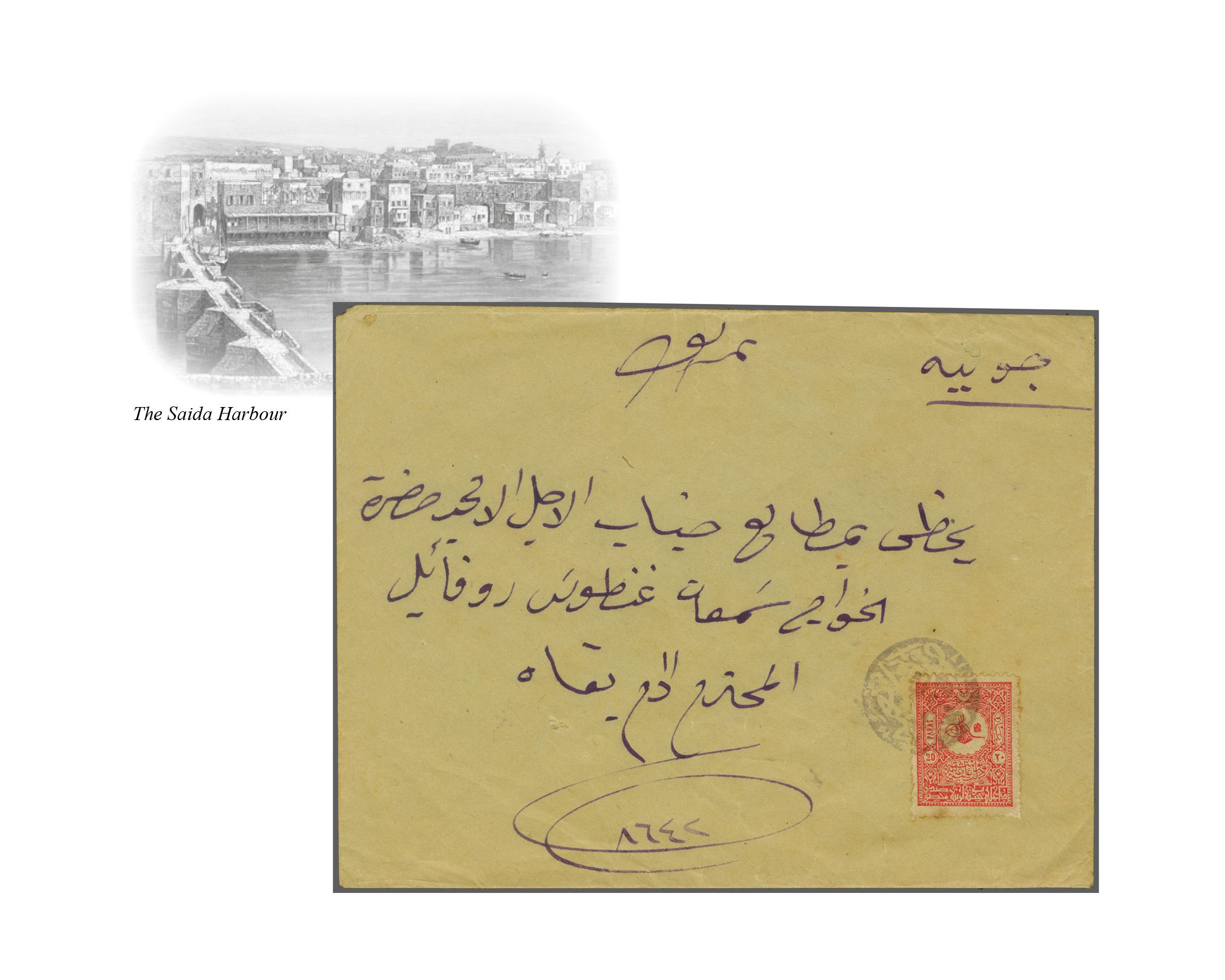 Vilayet of Beirut - Säida / Sidon 1901: Turkey 20 pa. rose, a single example used on cover from Saida to Djounie at littoral / port to port rate, tied by circular "POSTA SHUBESI SAIDA ISKELE - 1316" negative seal (Saida