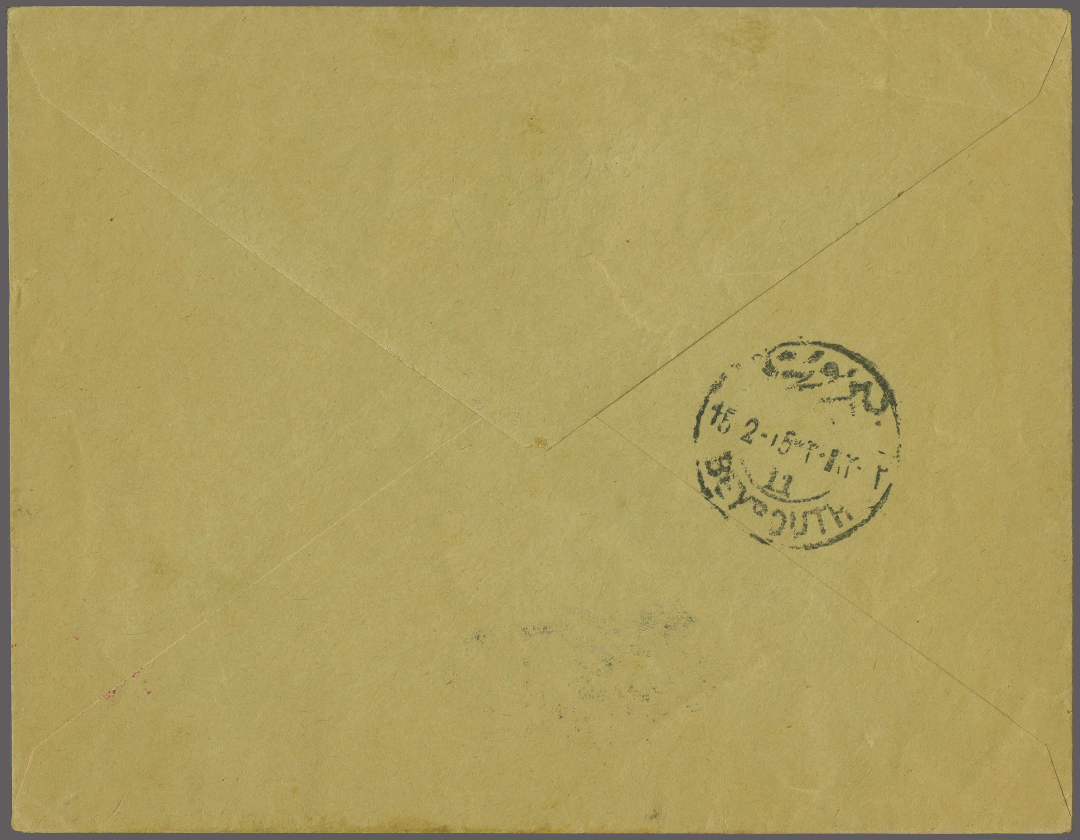 Beirut Military Censor 1915: Covers (2) incoming to Beirut and Censored, with Feb 1915 cover with defective 1914 1 pi. blue tied by "BEKAA" cds (Coles & Walker fig. 70, Ziya fig. 4) with bilingual "DIRECTION